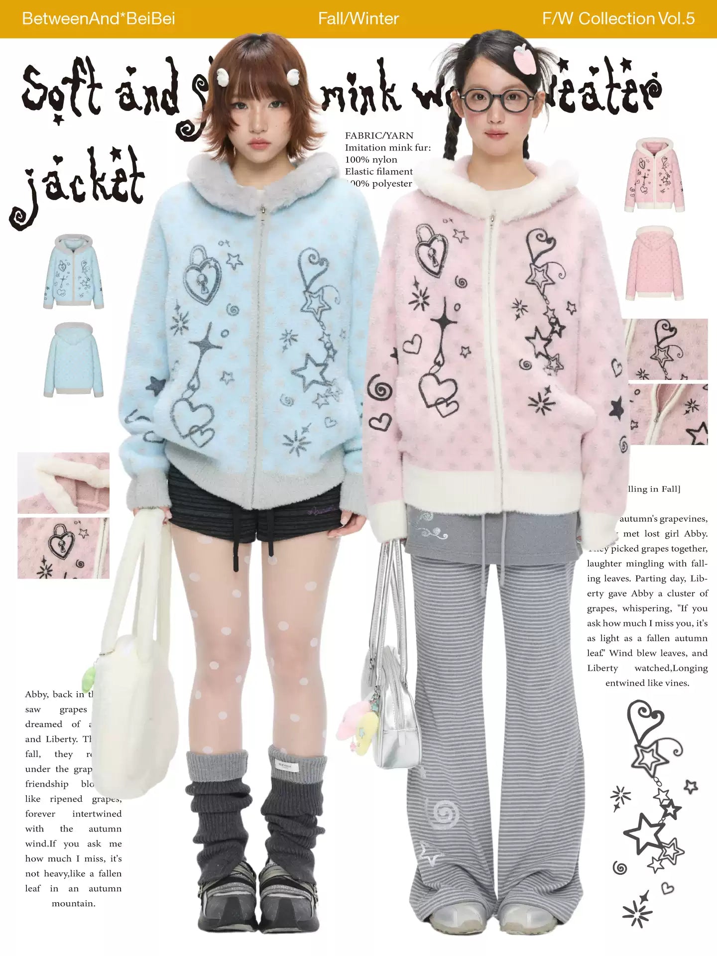 ジャカードデザインのツートンフェイクミンクニットカーディガン ルックブック