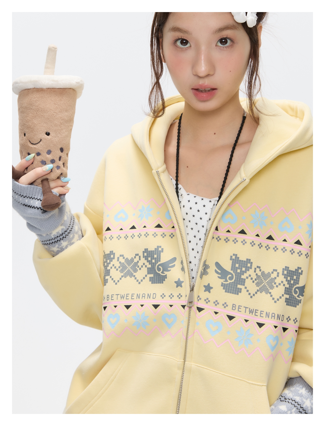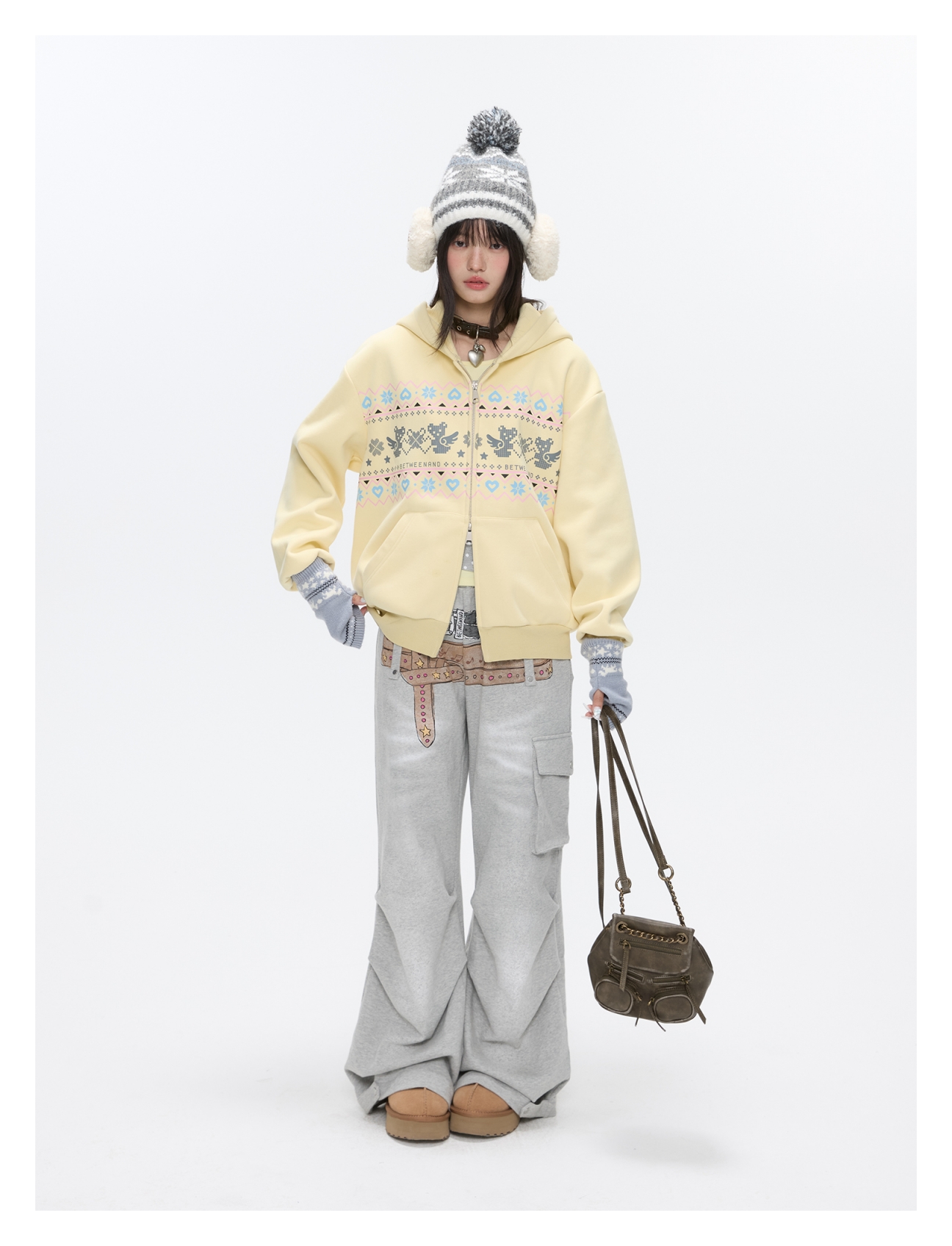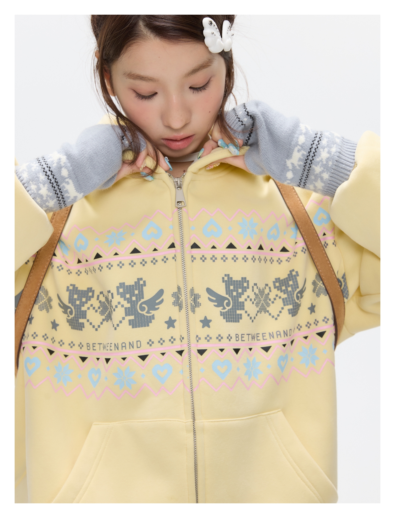 Yellow Fair Isle bear hoodie with fleece lining Lookbook