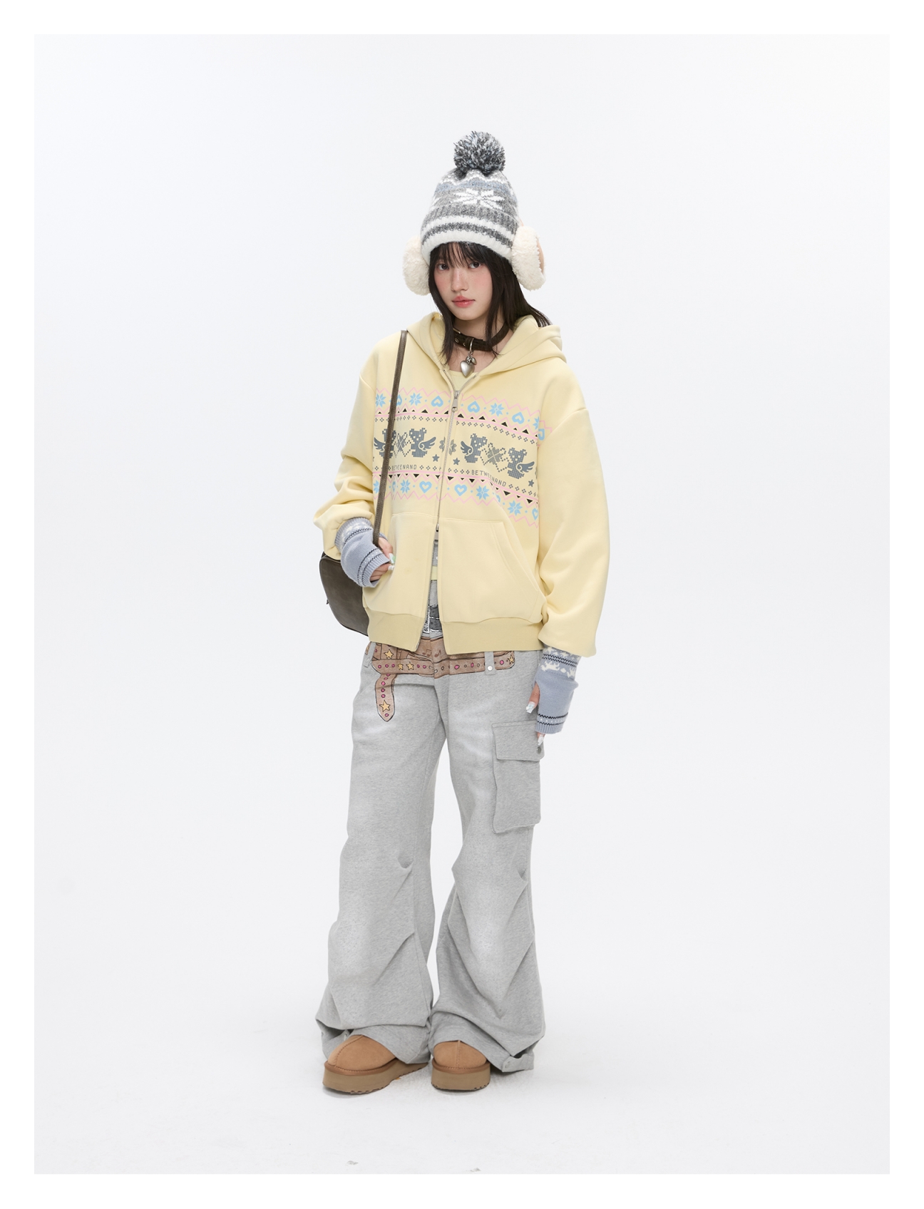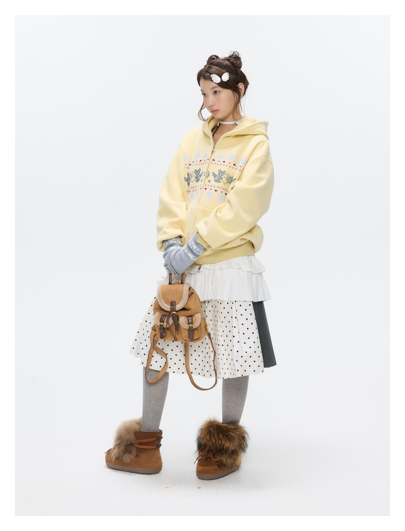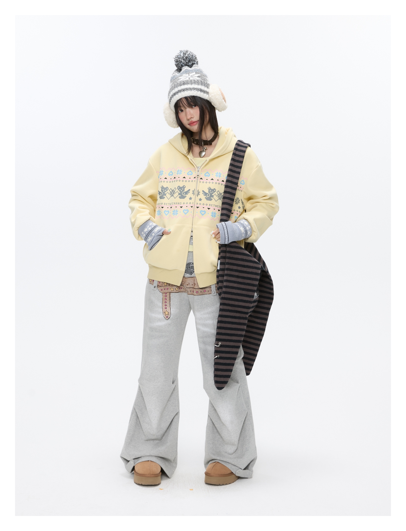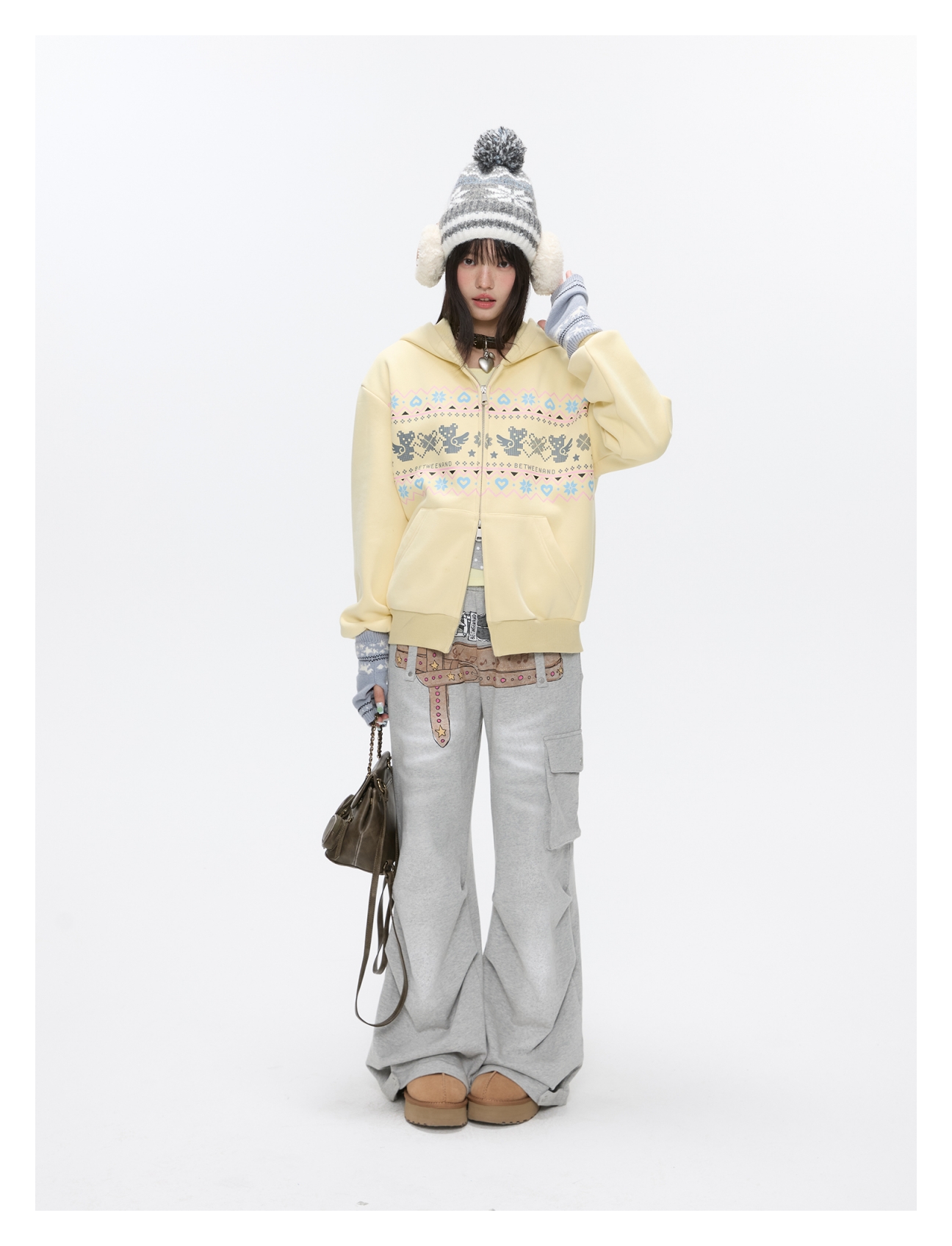 Yellow Fair Isle bear hoodie with fleece lining Lookbook