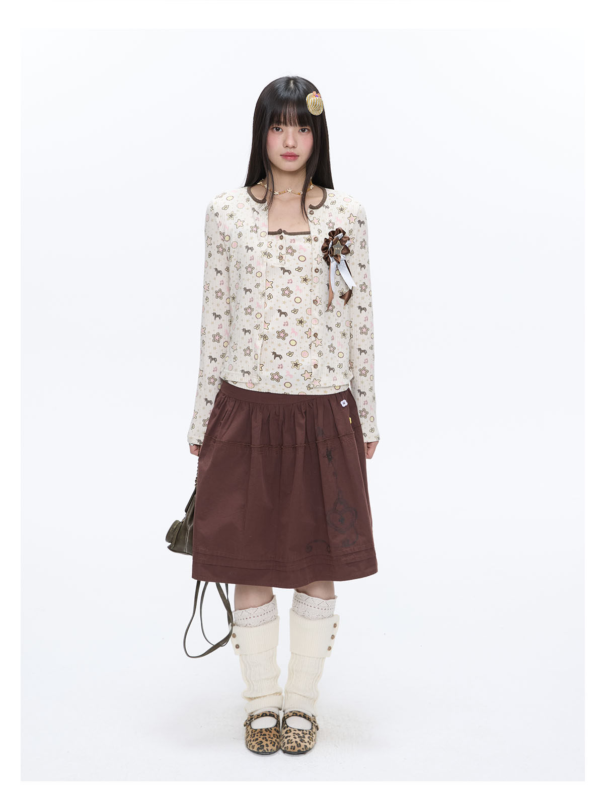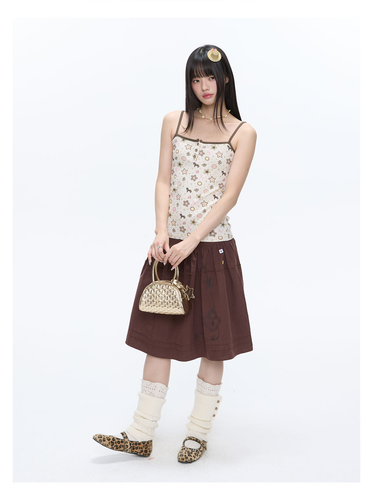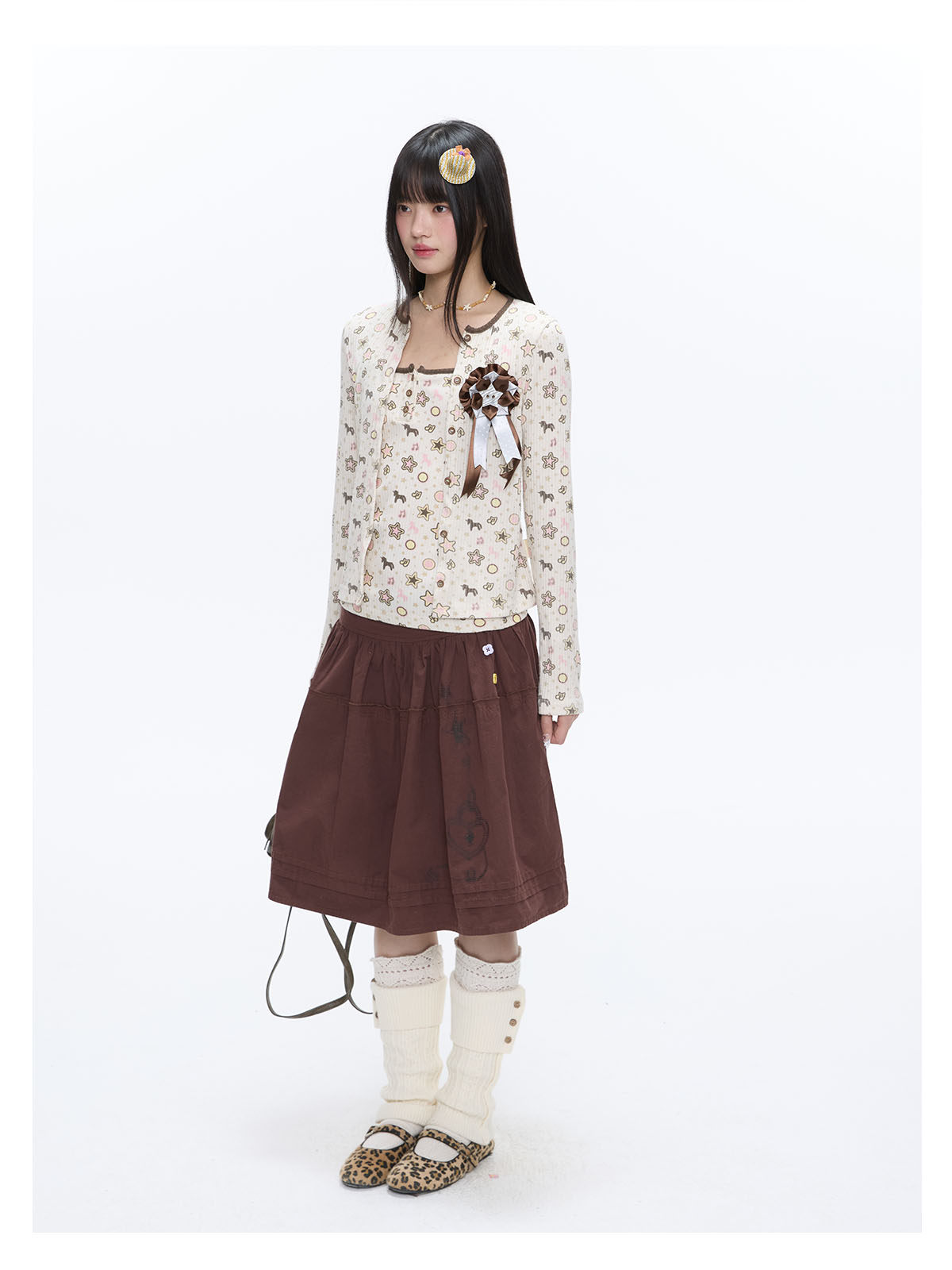 Four-leaf clover rhinestone striped camisole top and cardigan set Sizing