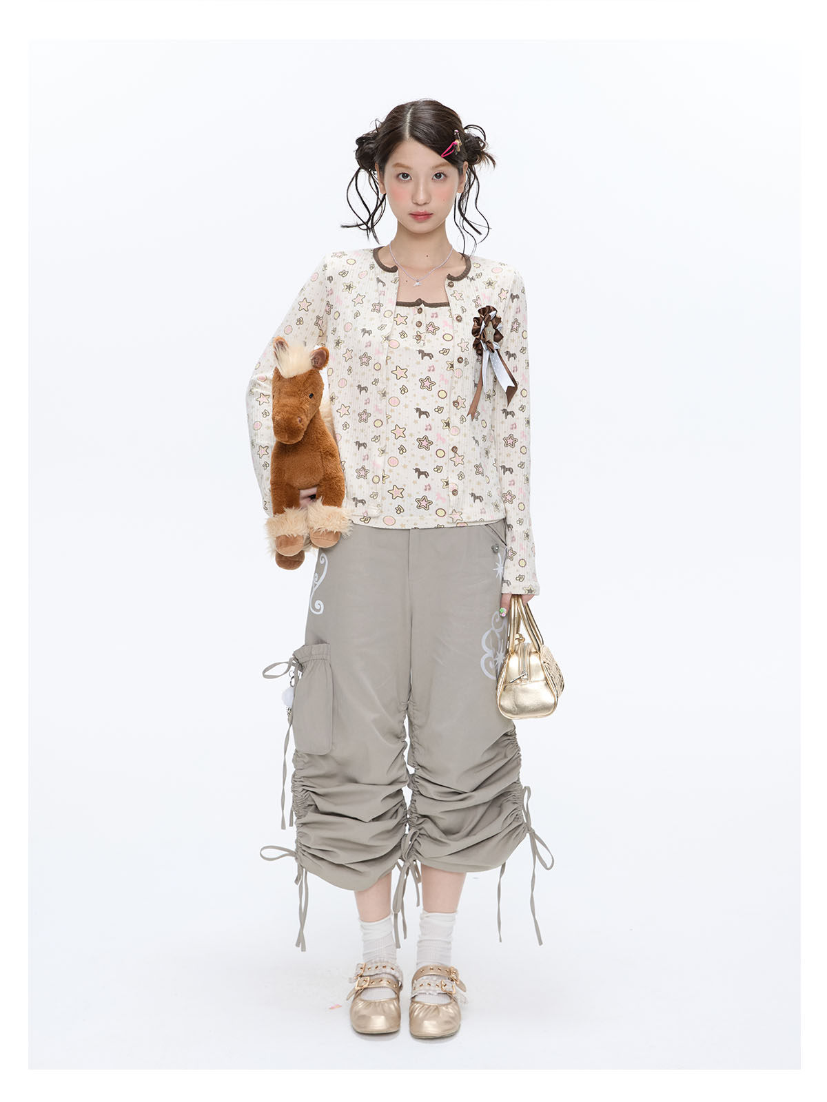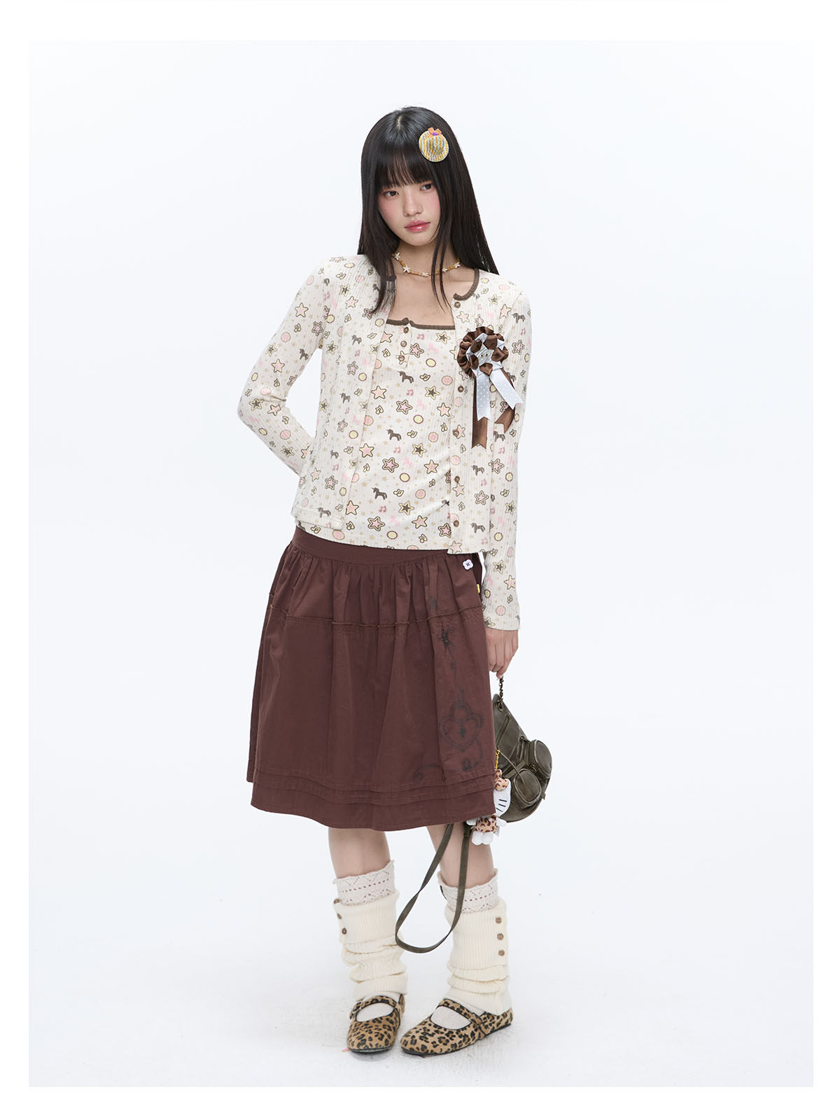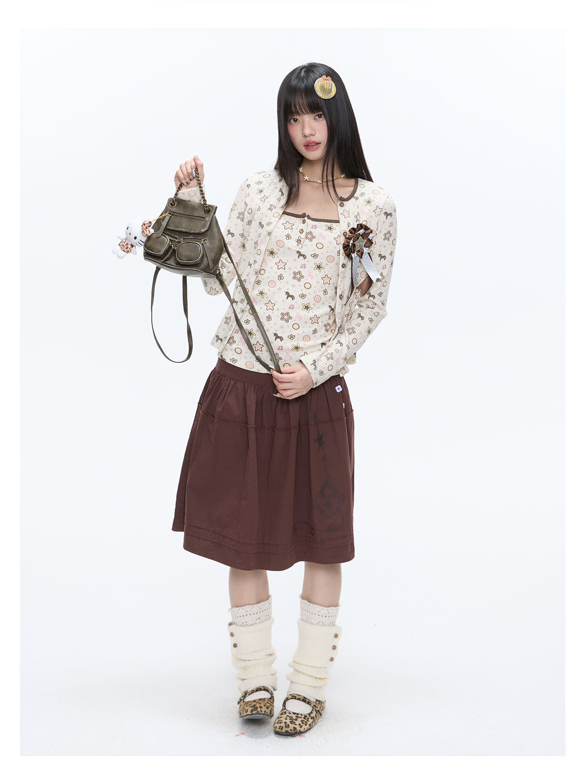 Four-leaf clover rhinestone striped camisole top and cardigan set Sizing
