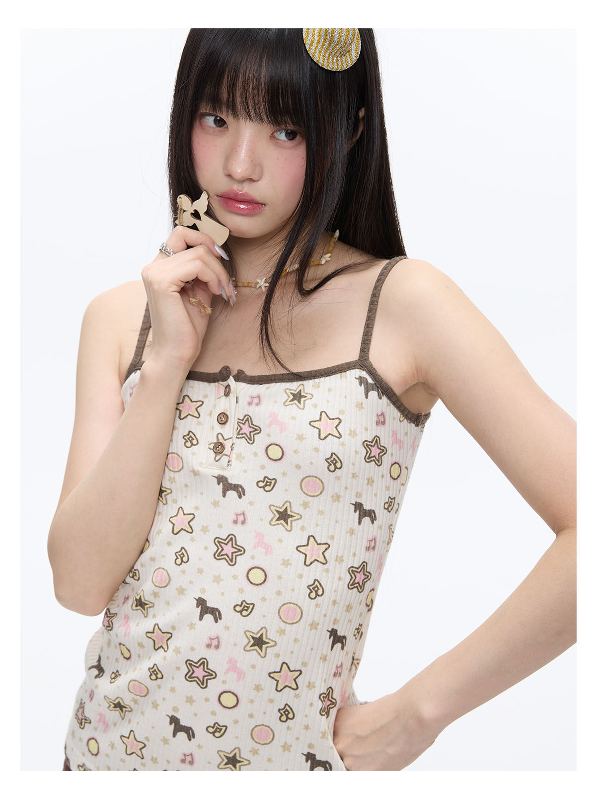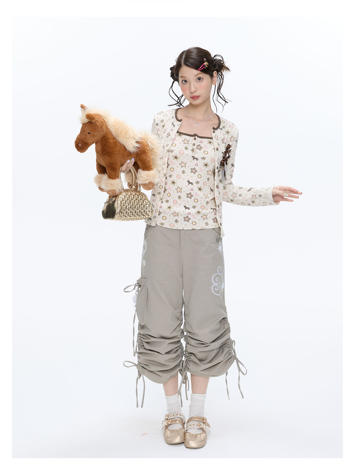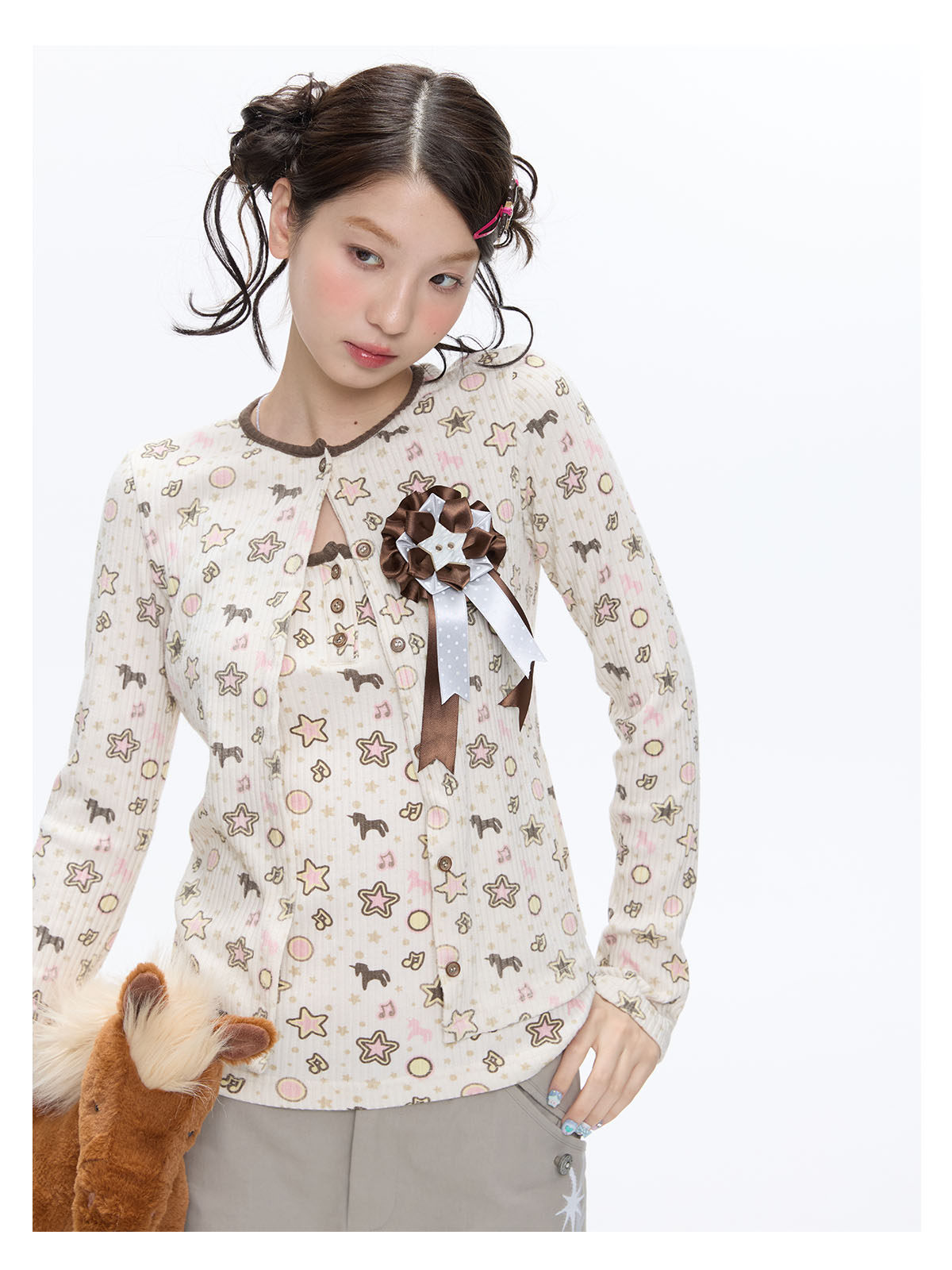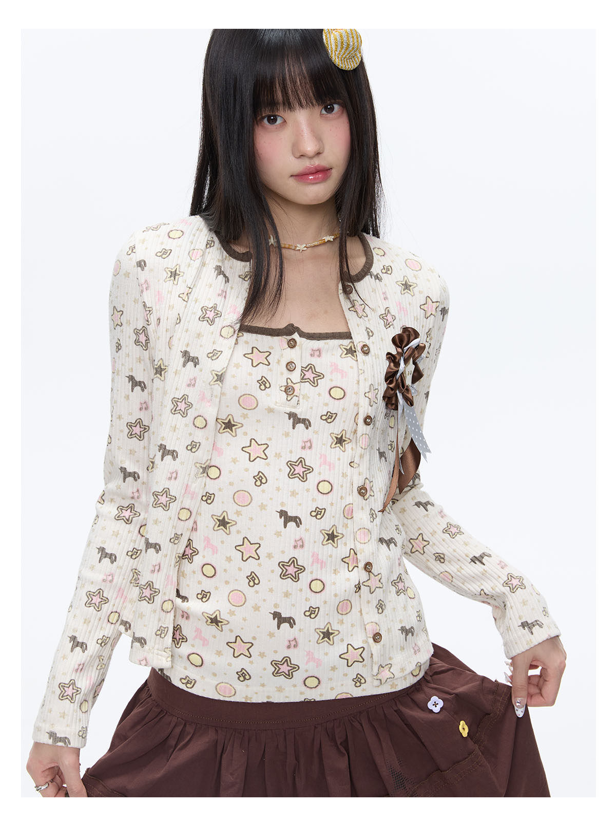 Four-leaf clover rhinestone striped camisole top and cardigan set Lookbook