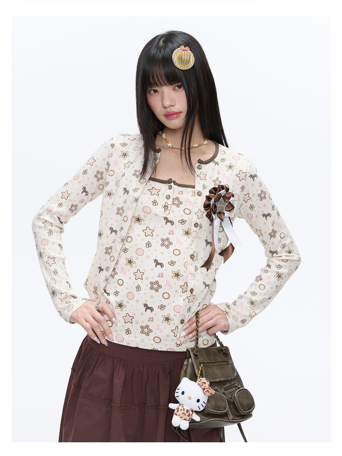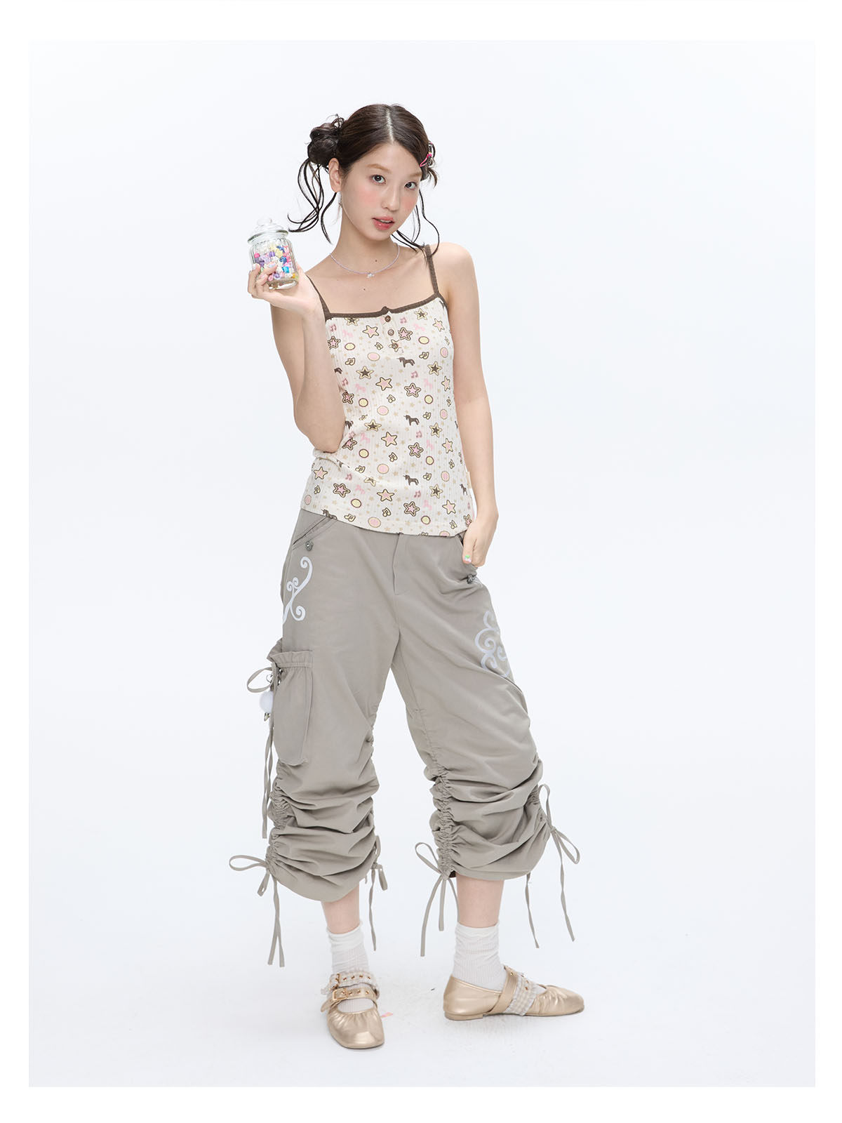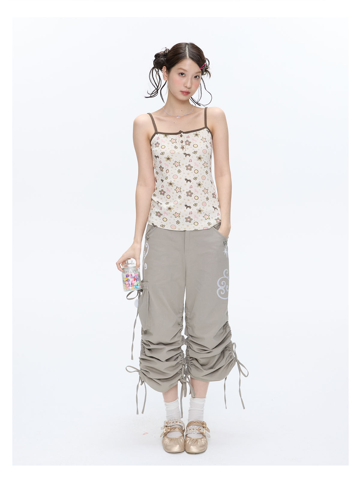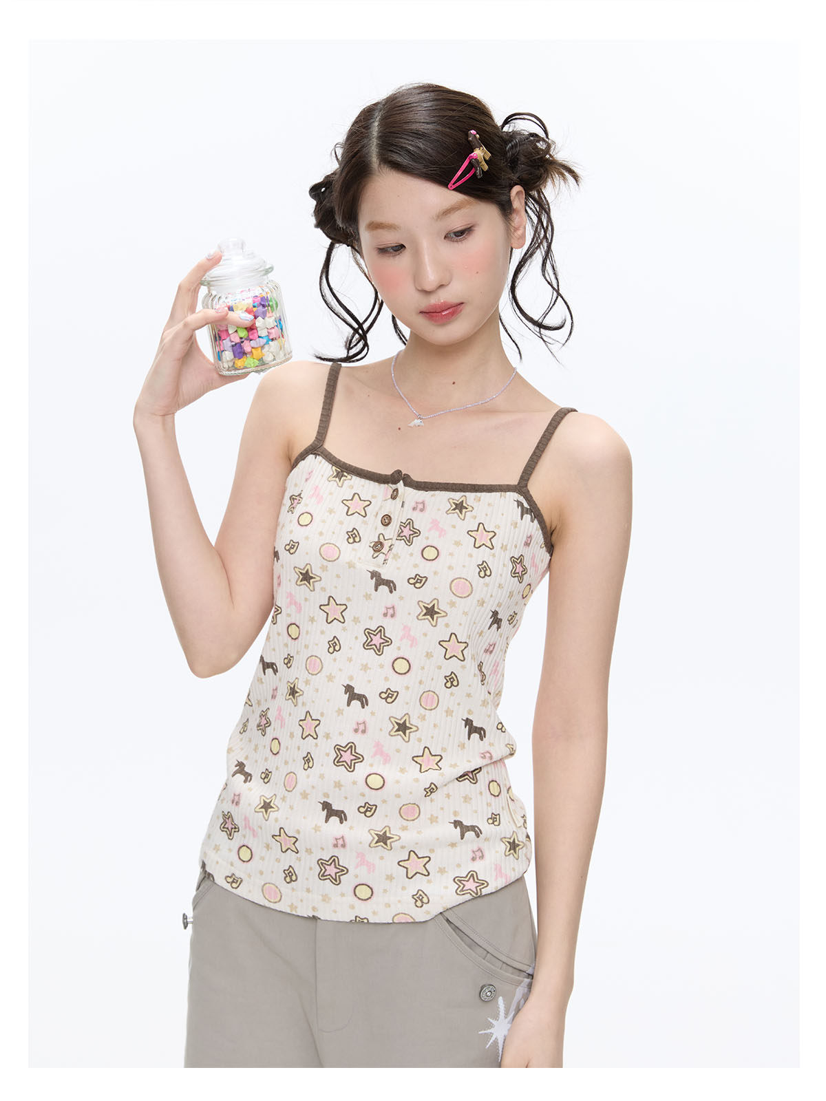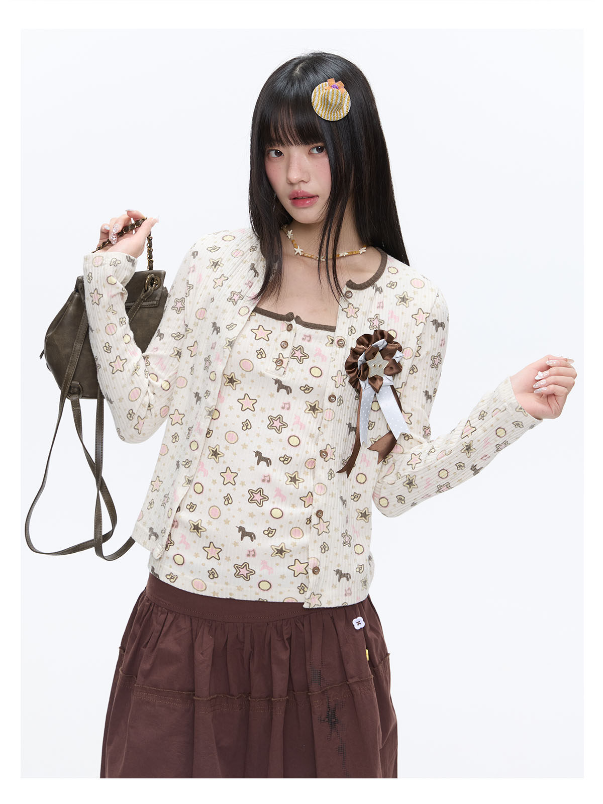 Four-leaf clover rhinestone striped camisole top and cardigan set Lookbook