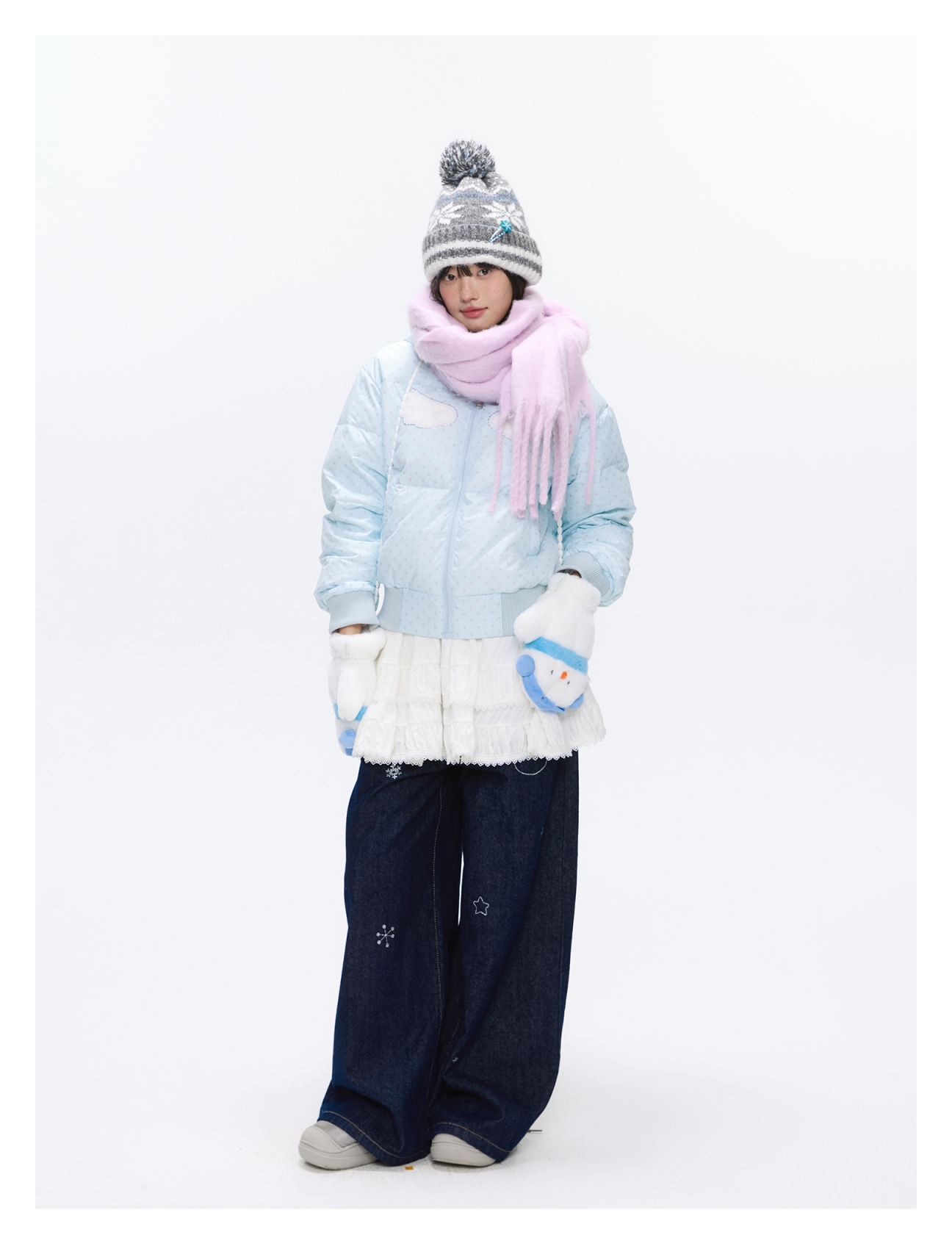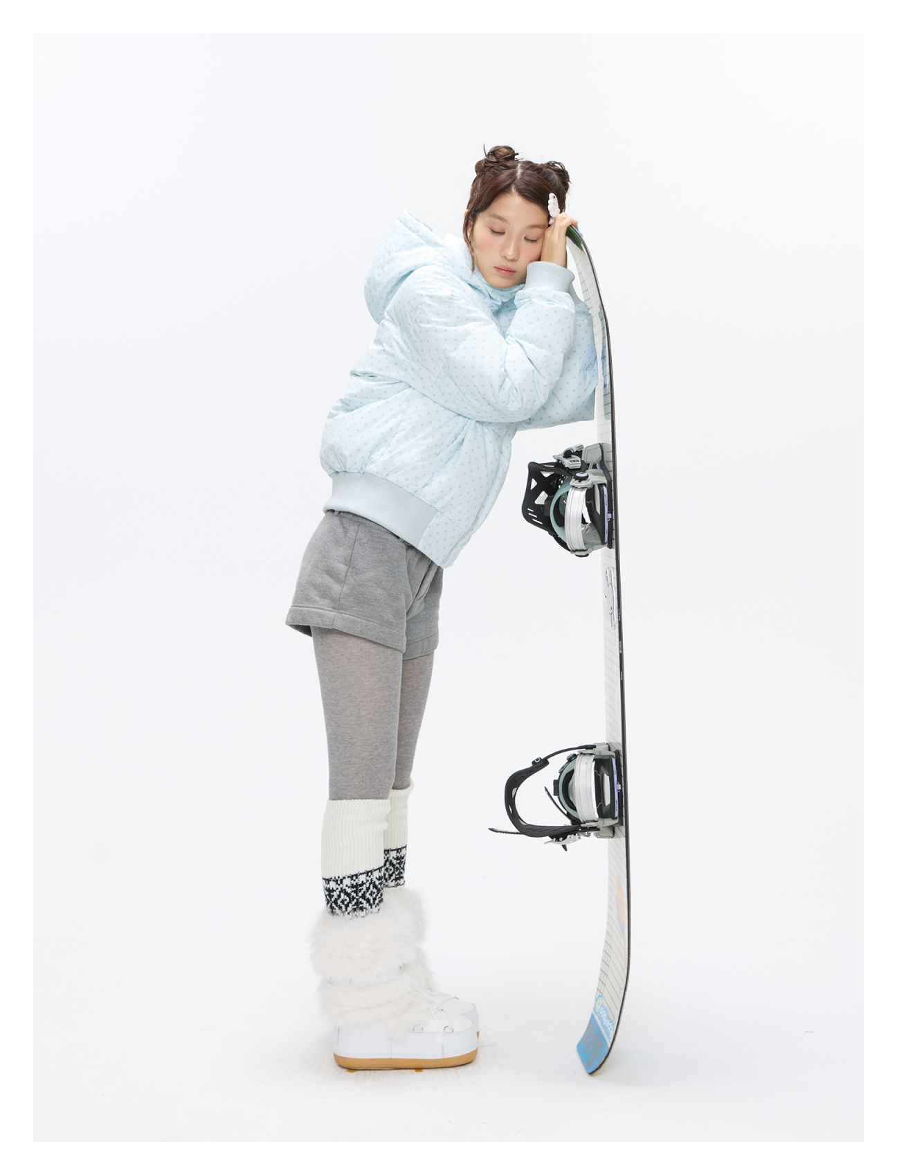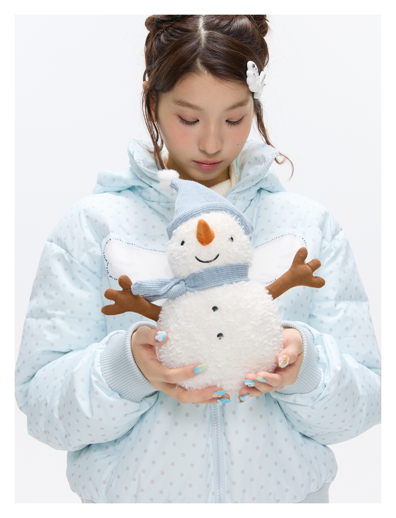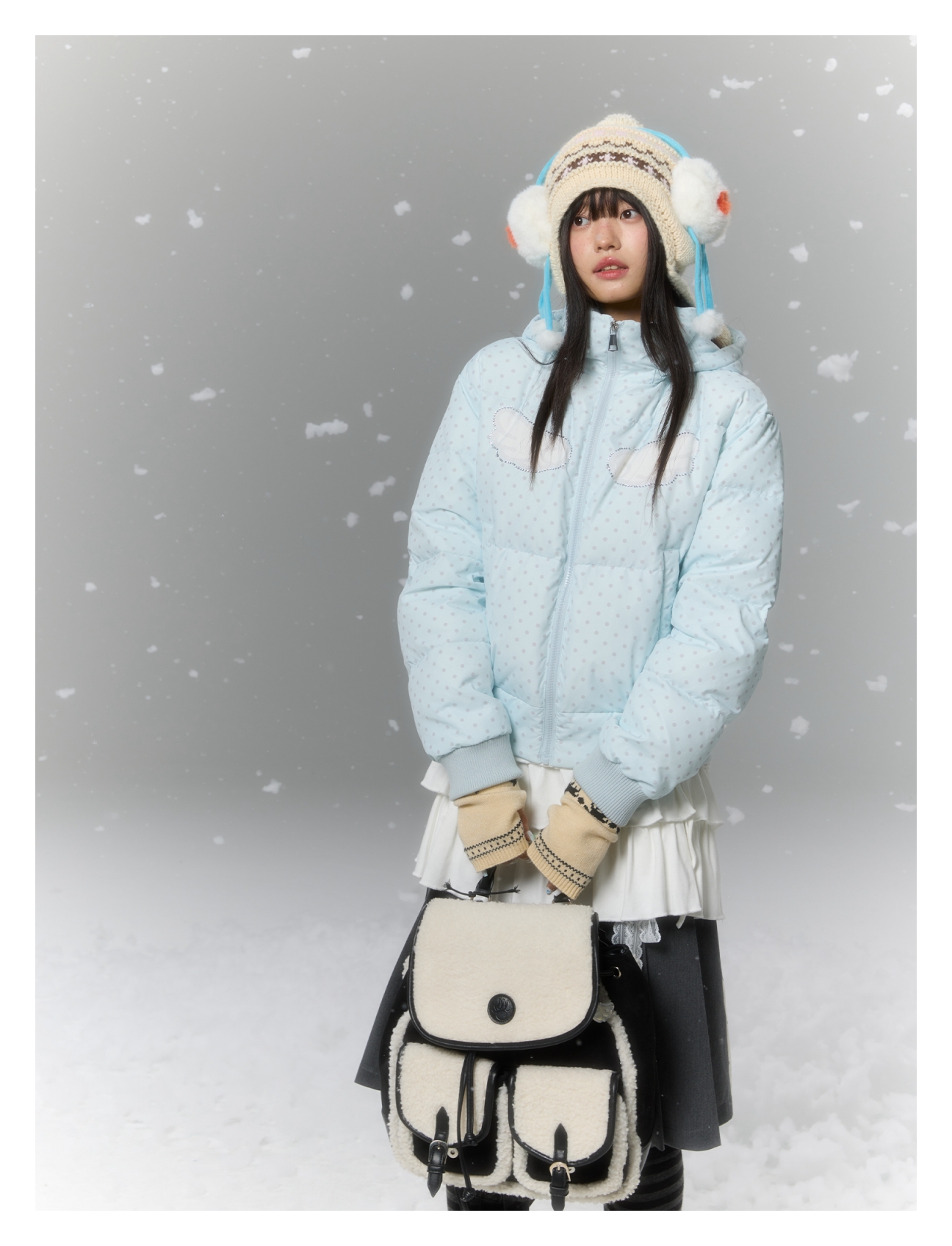 Baby blue polka dot down jacket with hood and warm duck filling Lookbook