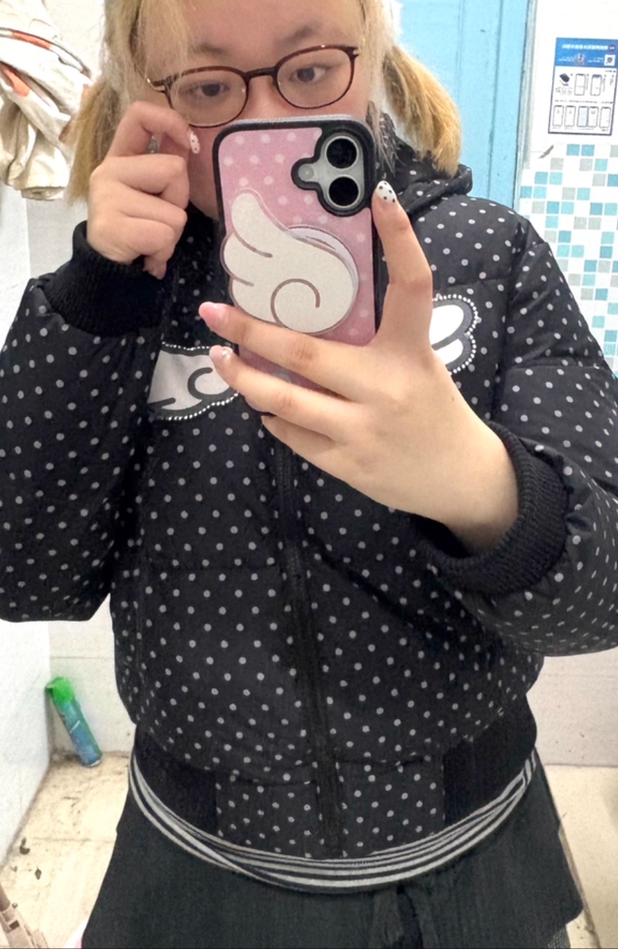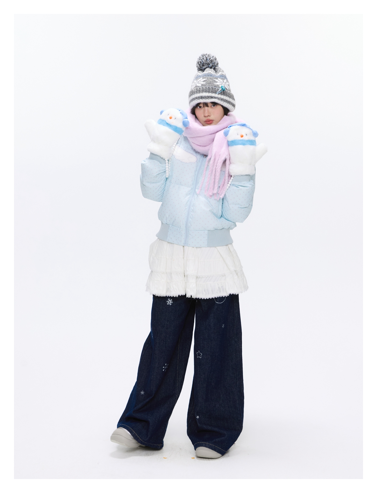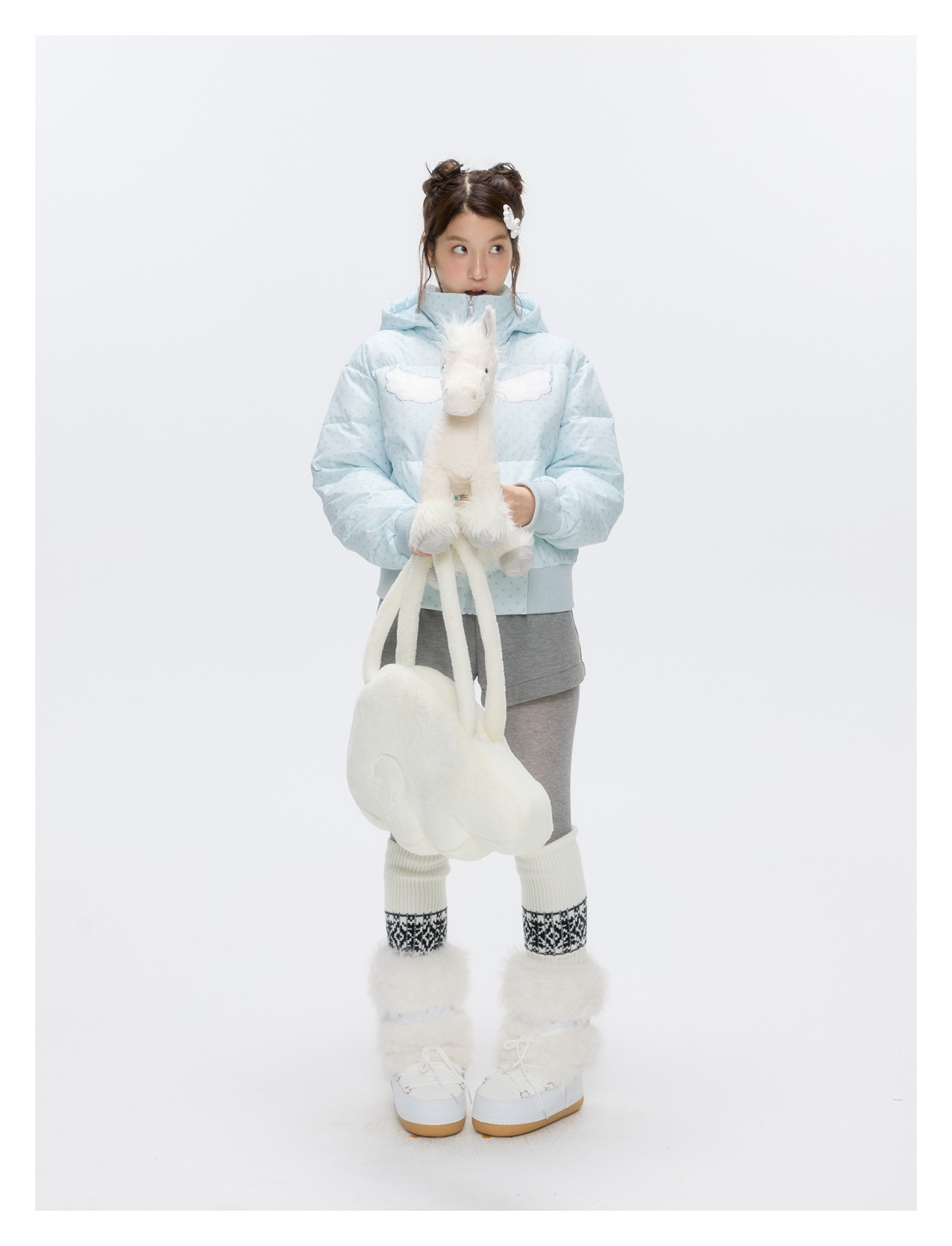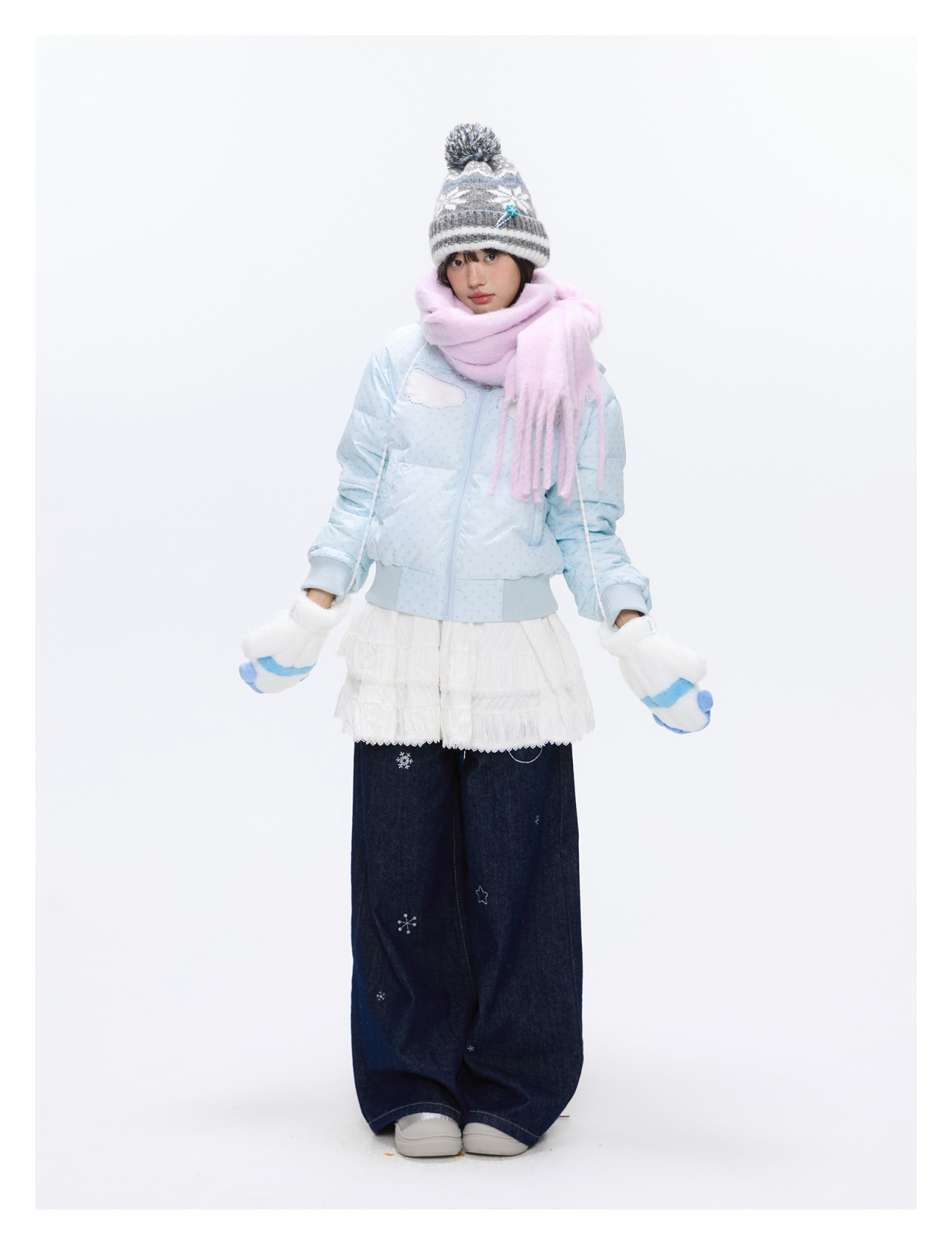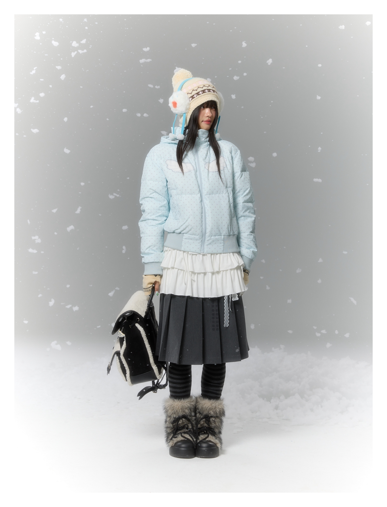 Baby blue polka dot down jacket with hood and warm duck filling Lookbook