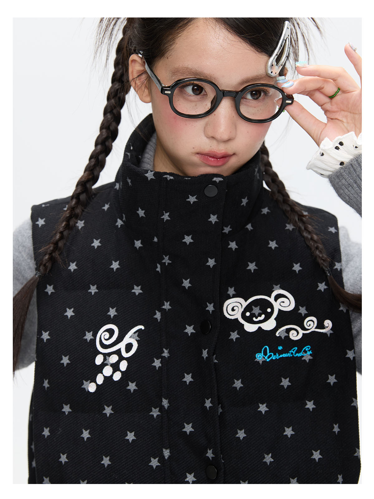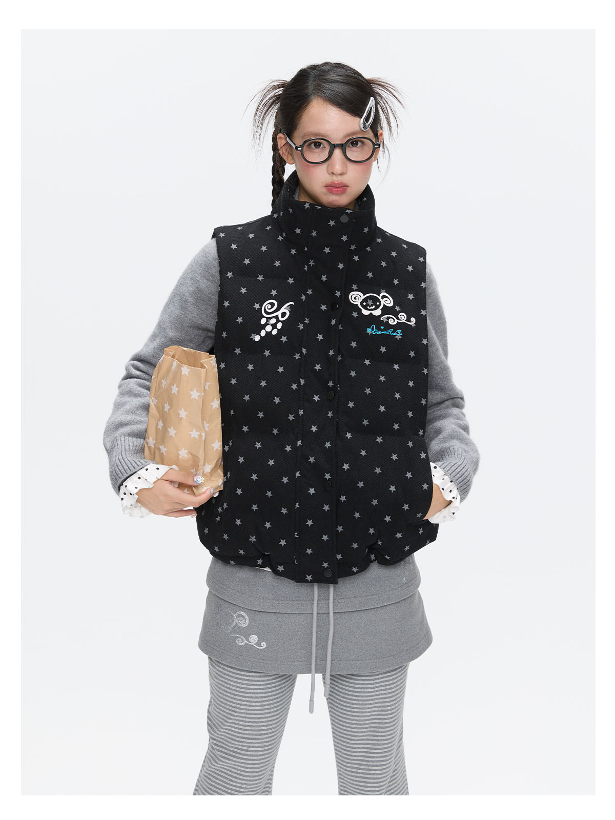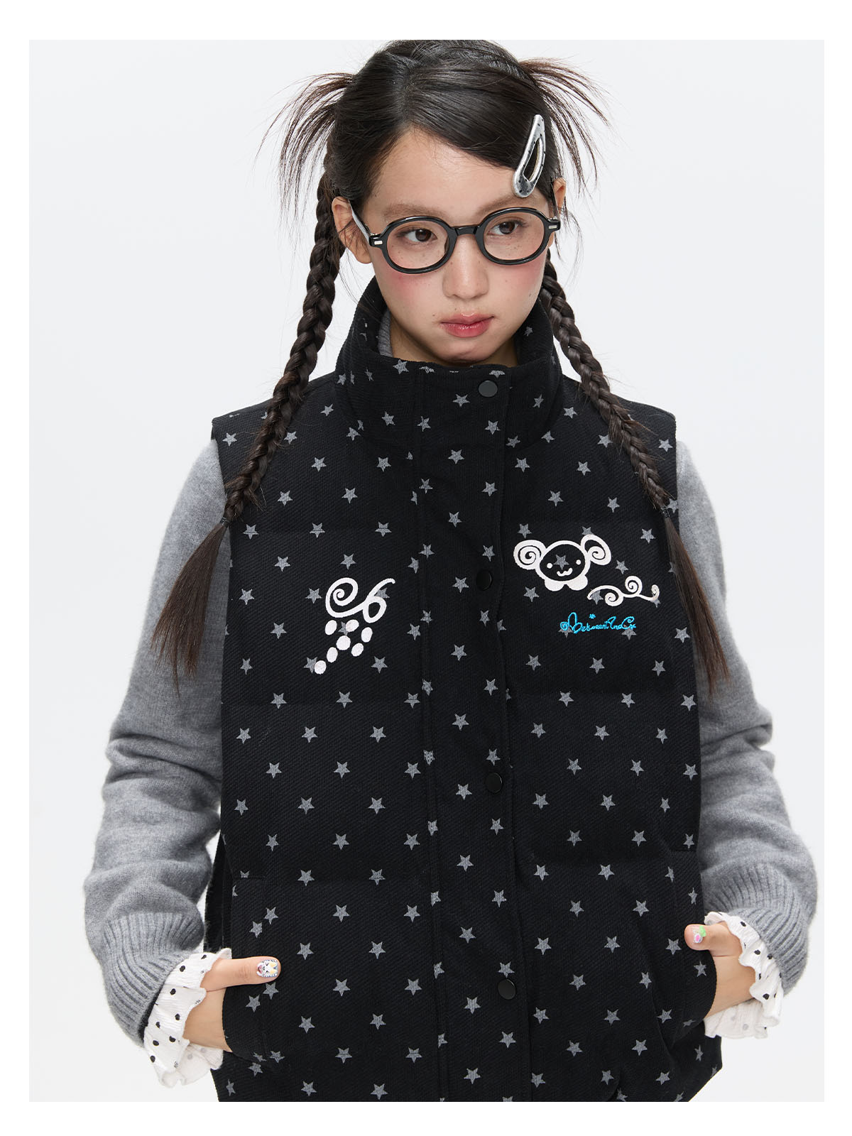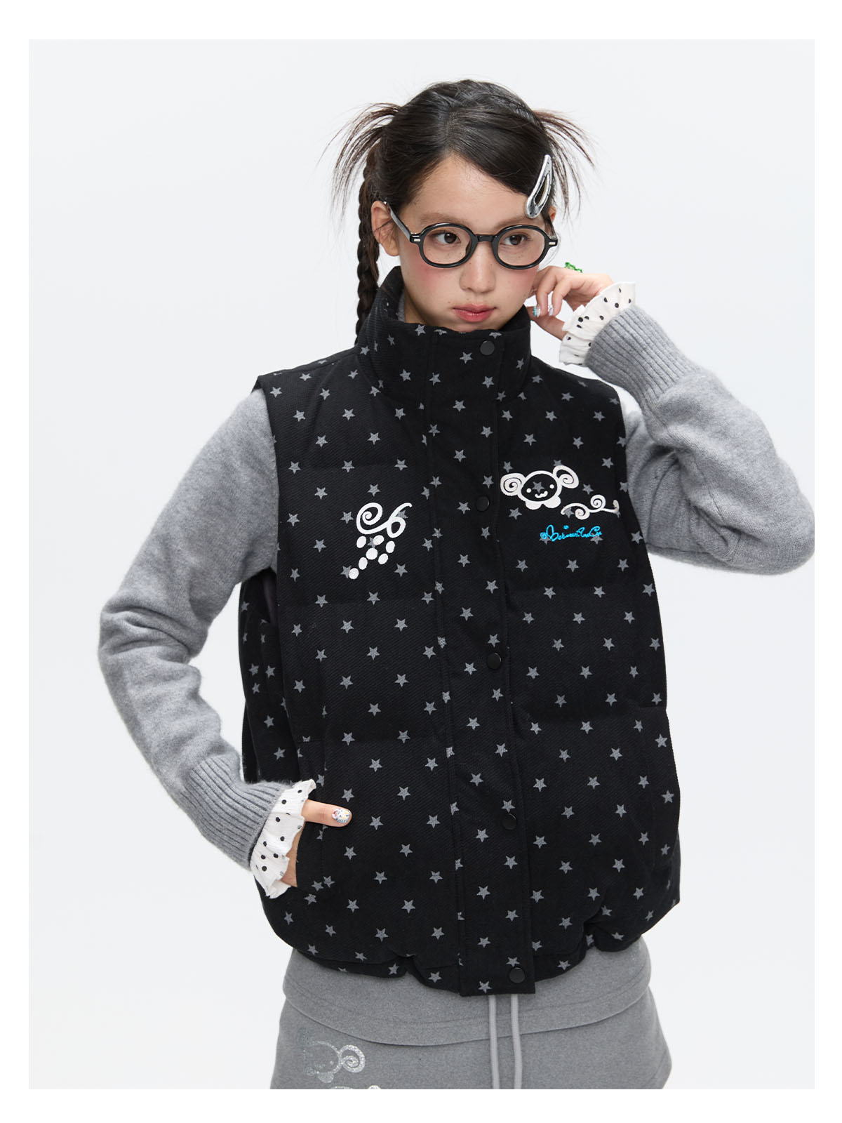 Black glitter star velvet vest with padded warm lining Lookbook