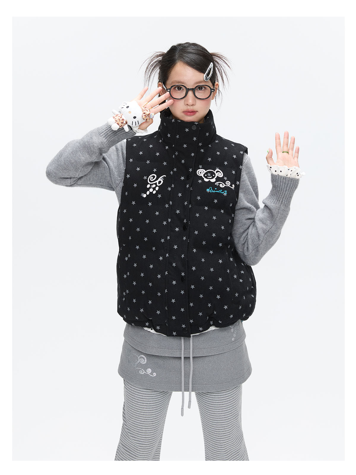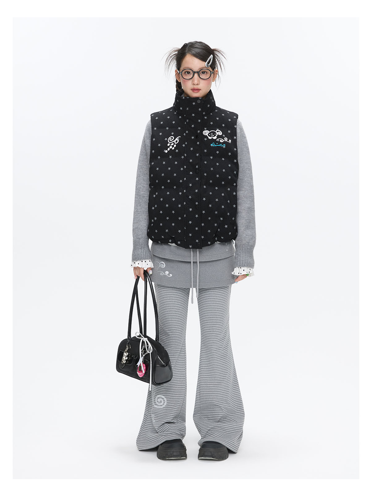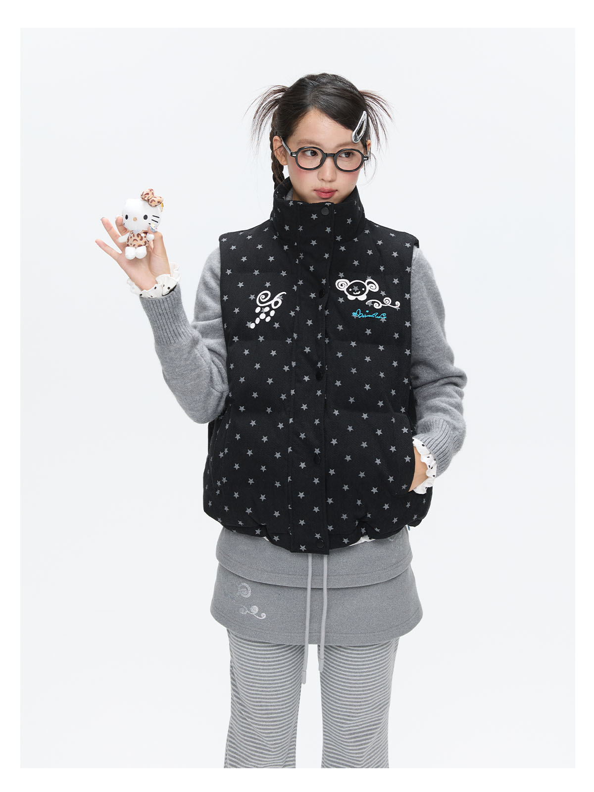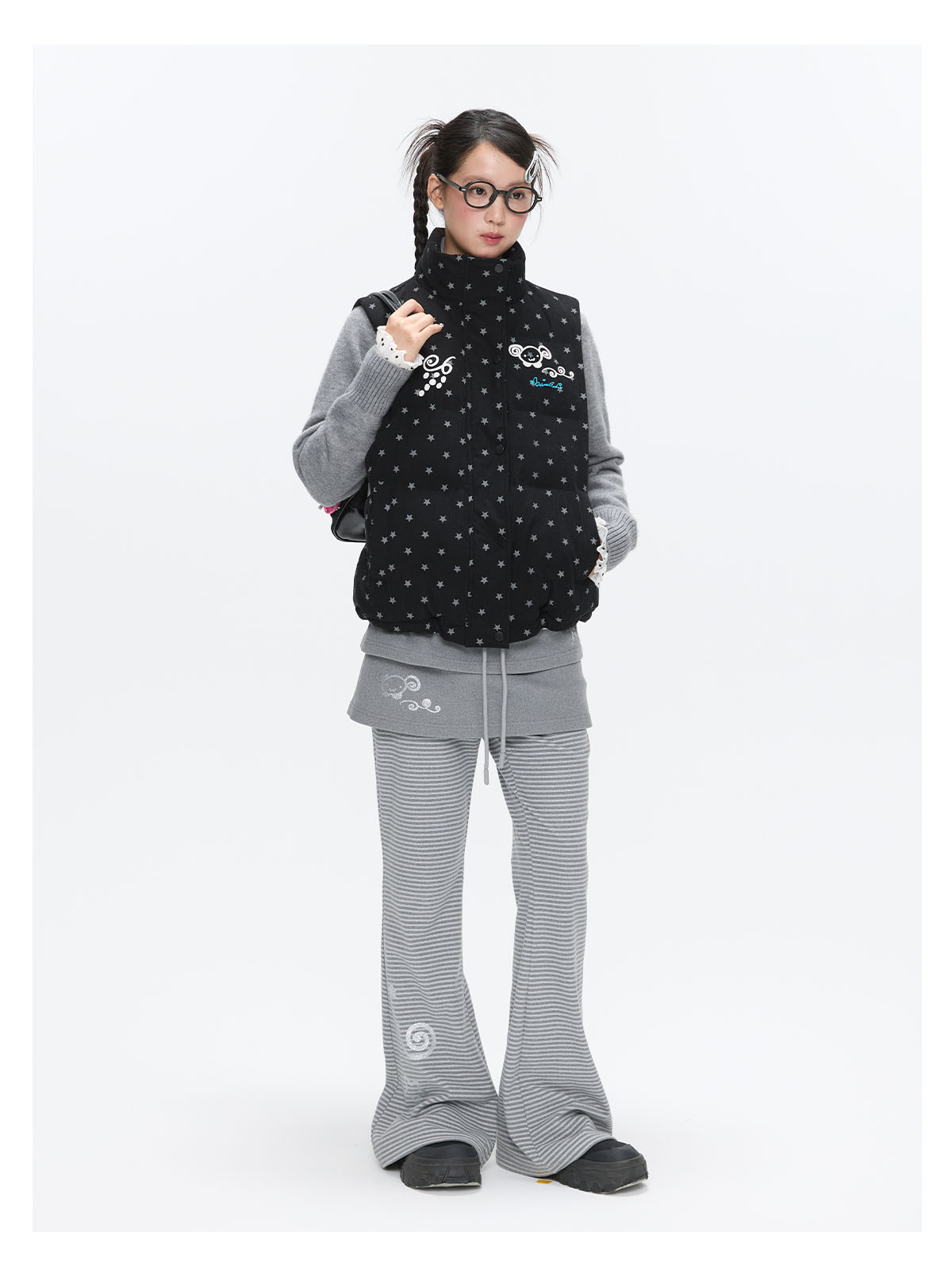 Black glitter star velvet vest with padded warm lining Lookbook