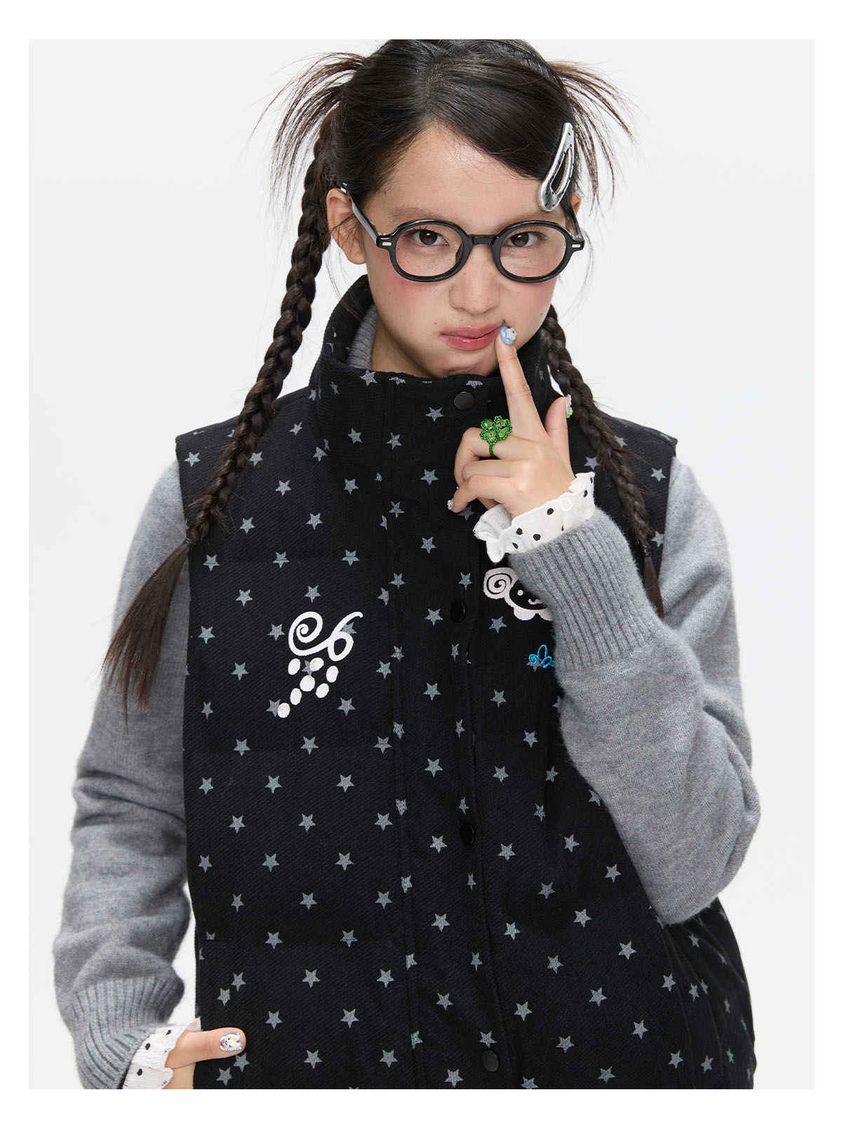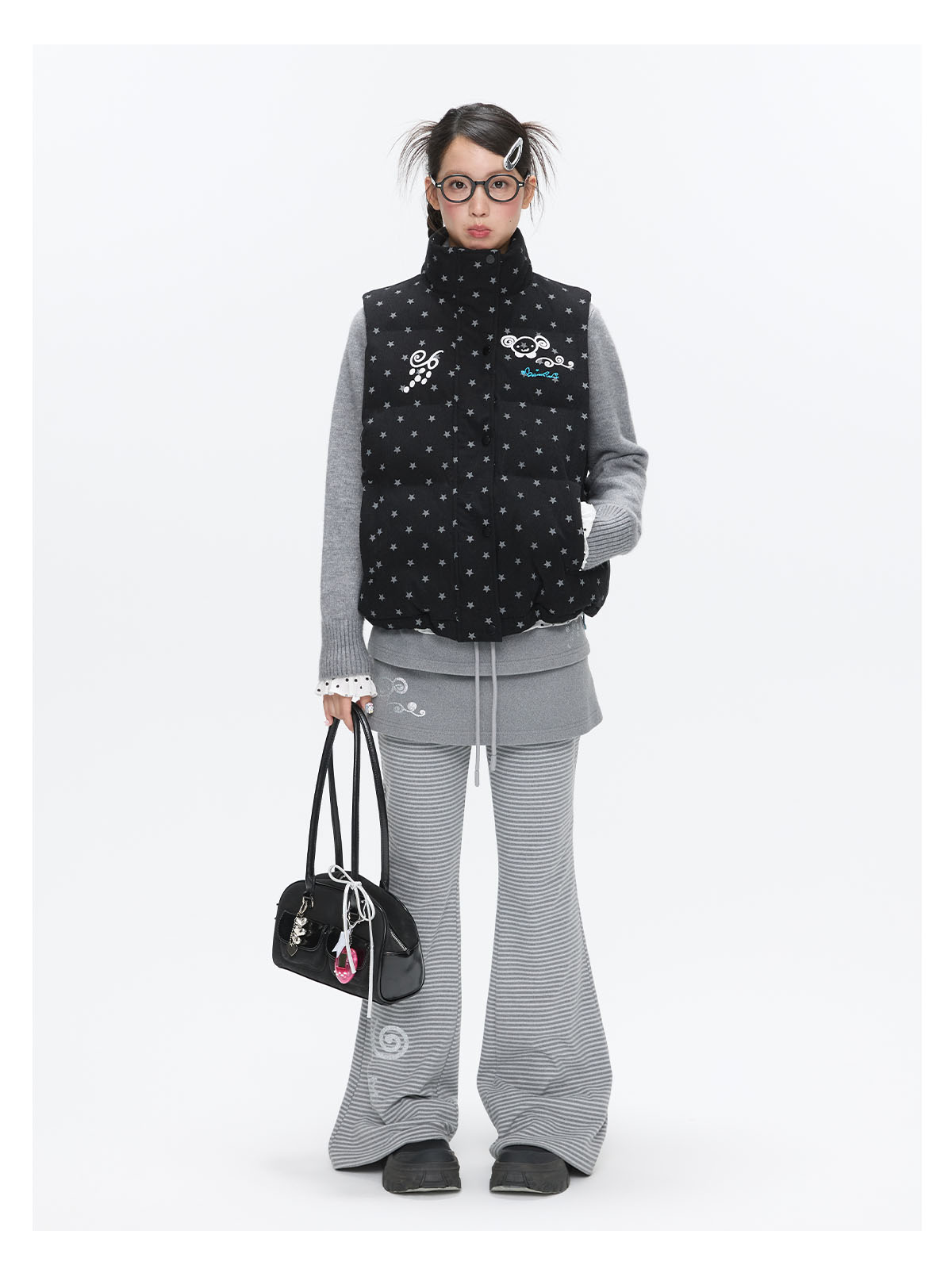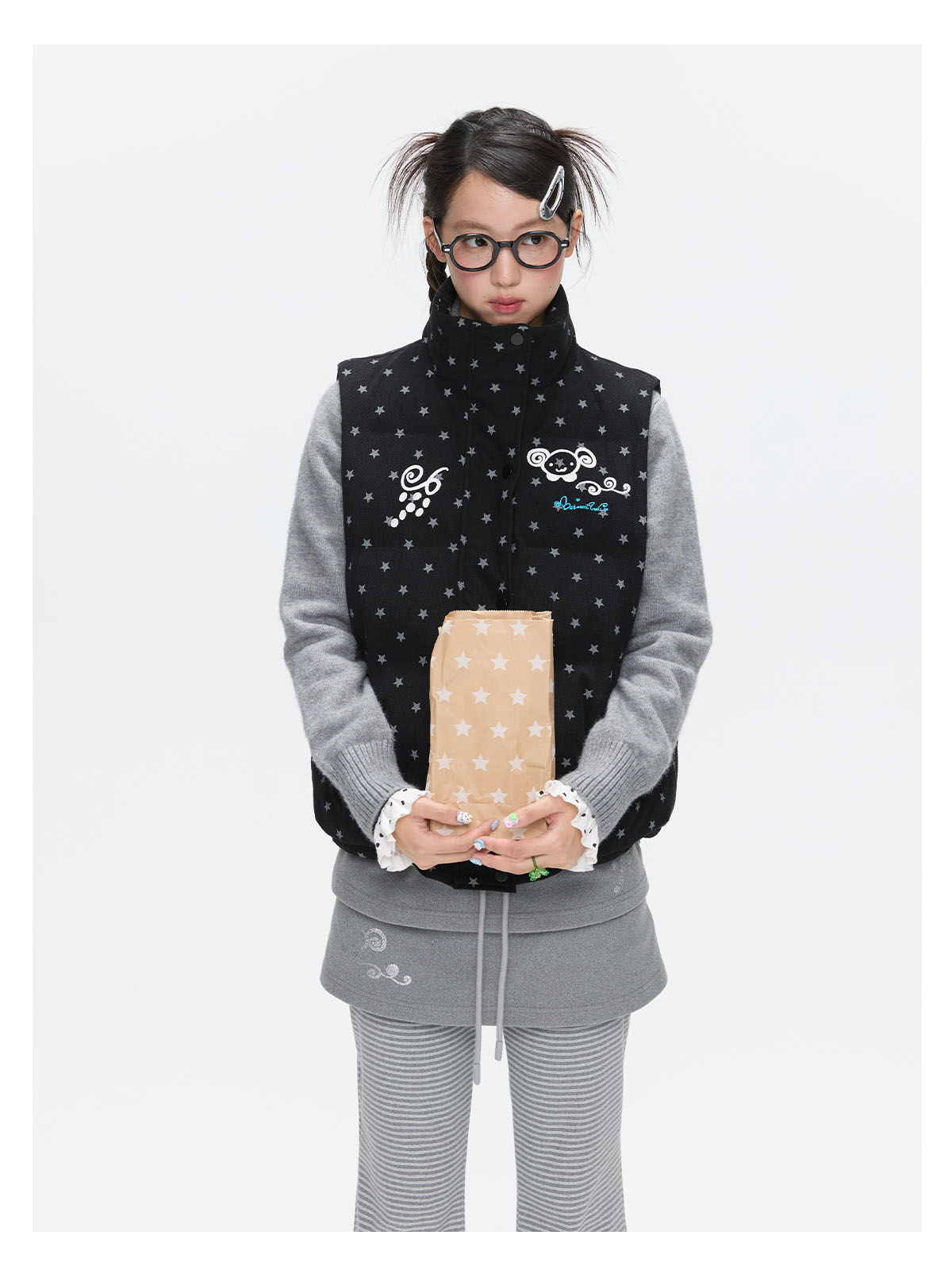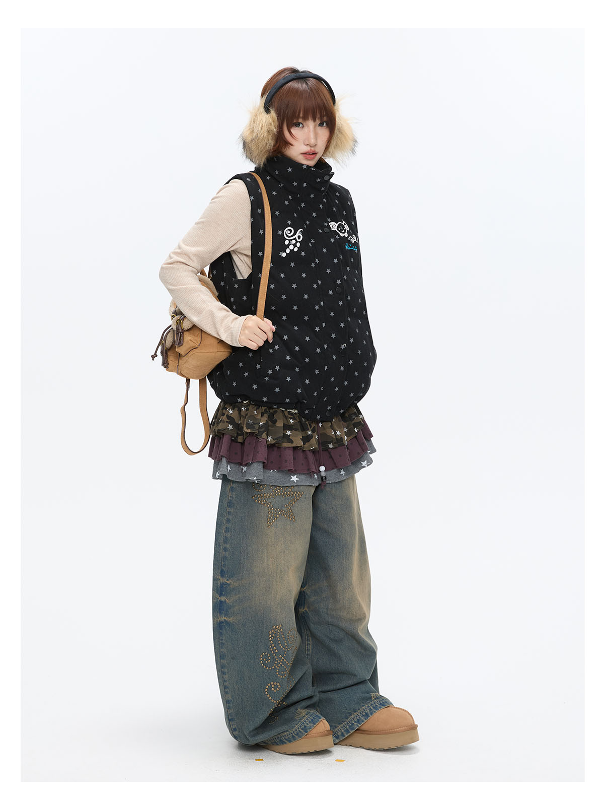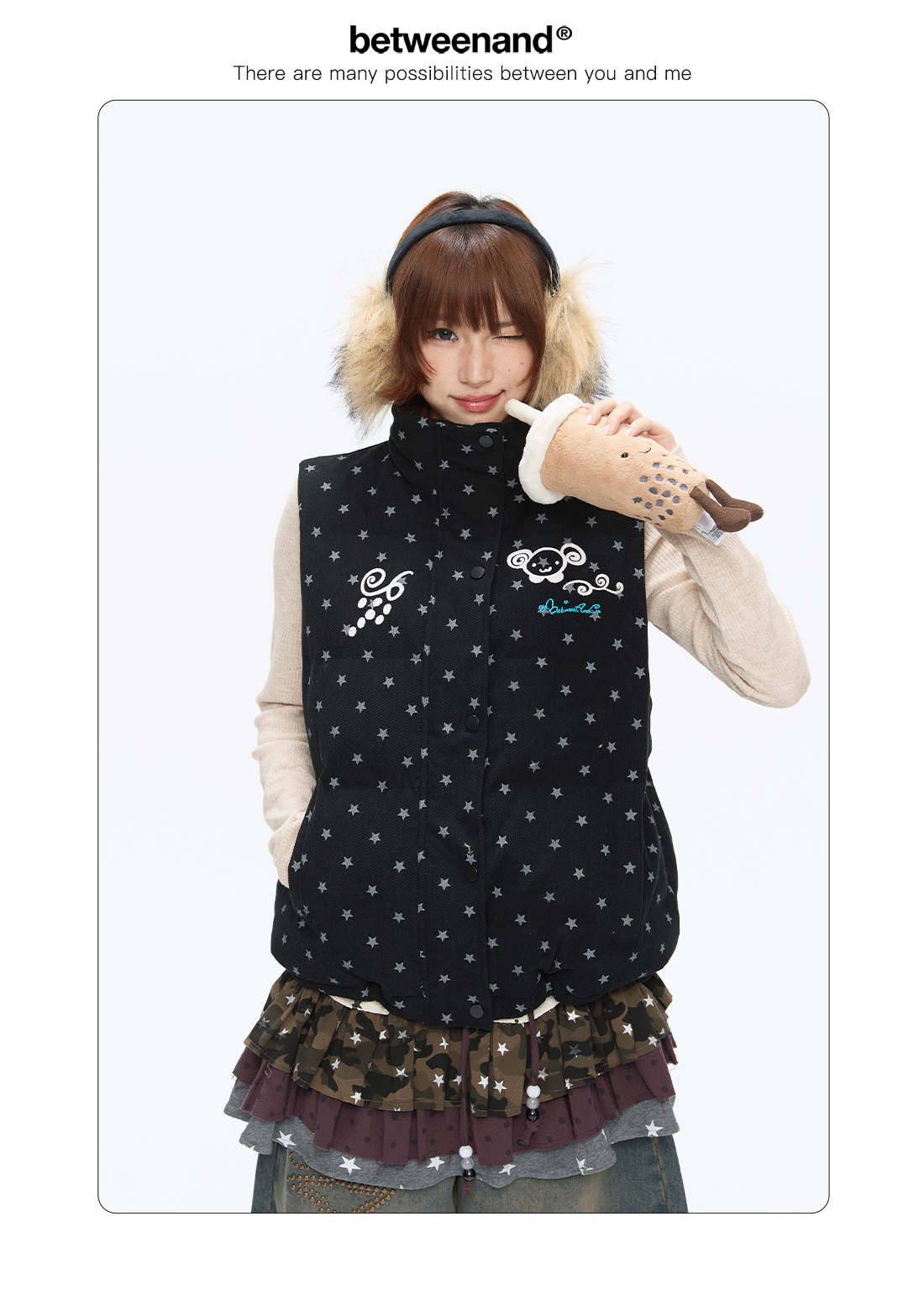 Black glitter star velvet vest with padded warm lining Lookbook
