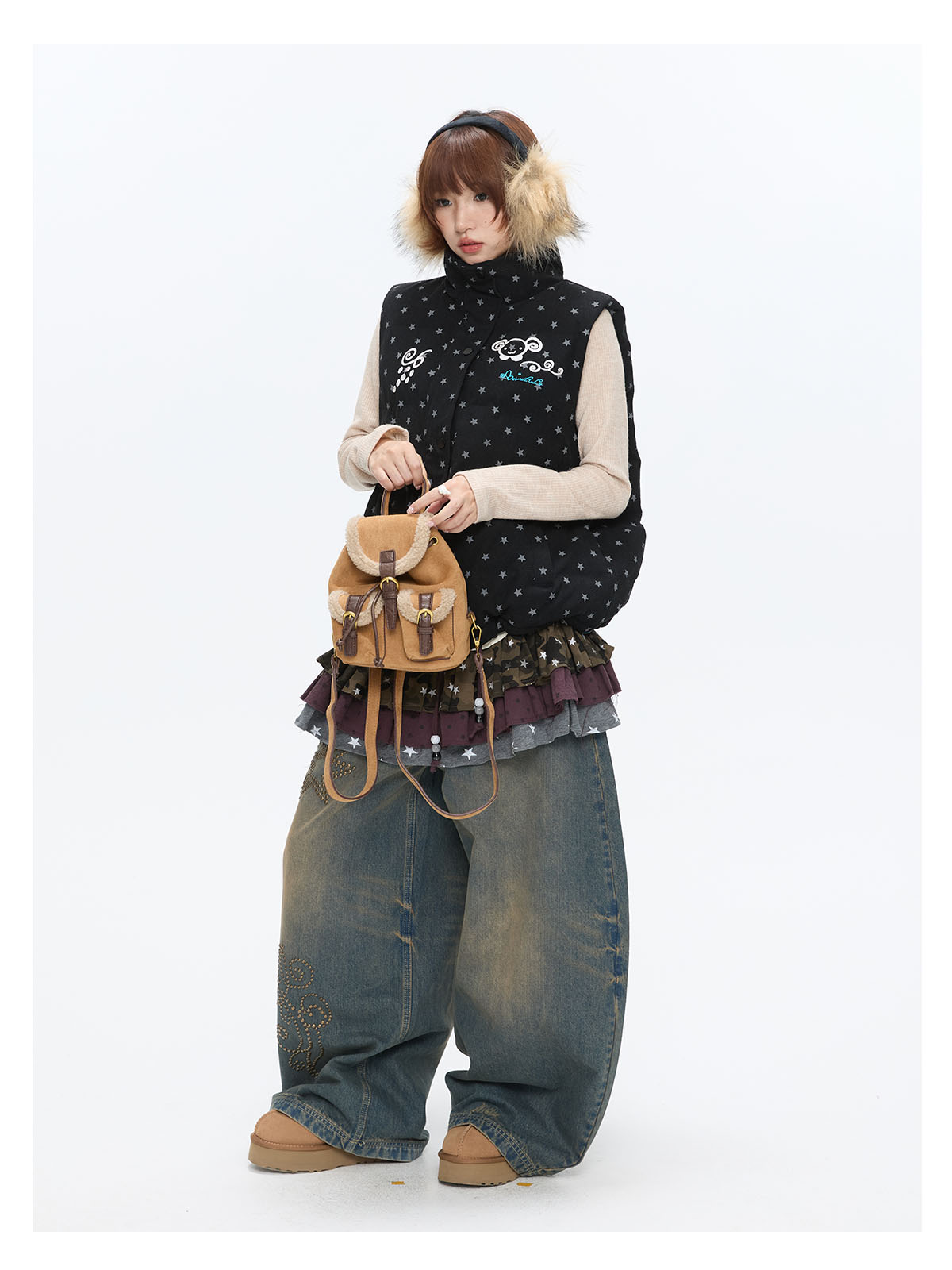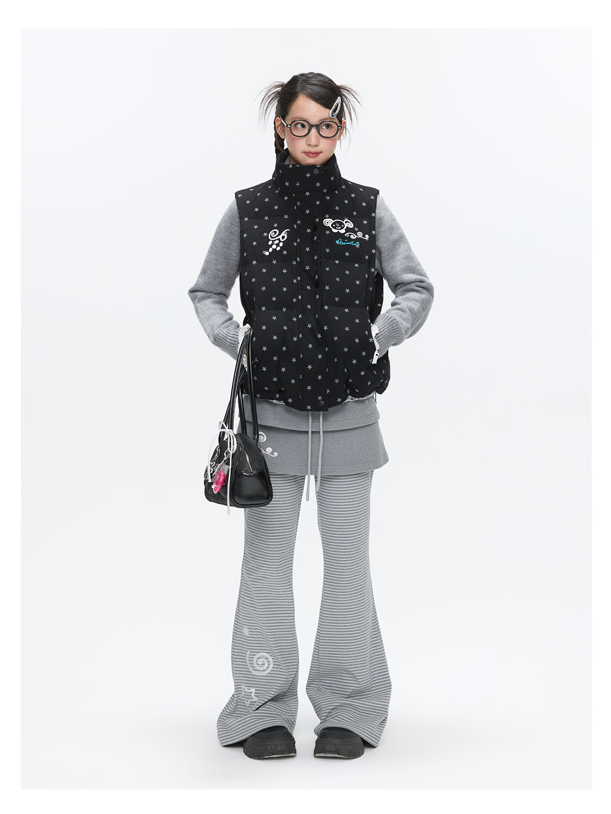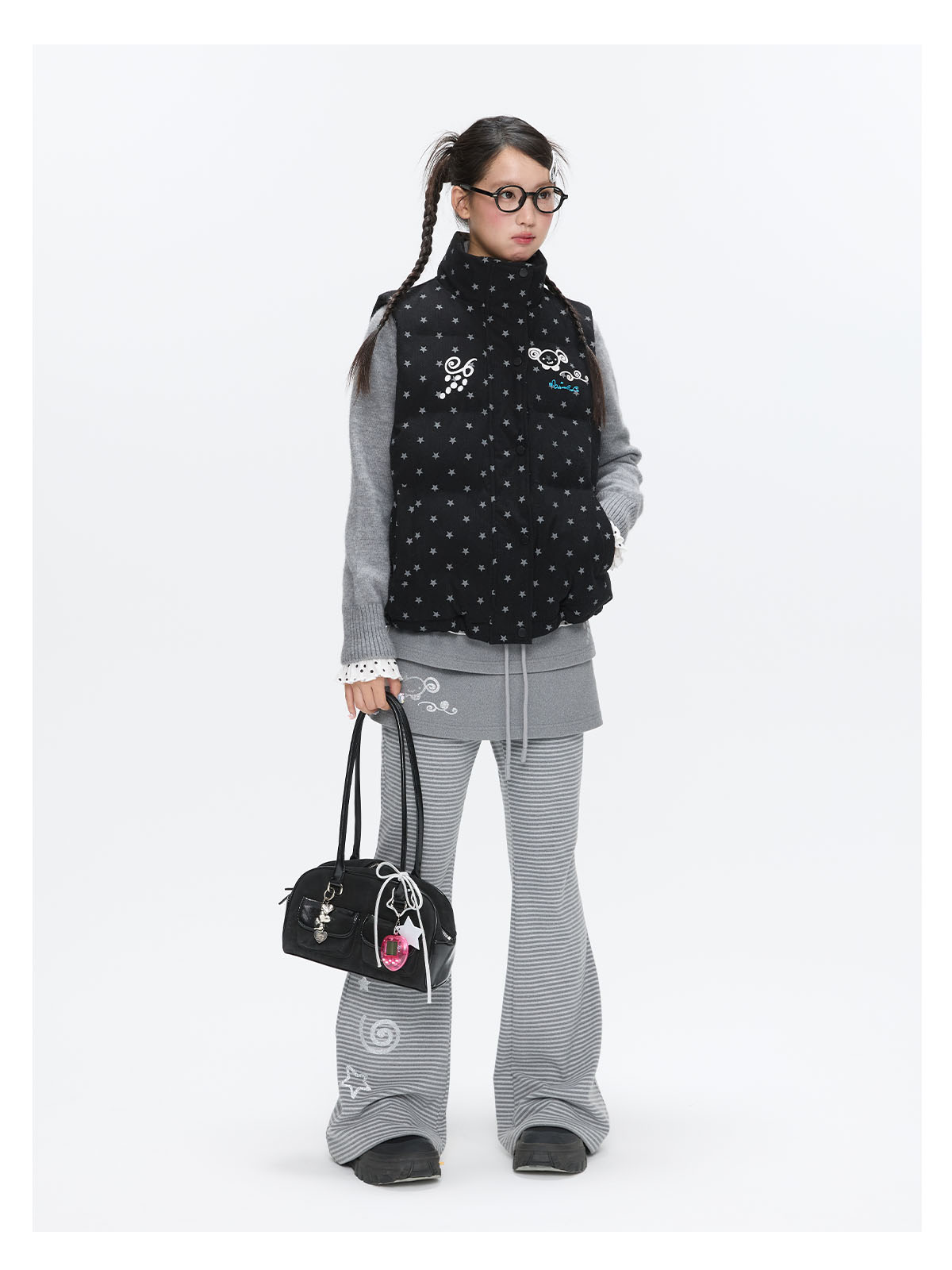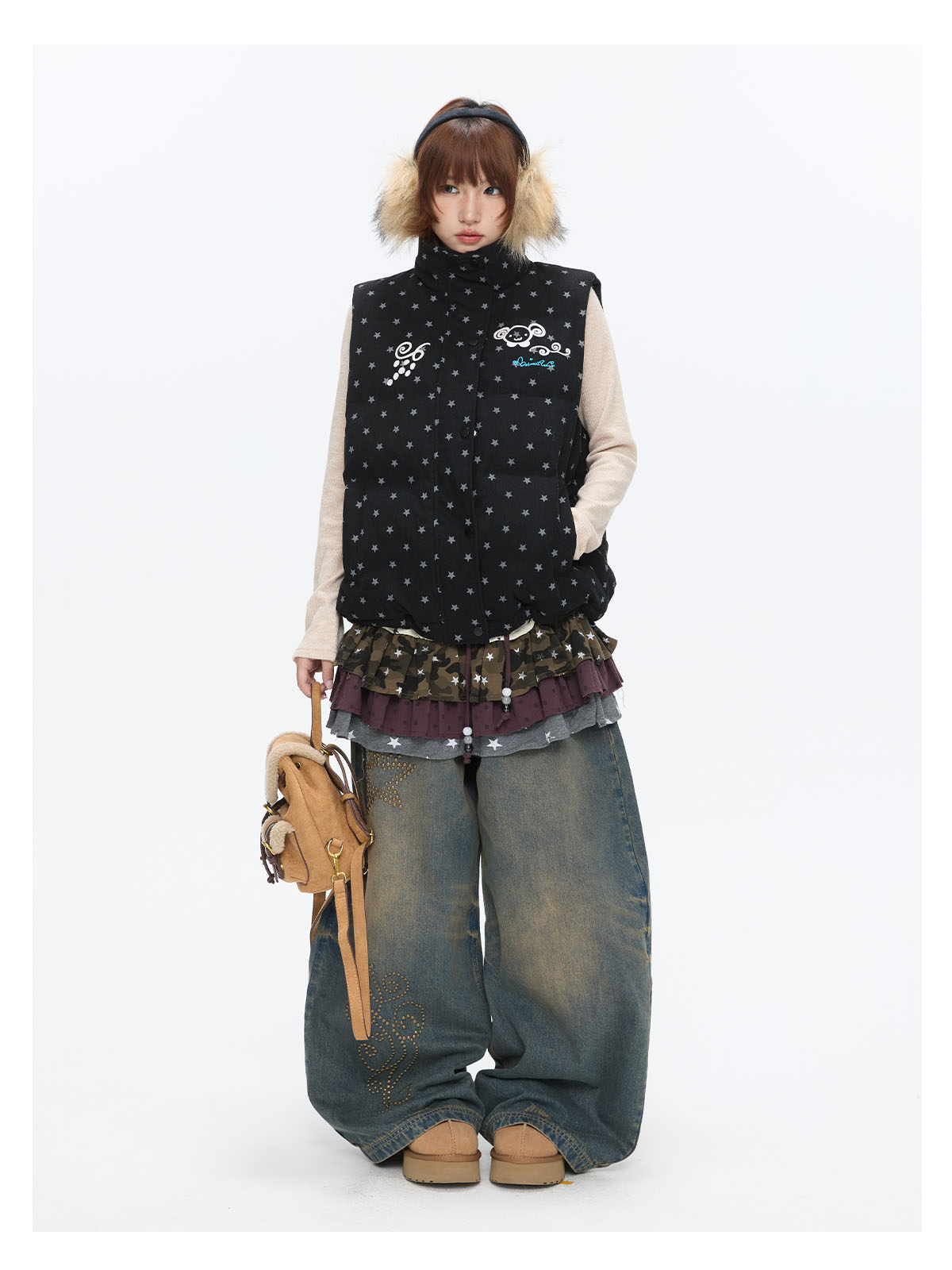 Black glitter star velvet vest with padded warm lining Lookbook