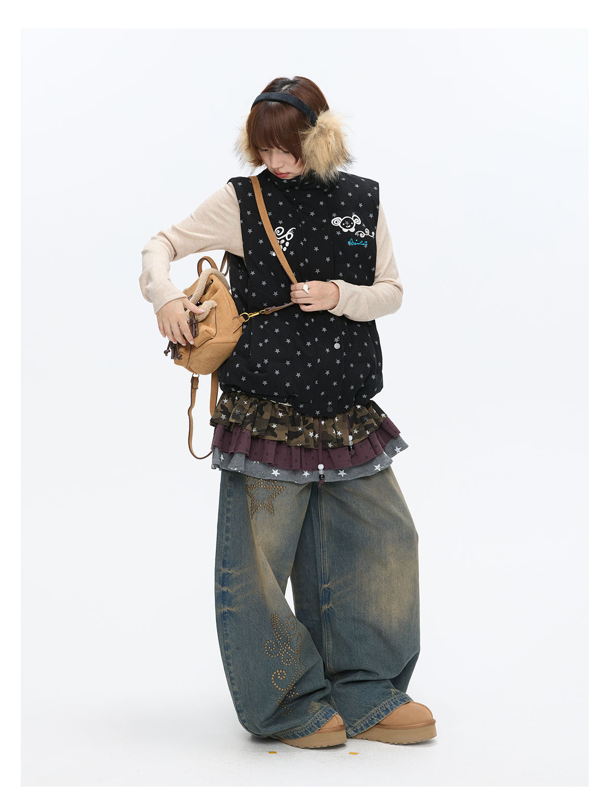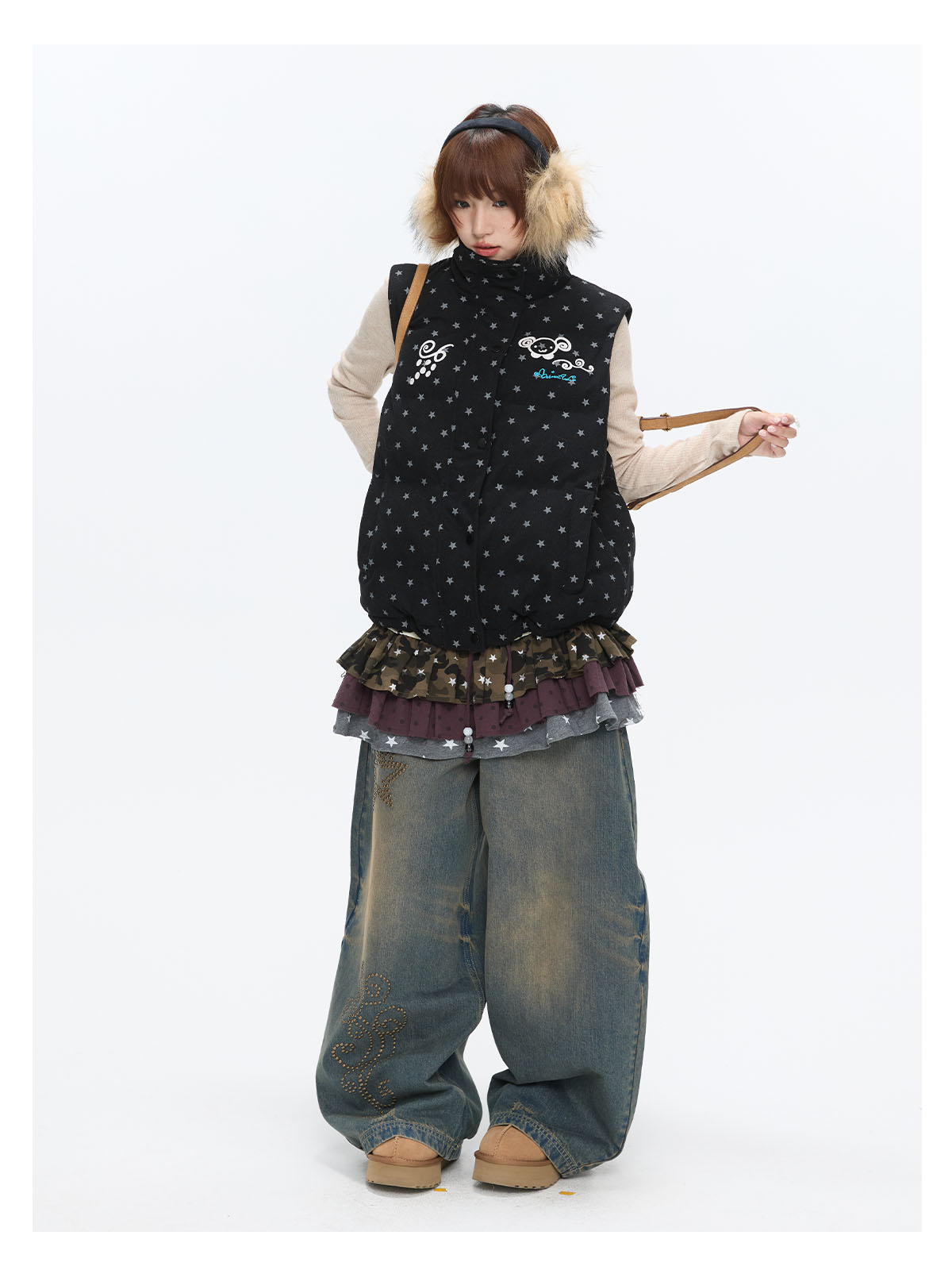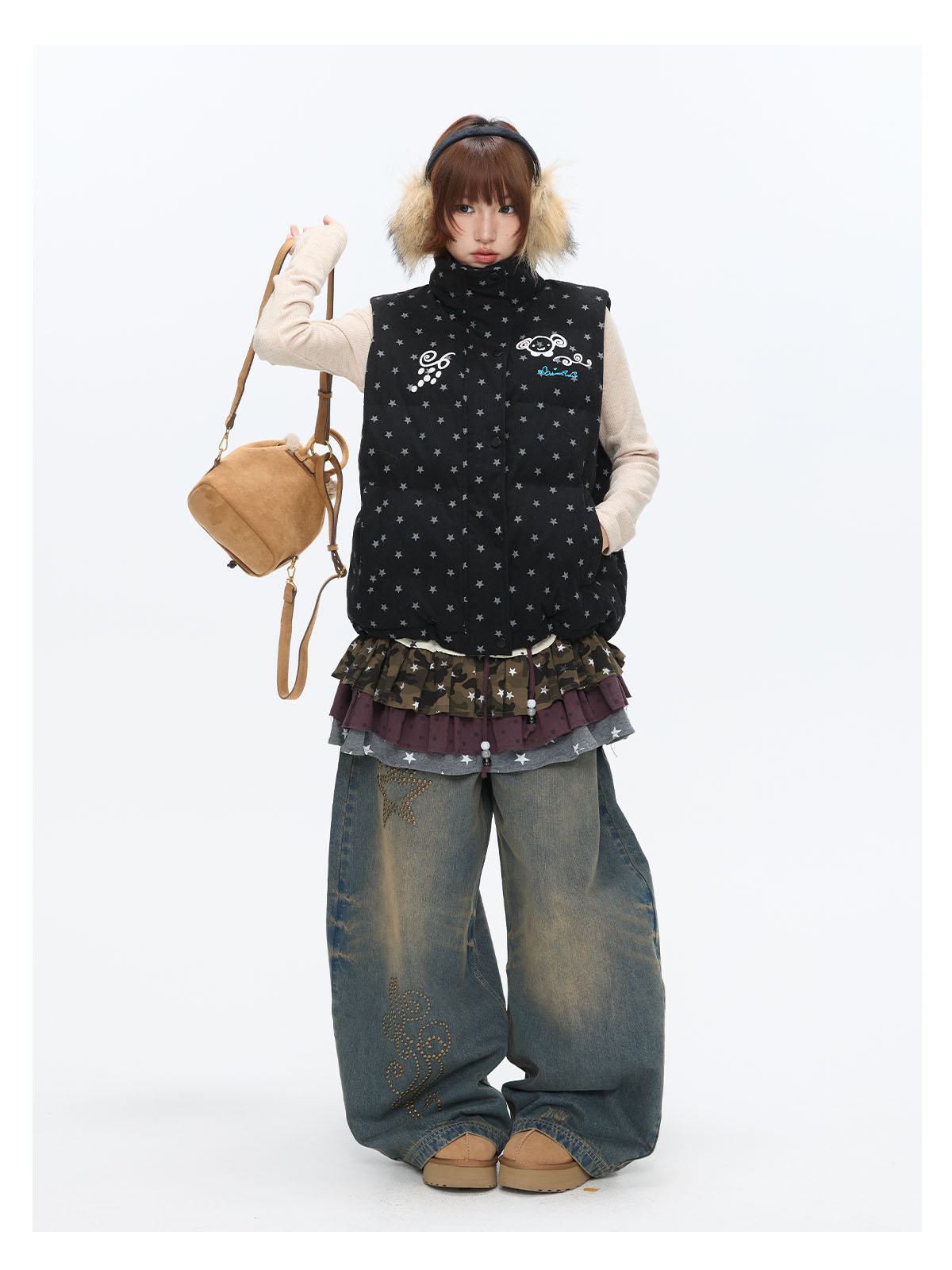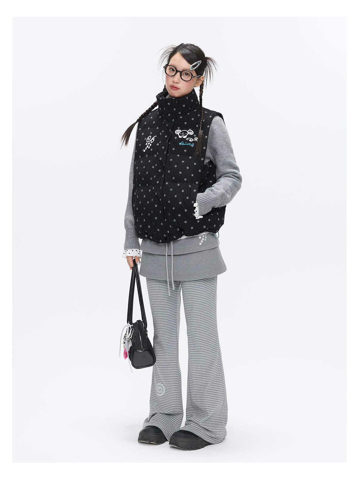 Black glitter star velvet vest with padded warm lining Lookbook