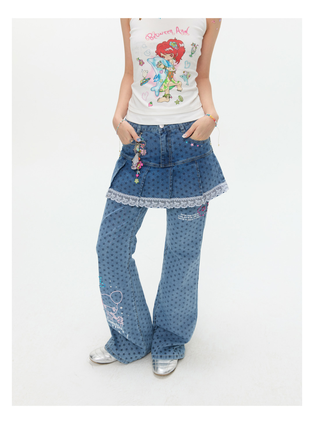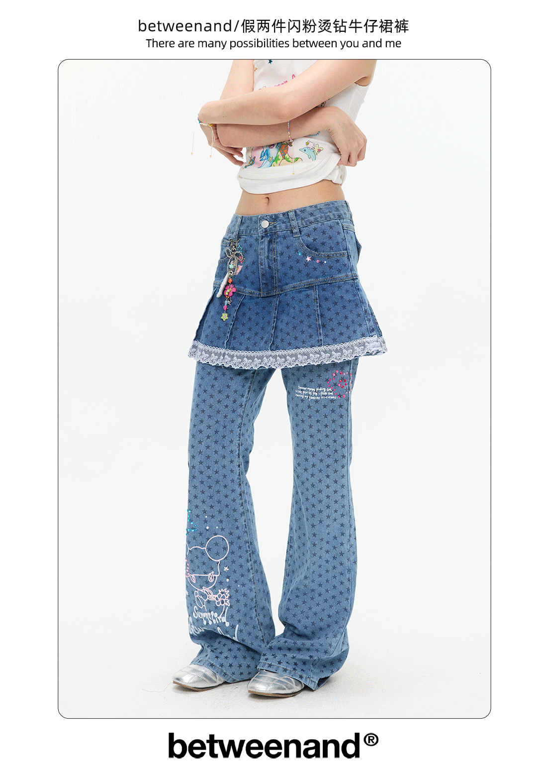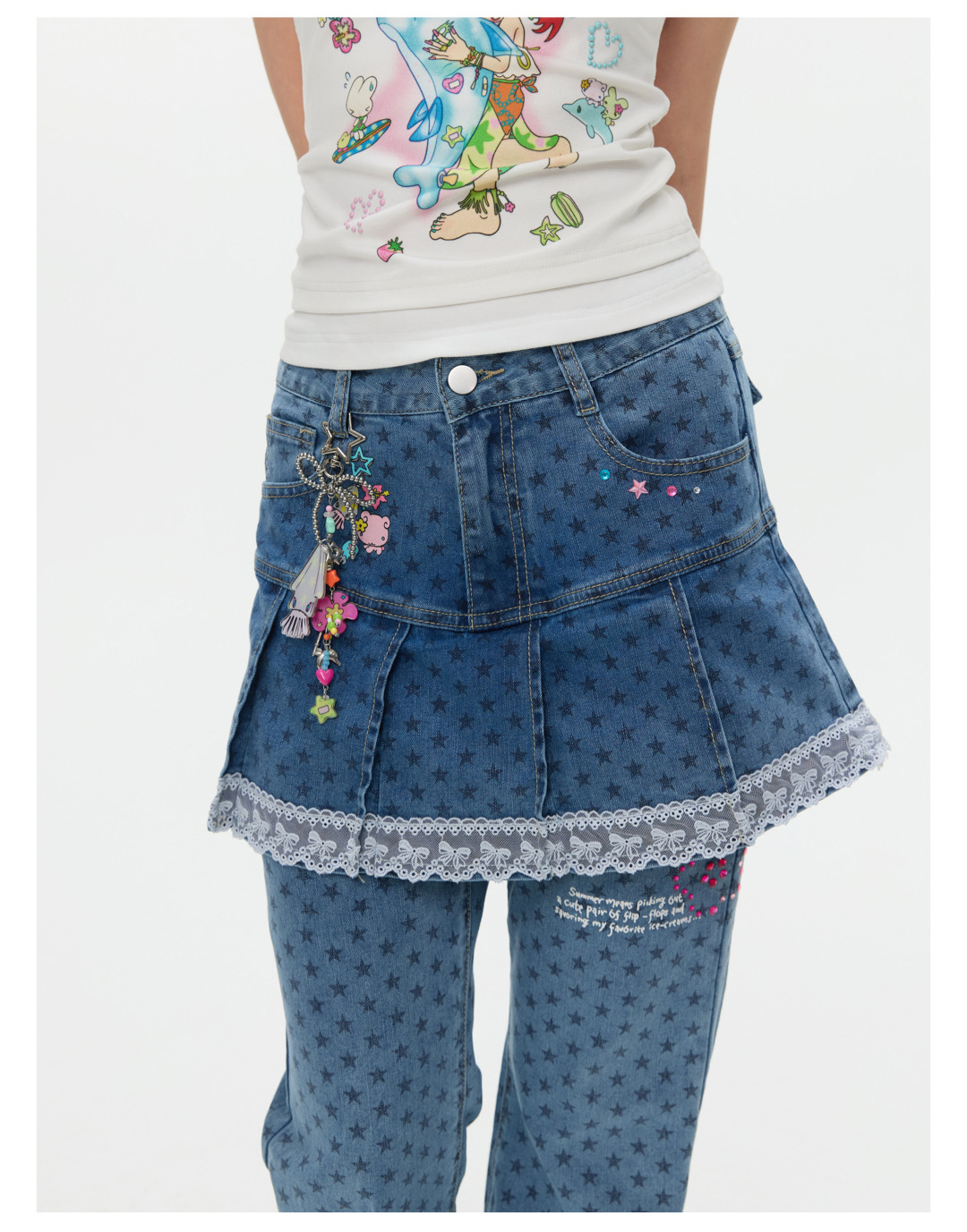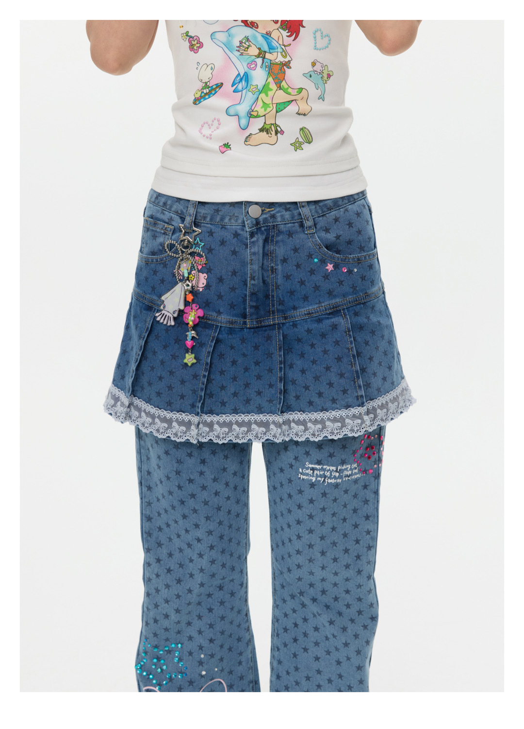 Denim star rhinestone flared skort with glitter two piece design Lookbook