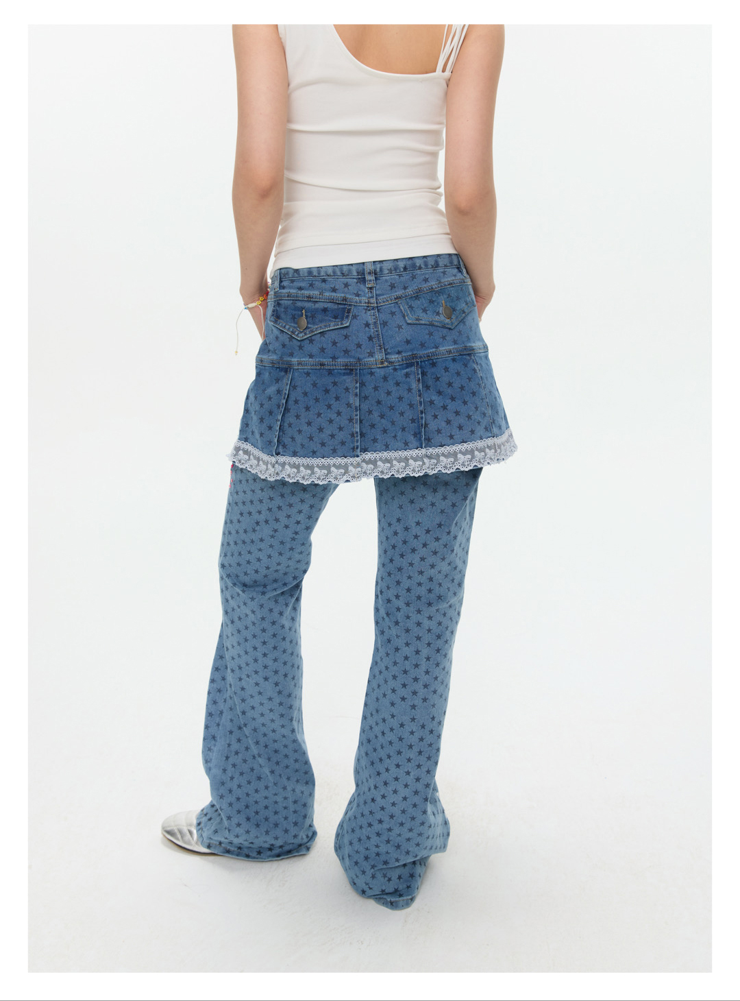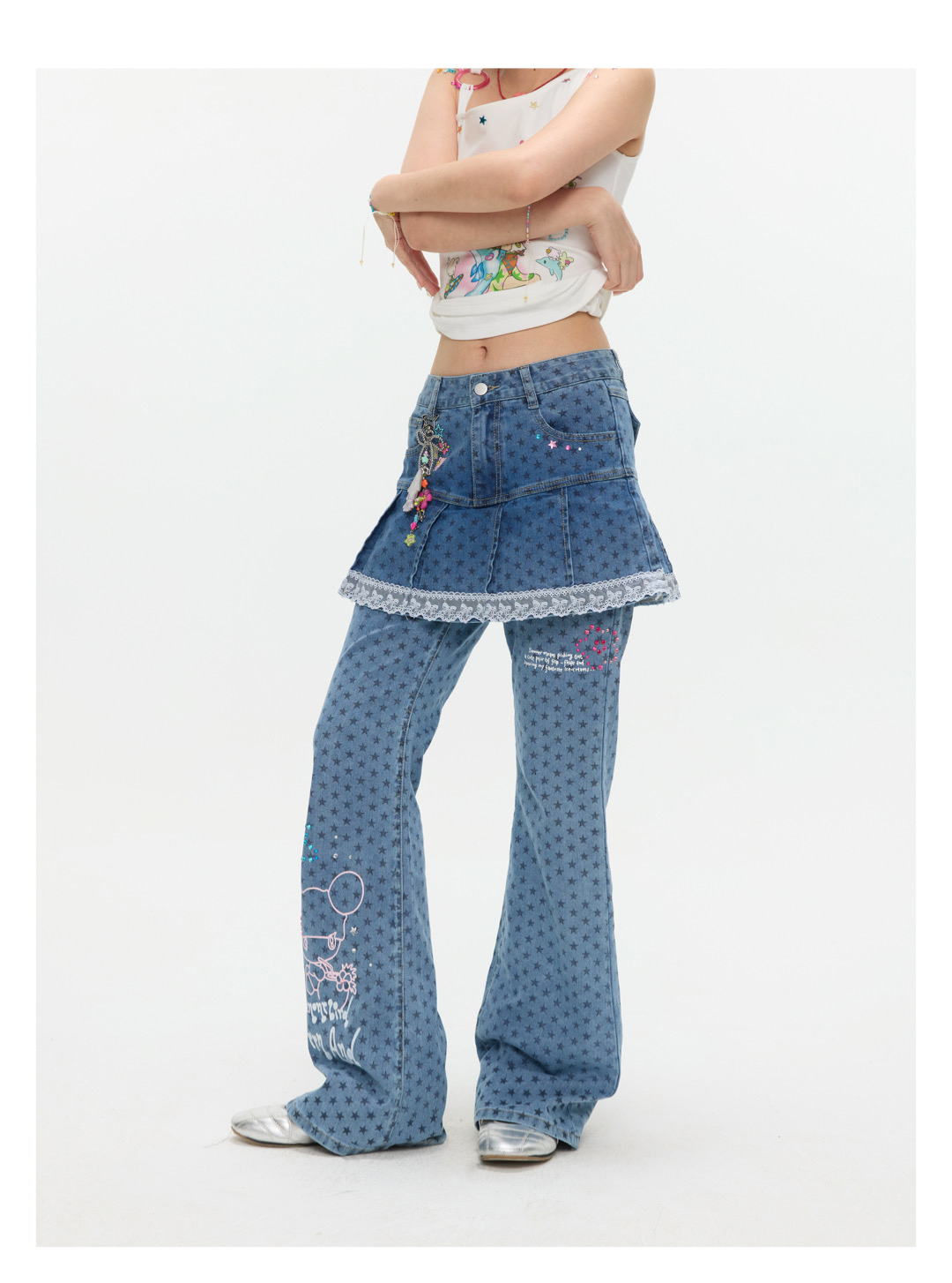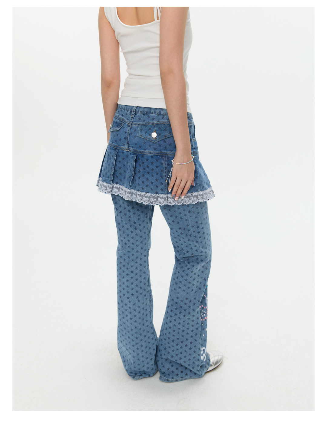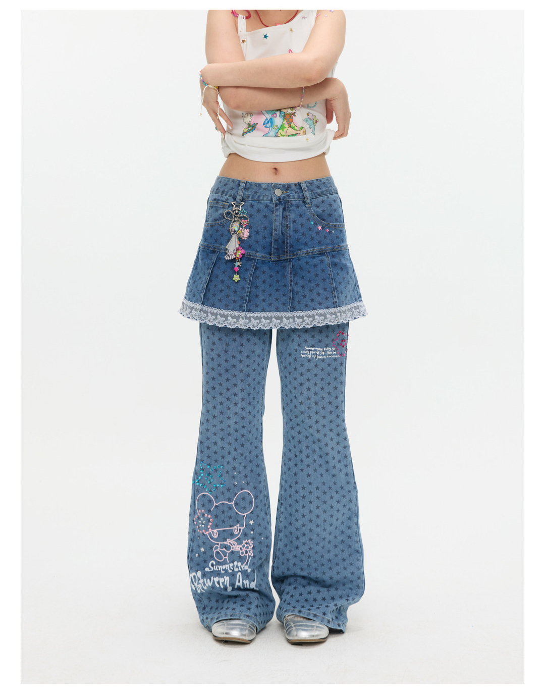 Denim star rhinestone flared skort with glitter two piece design Lookbook
