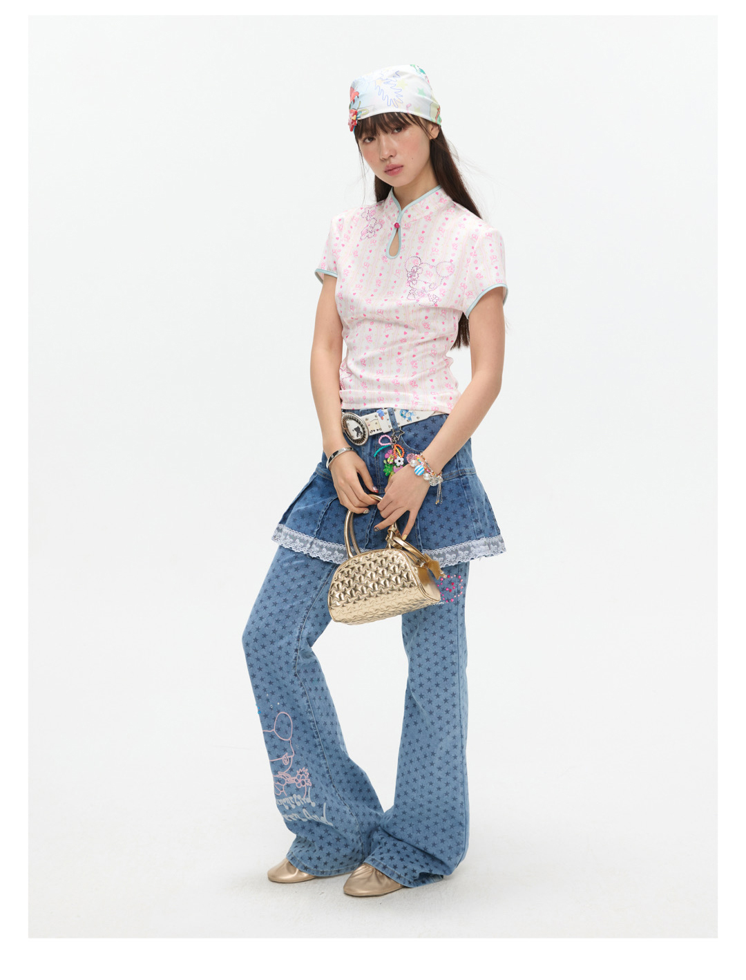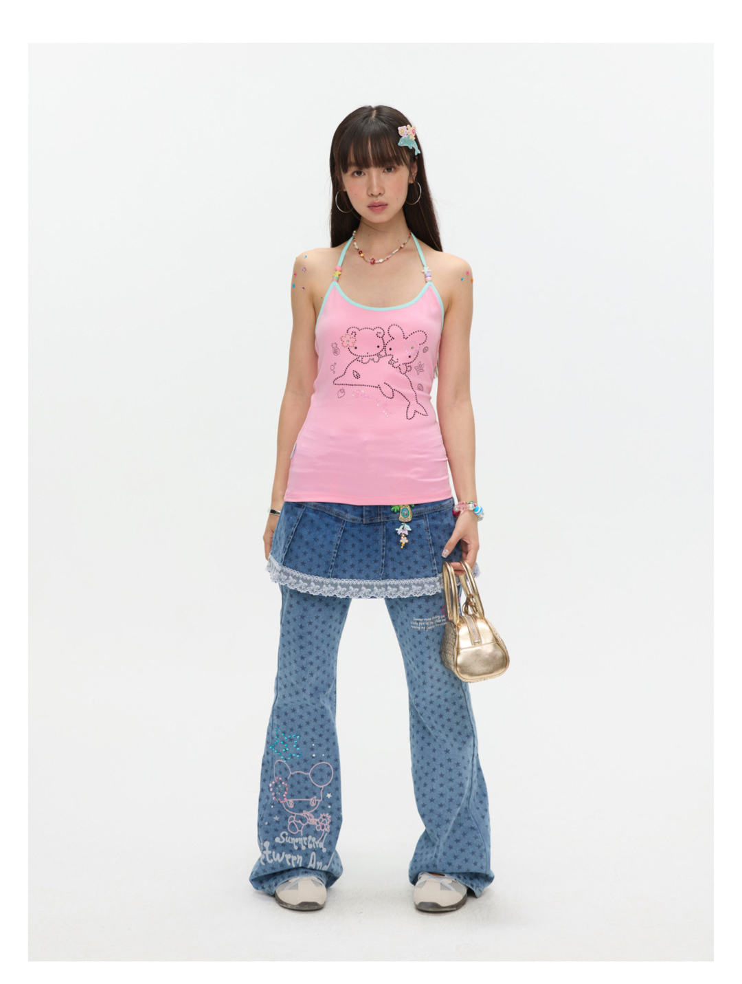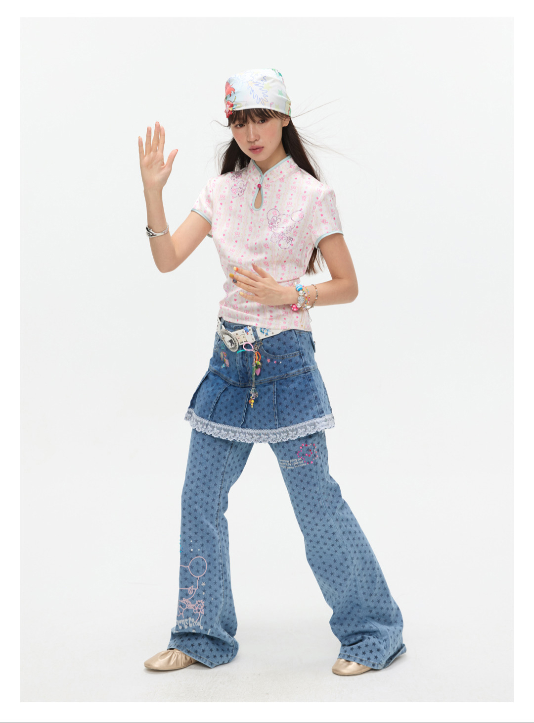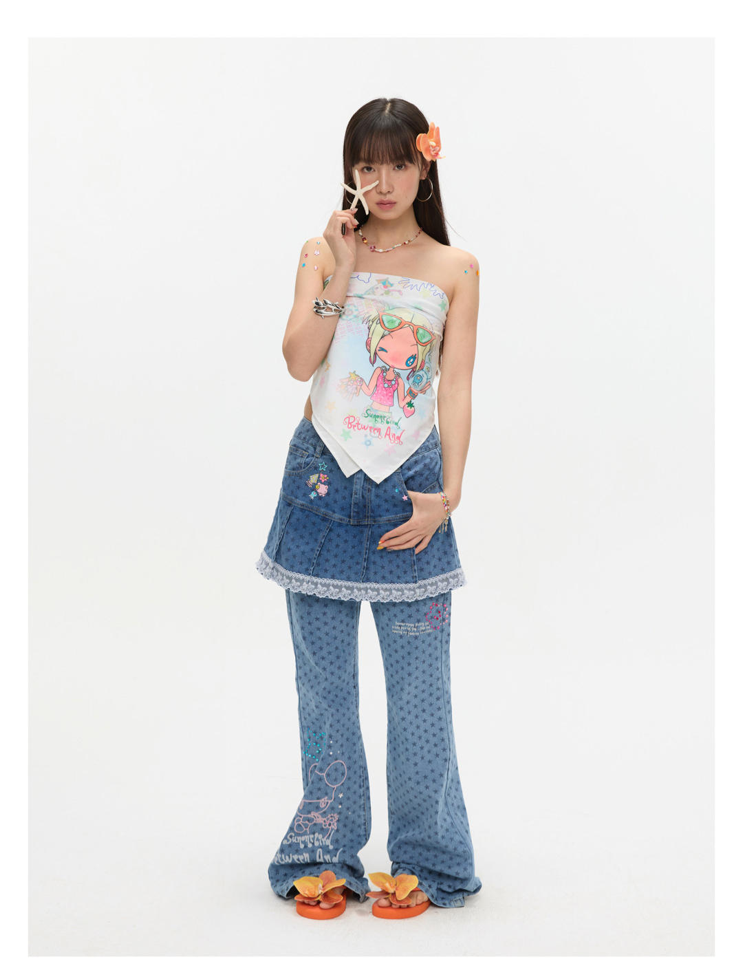 Denim star rhinestone flared skort with glitter two piece design Lookbook