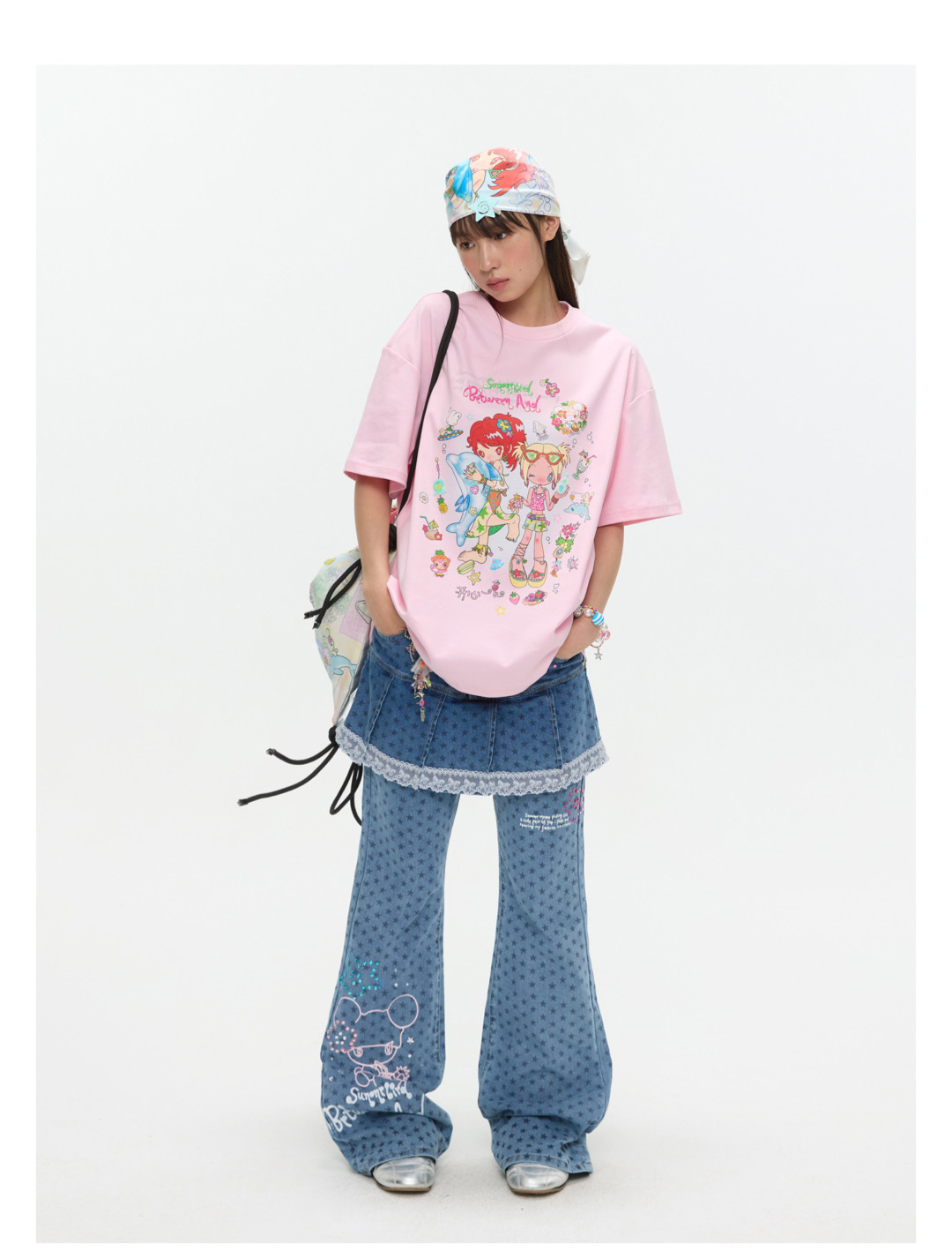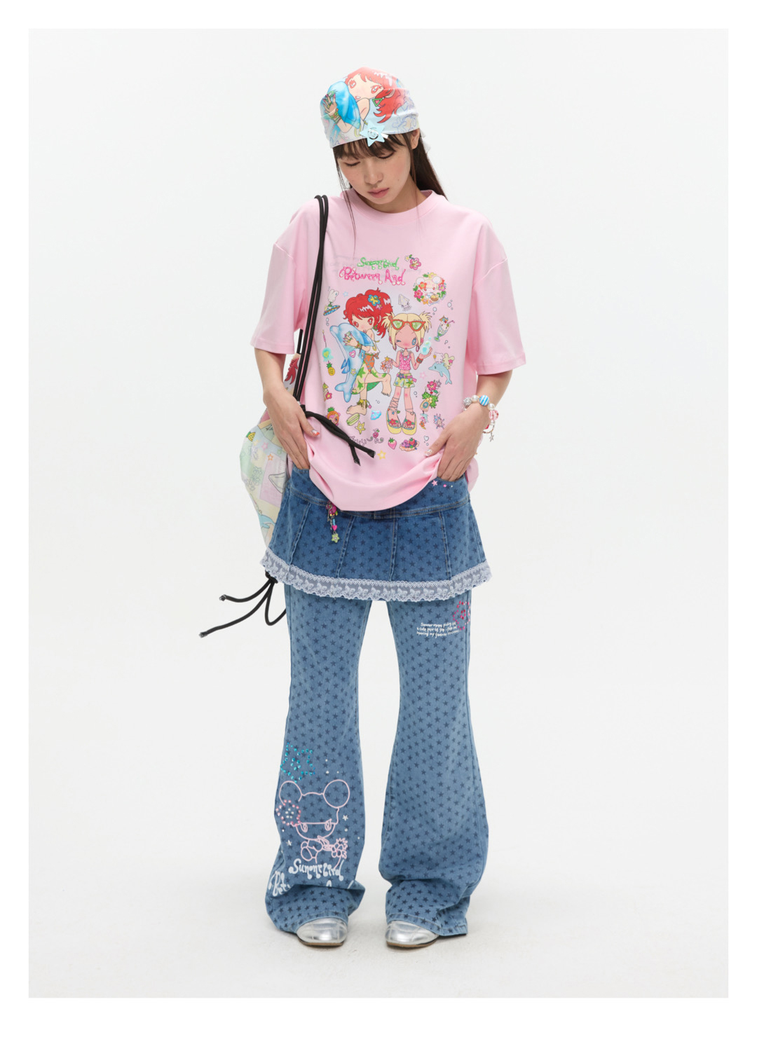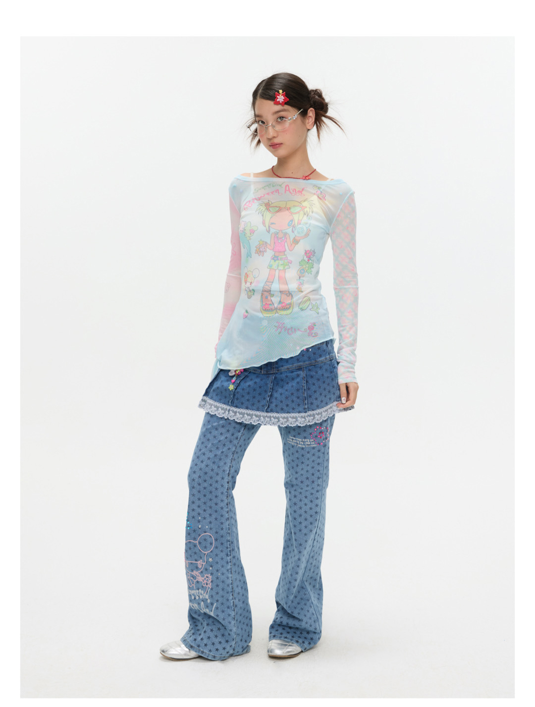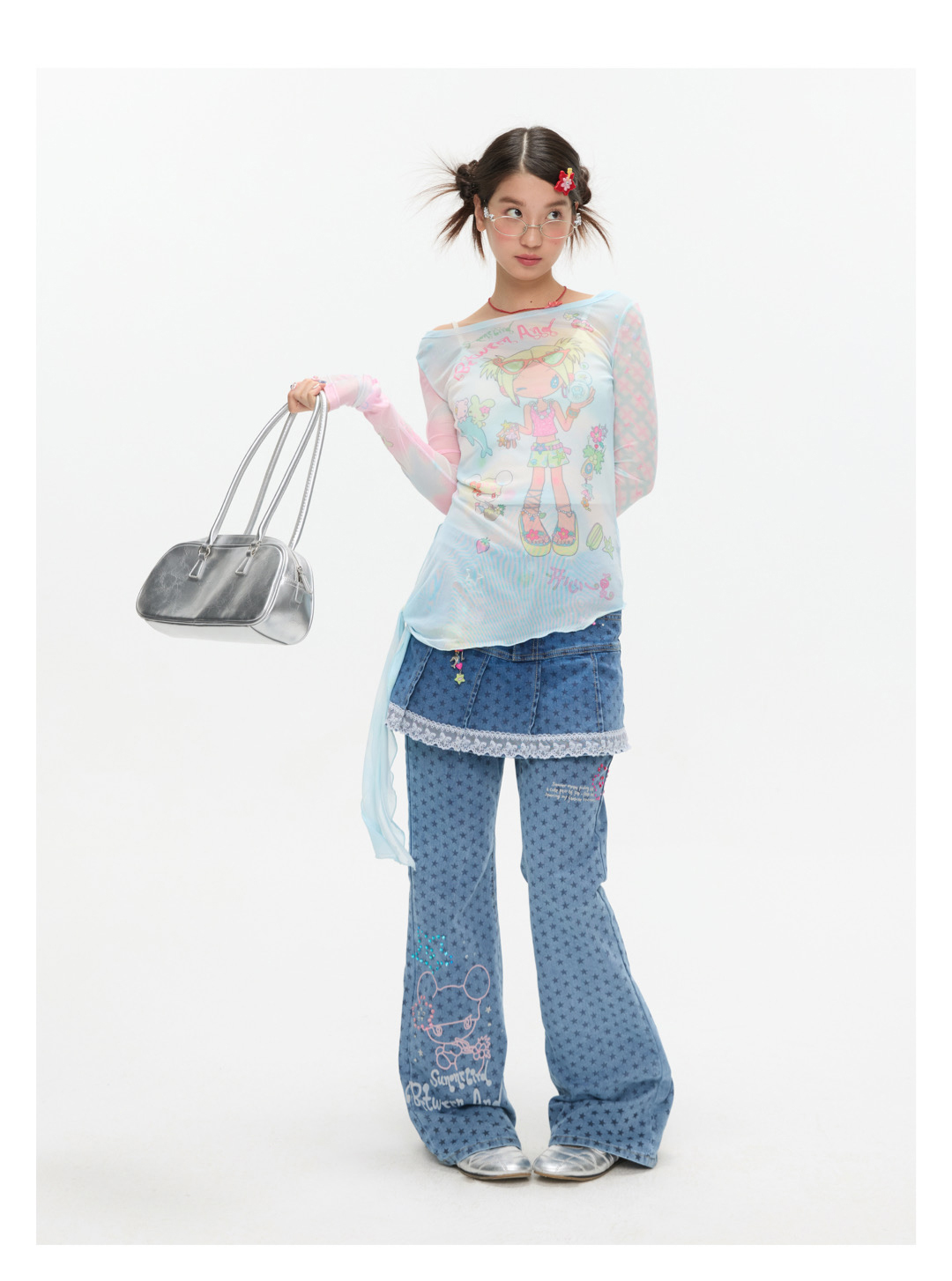 Denim star rhinestone flared skort with glitter two piece design Lookbook