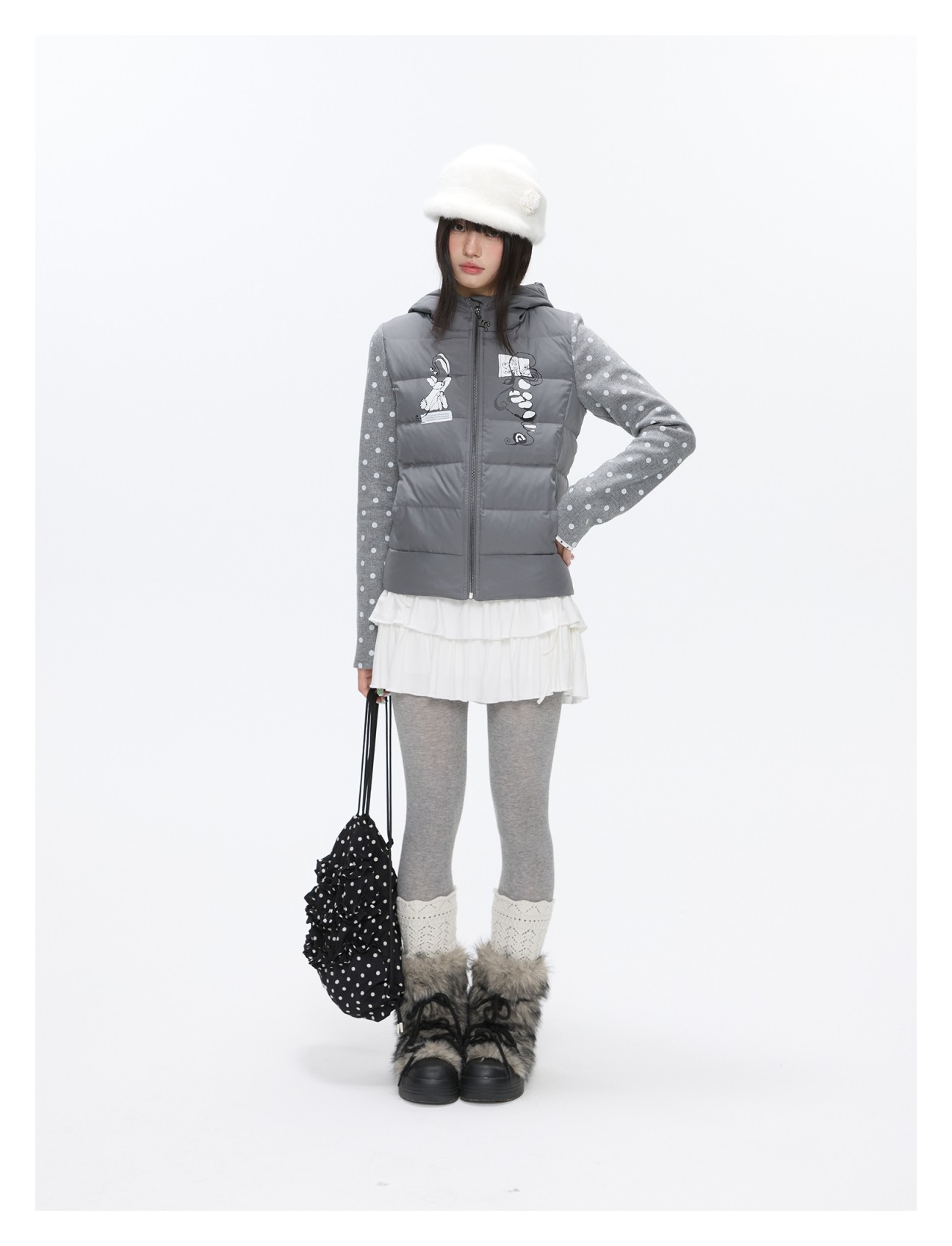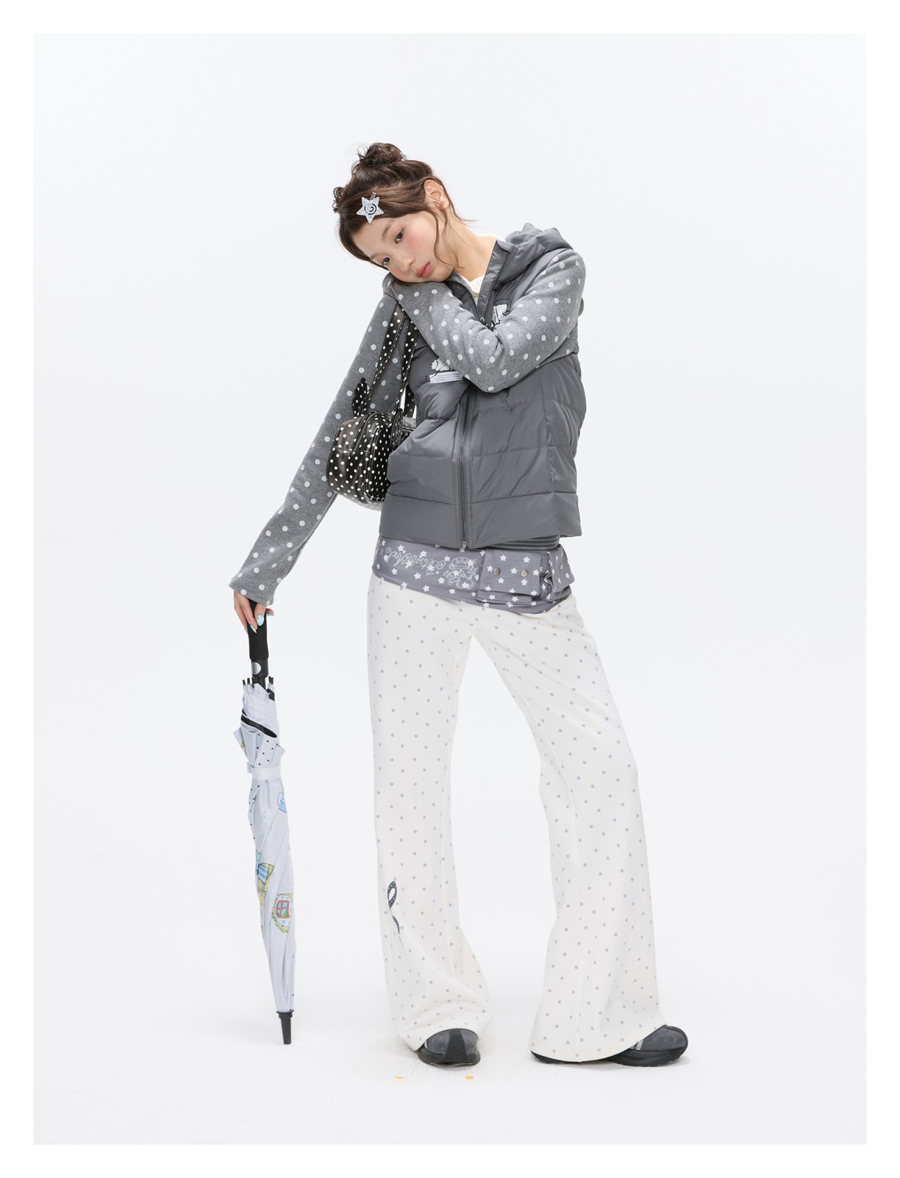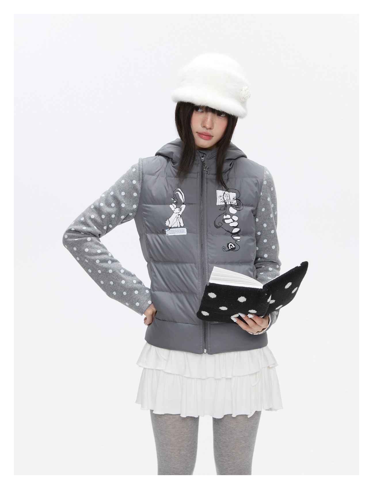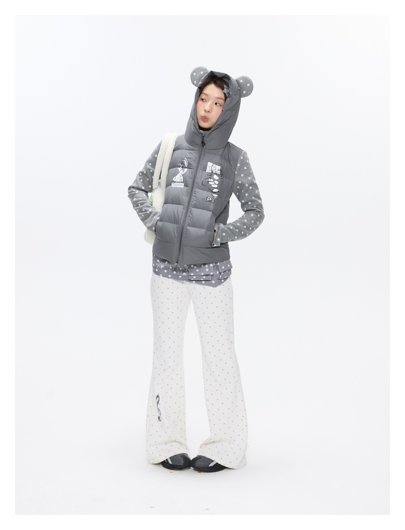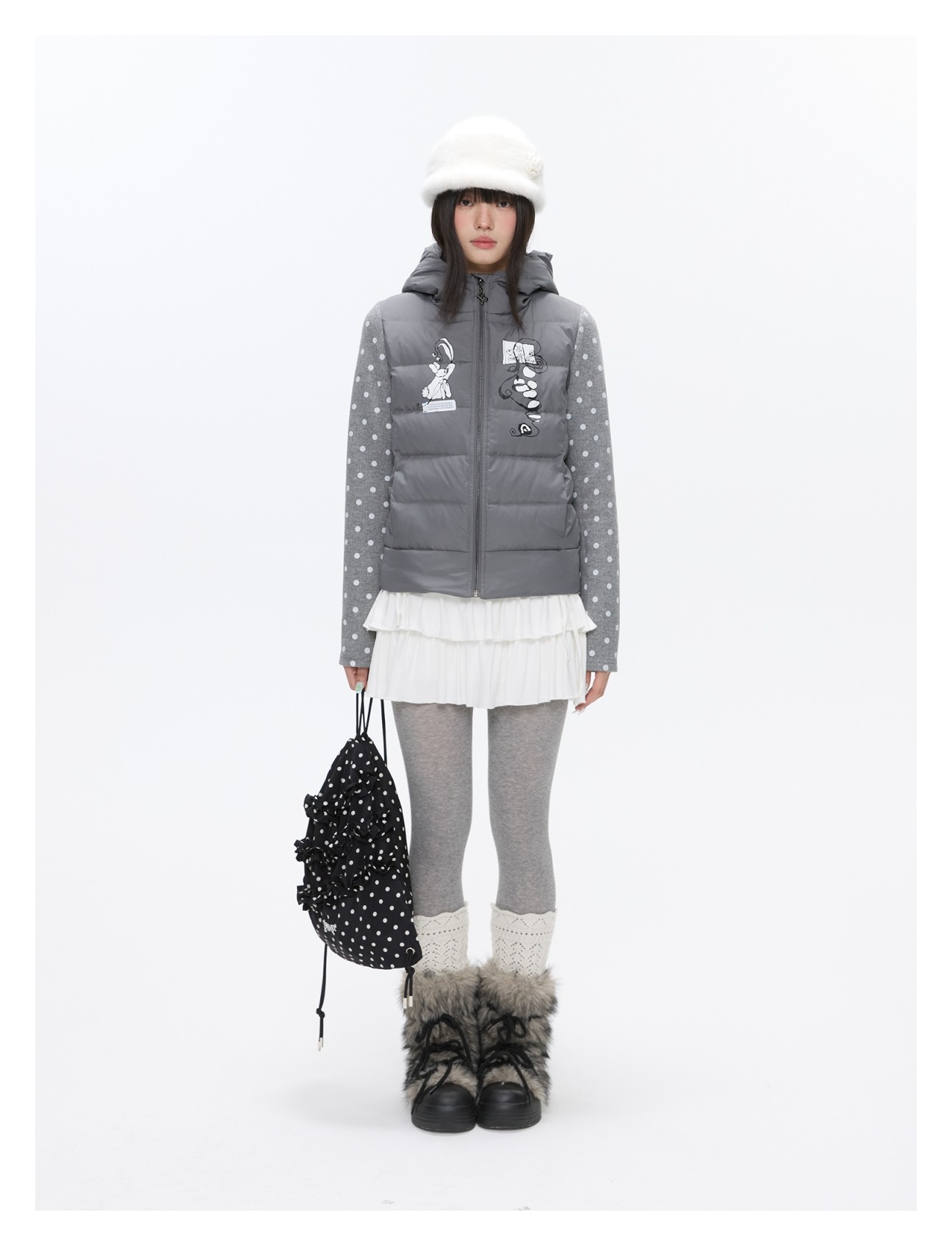 Gray polka-dot lightweight down jacket with bear-ear hood Lookbook