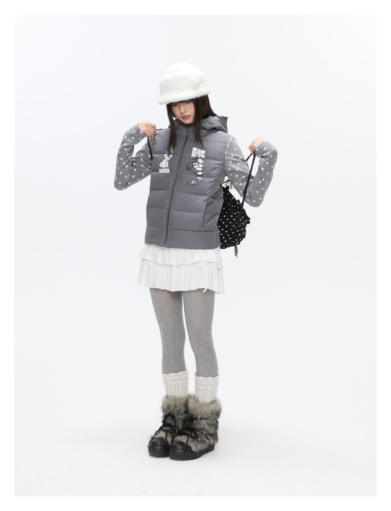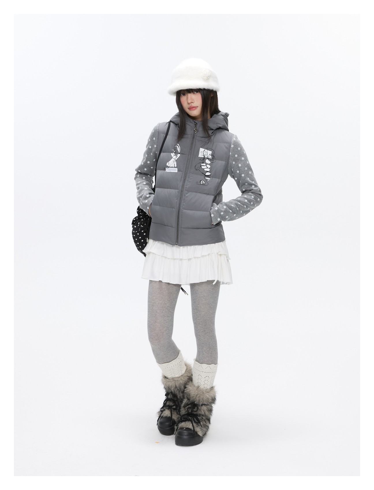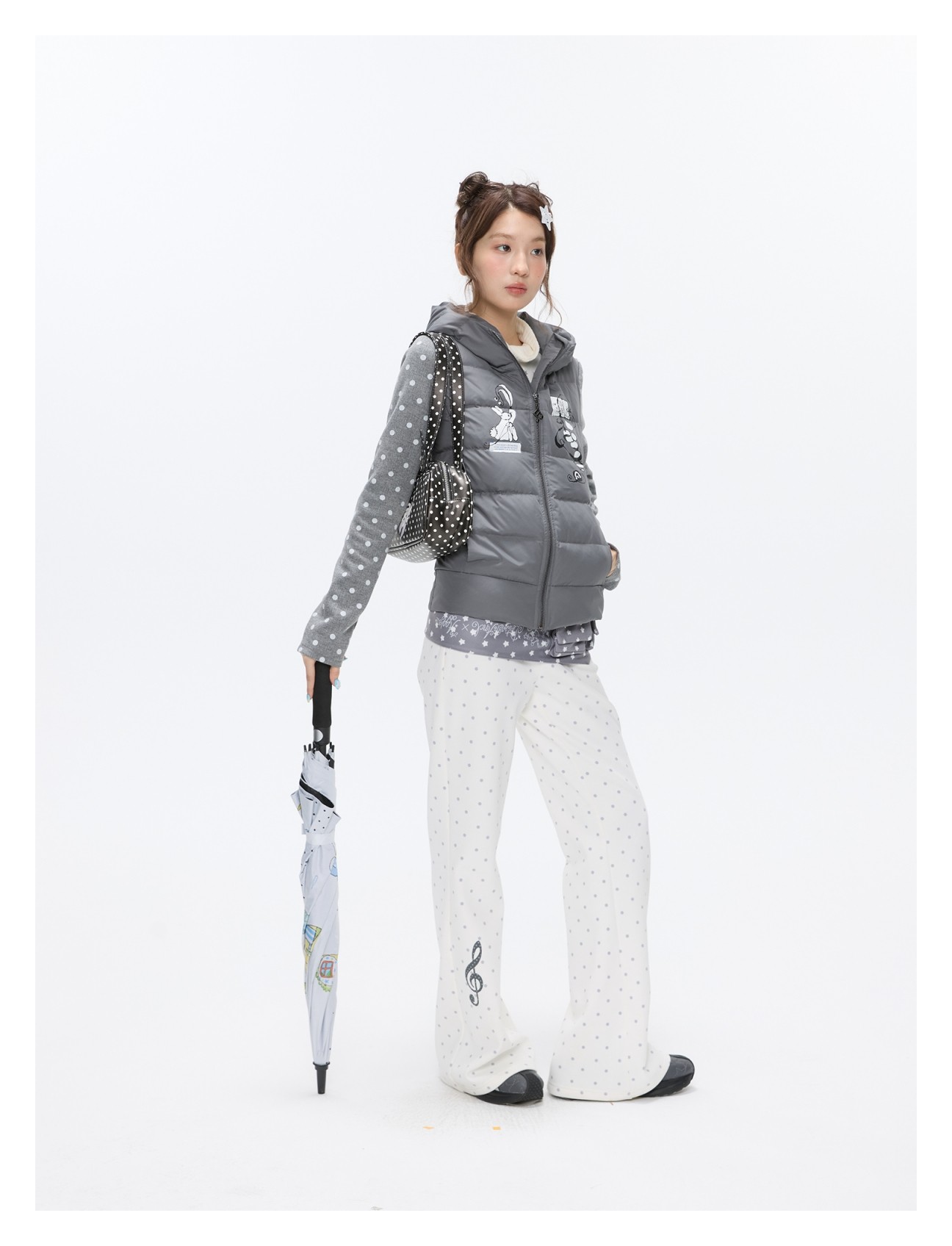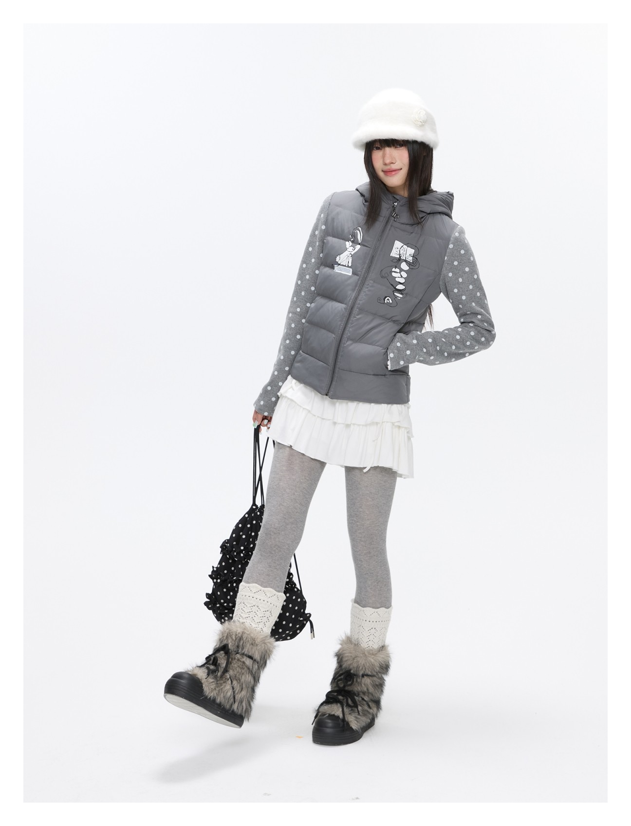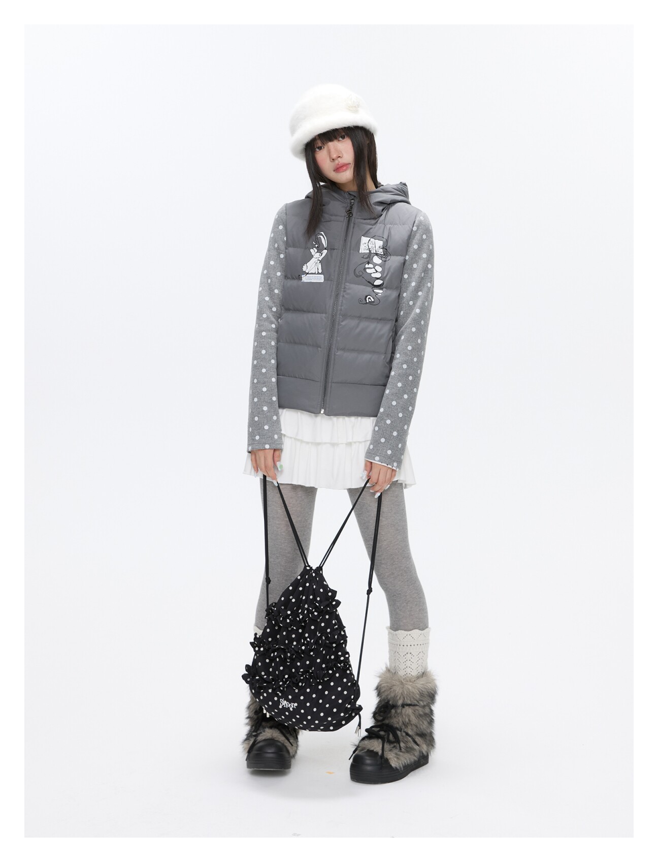 Gray polka-dot lightweight down jacket with bear-ear hood Lookbook