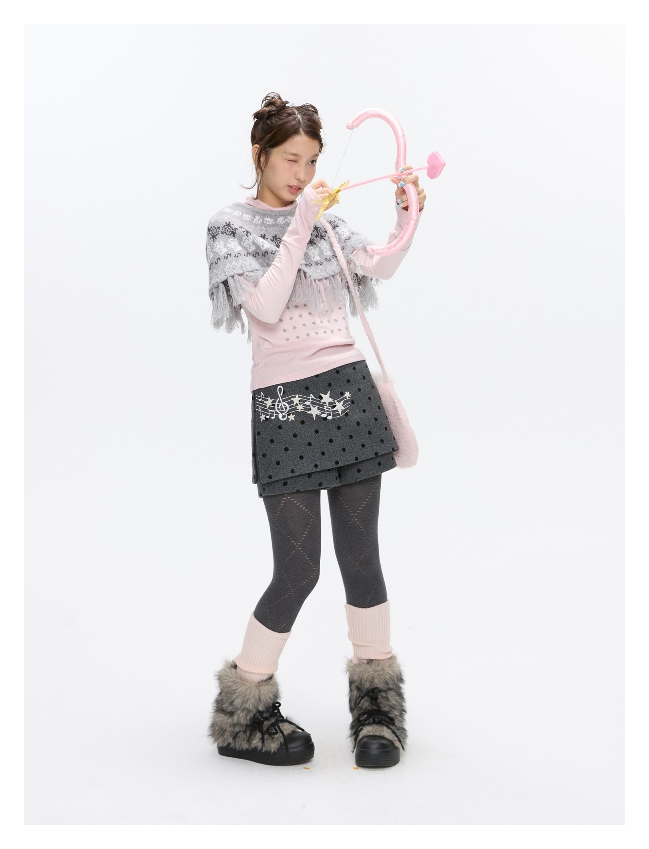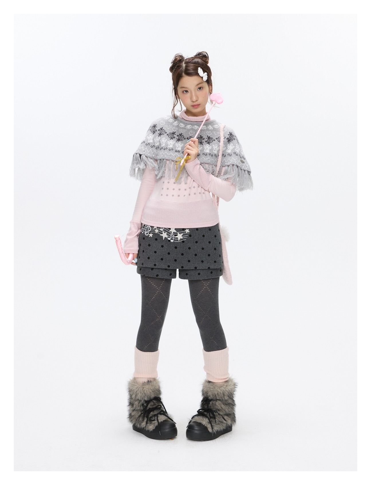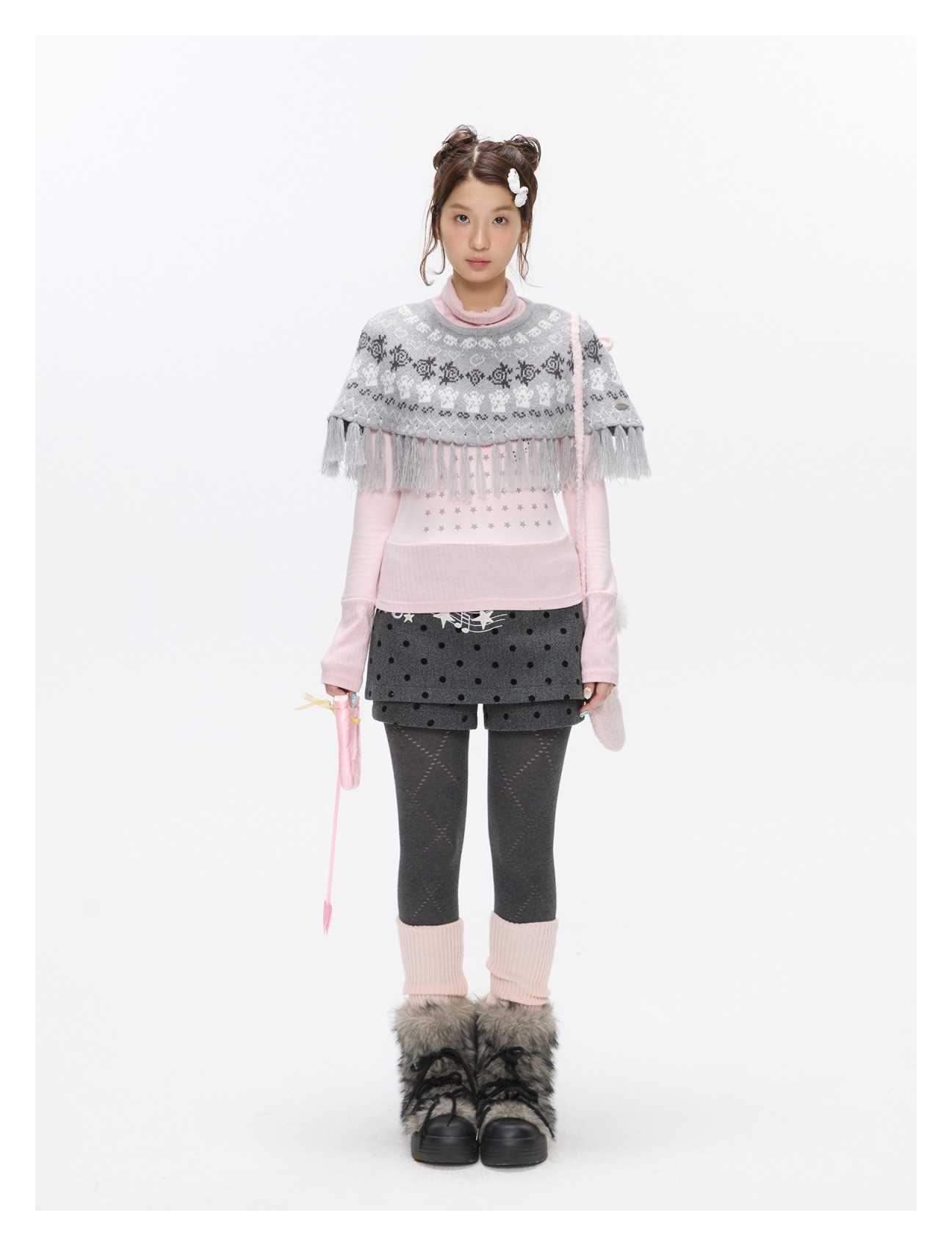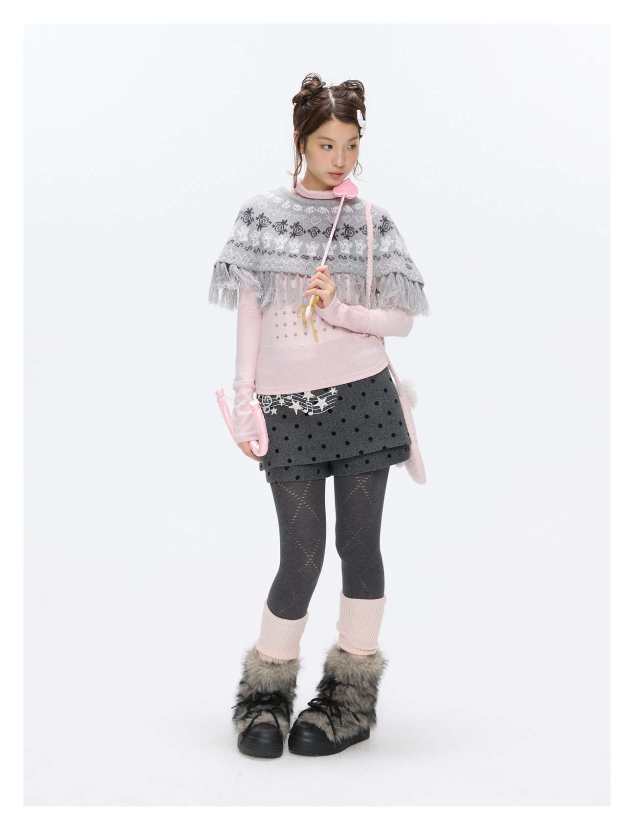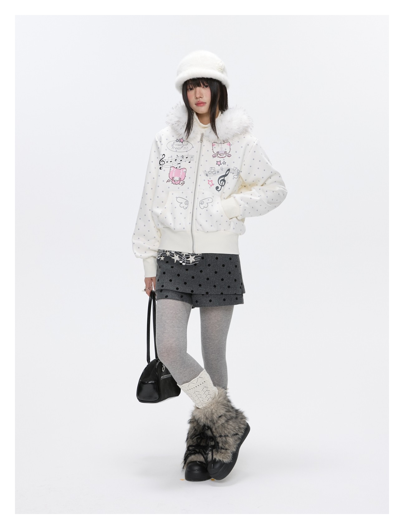 Grey wool skort with music-note polka-dot design Lookbook