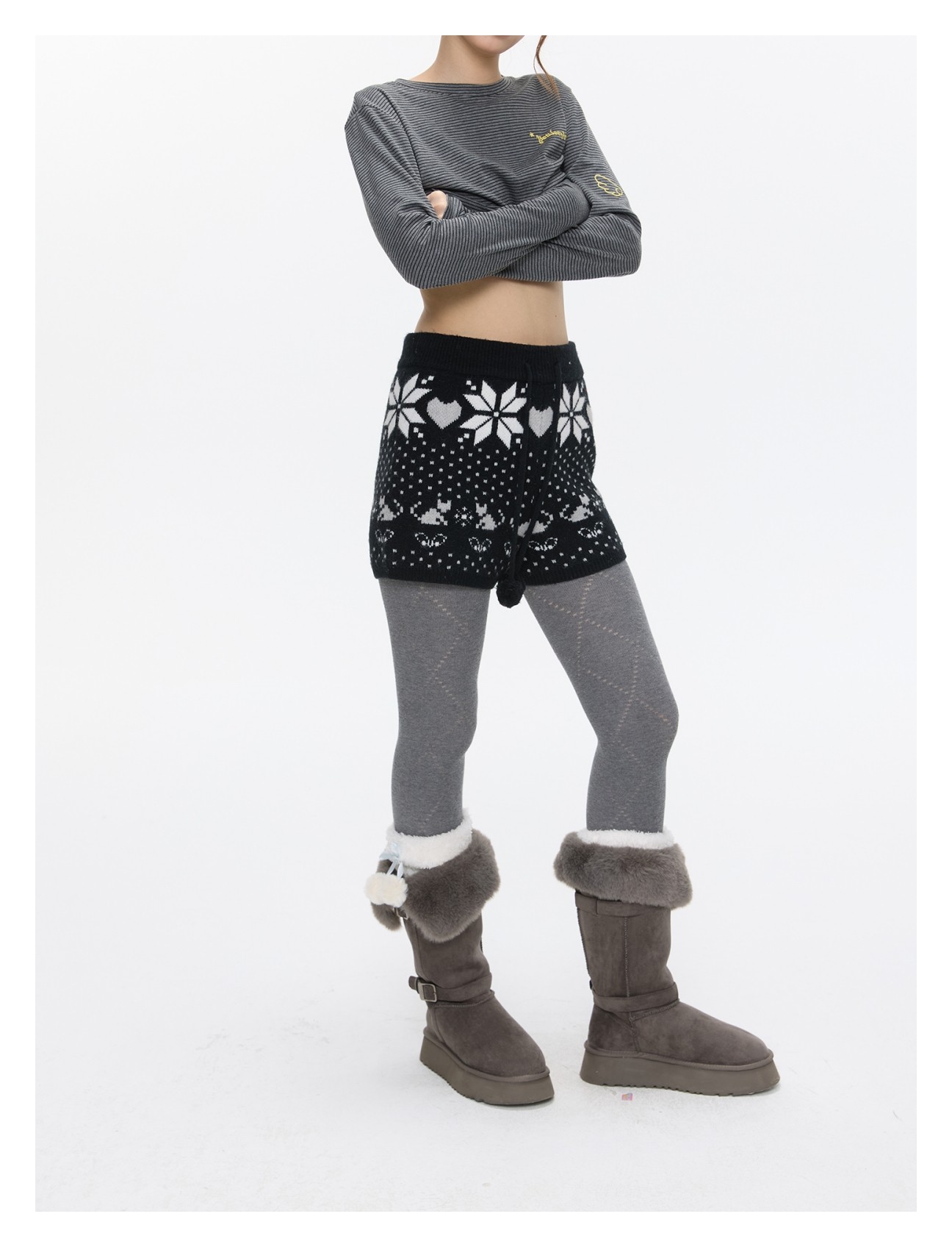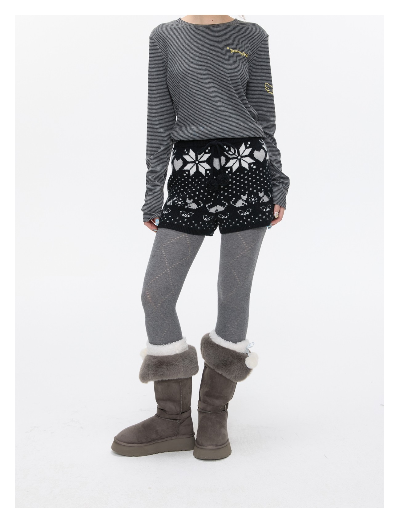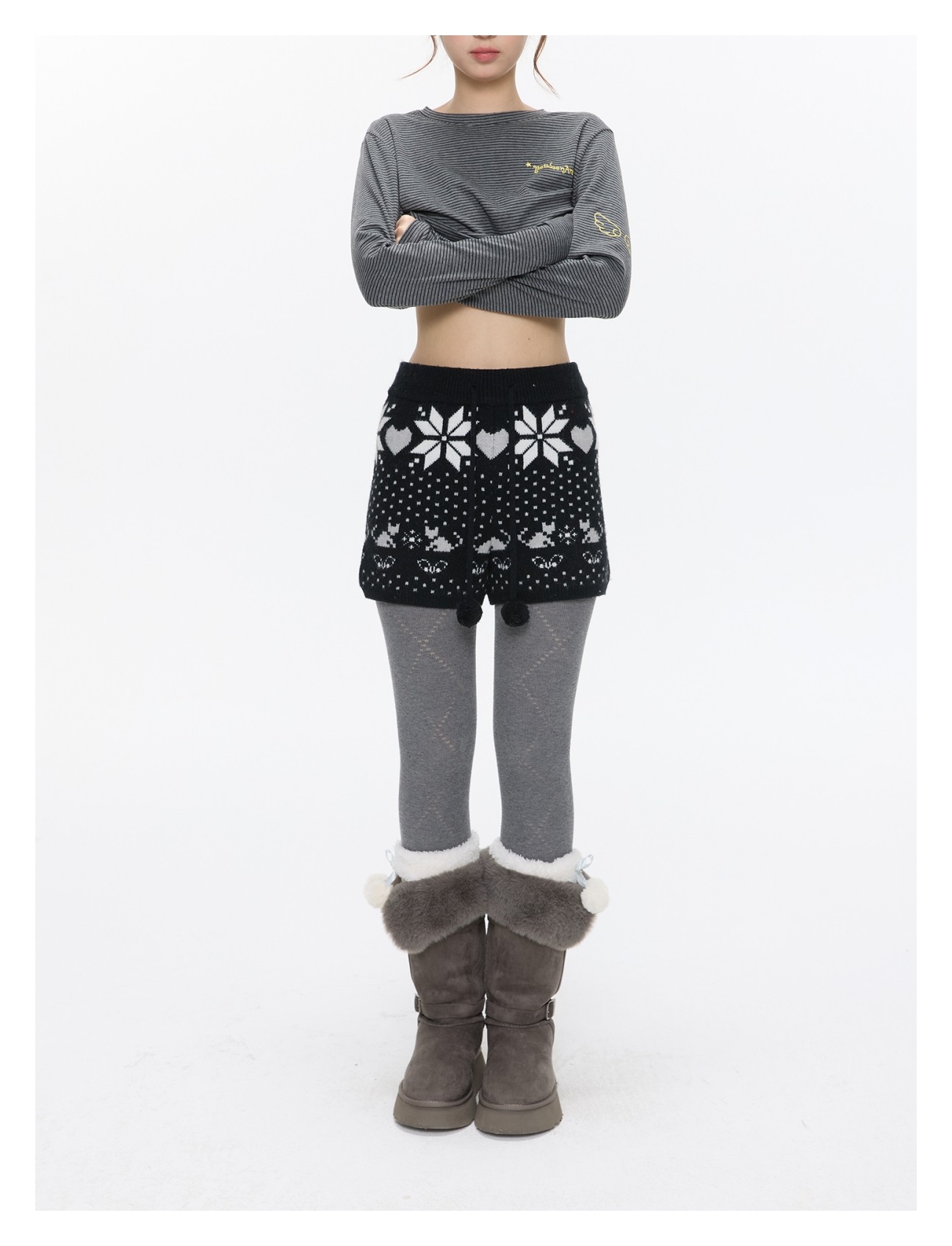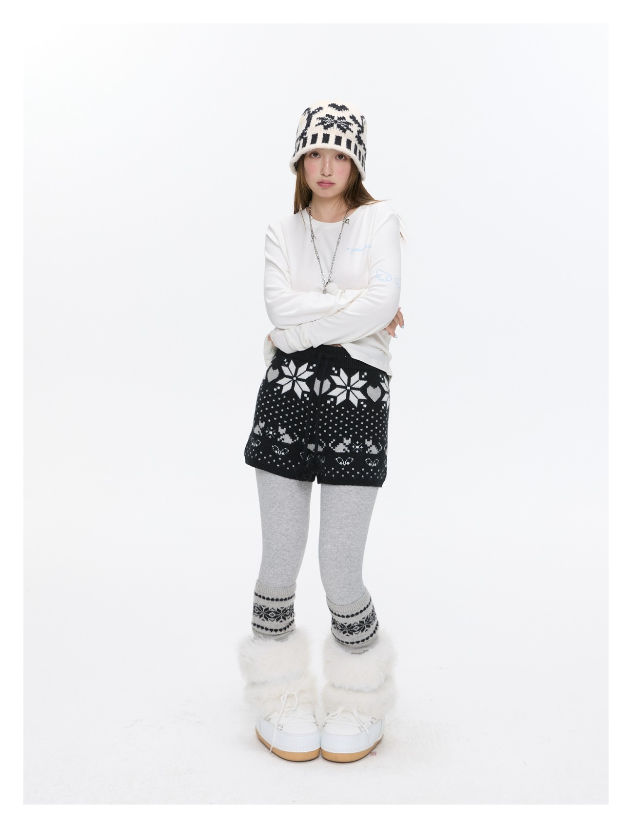High-waist snowflake polka-dot knit shorts Lookbook