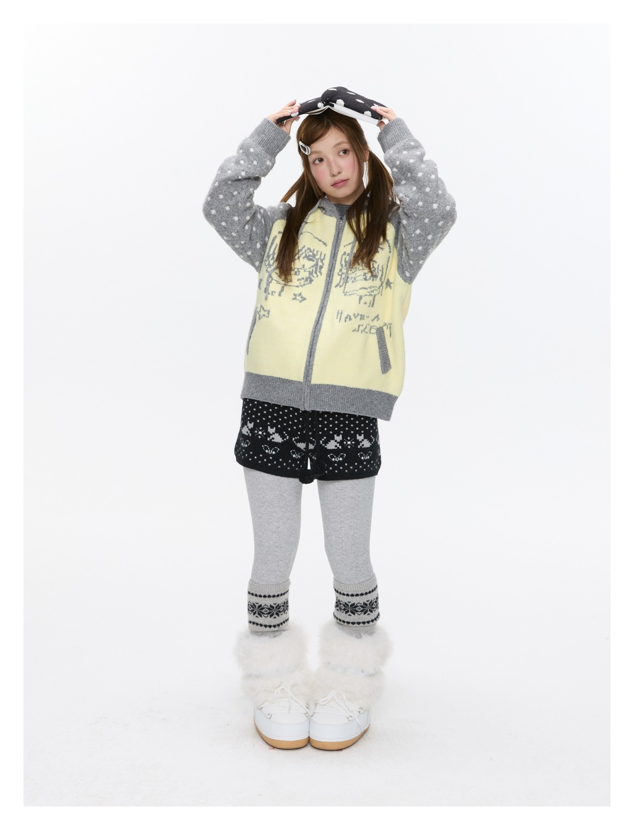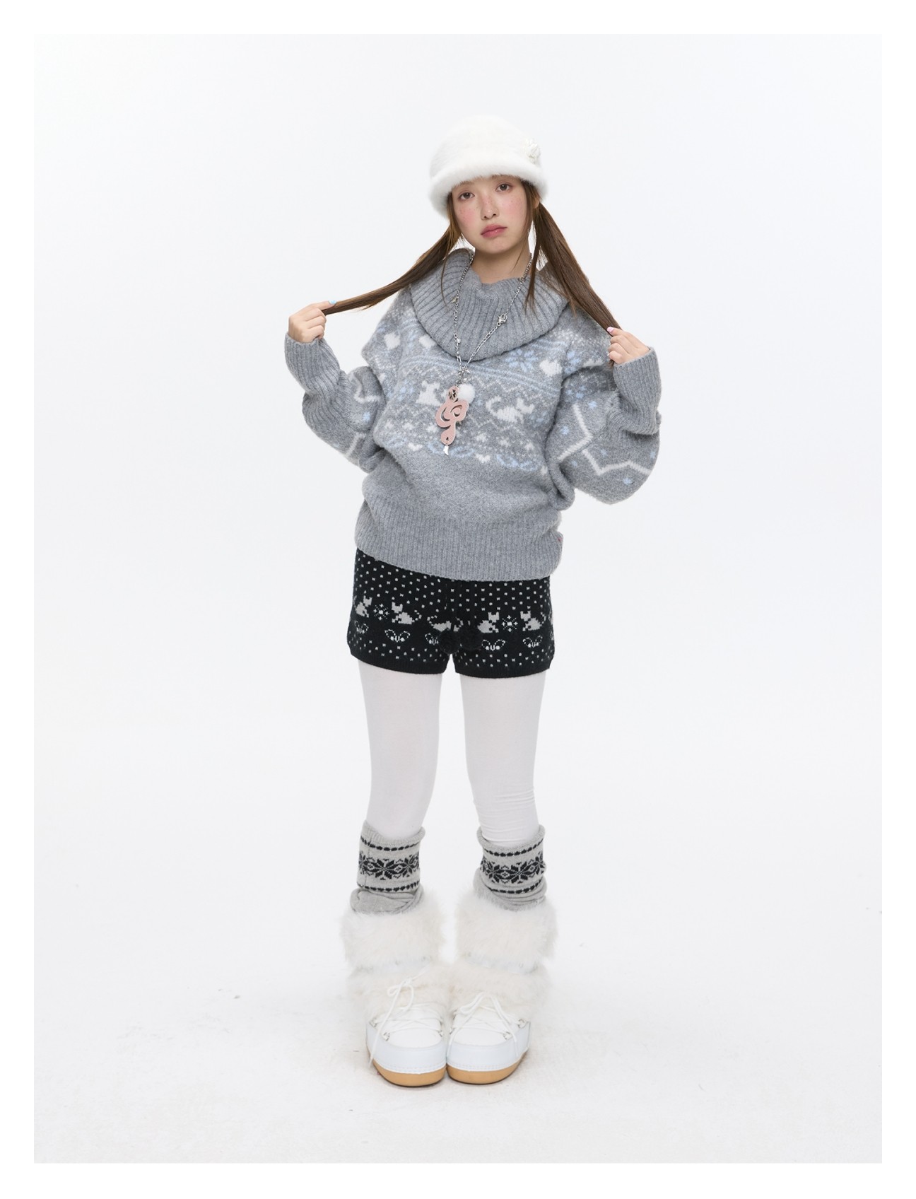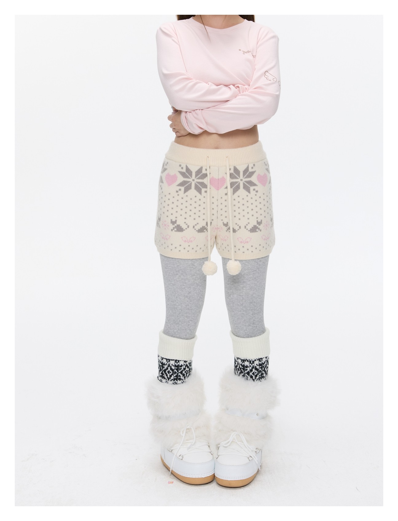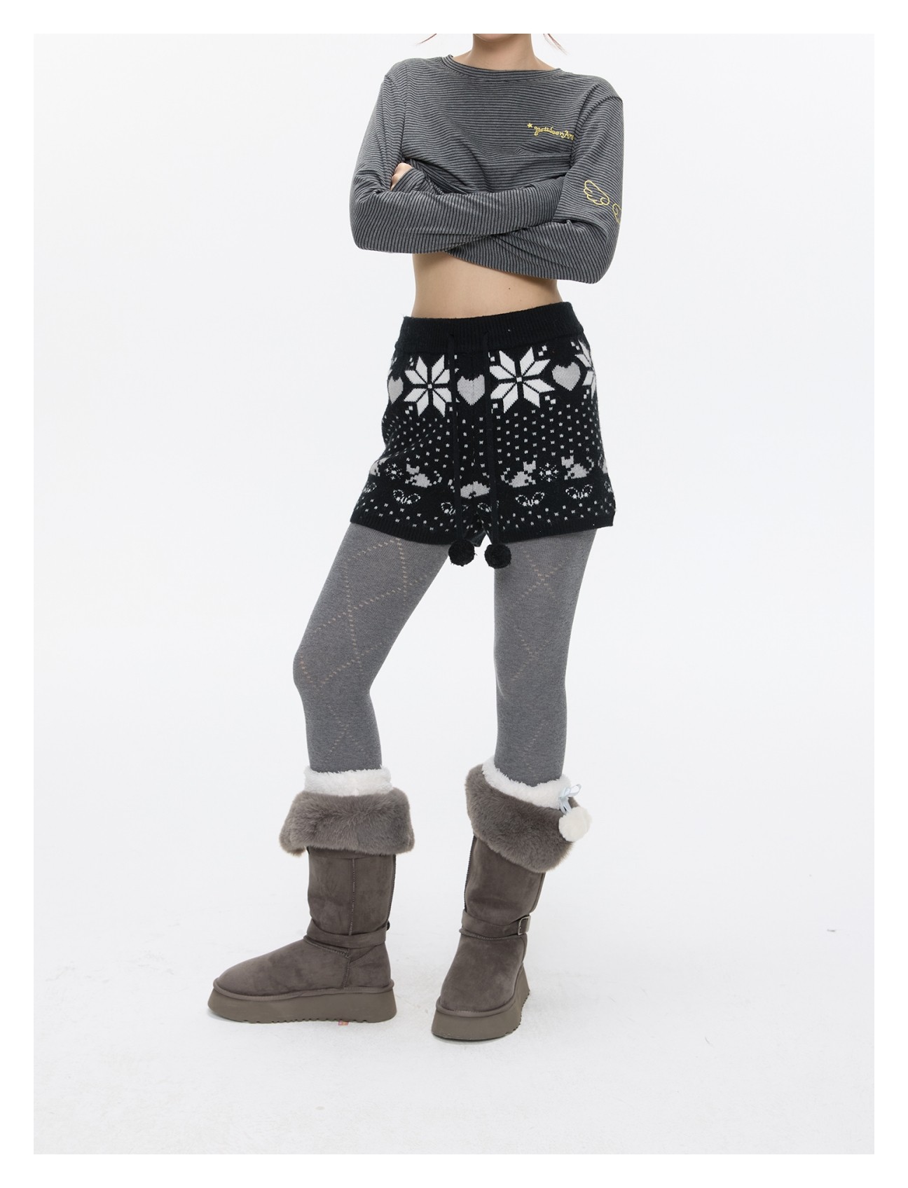 High-waist snowflake polka-dot knit shorts Lookbook