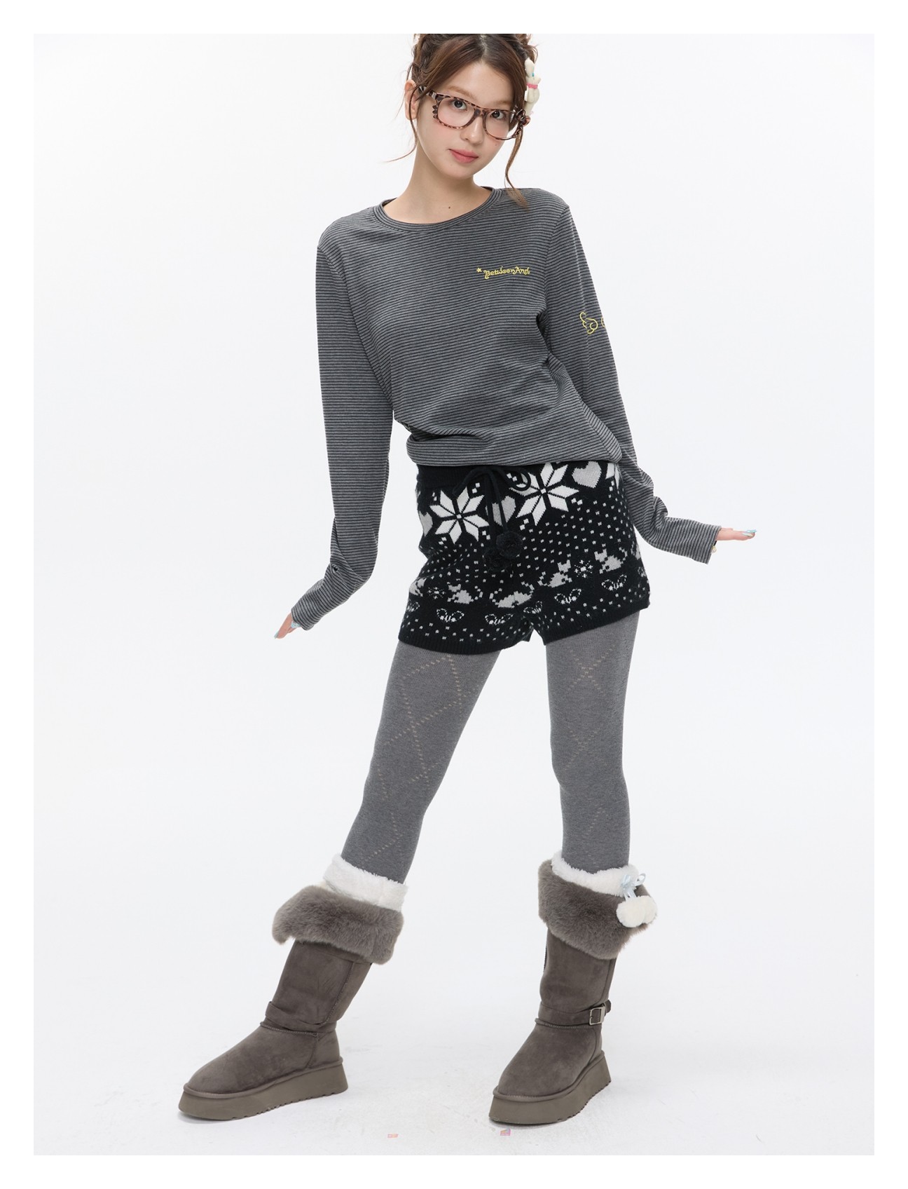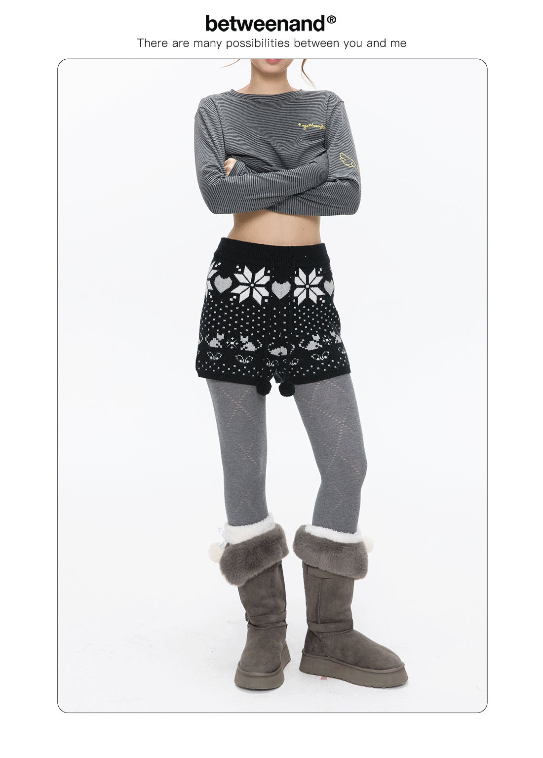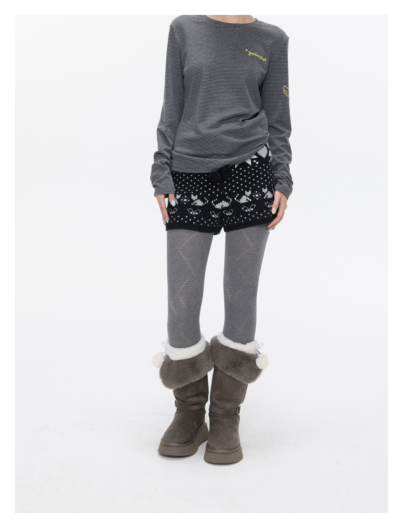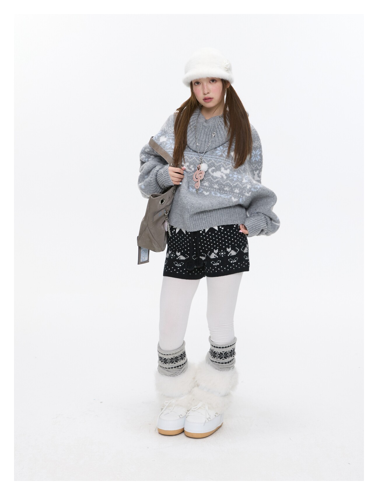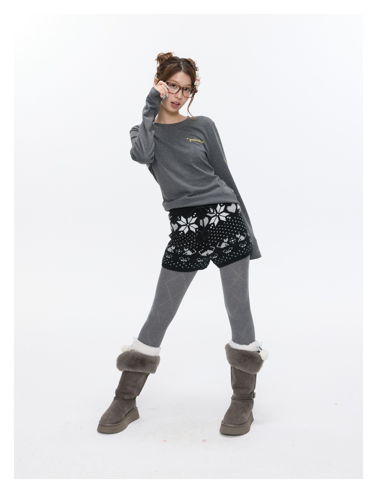 High-waist snowflake polka-dot knit shorts Lookbook