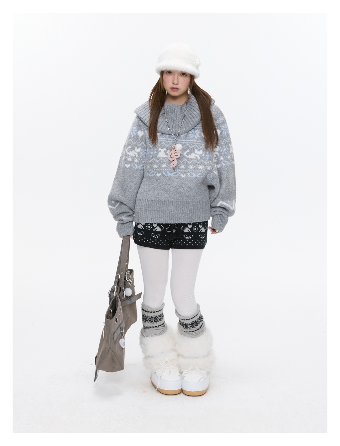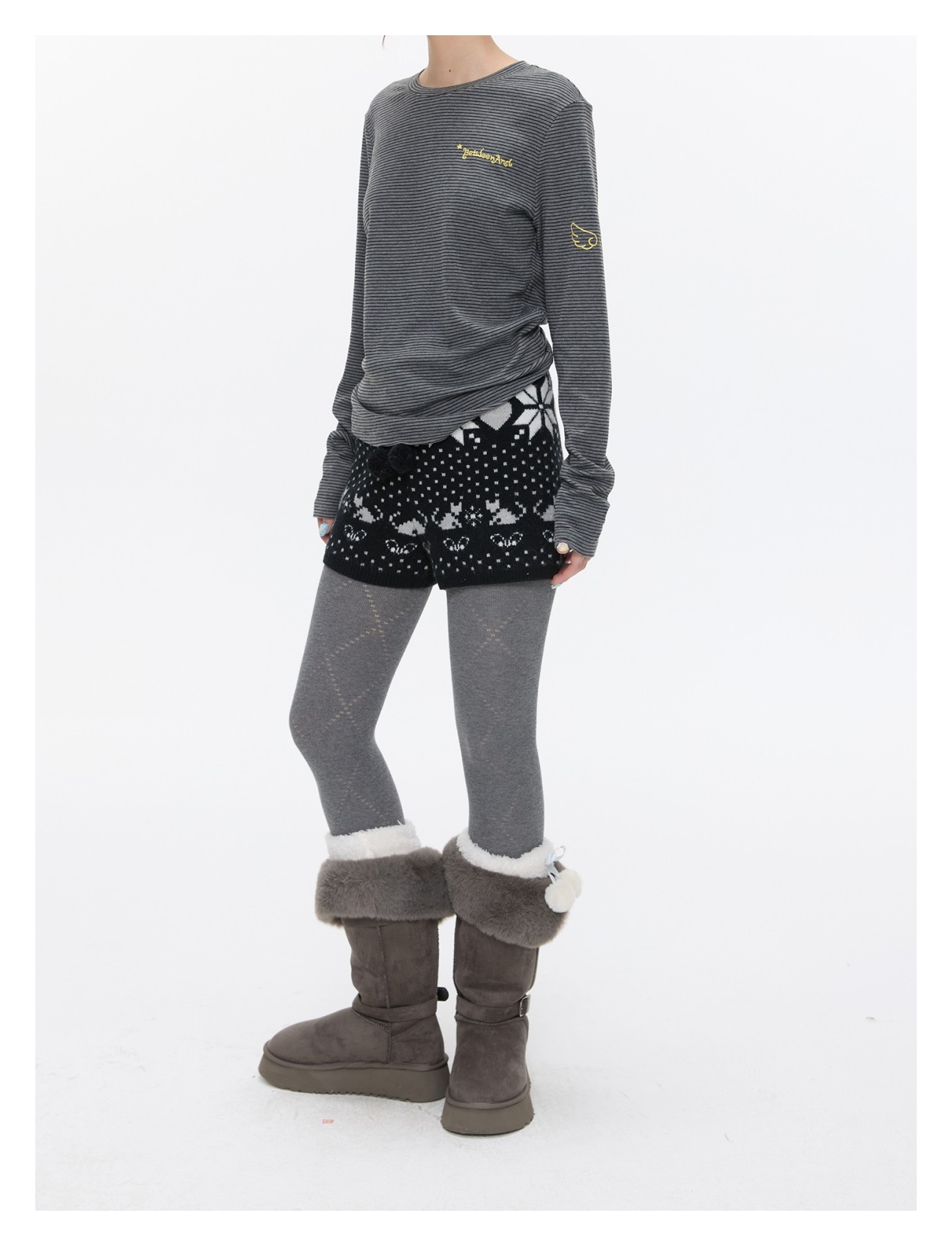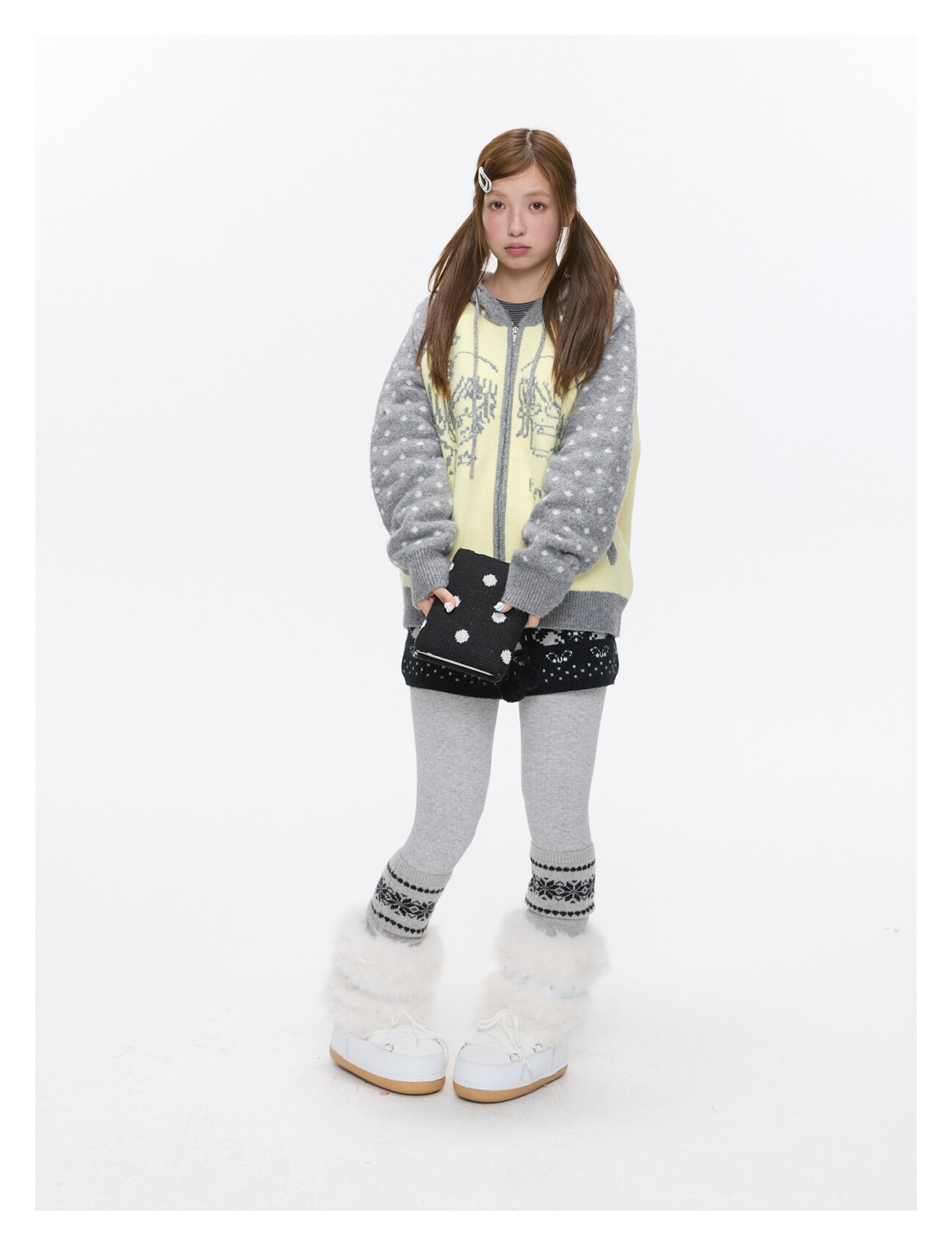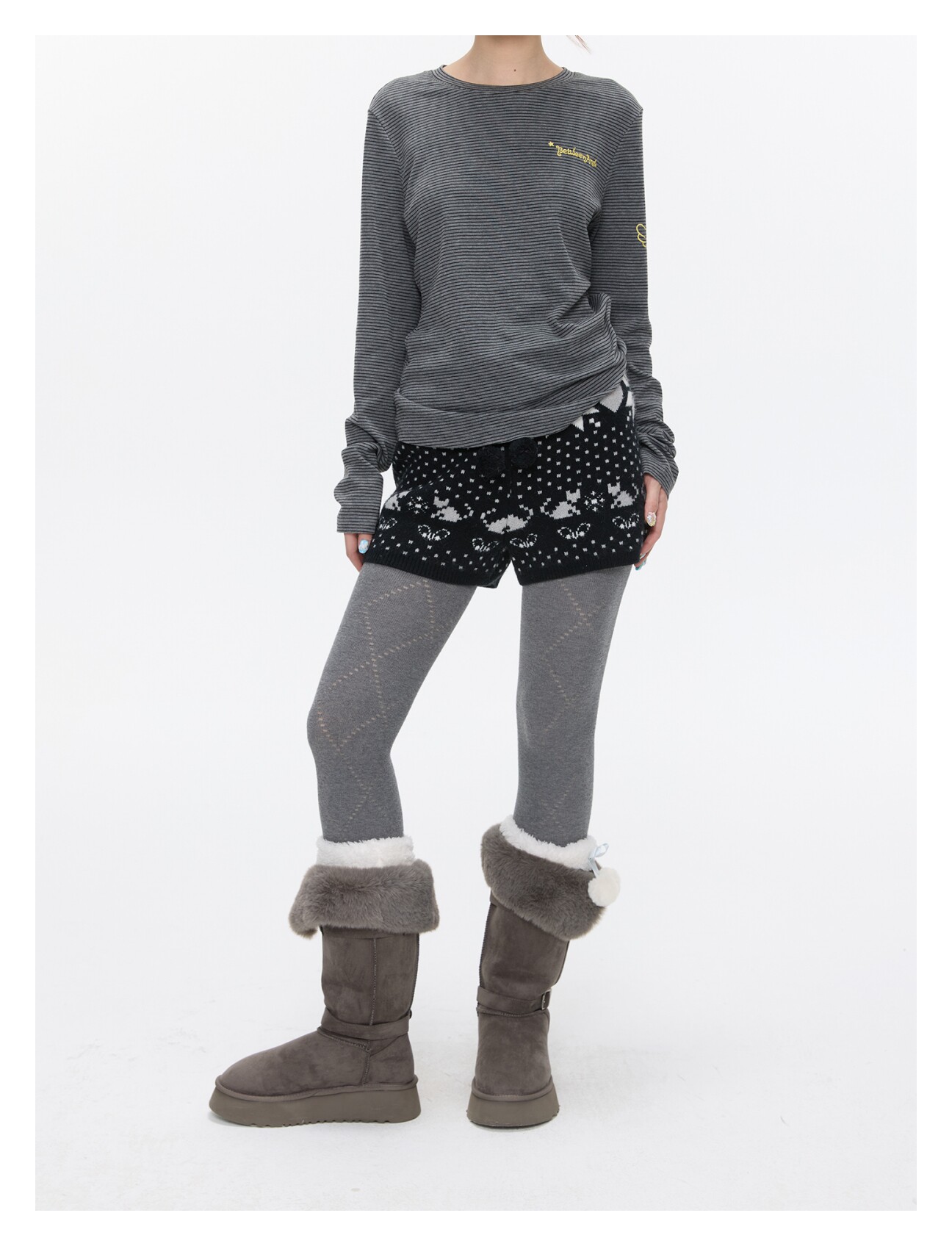 High-waist snowflake polka-dot knit shorts Lookbook
