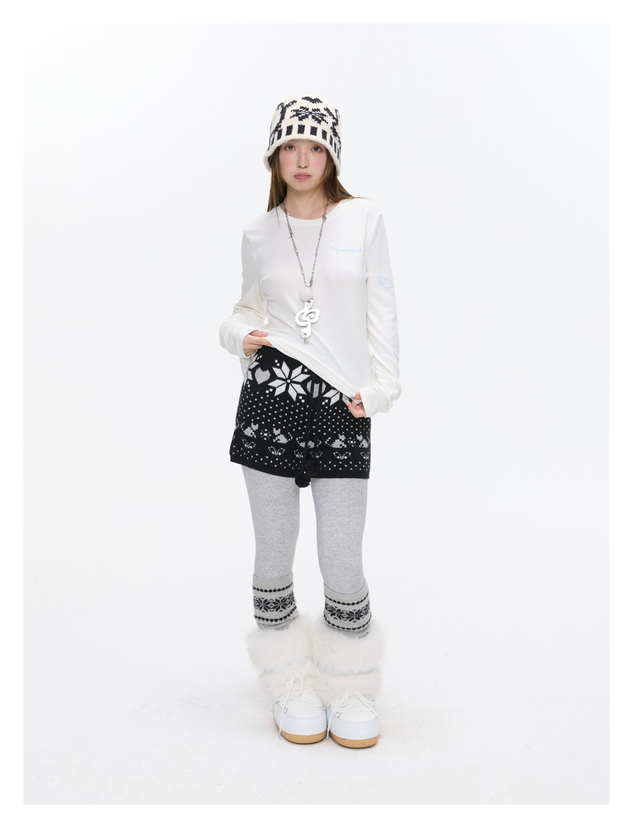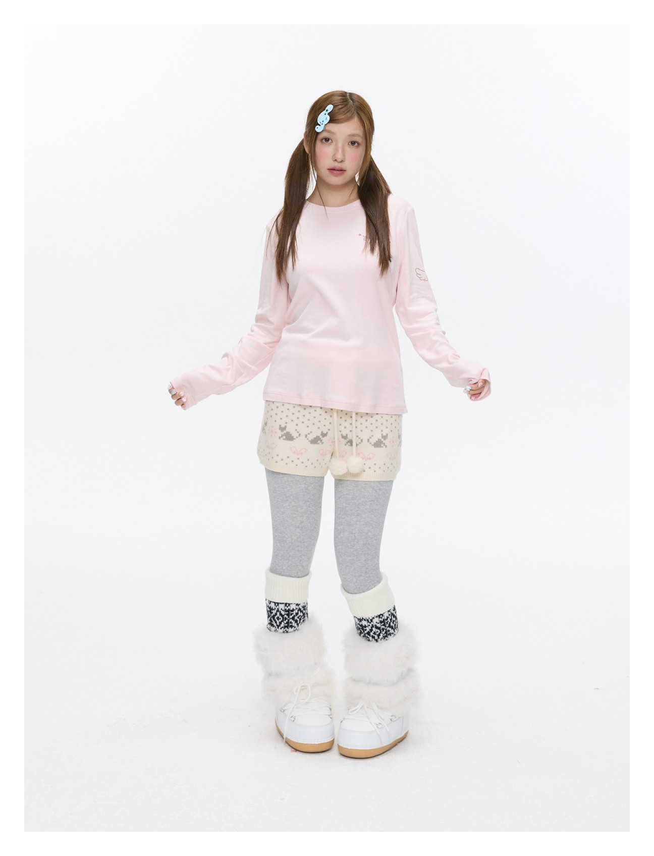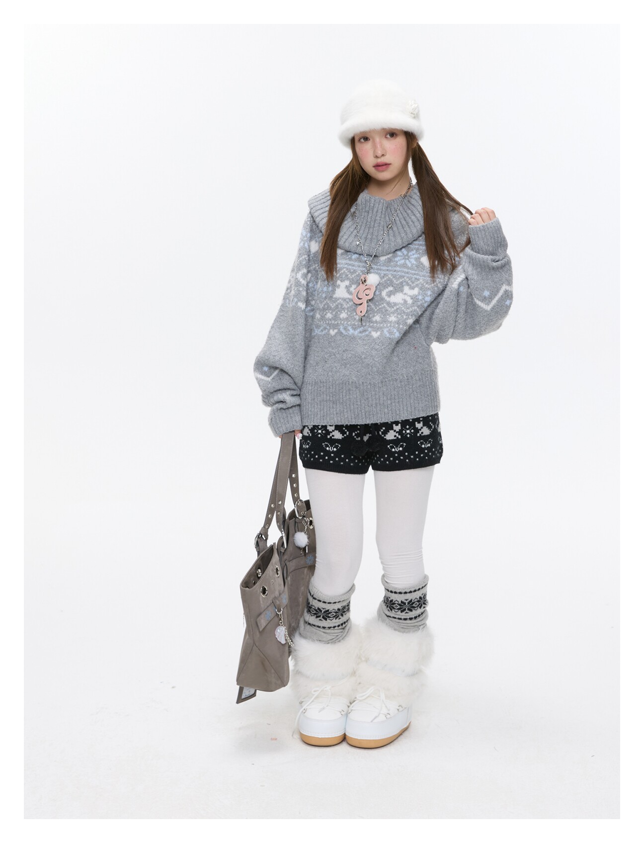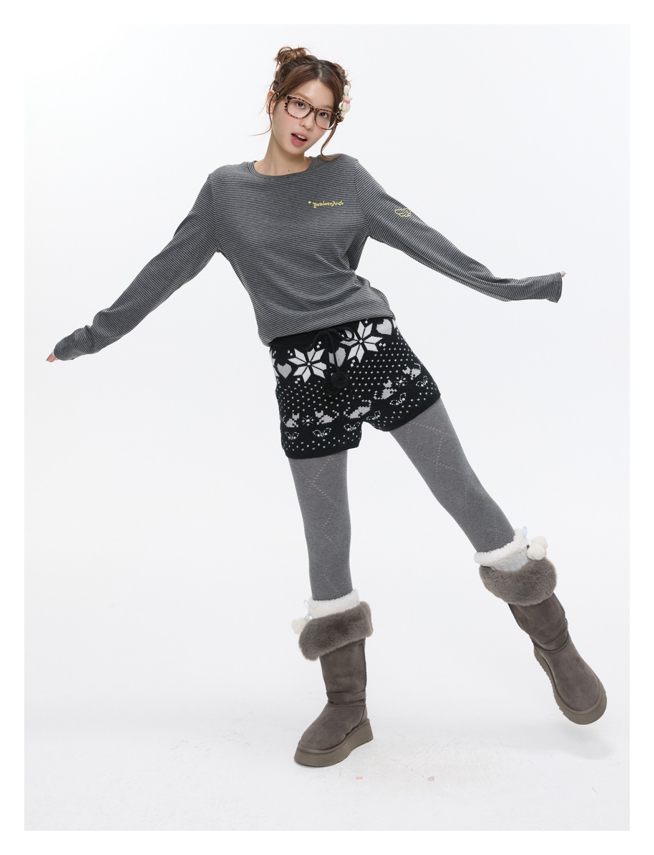 High-waist snowflake polka-dot knit shorts Lookbook