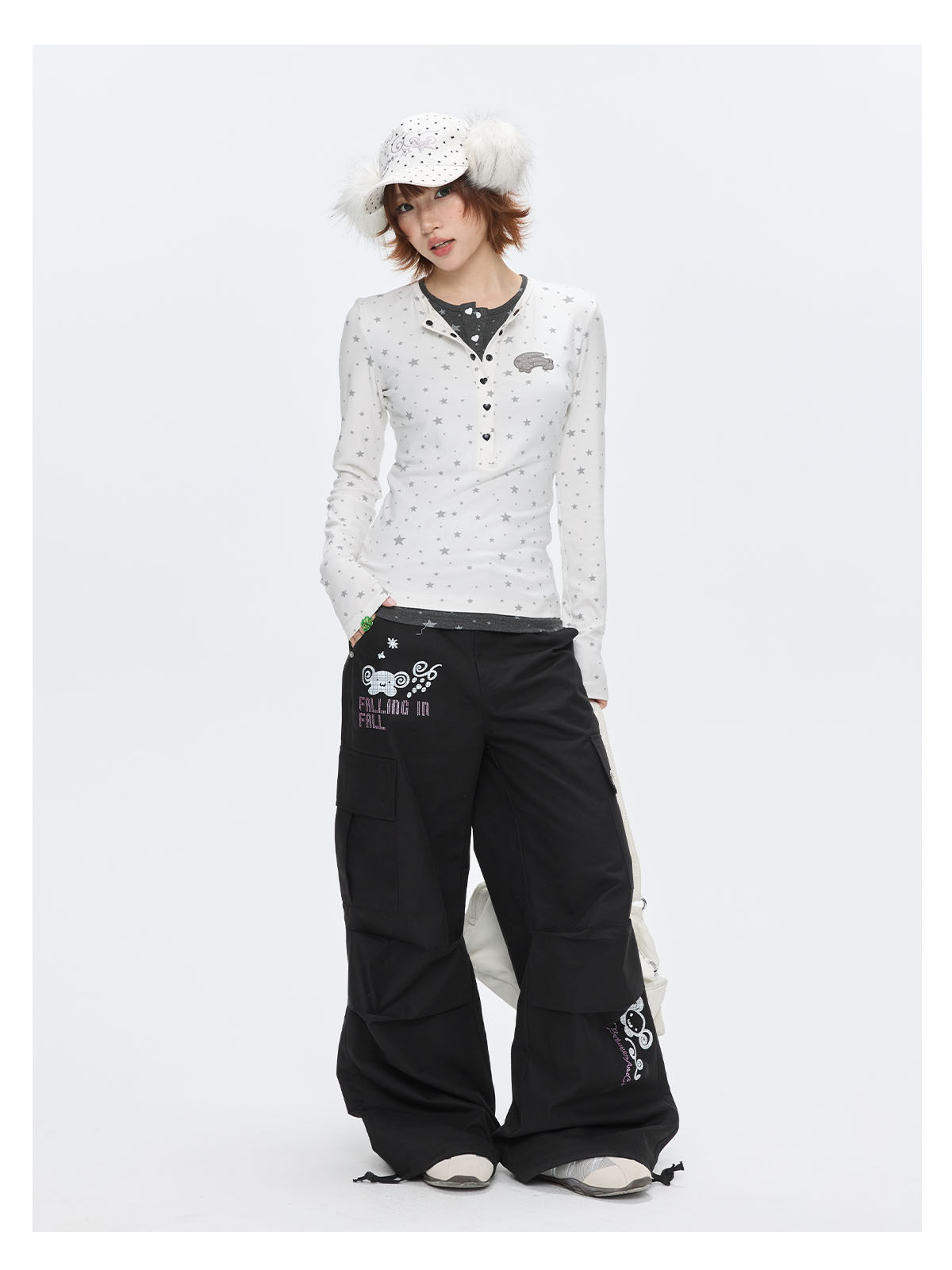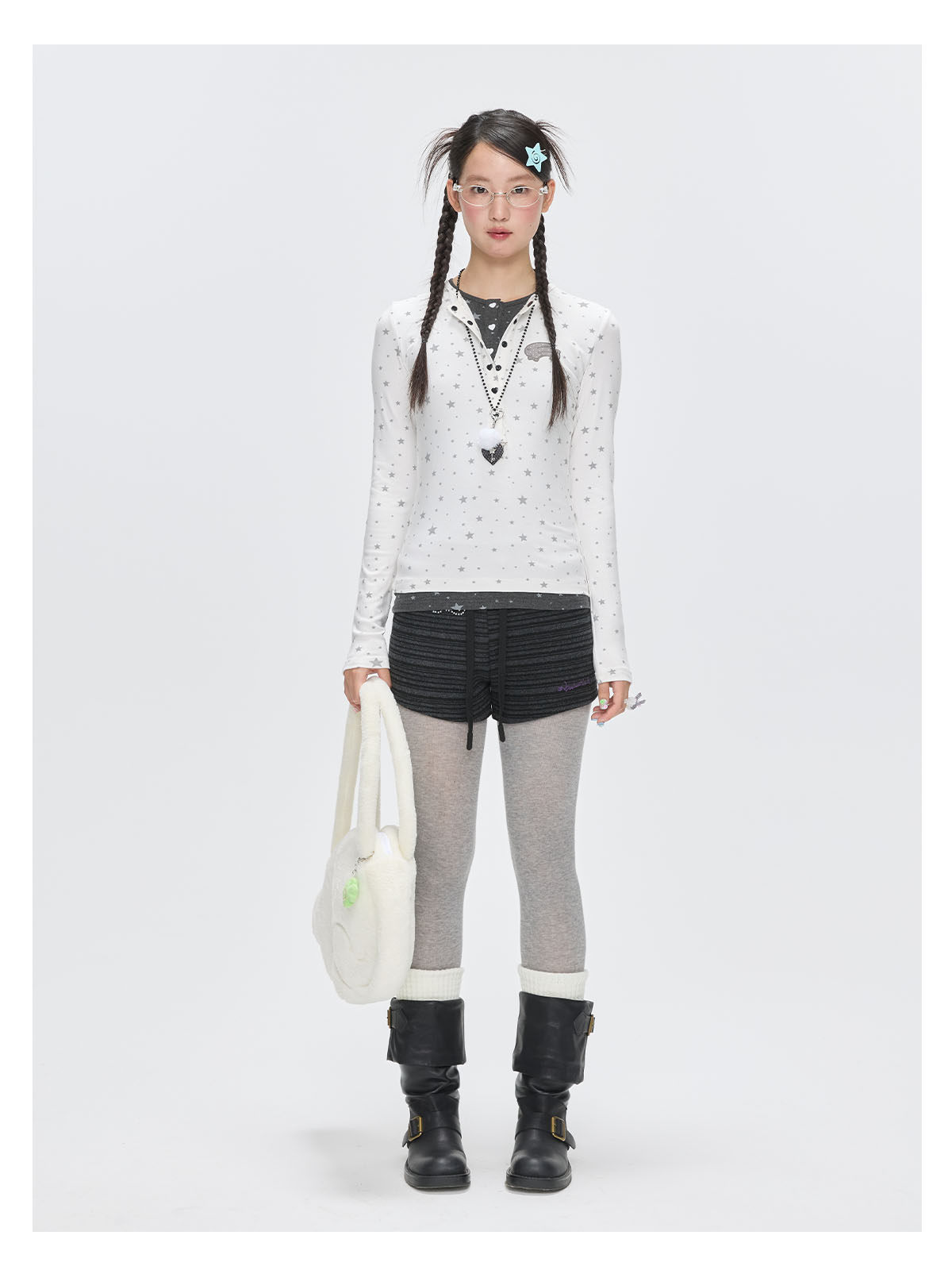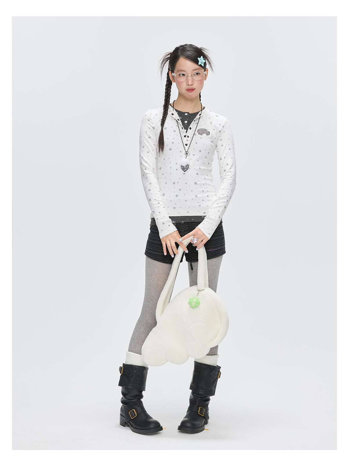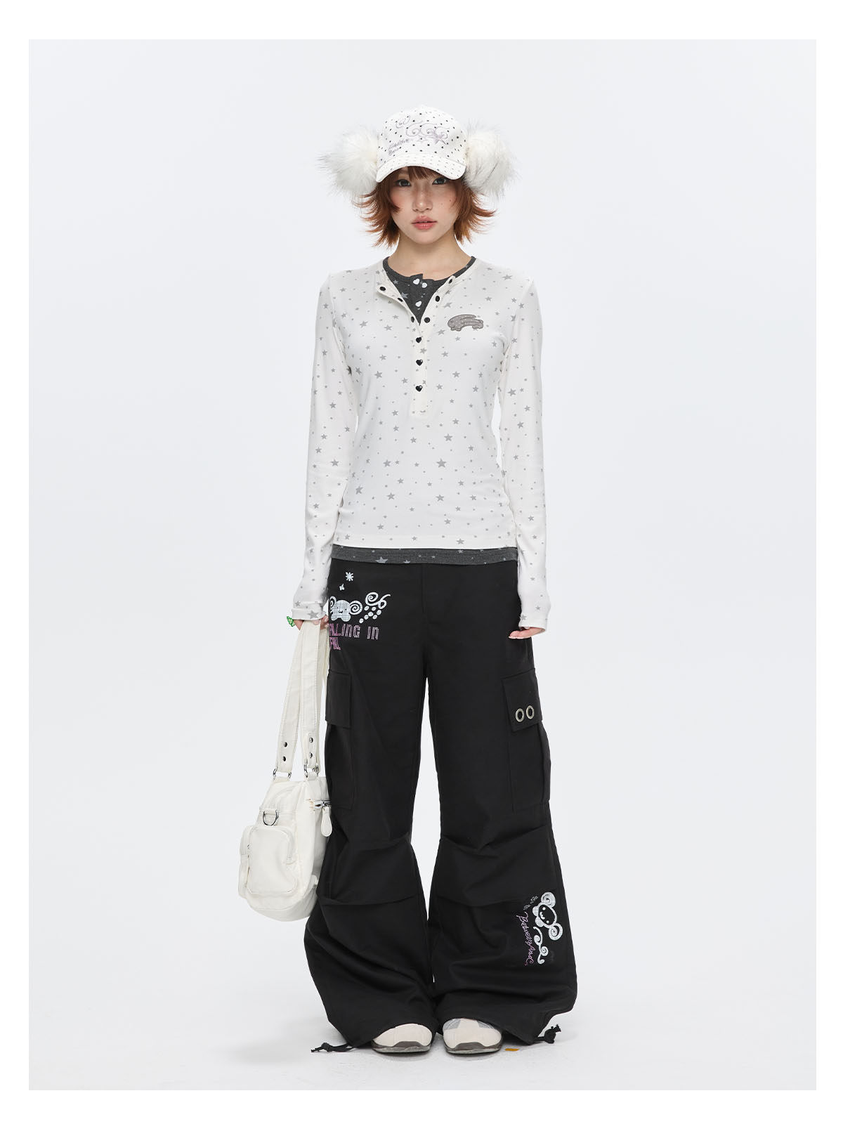 Layered Henley top with grey & white star polka-dot design Lookbook
