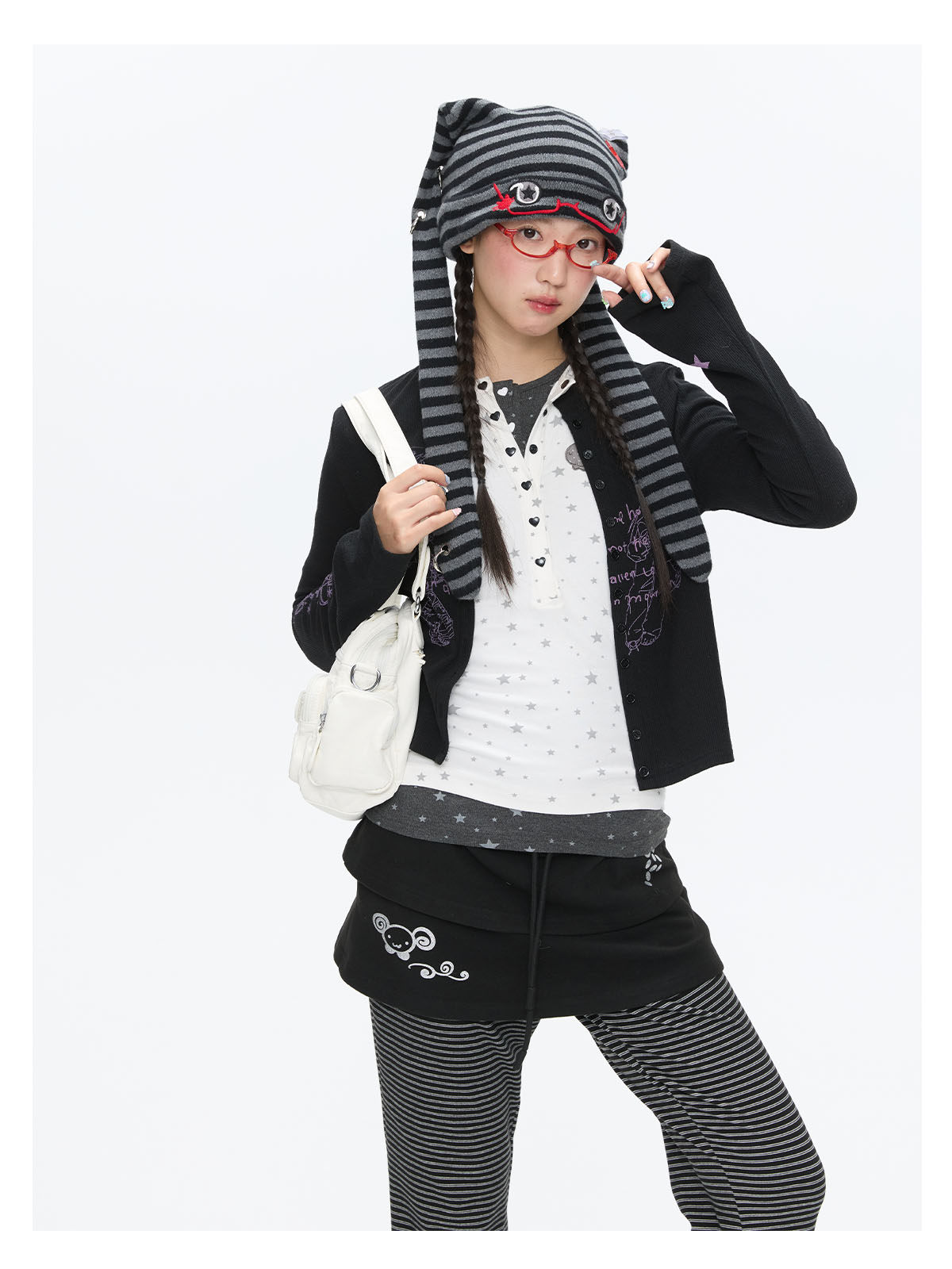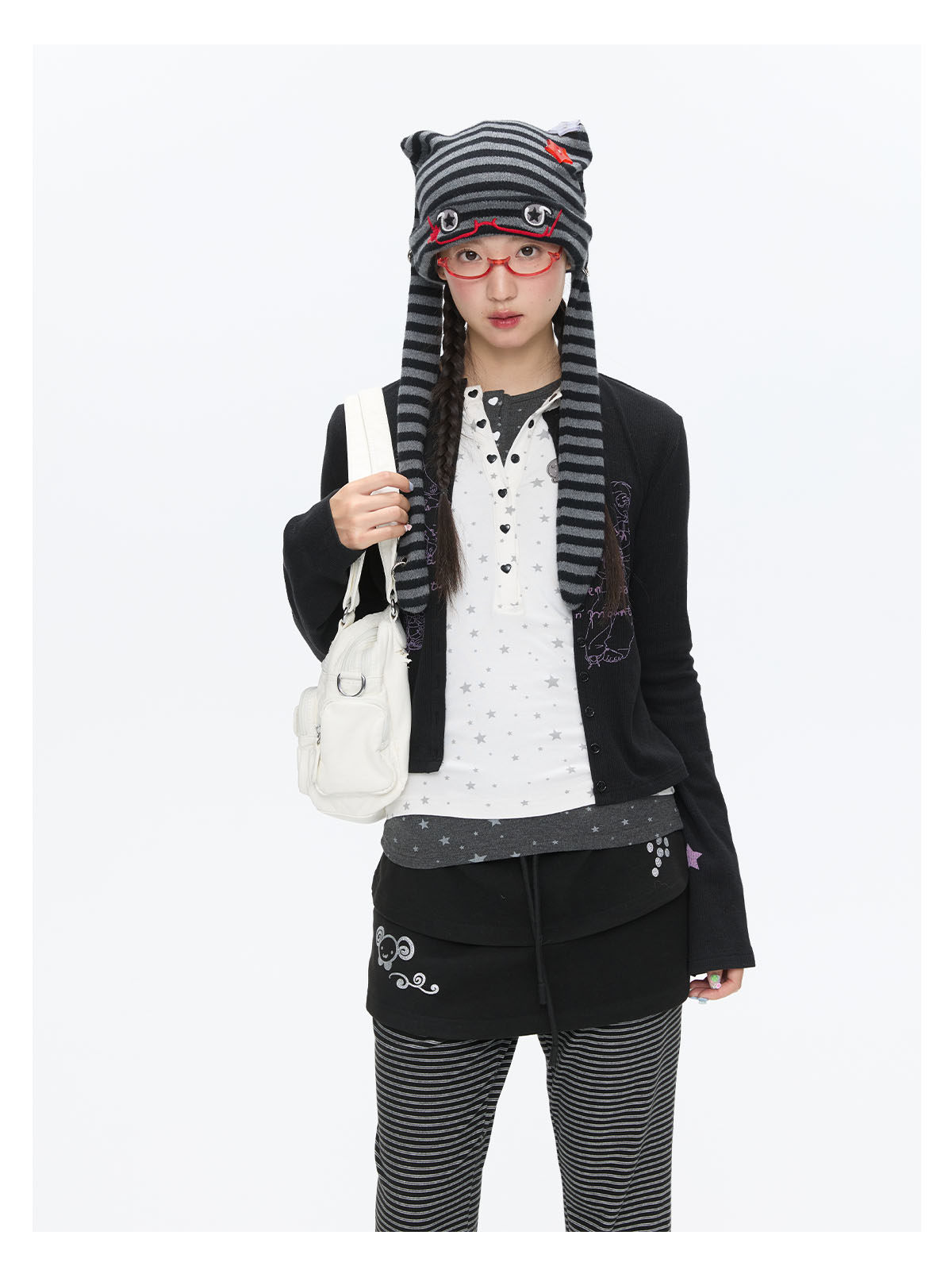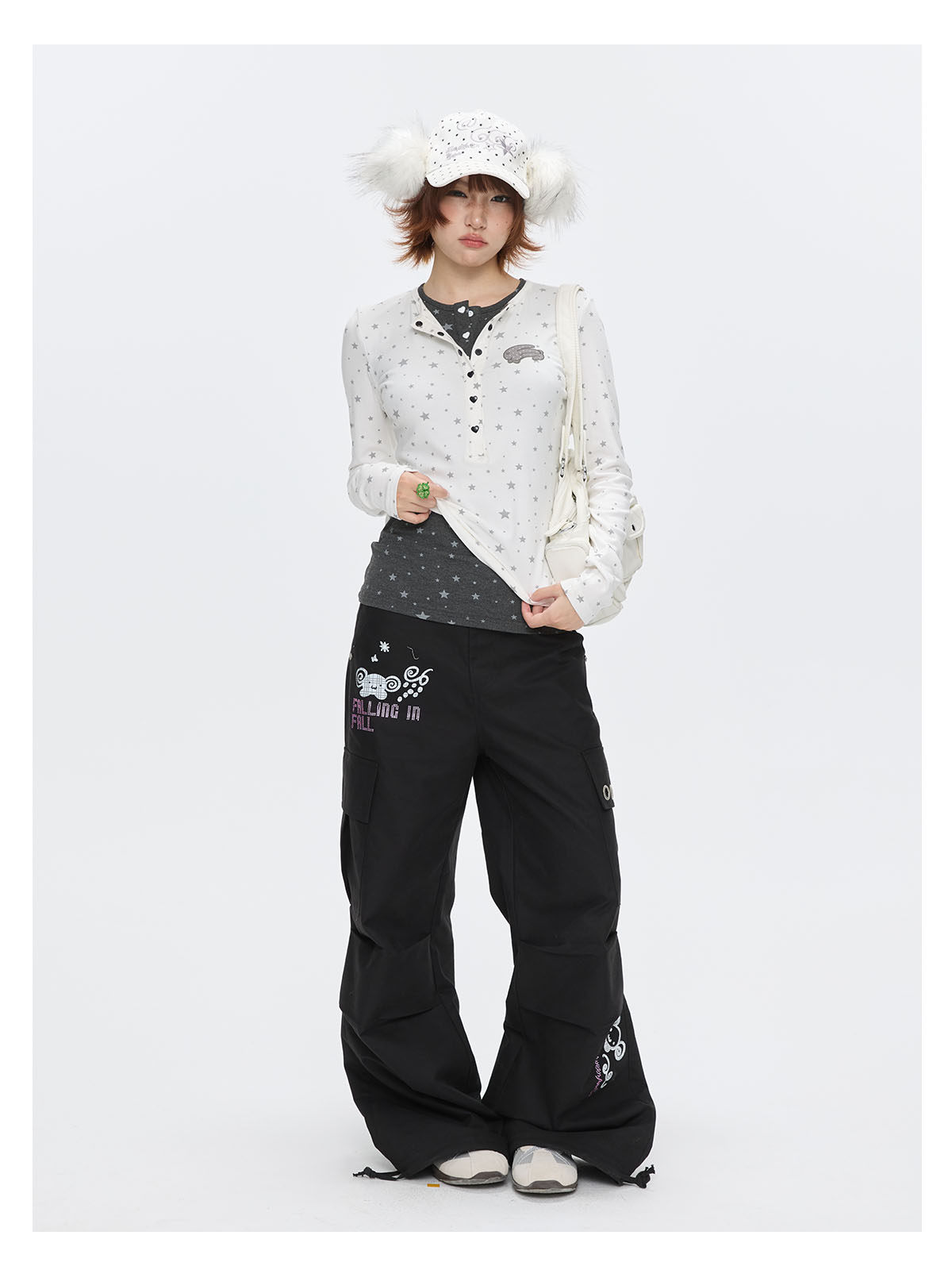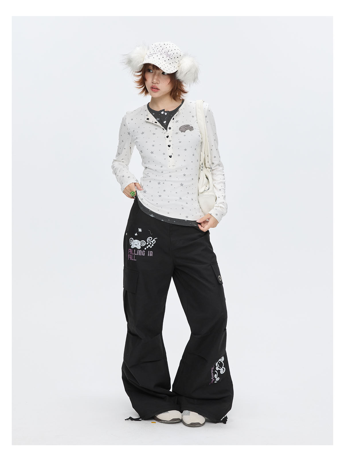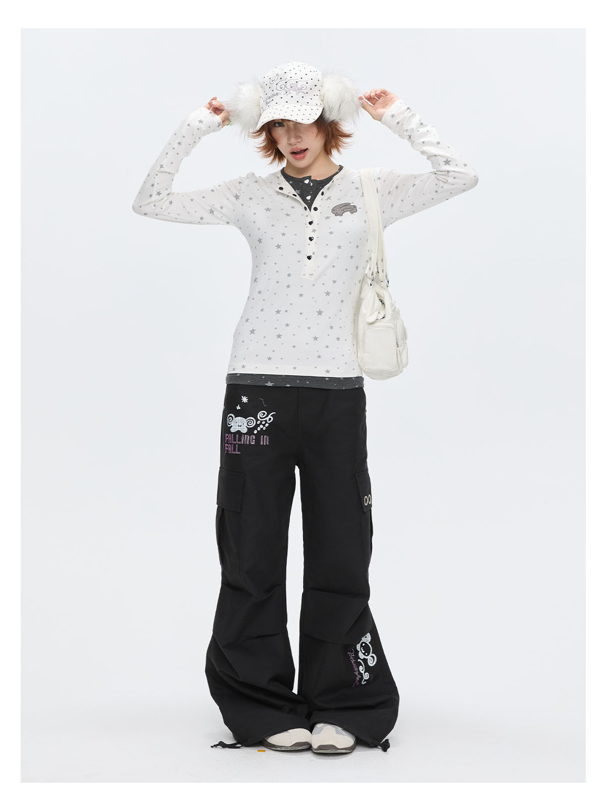 Layered Henley top with grey & white star polka-dot design Lookbook