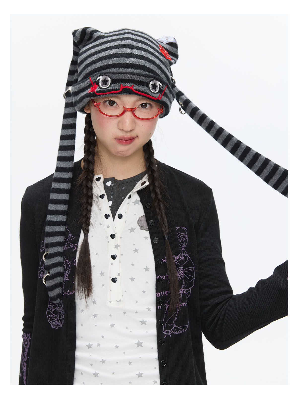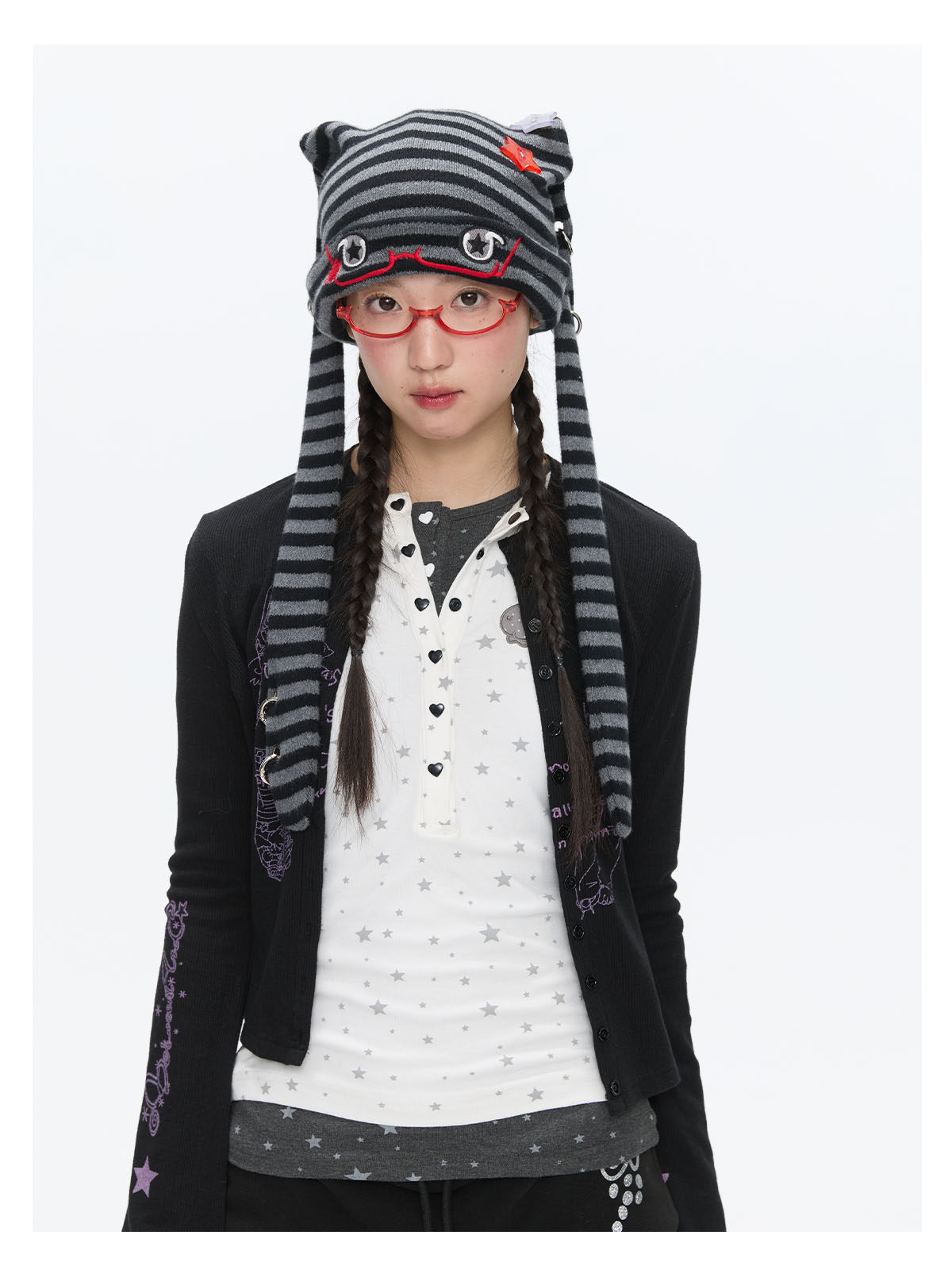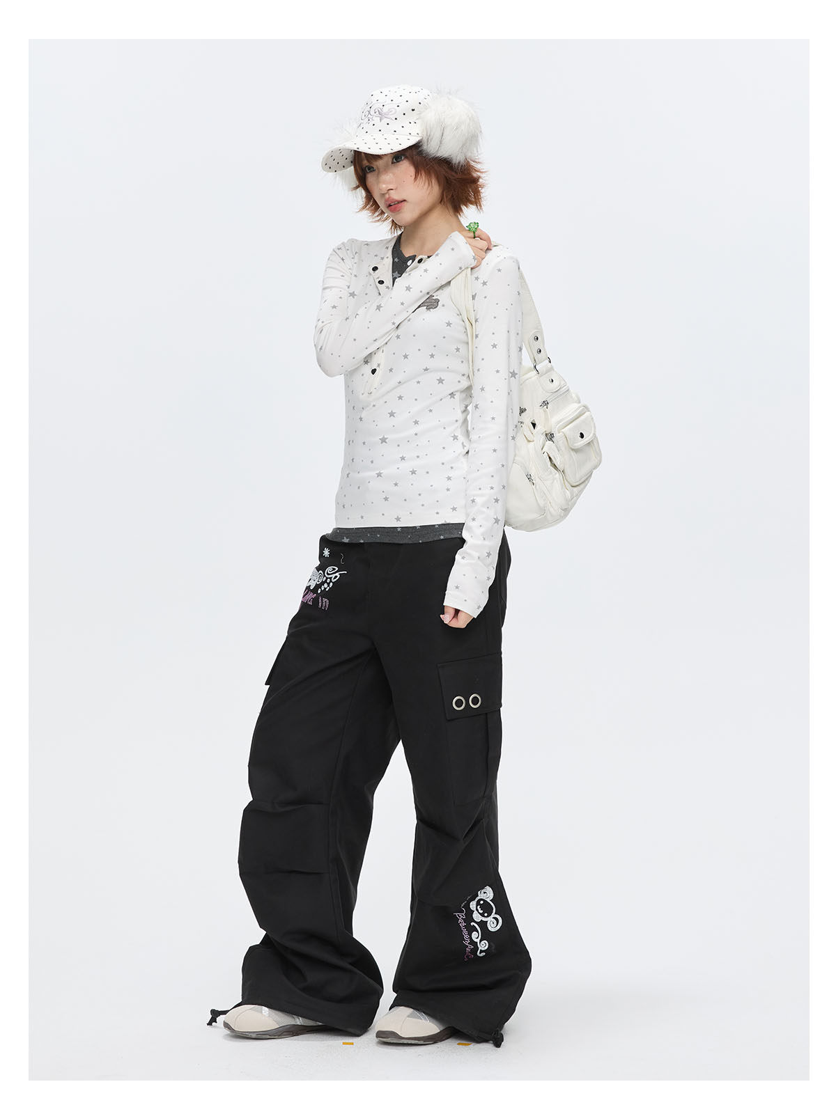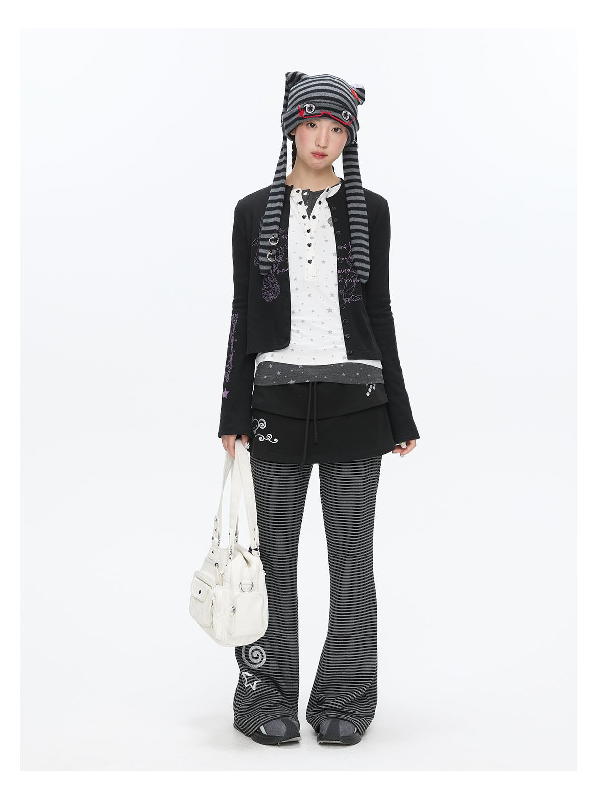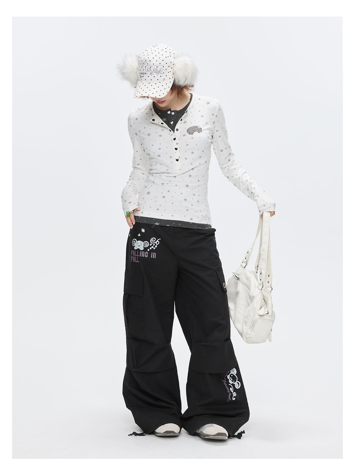 Layered Henley top with grey & white star polka-dot design Lookbook