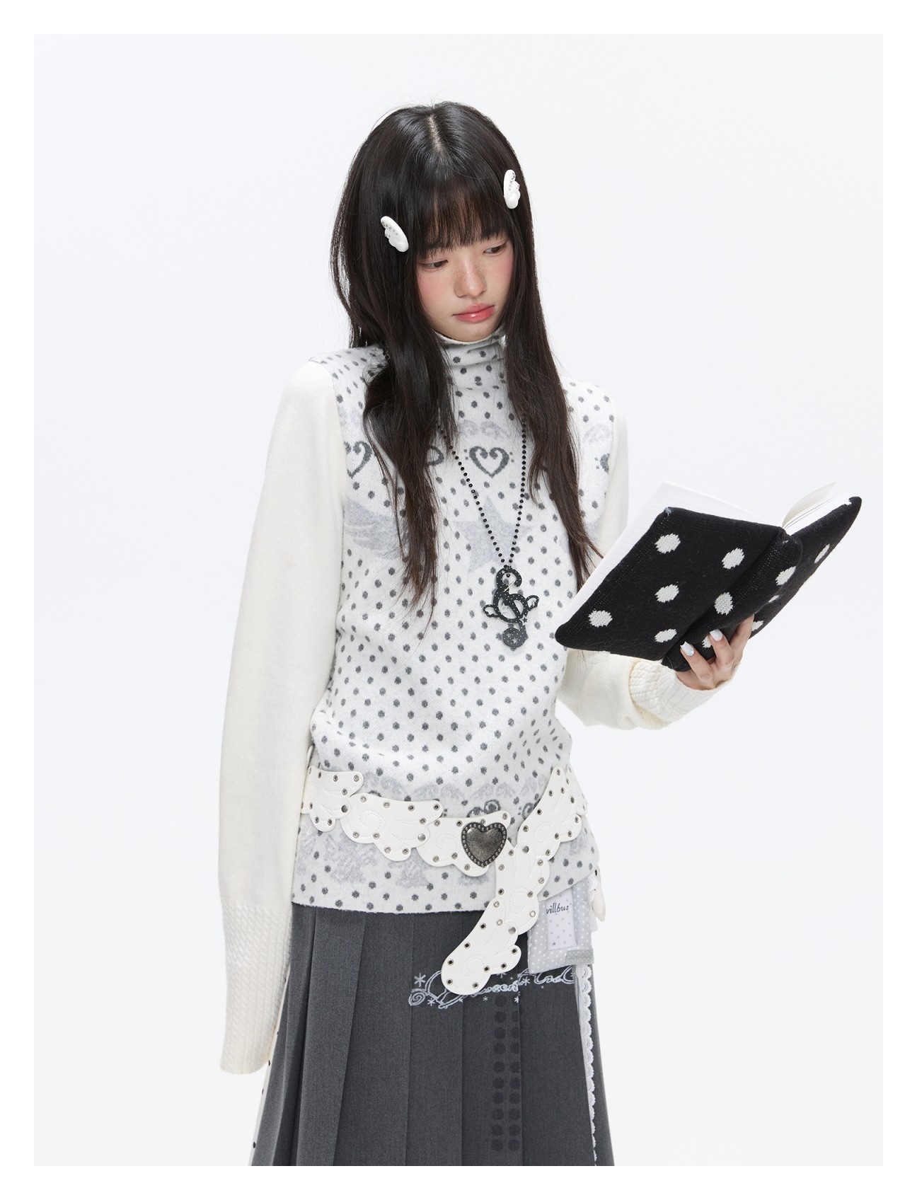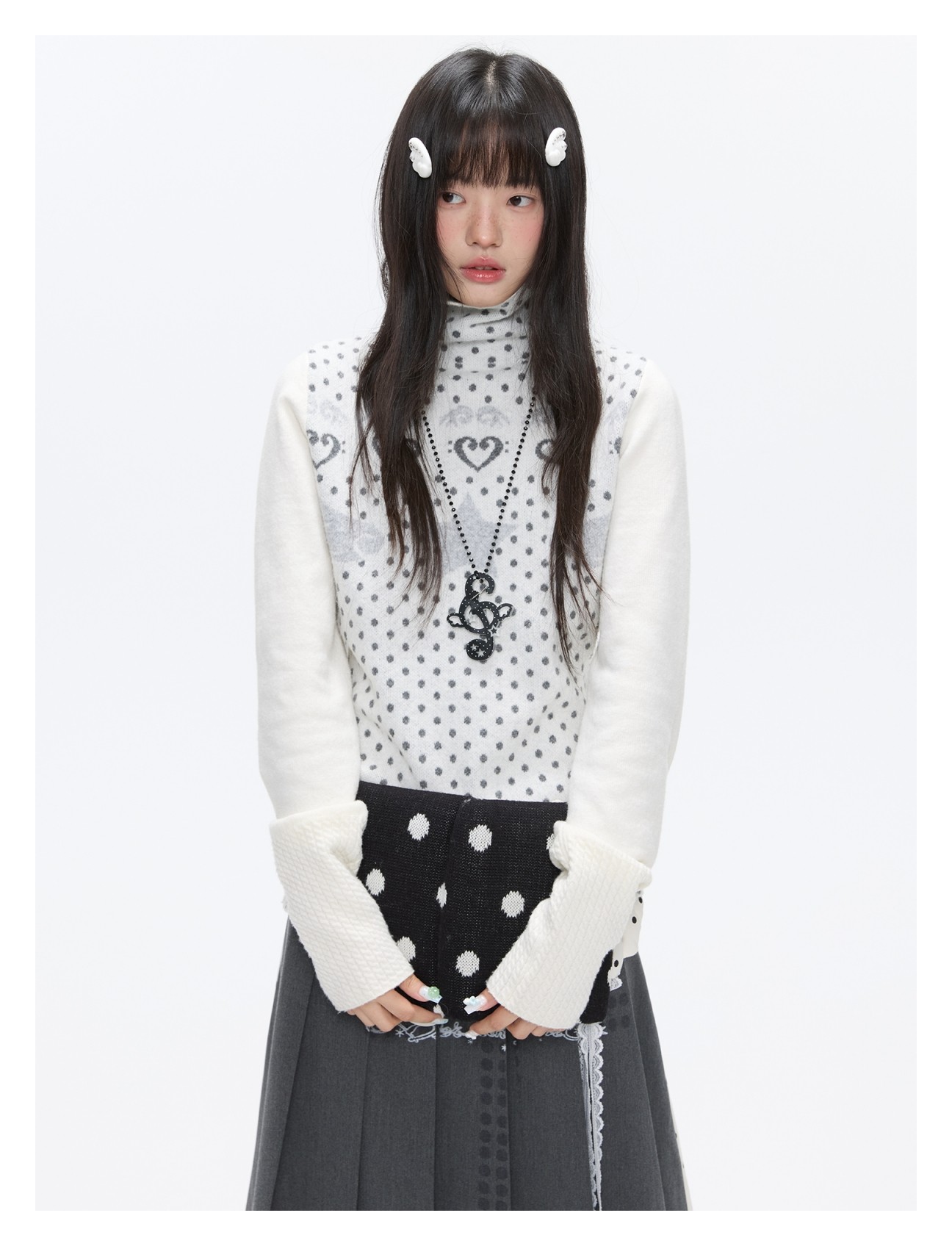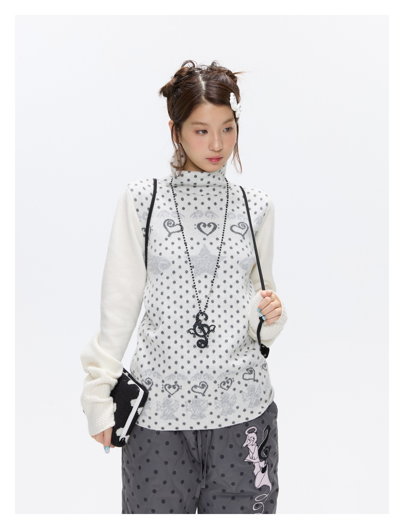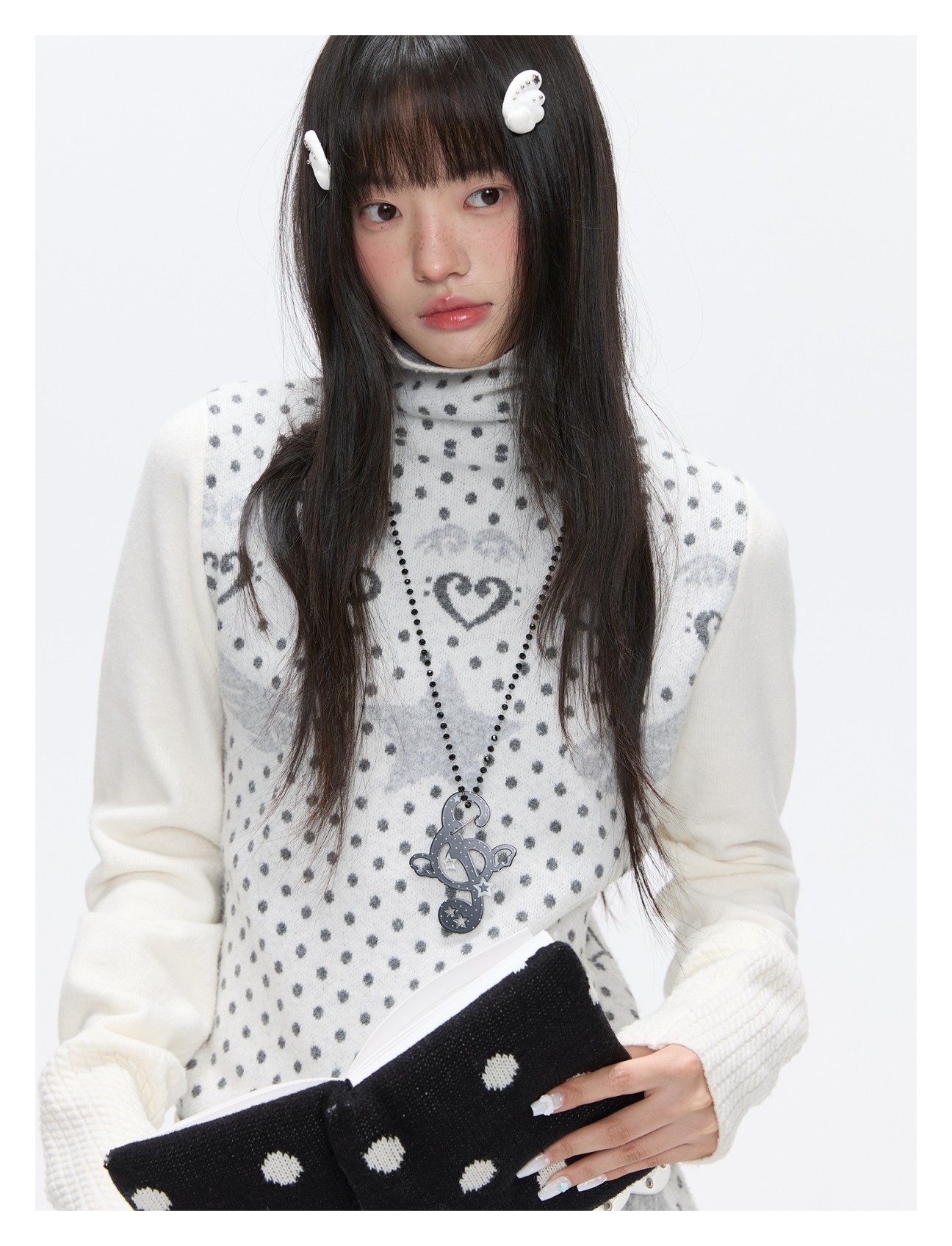 Oatmeal White Cashmere-Blend Turtleneck Polka-Dot Knit Sweater Lookbook