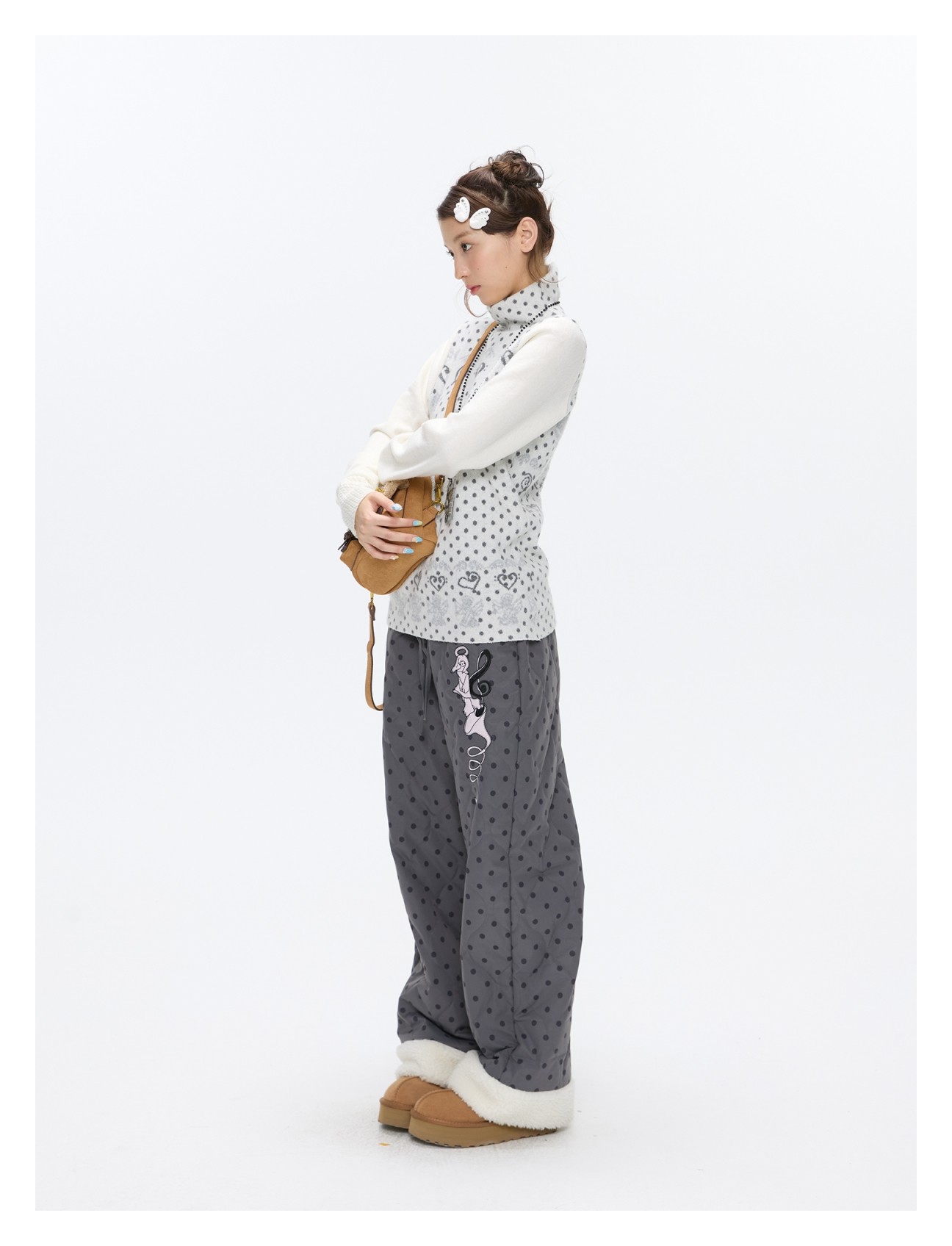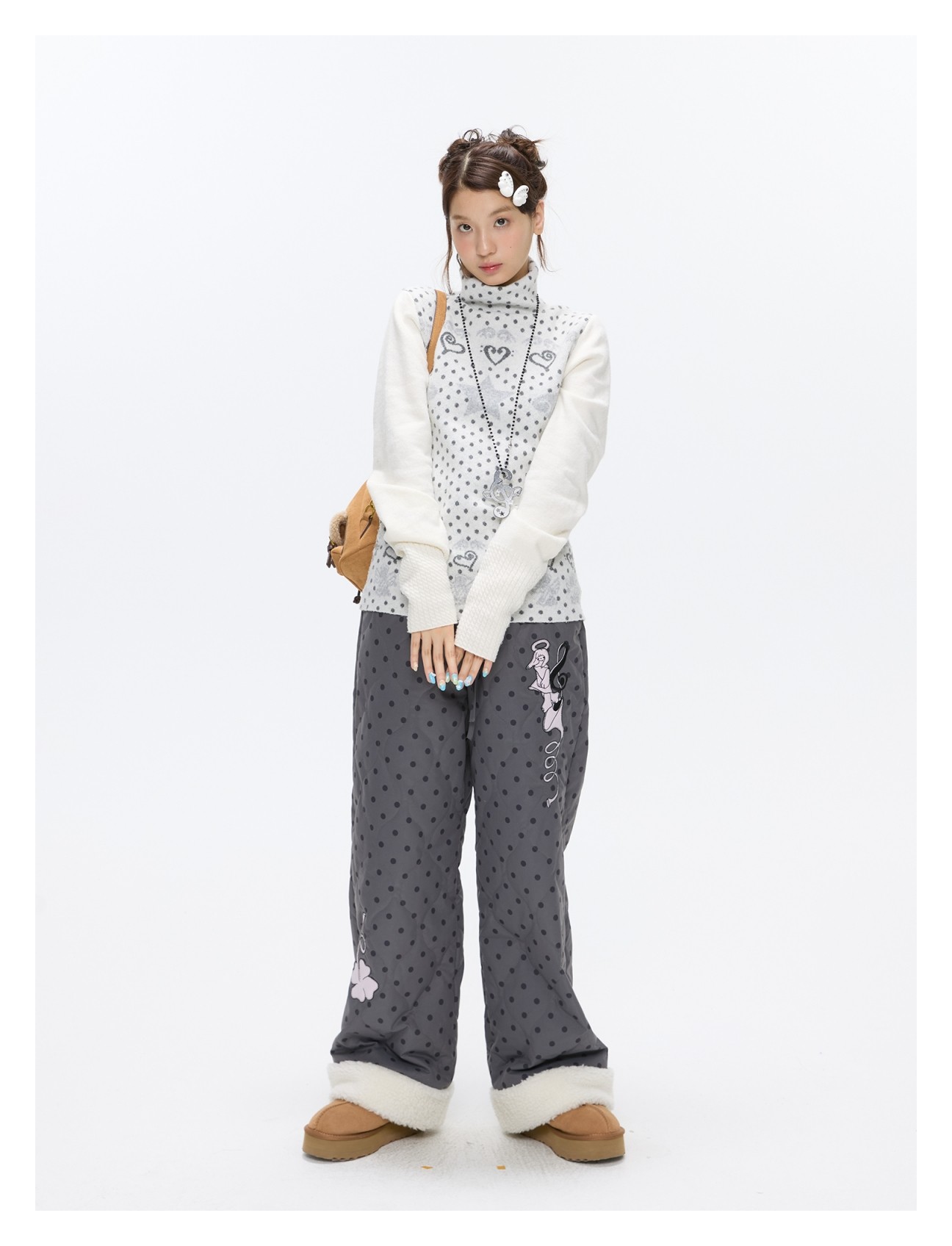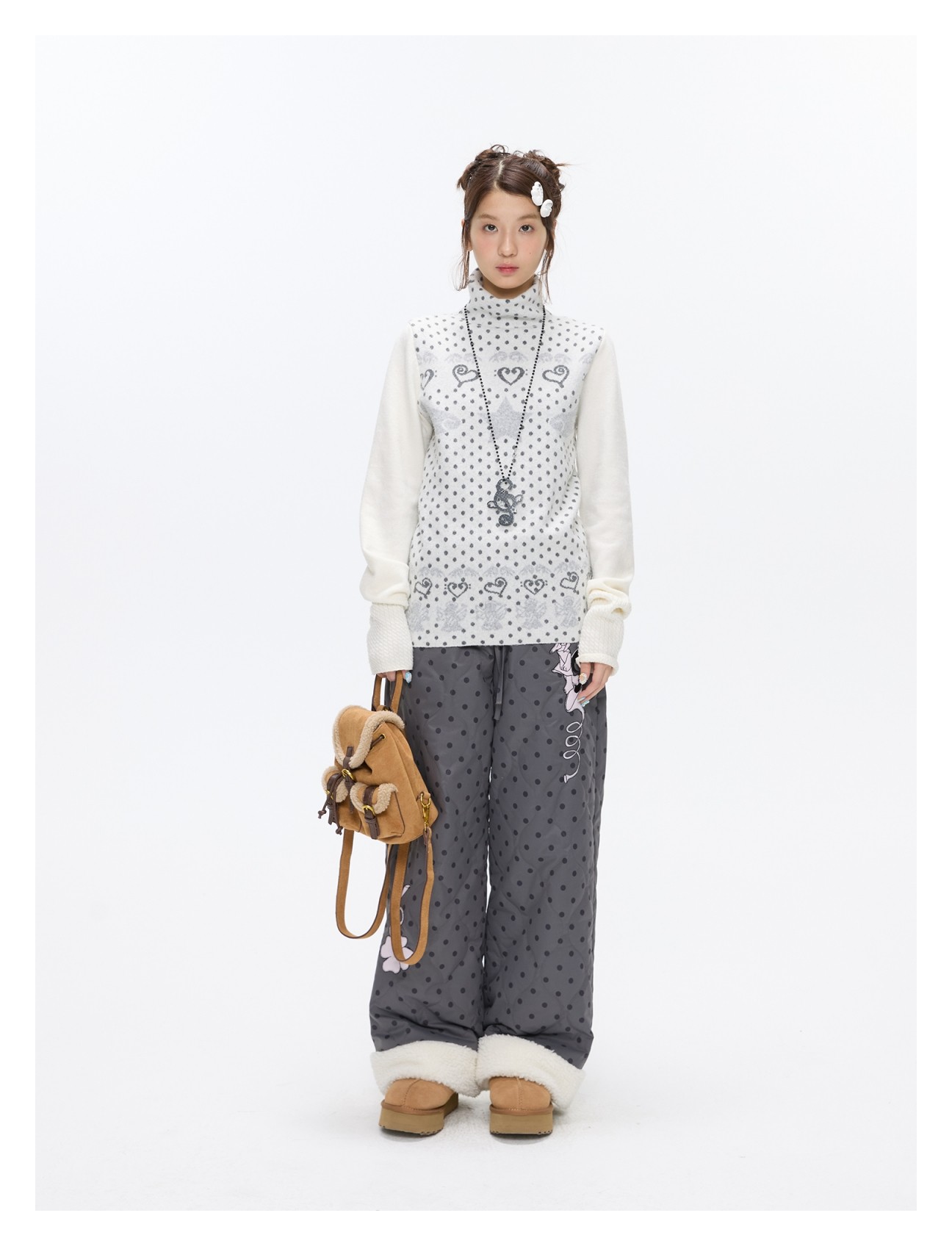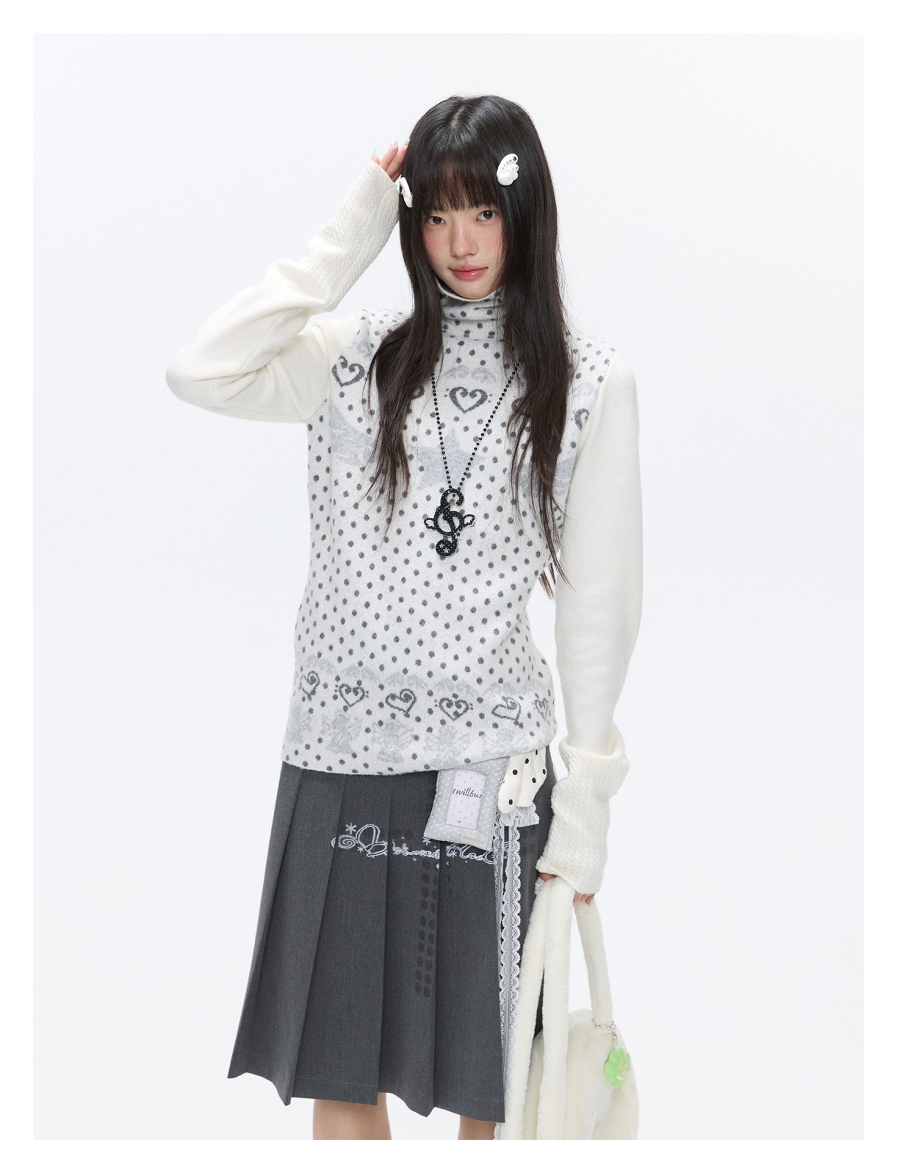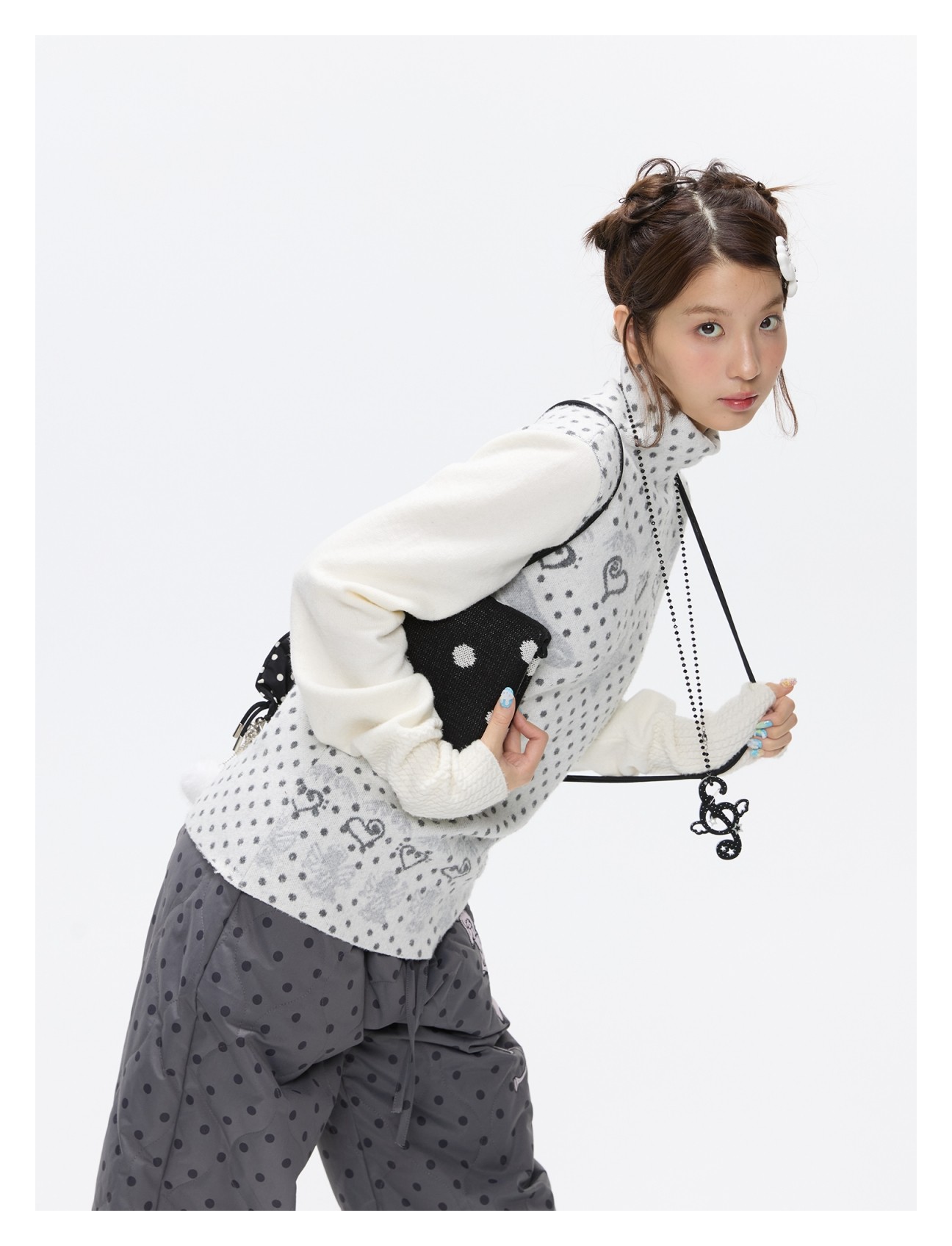 Oatmeal White Cashmere-Blend Turtleneck Polka-Dot Knit Sweater Lookbook