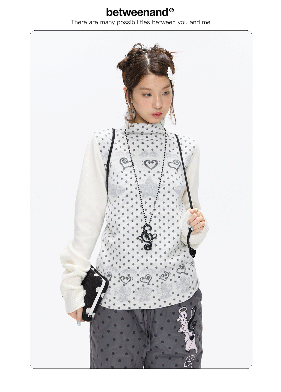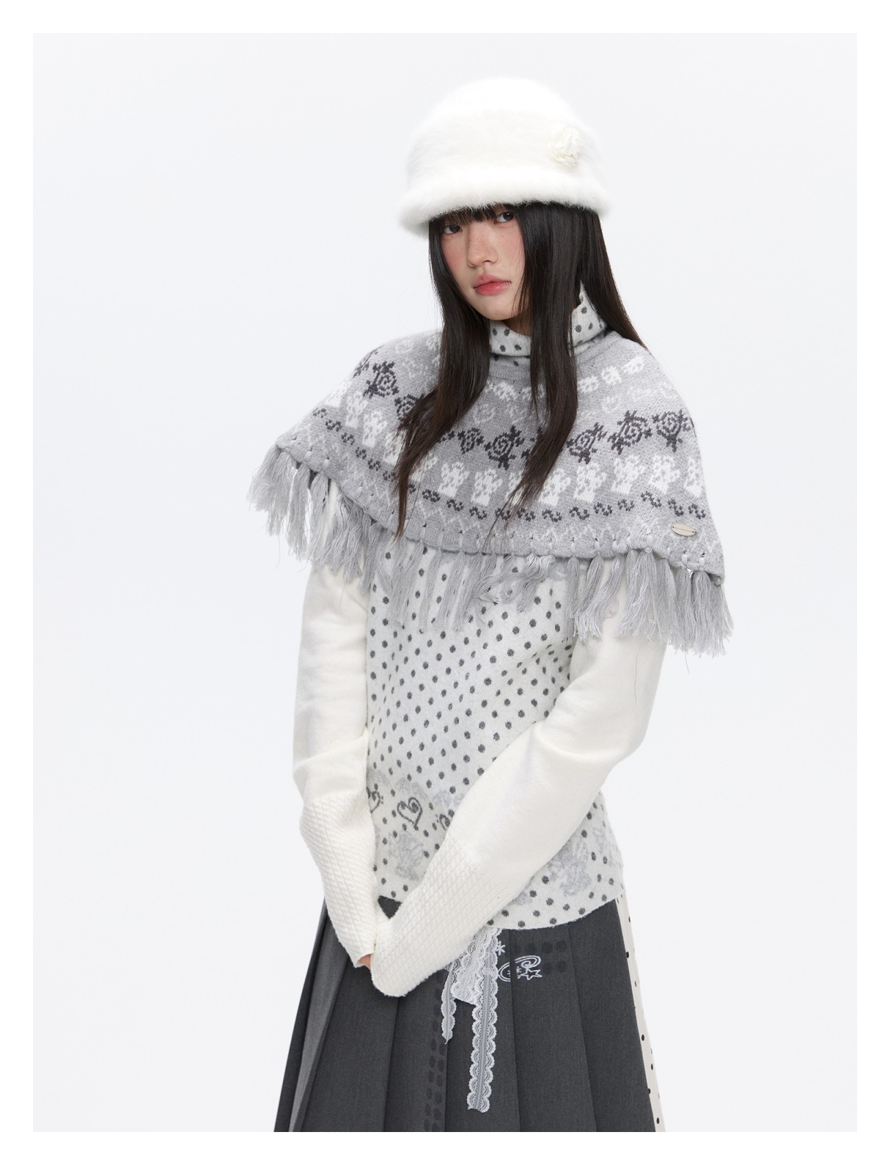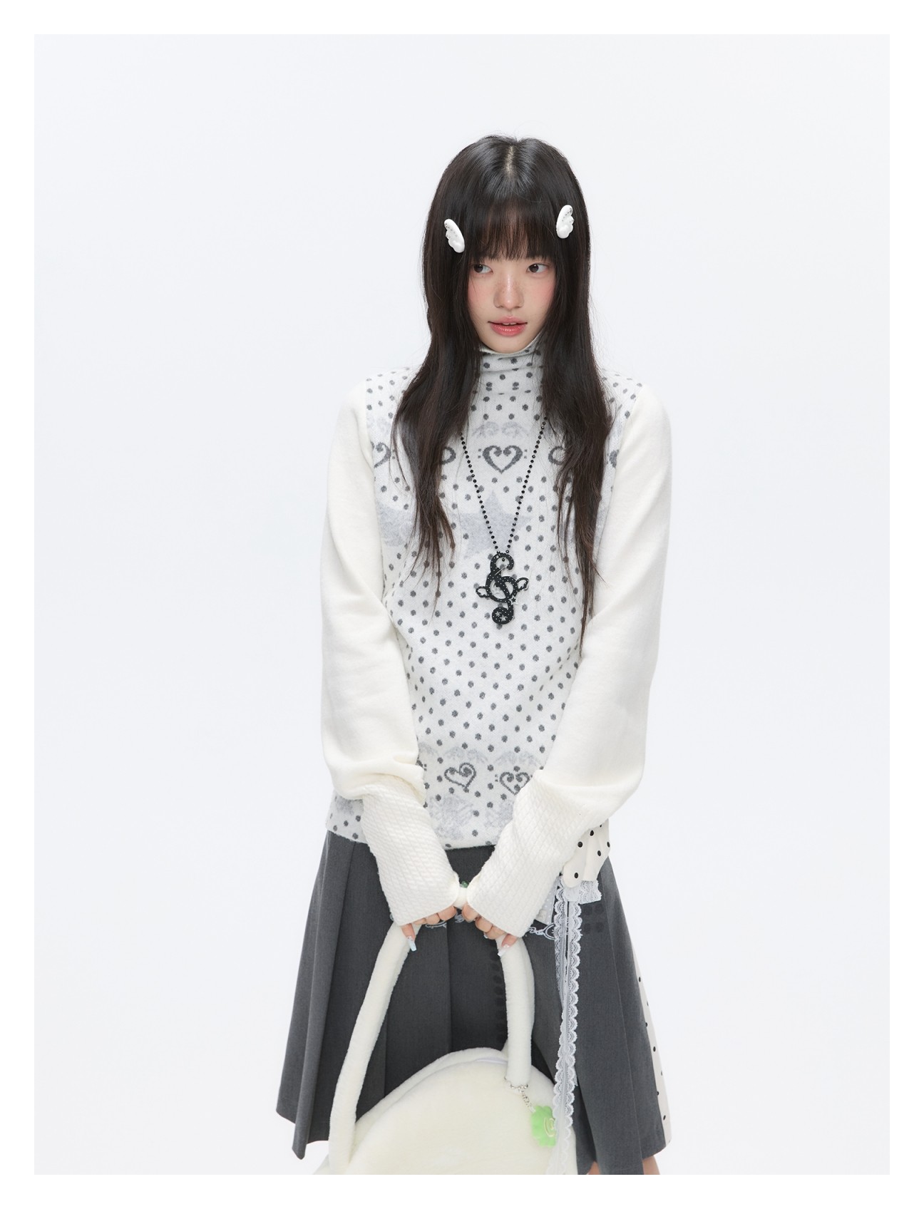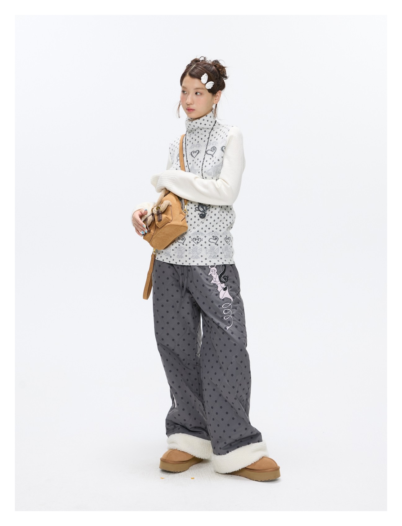 Oatmeal White Cashmere-Blend Turtleneck Polka-Dot Knit Sweater Lookbook