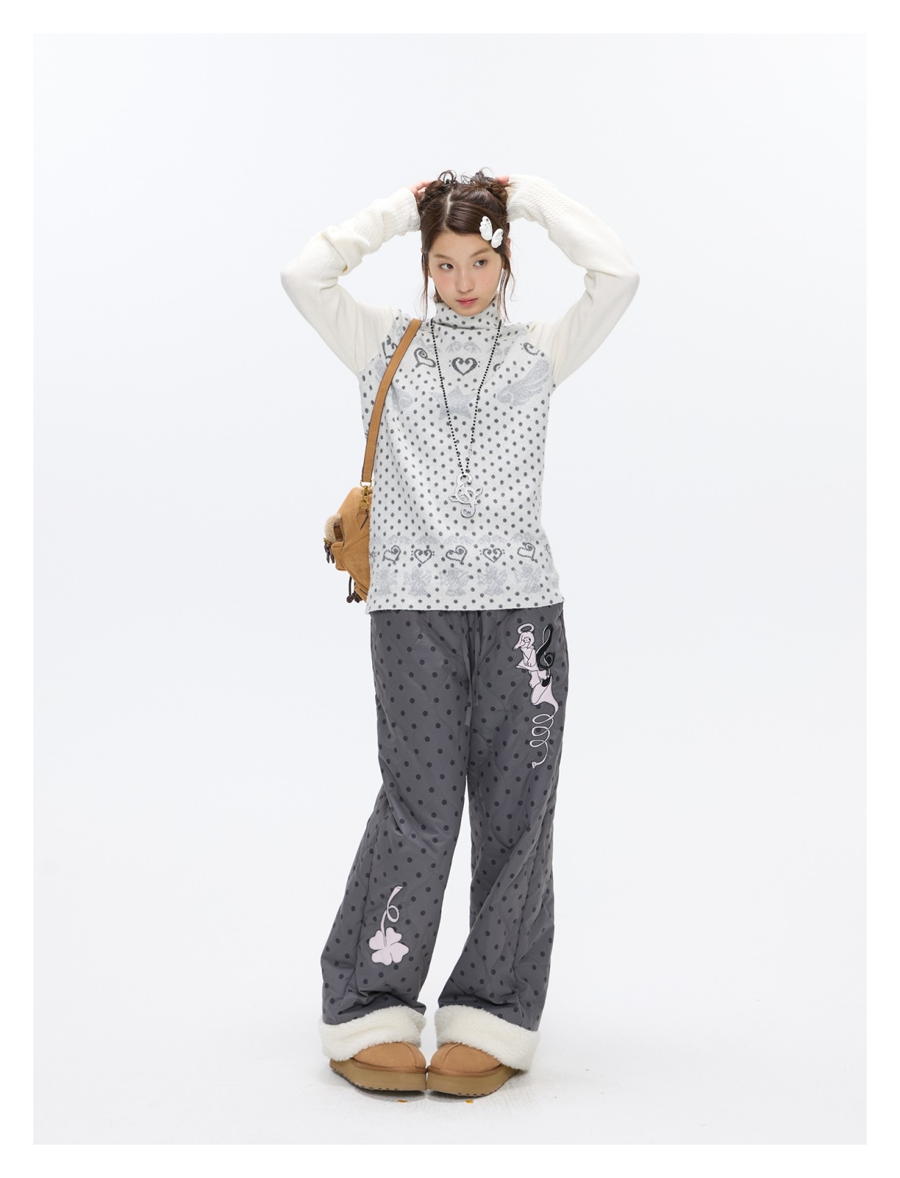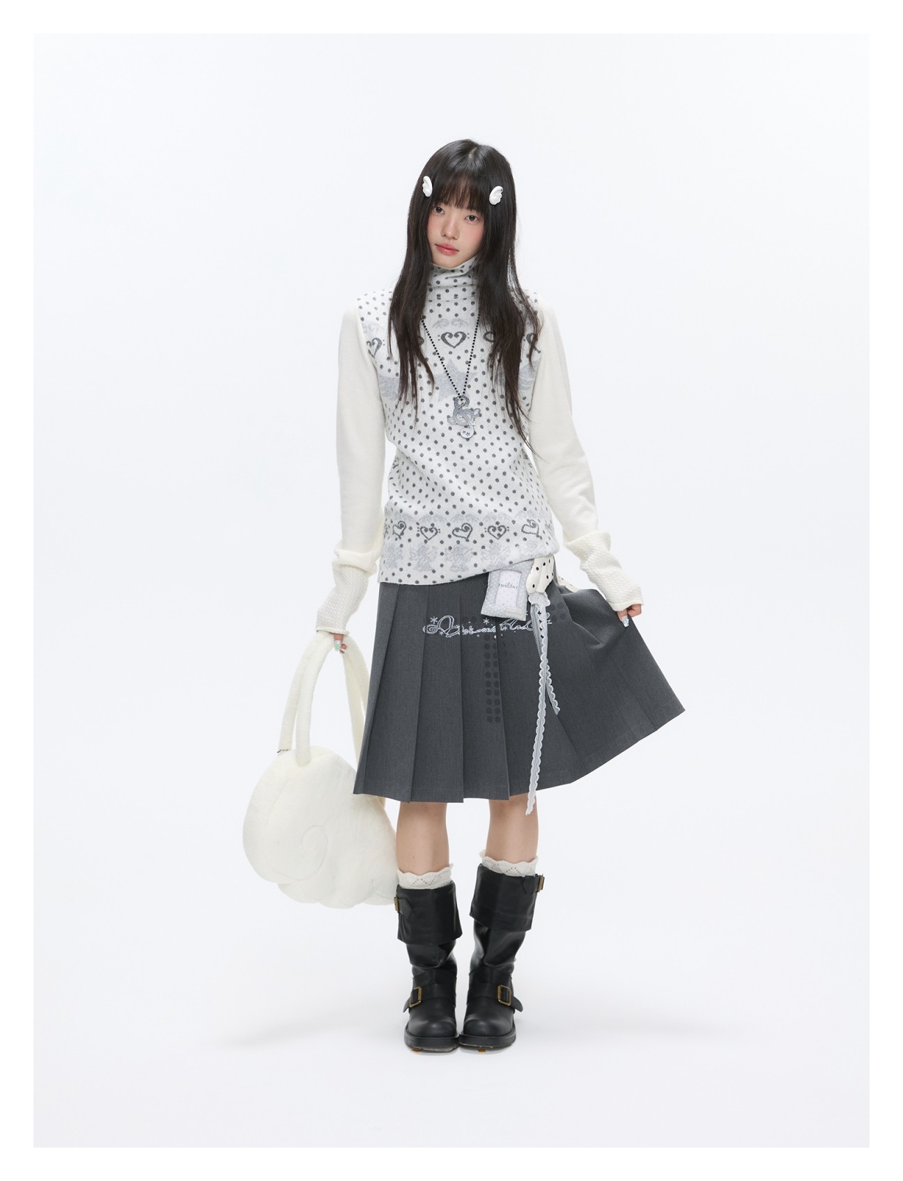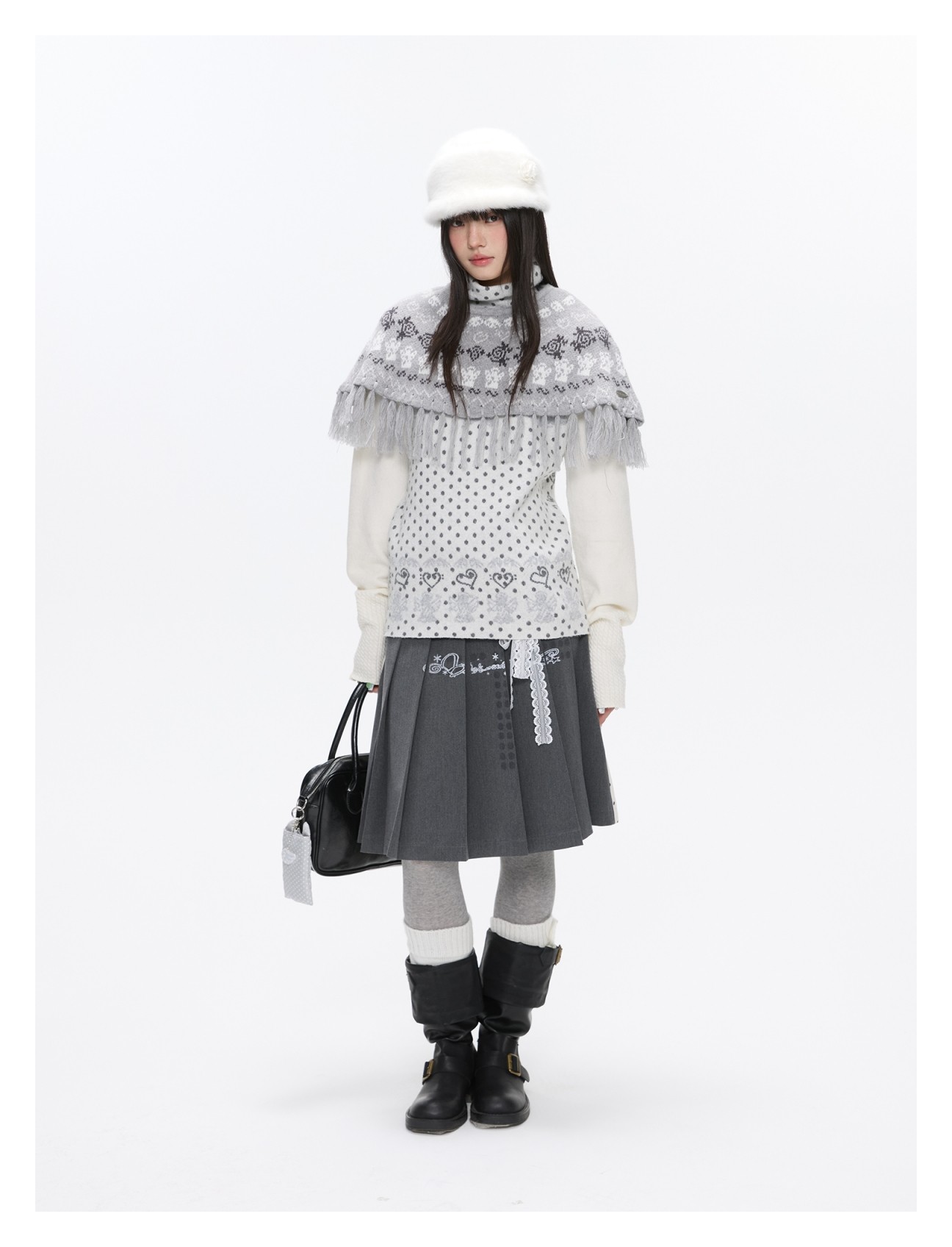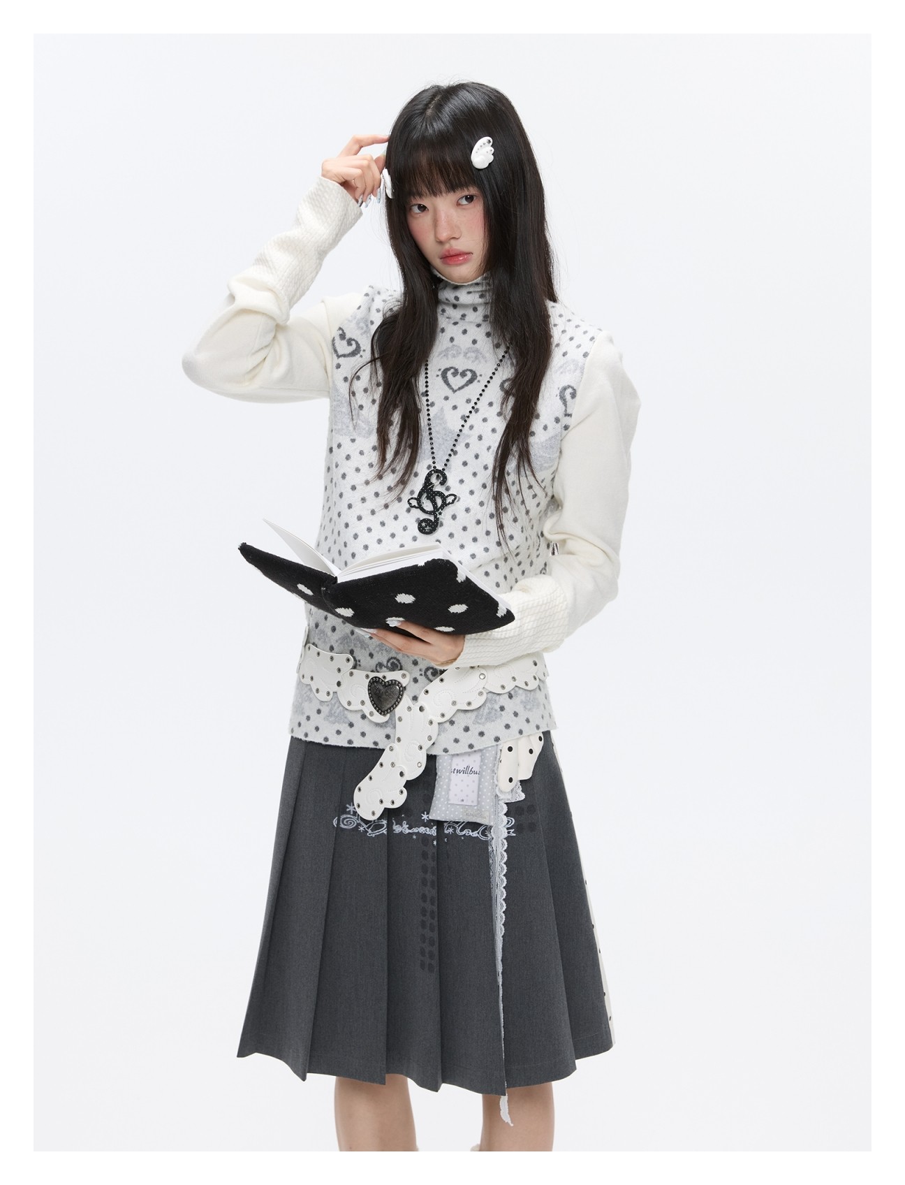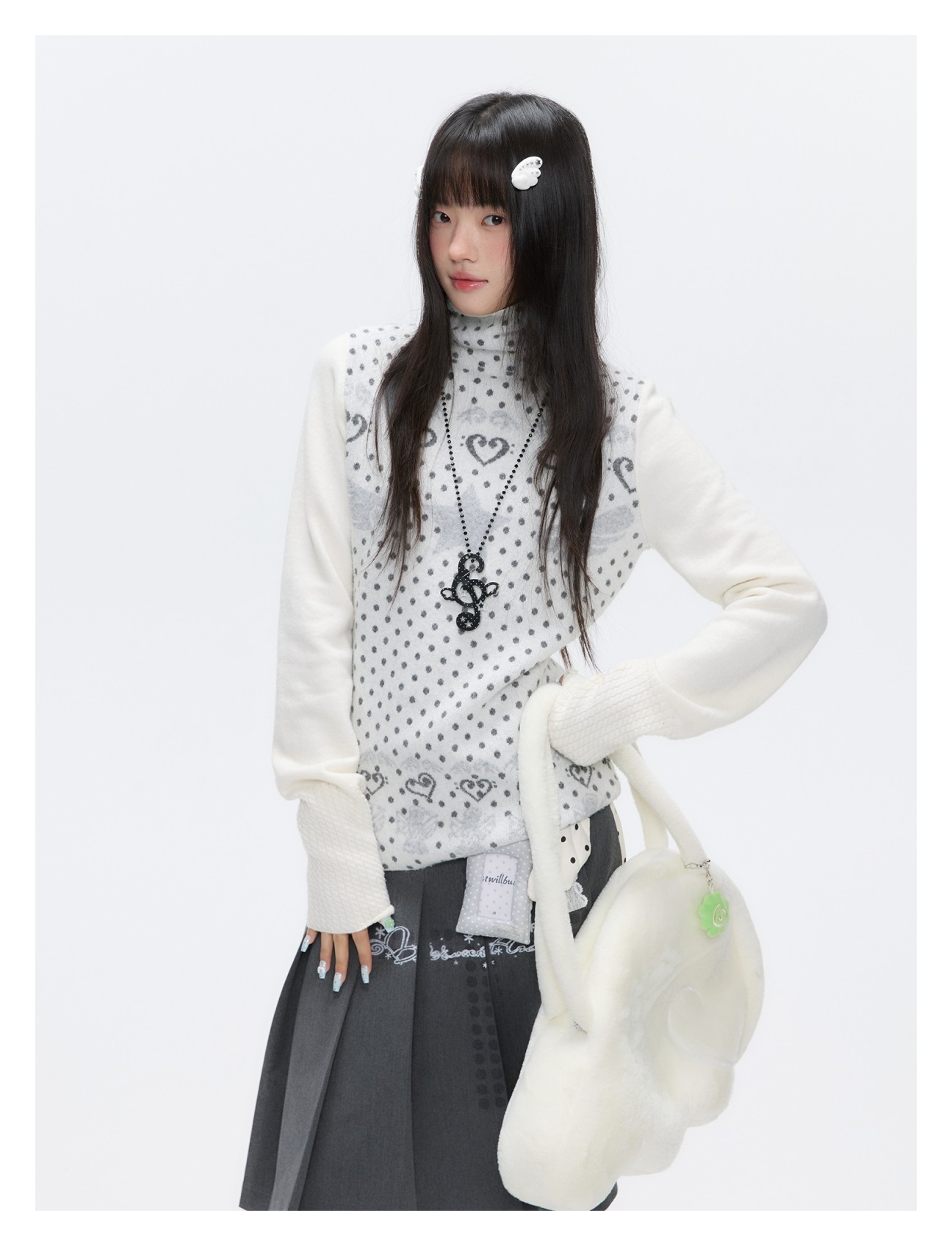 Oatmeal White Cashmere-Blend Turtleneck Polka-Dot Knit Sweater Lookbook