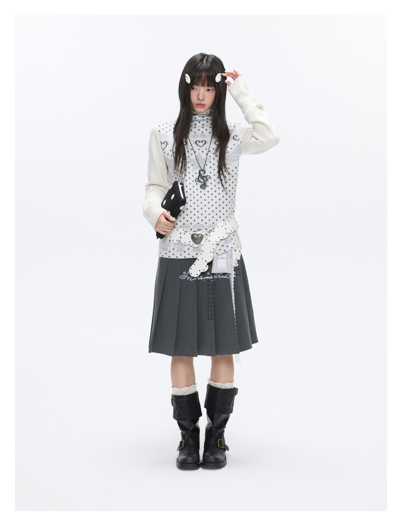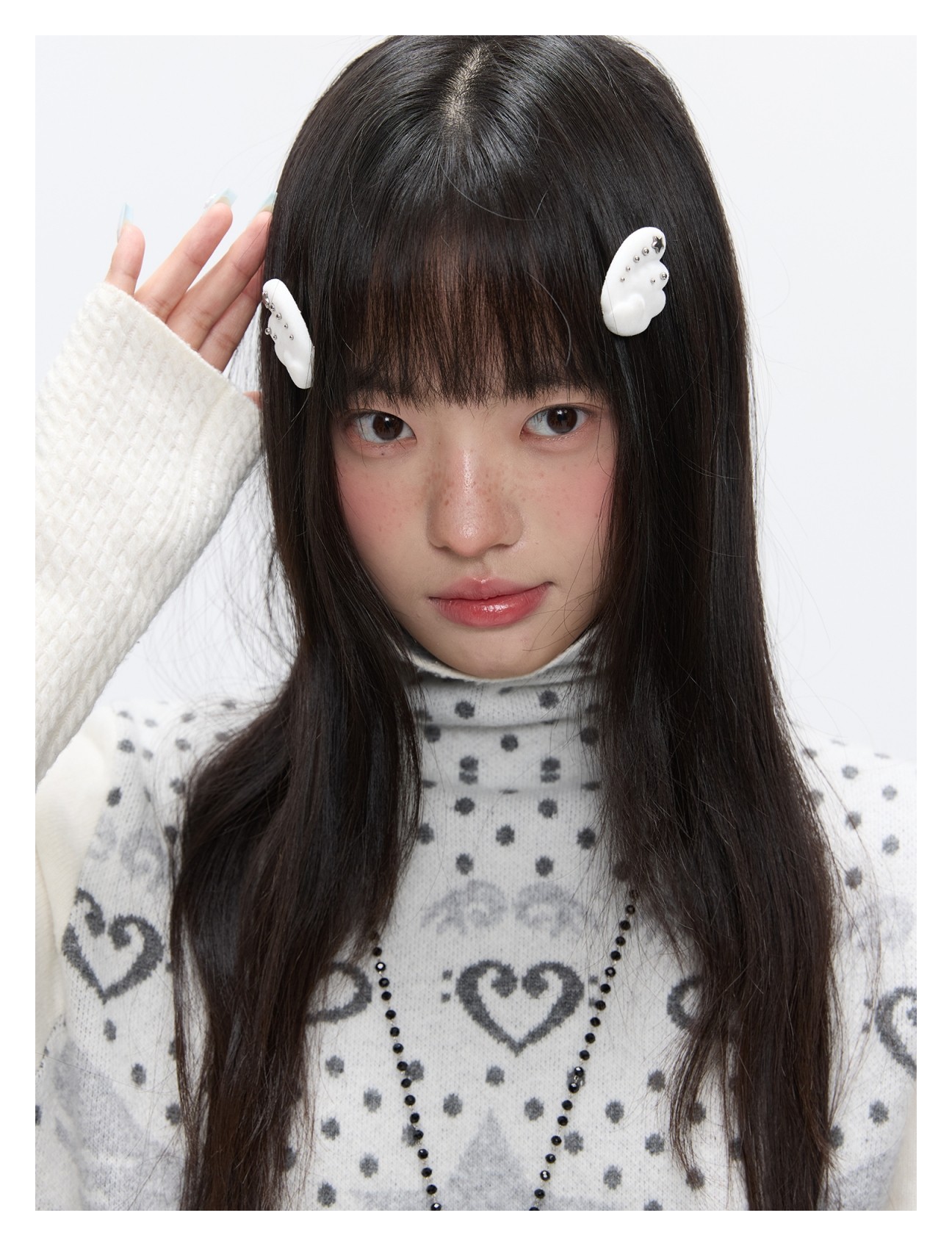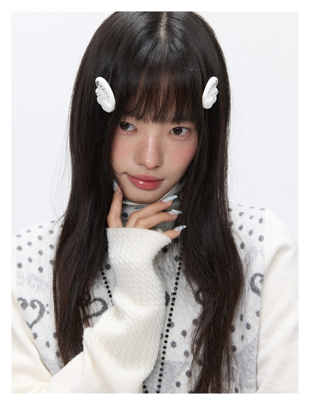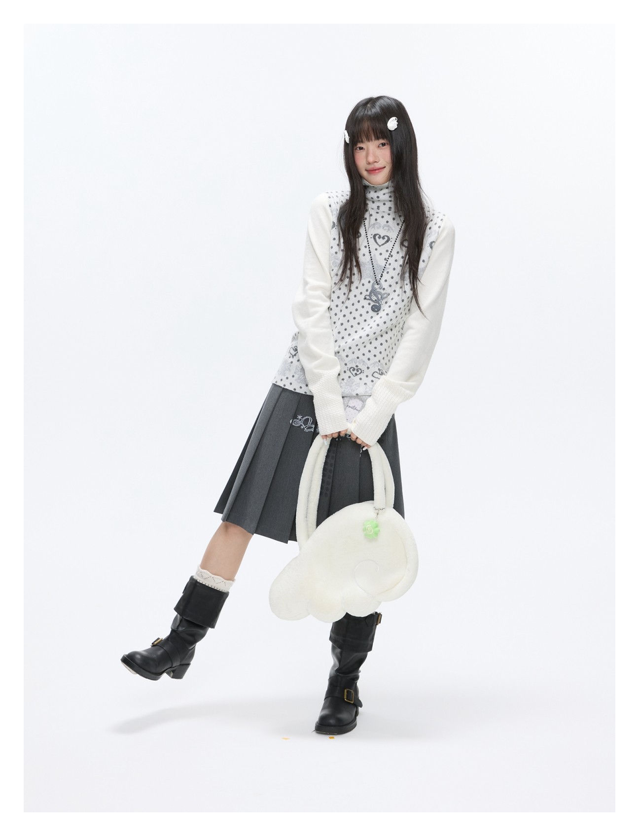 Oatmeal White Cashmere-Blend Turtleneck Polka-Dot Knit Sweater Lookbook