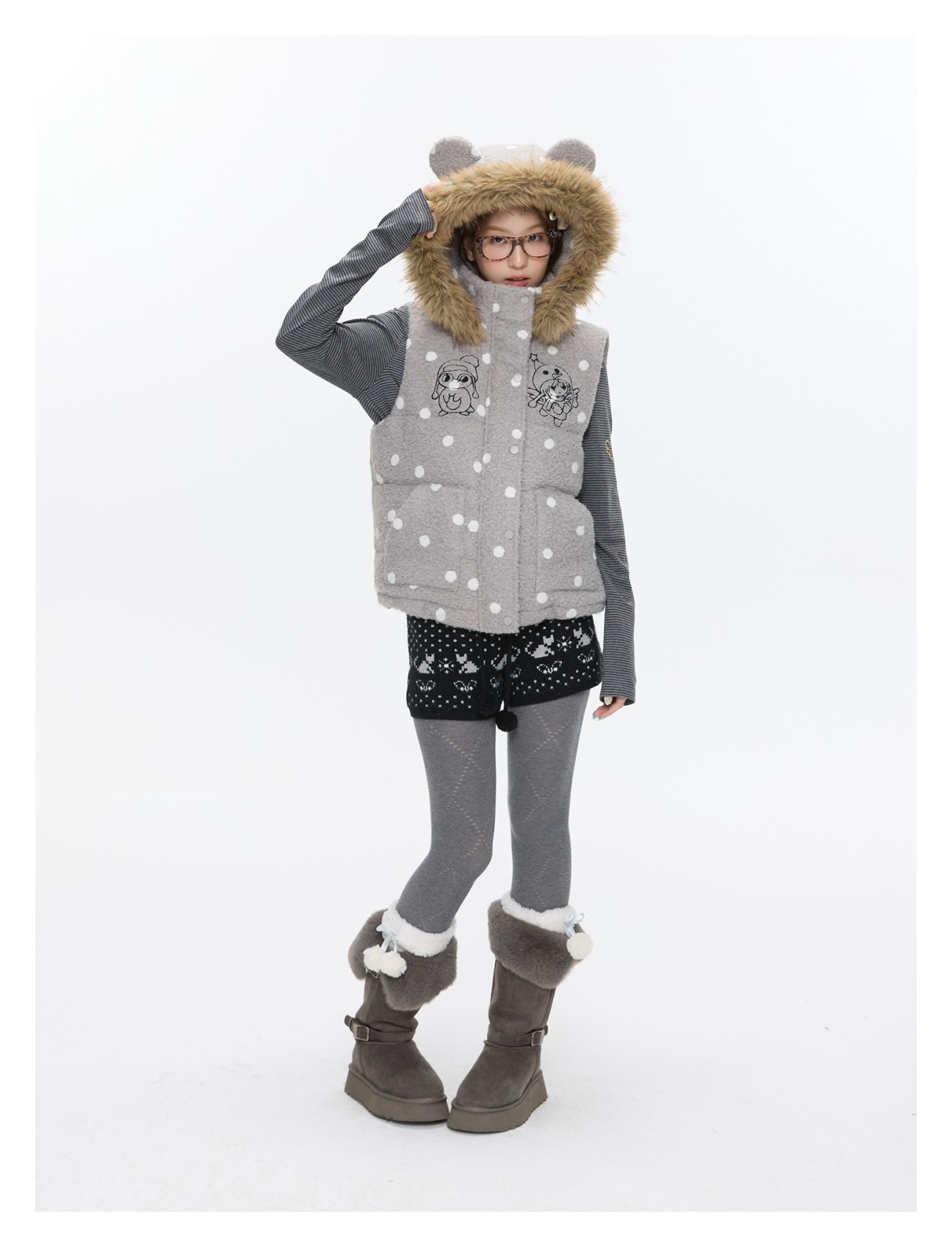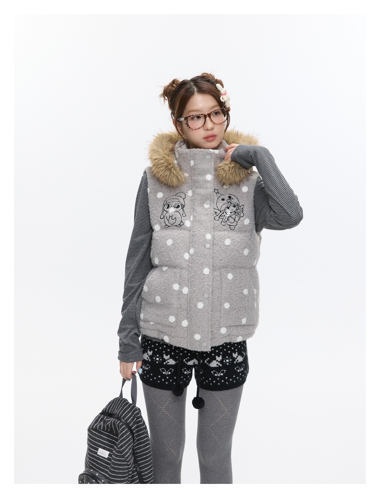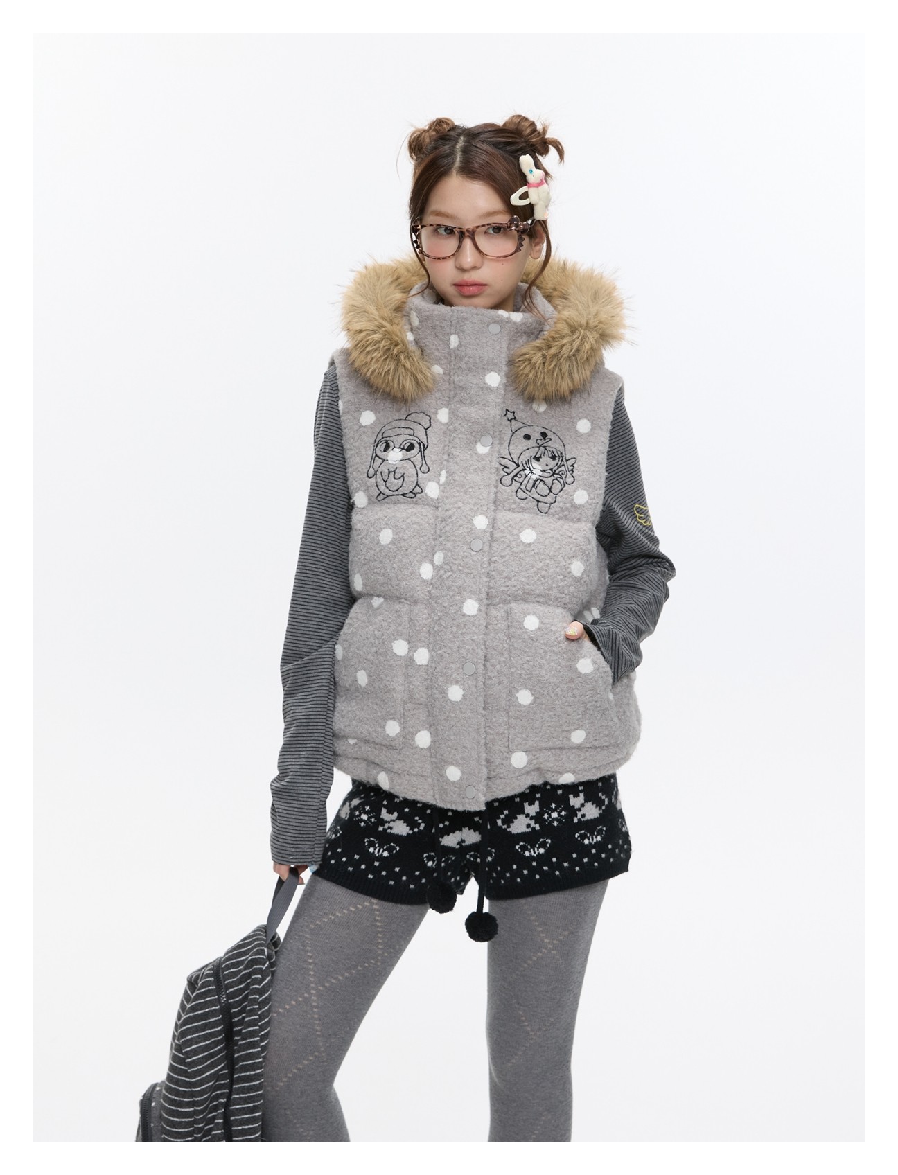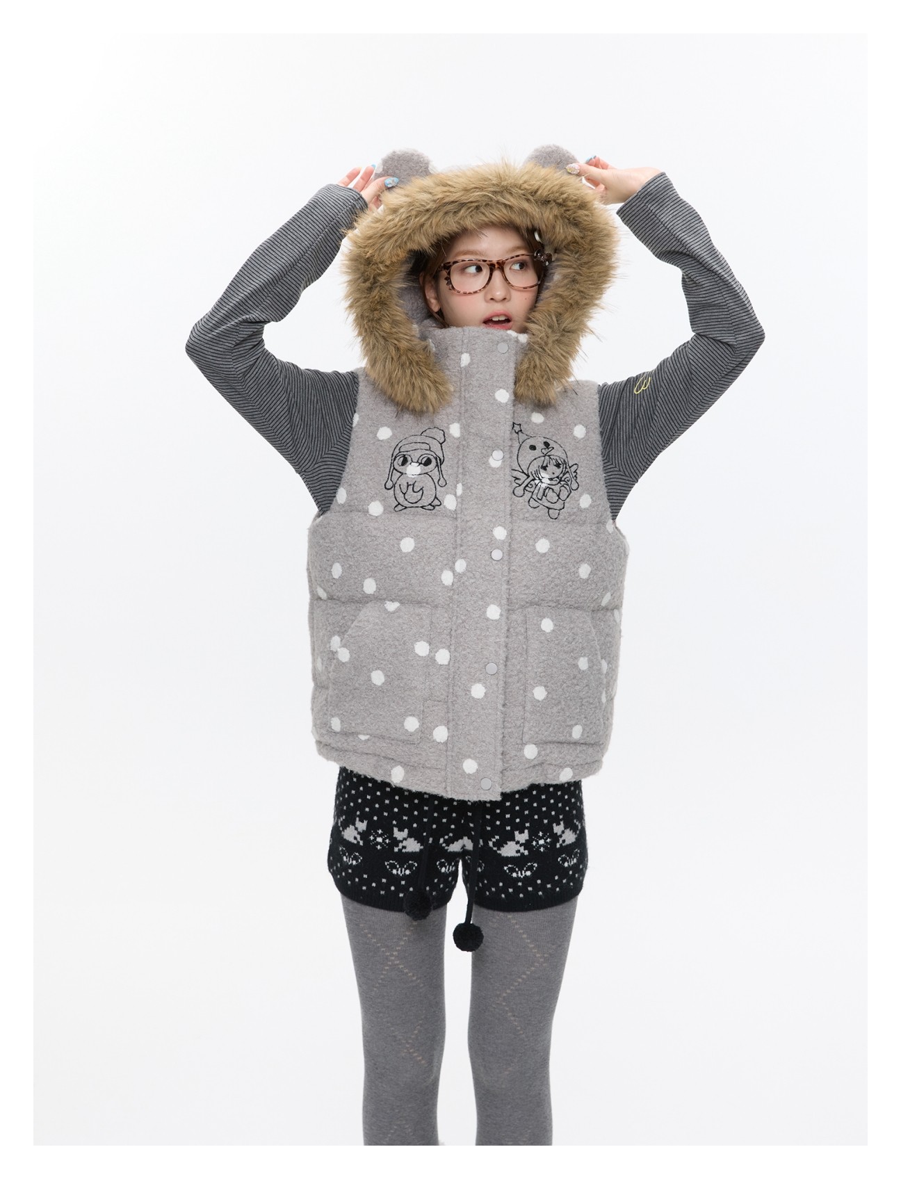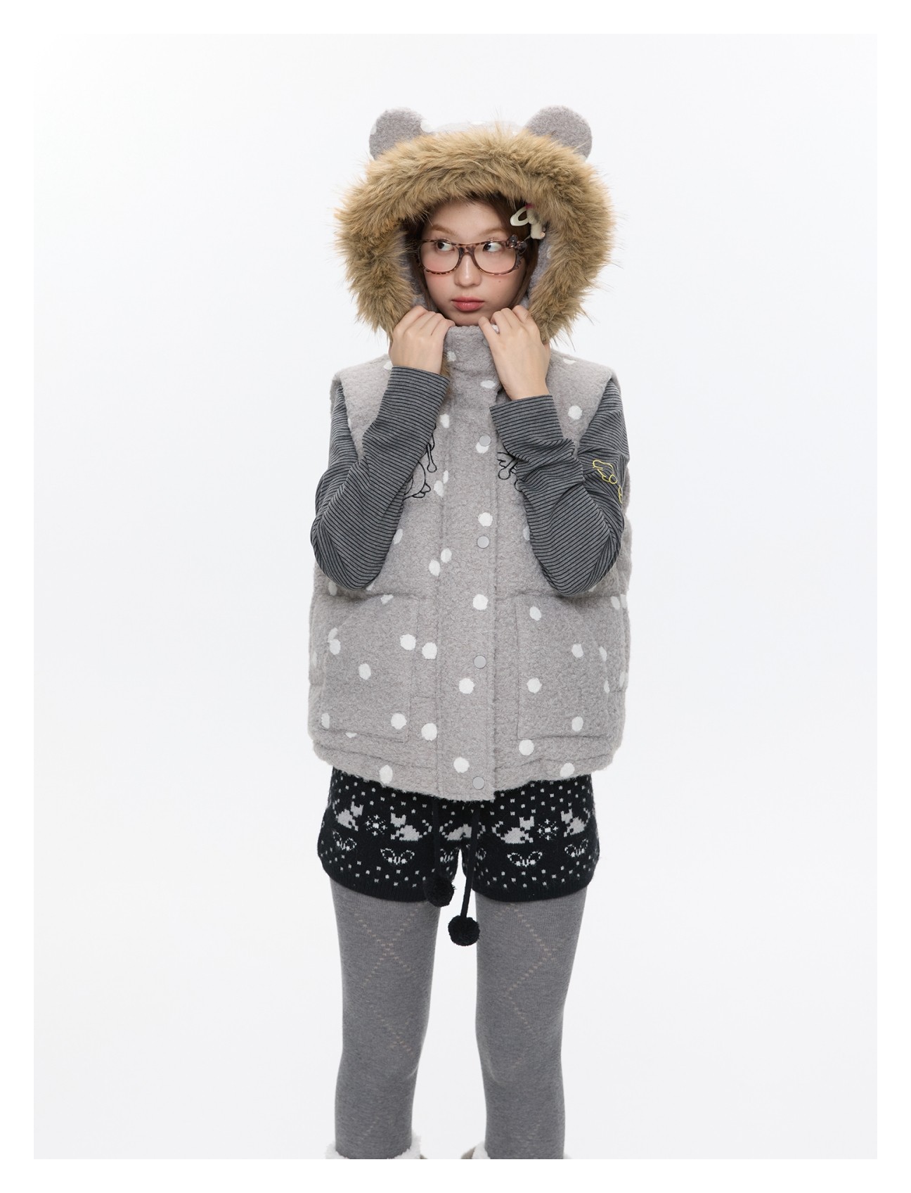 Polka-dot teddy hooded padded vest Lookbook