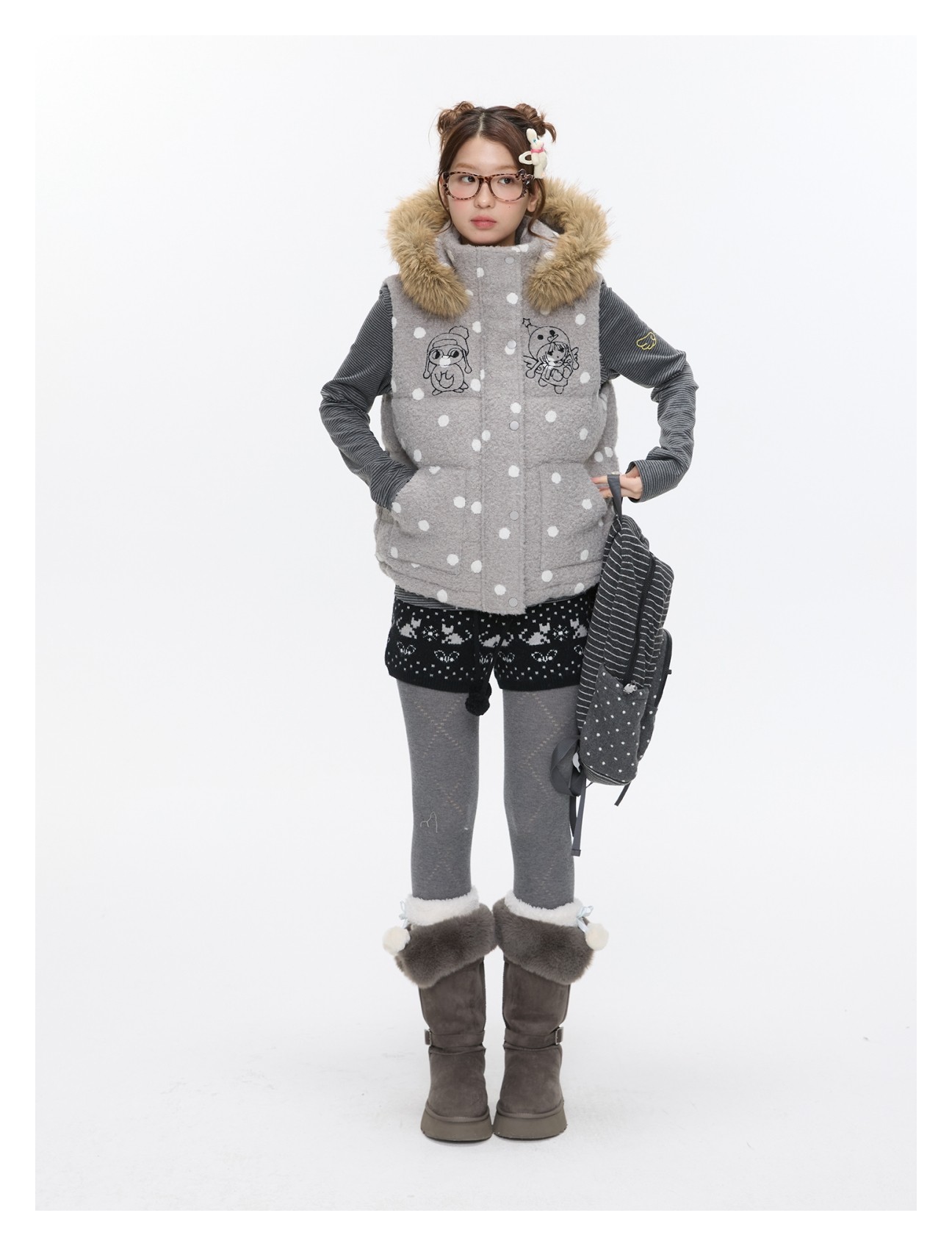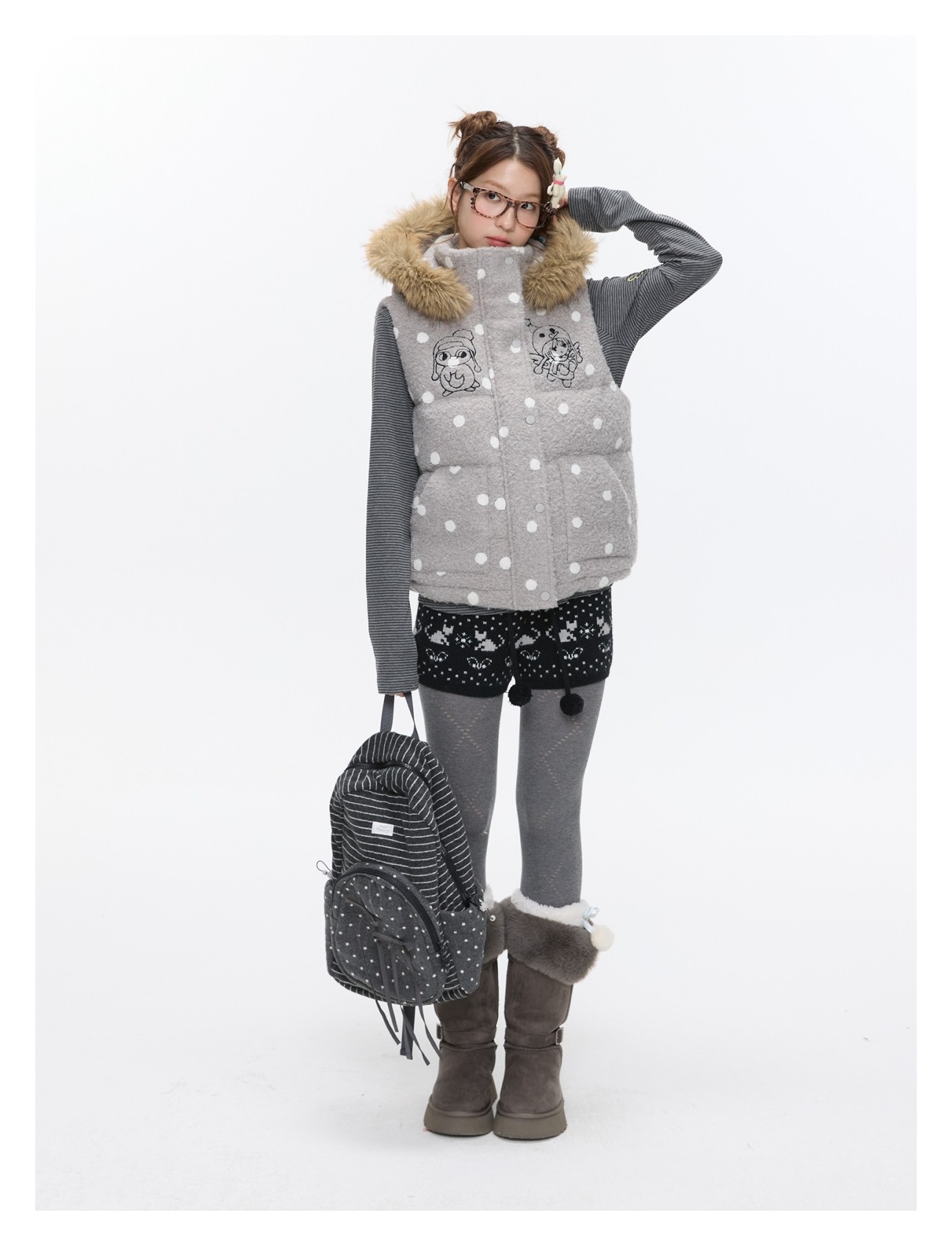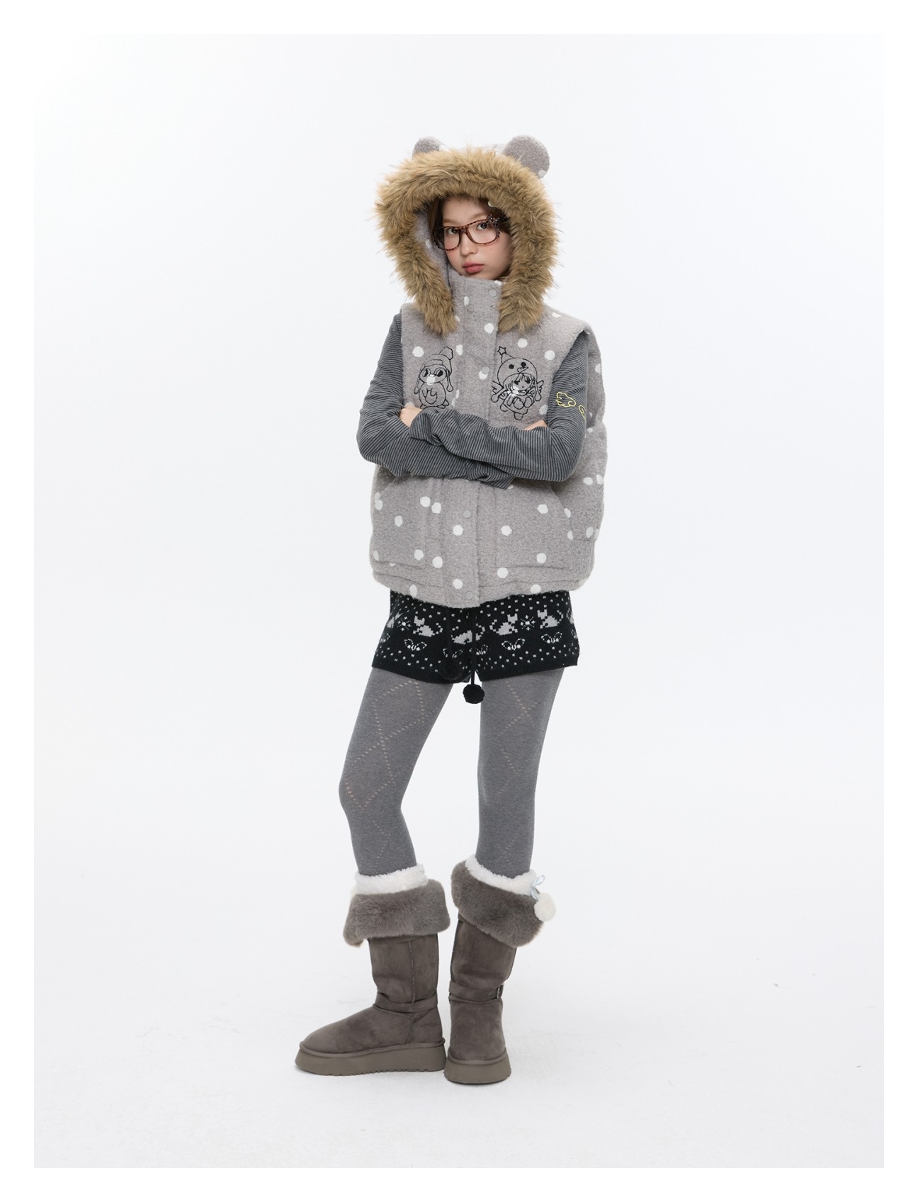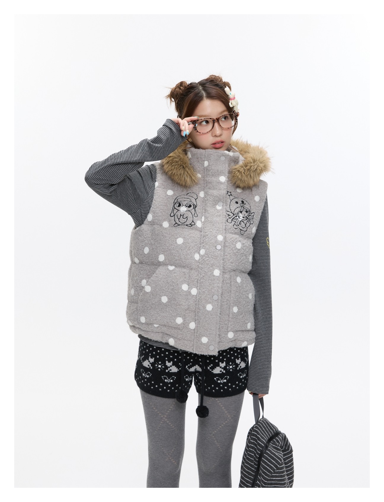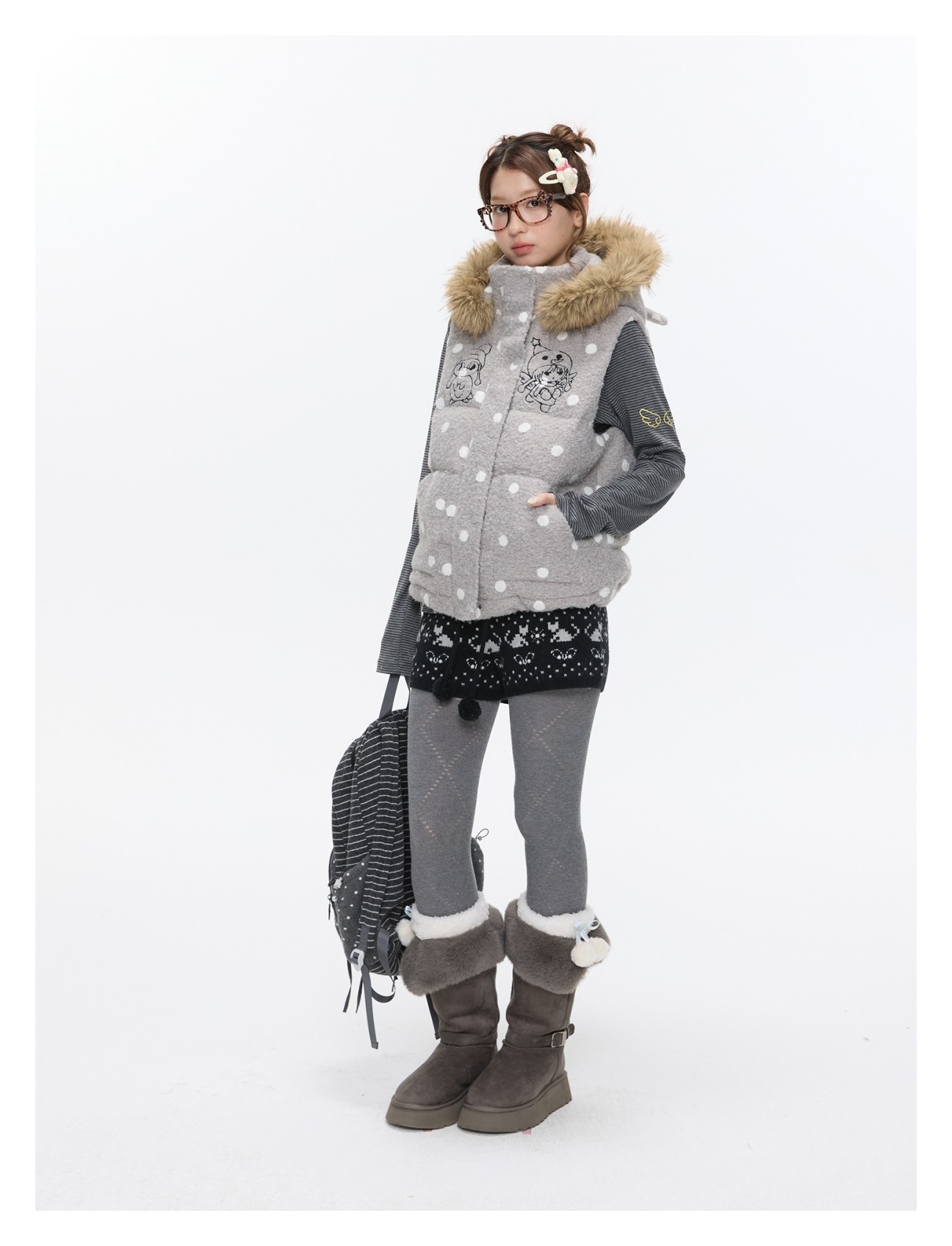 Polka-dot teddy hooded padded vest Lookbook