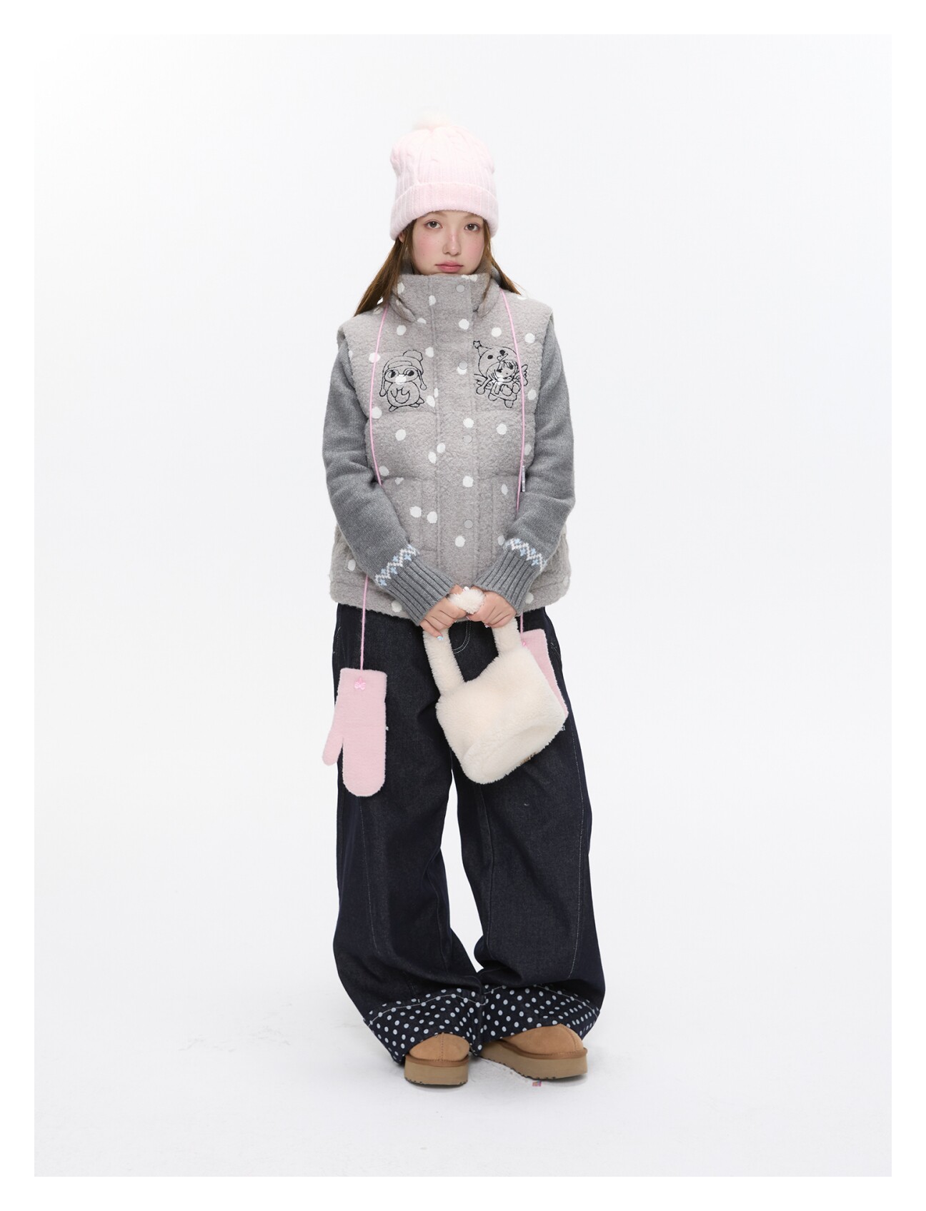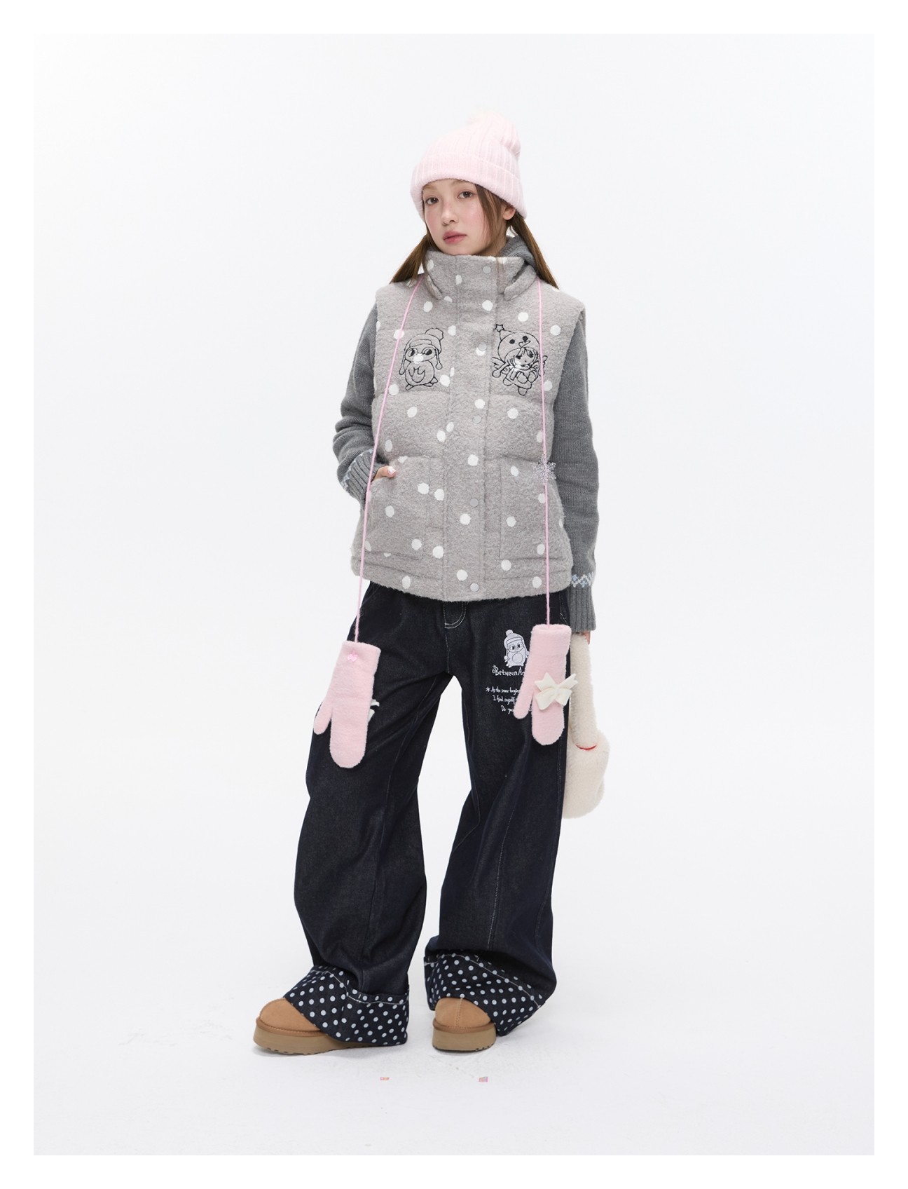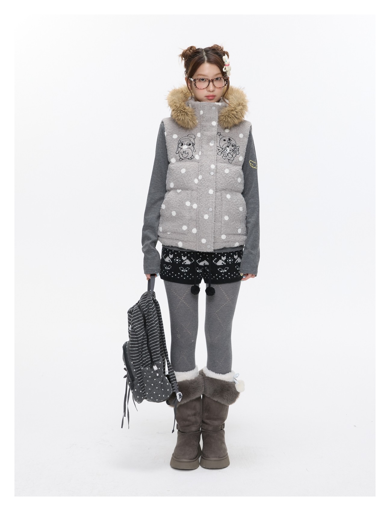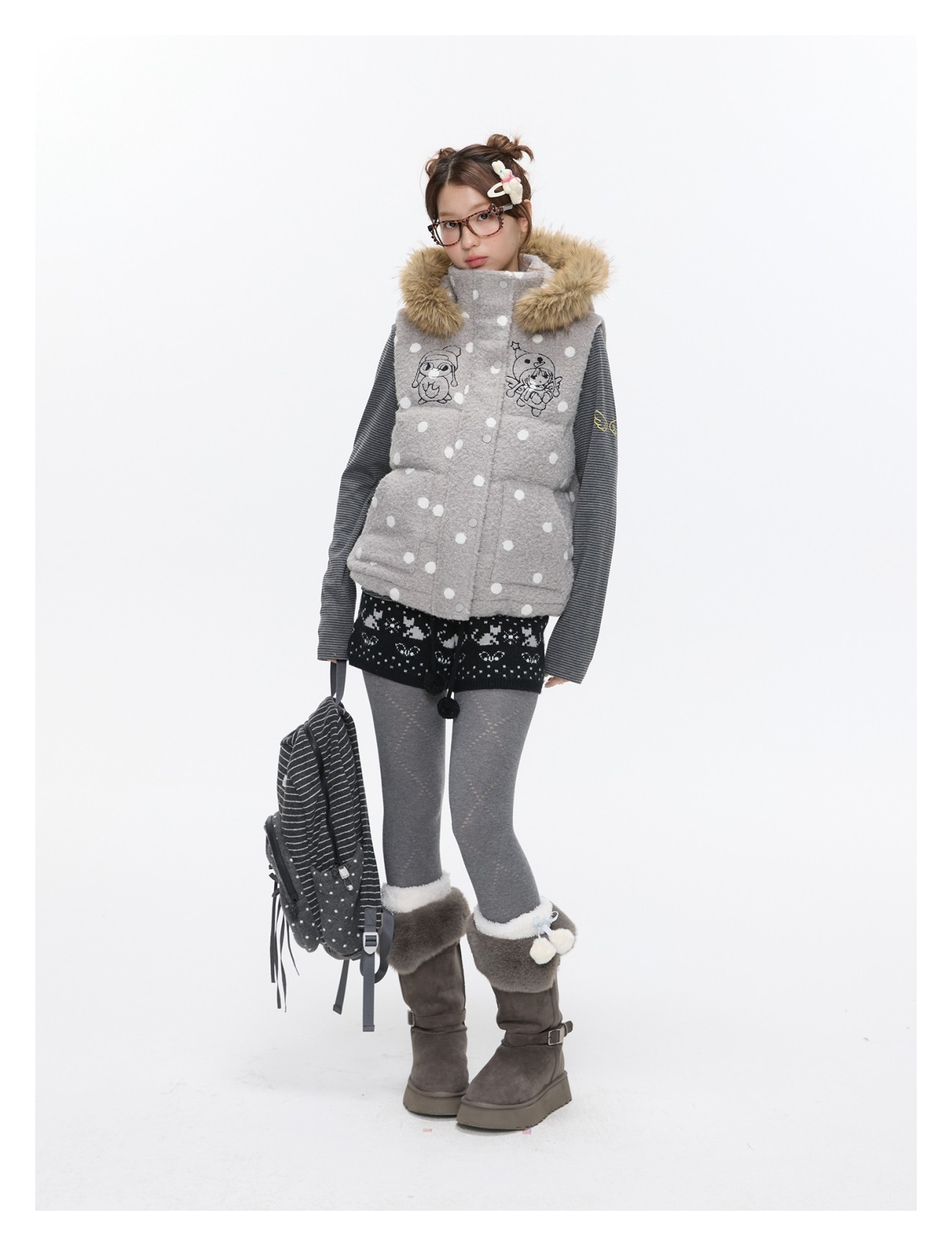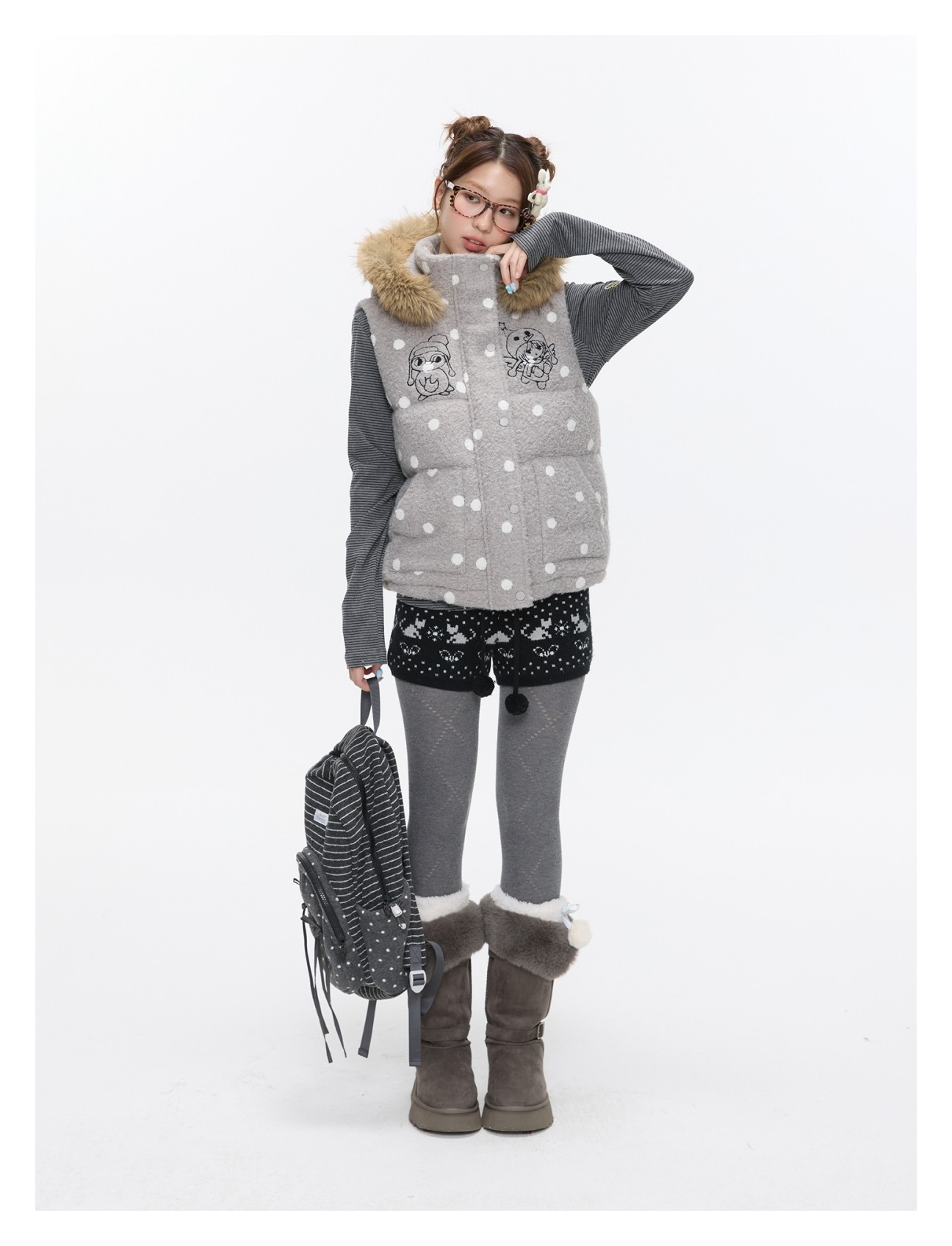Polka-dot teddy hooded padded vest Lookbook