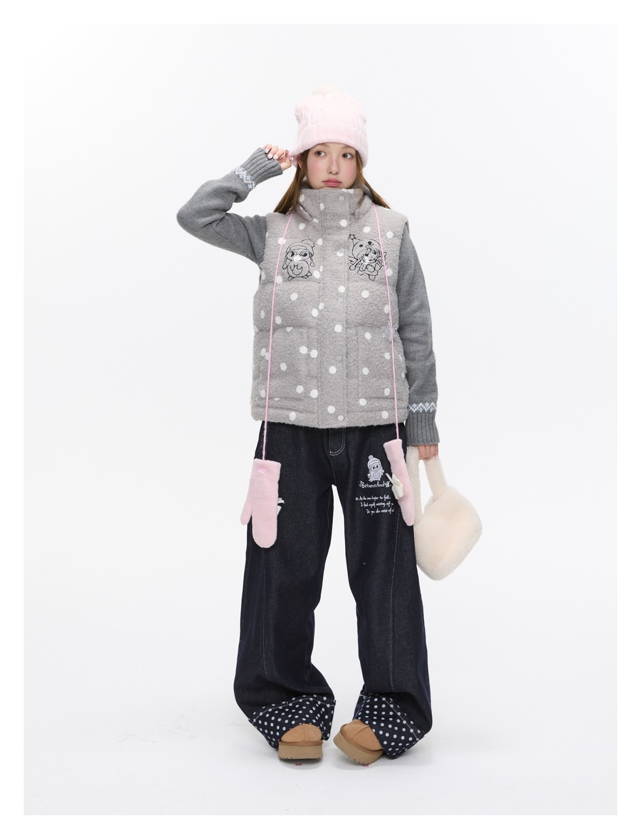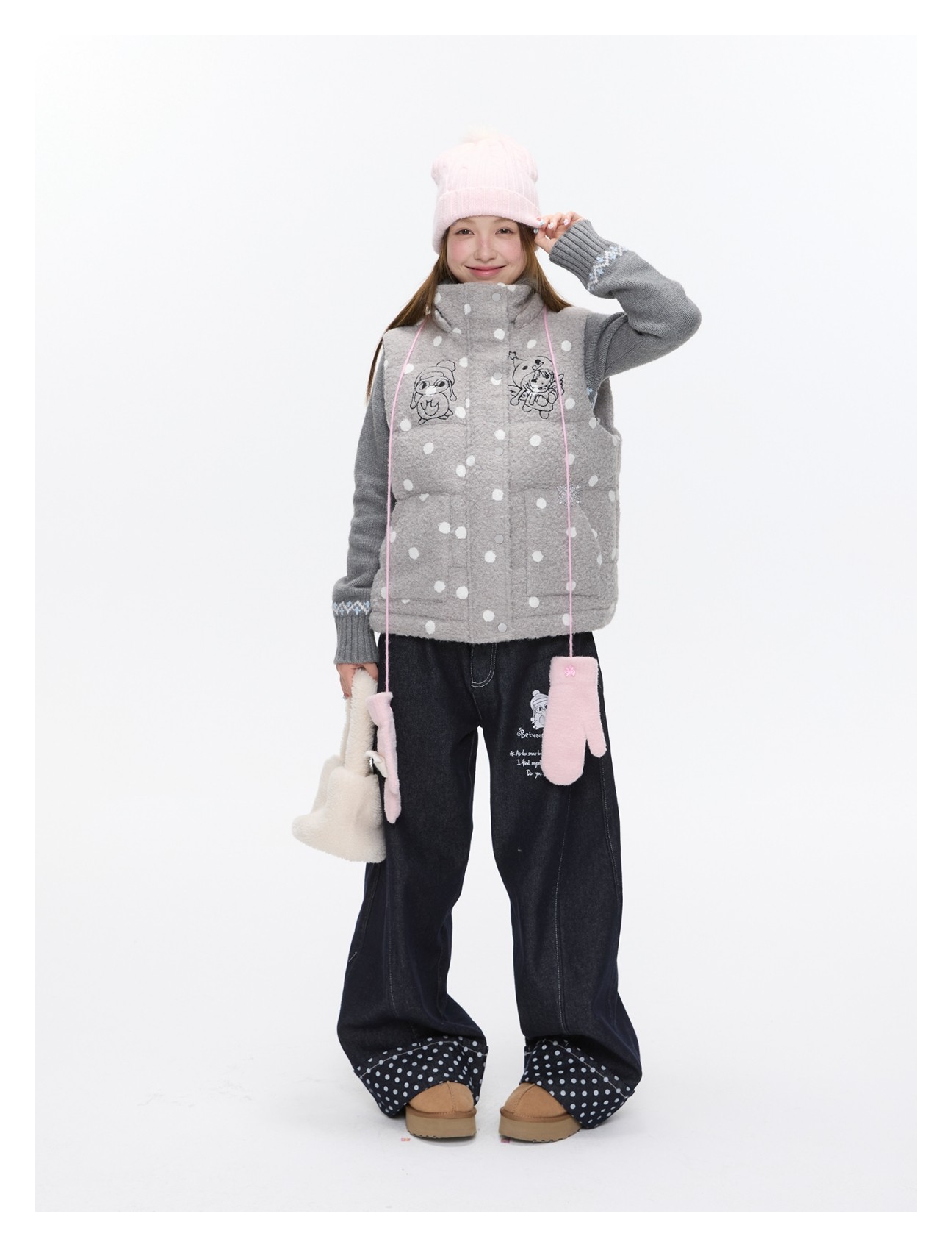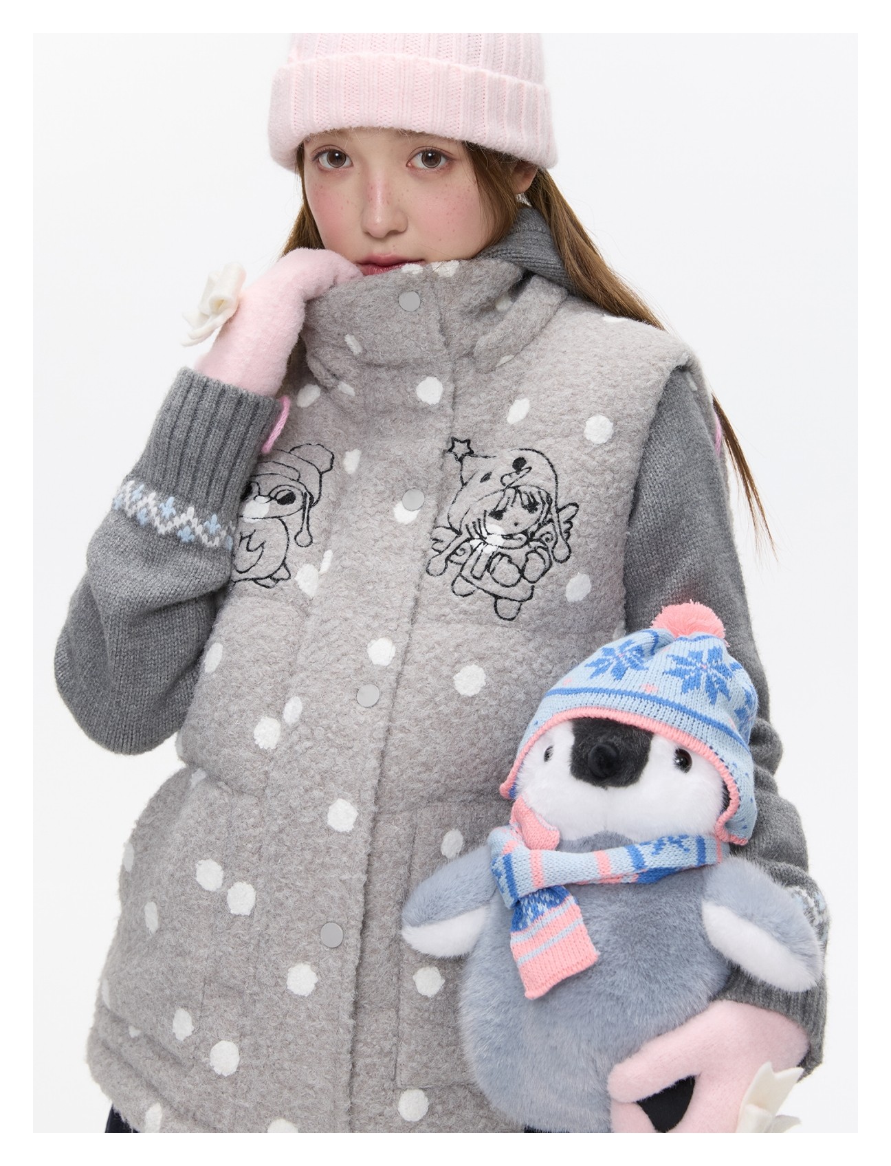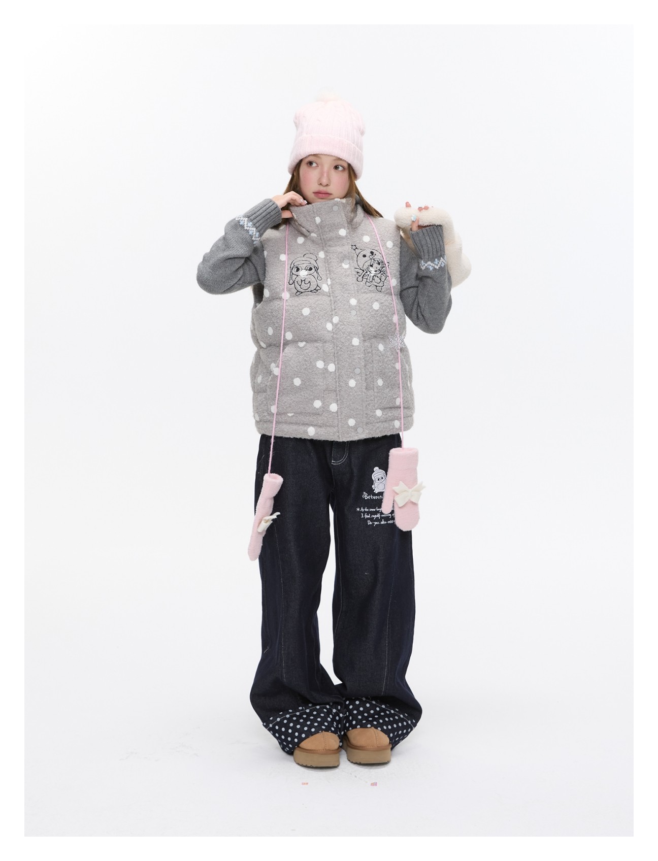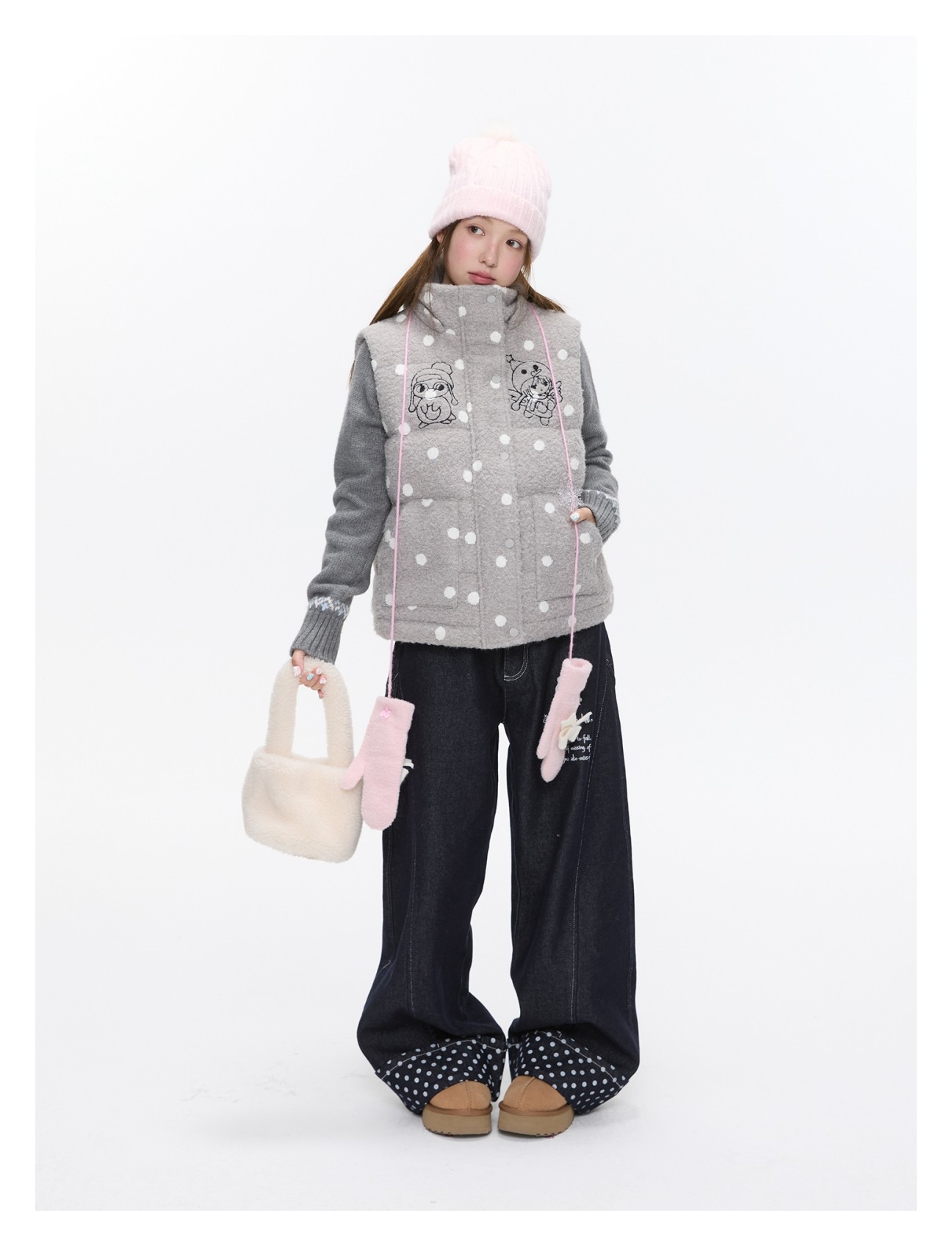 Polka-dot teddy hooded padded vest Lookbook