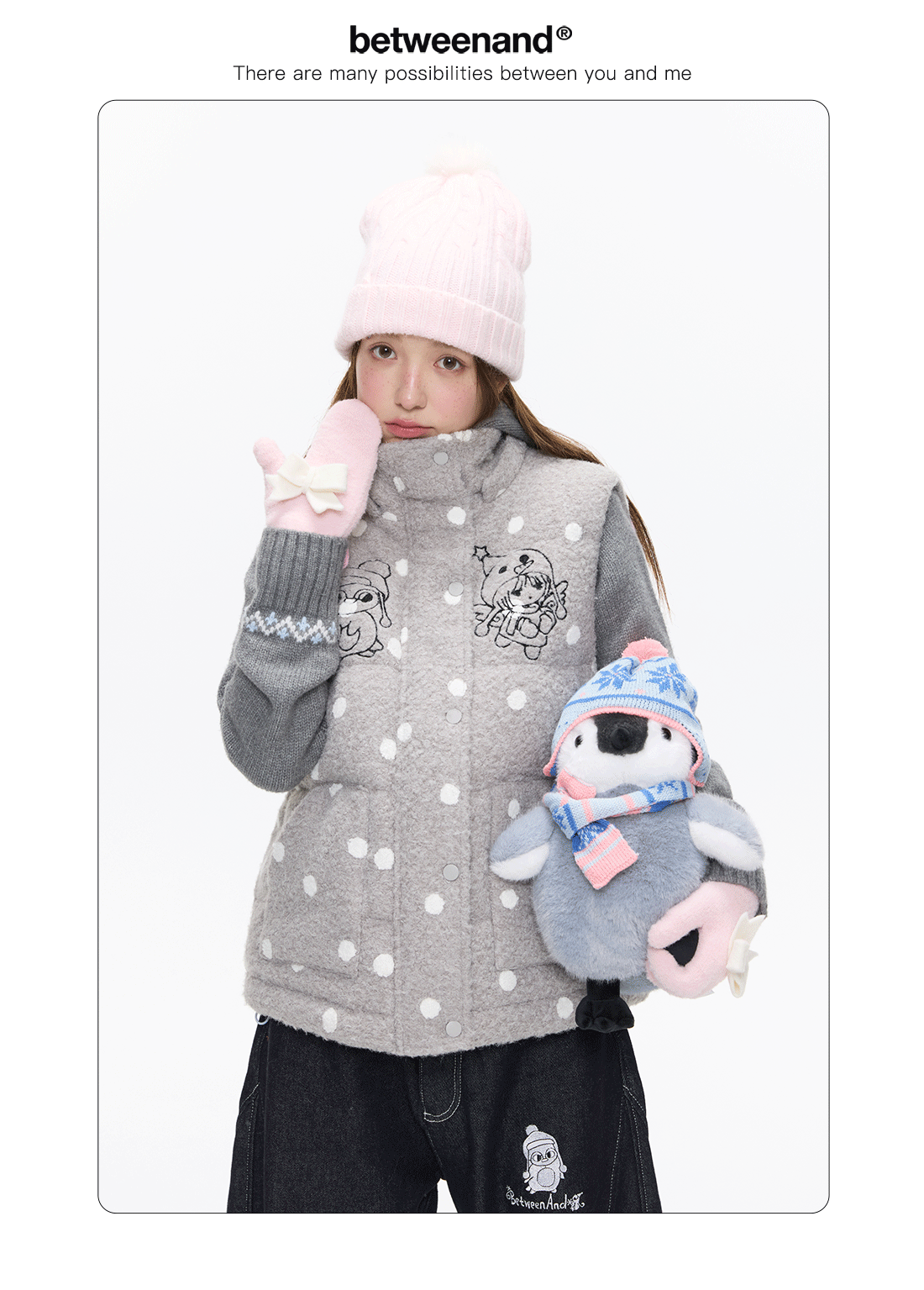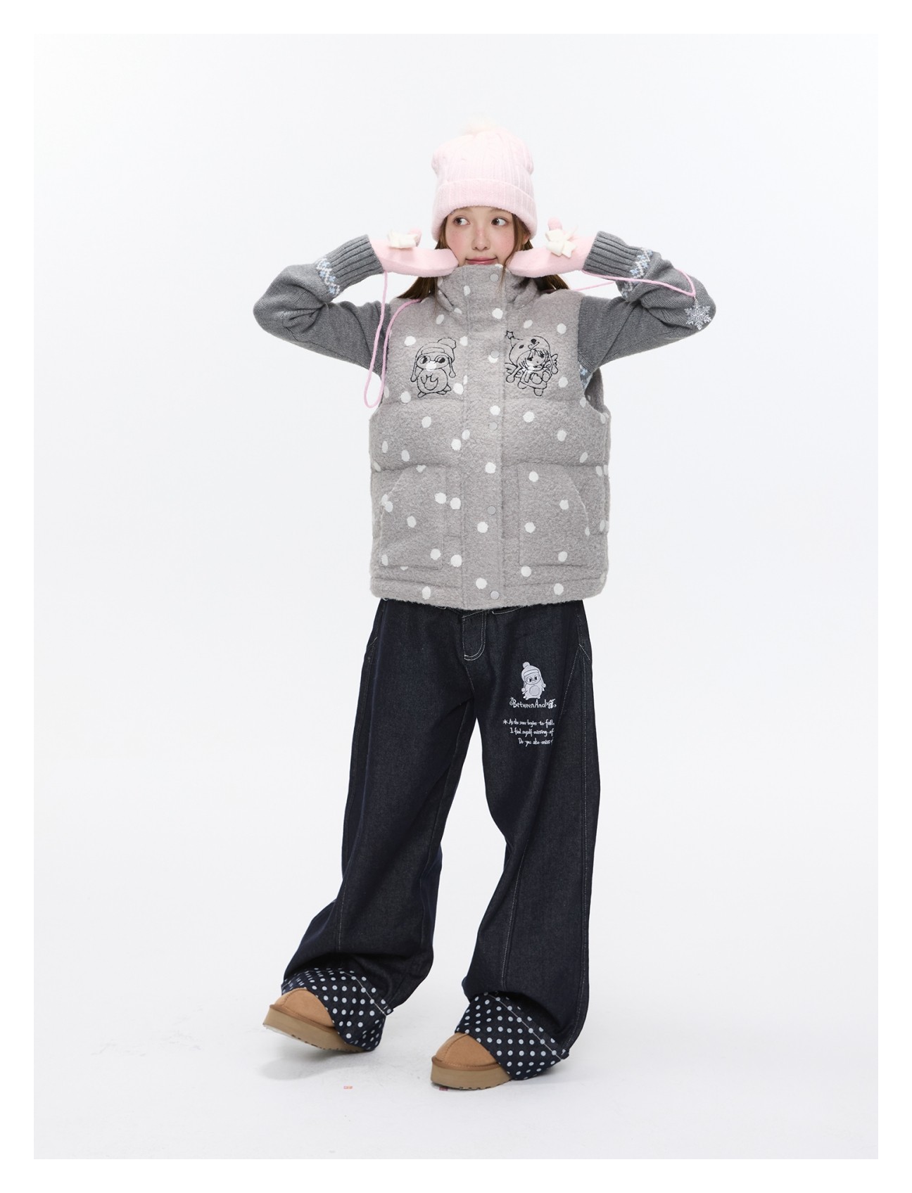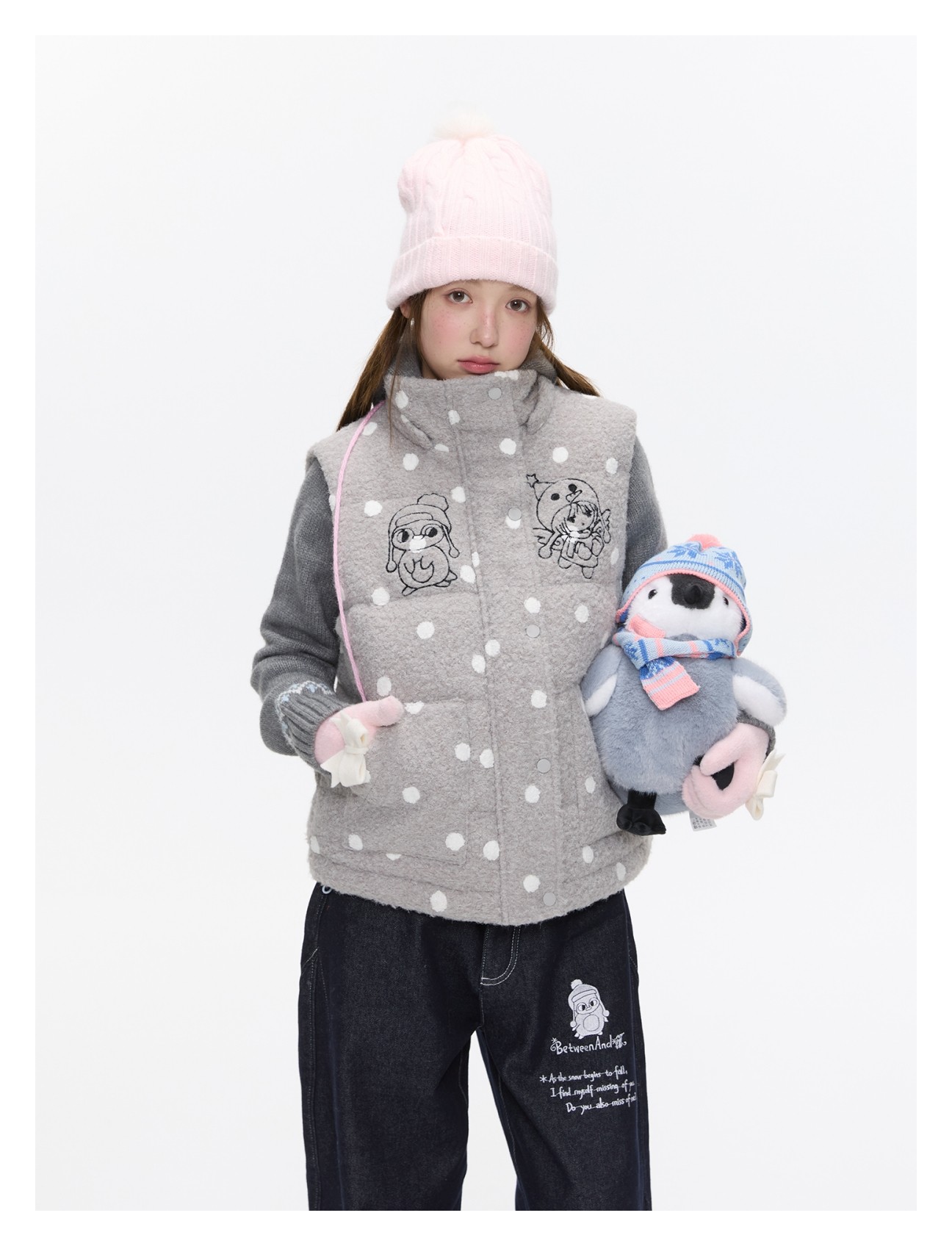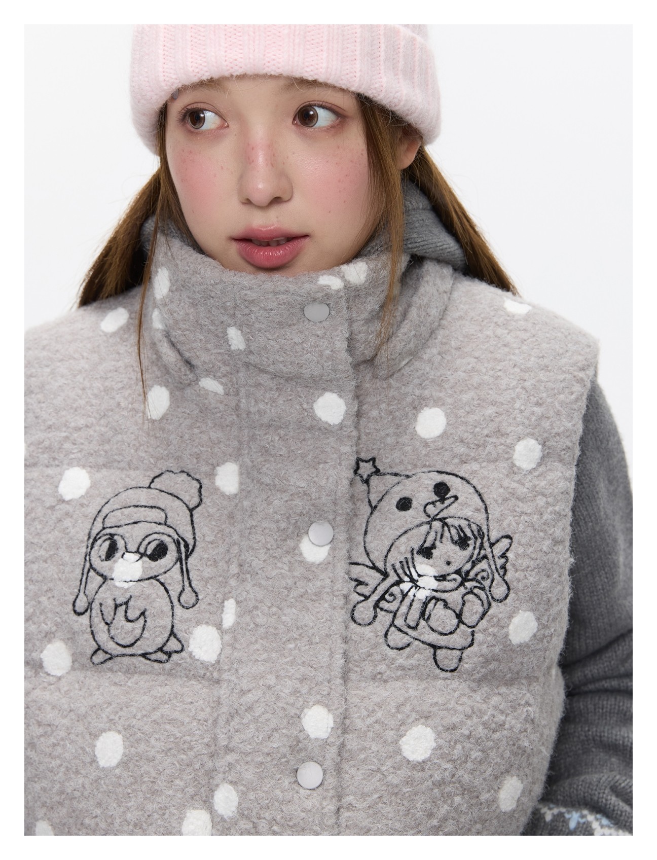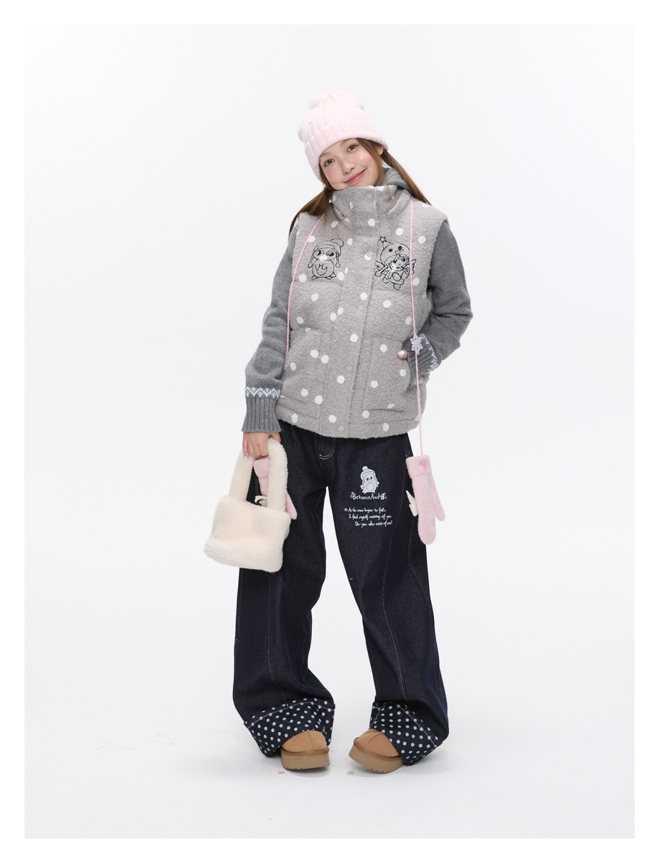 Polka-dot teddy hooded padded vest Lookbook