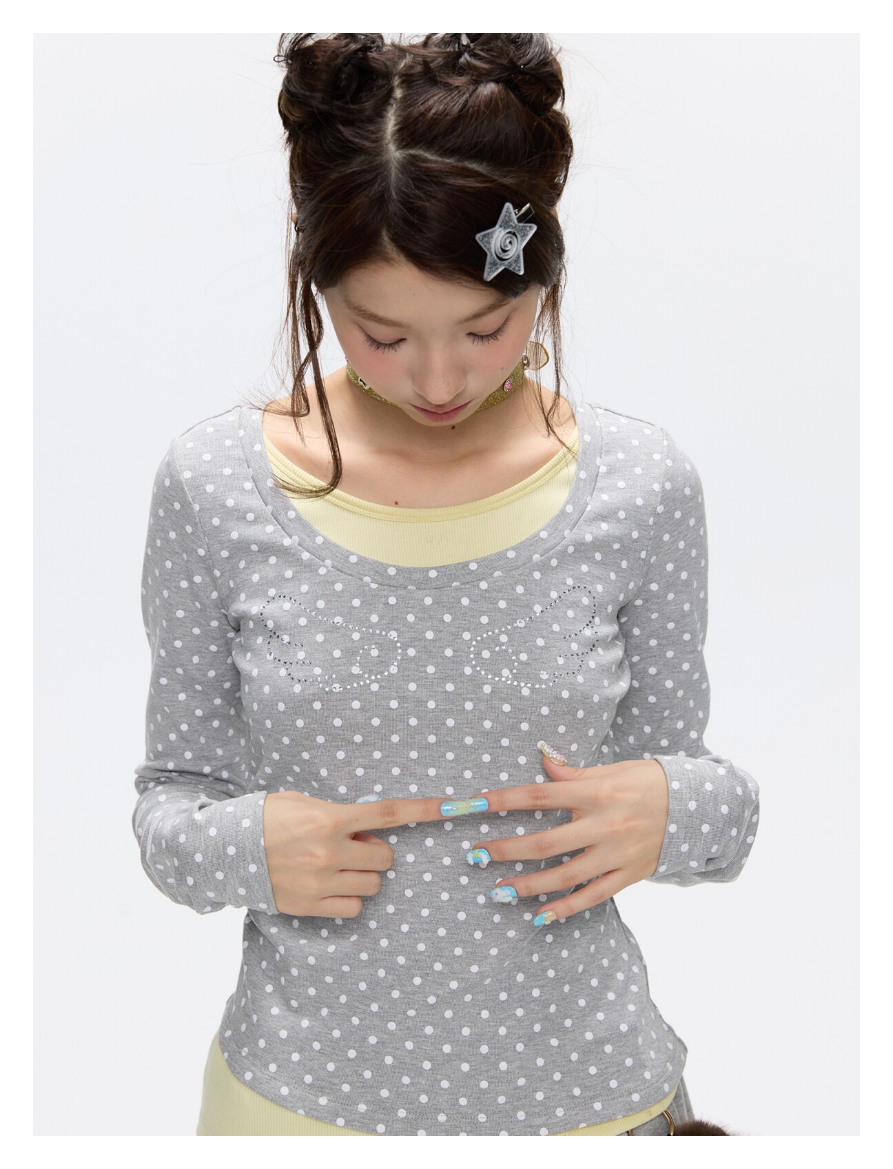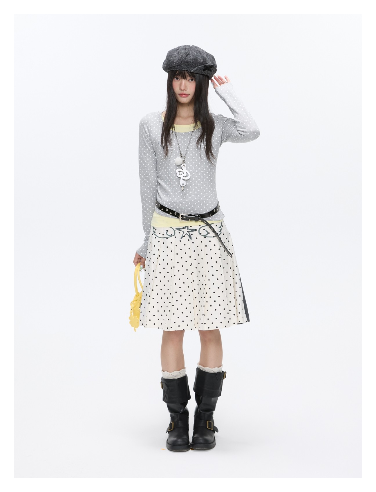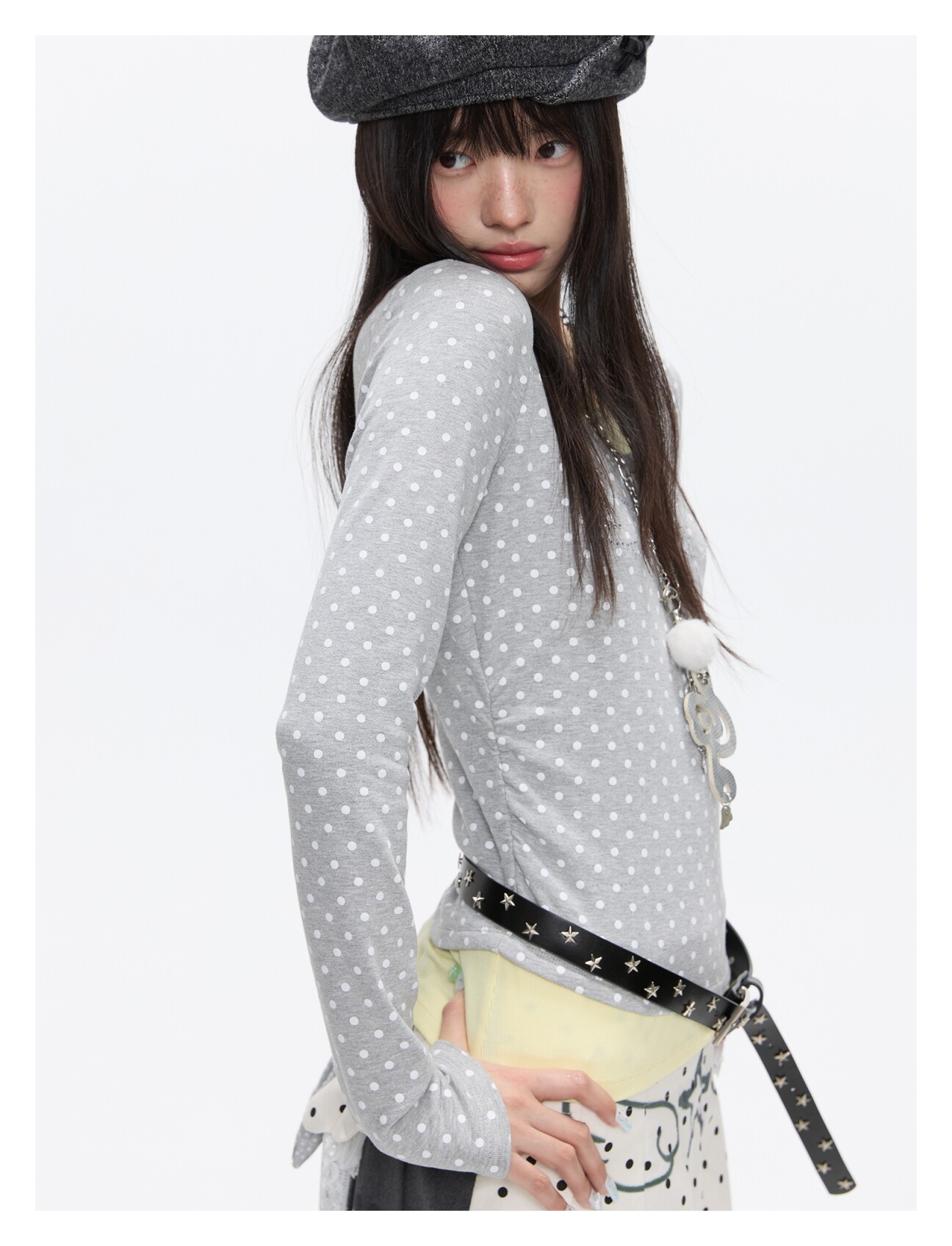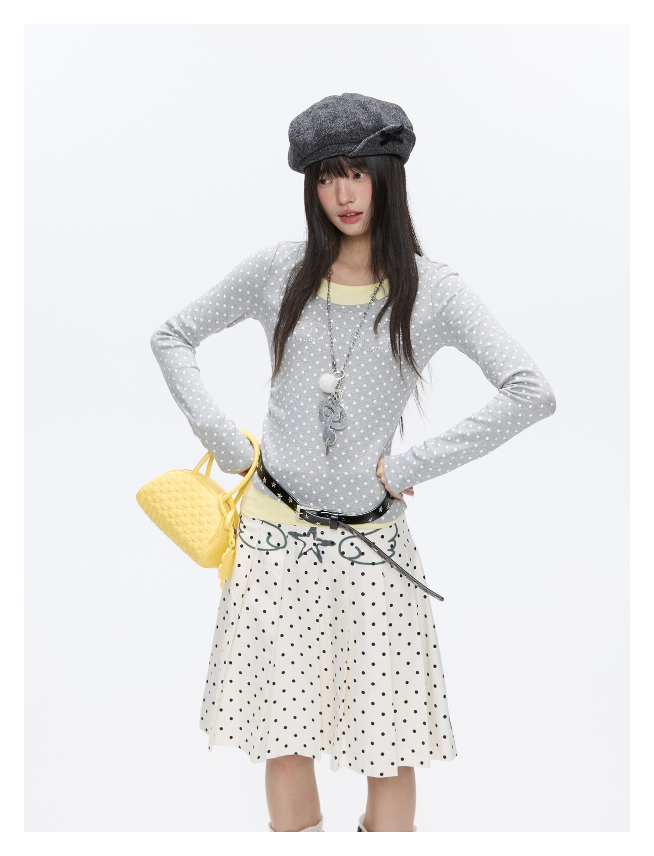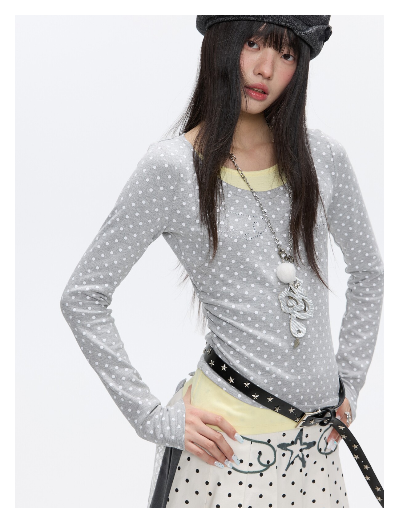 Soft faux-layer polka-dot long sleeve top Lookbook
