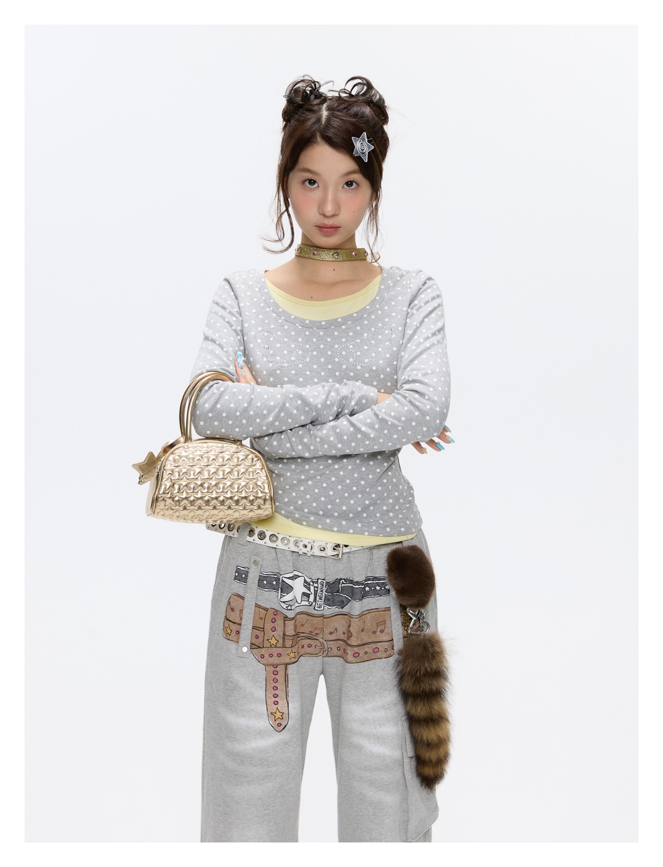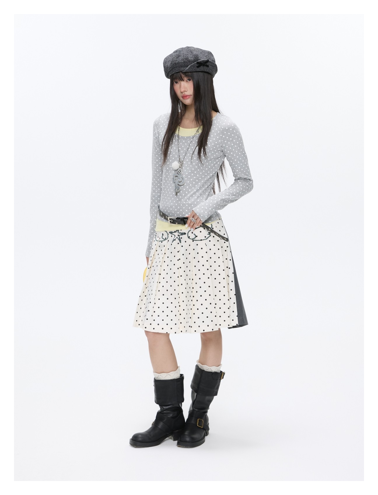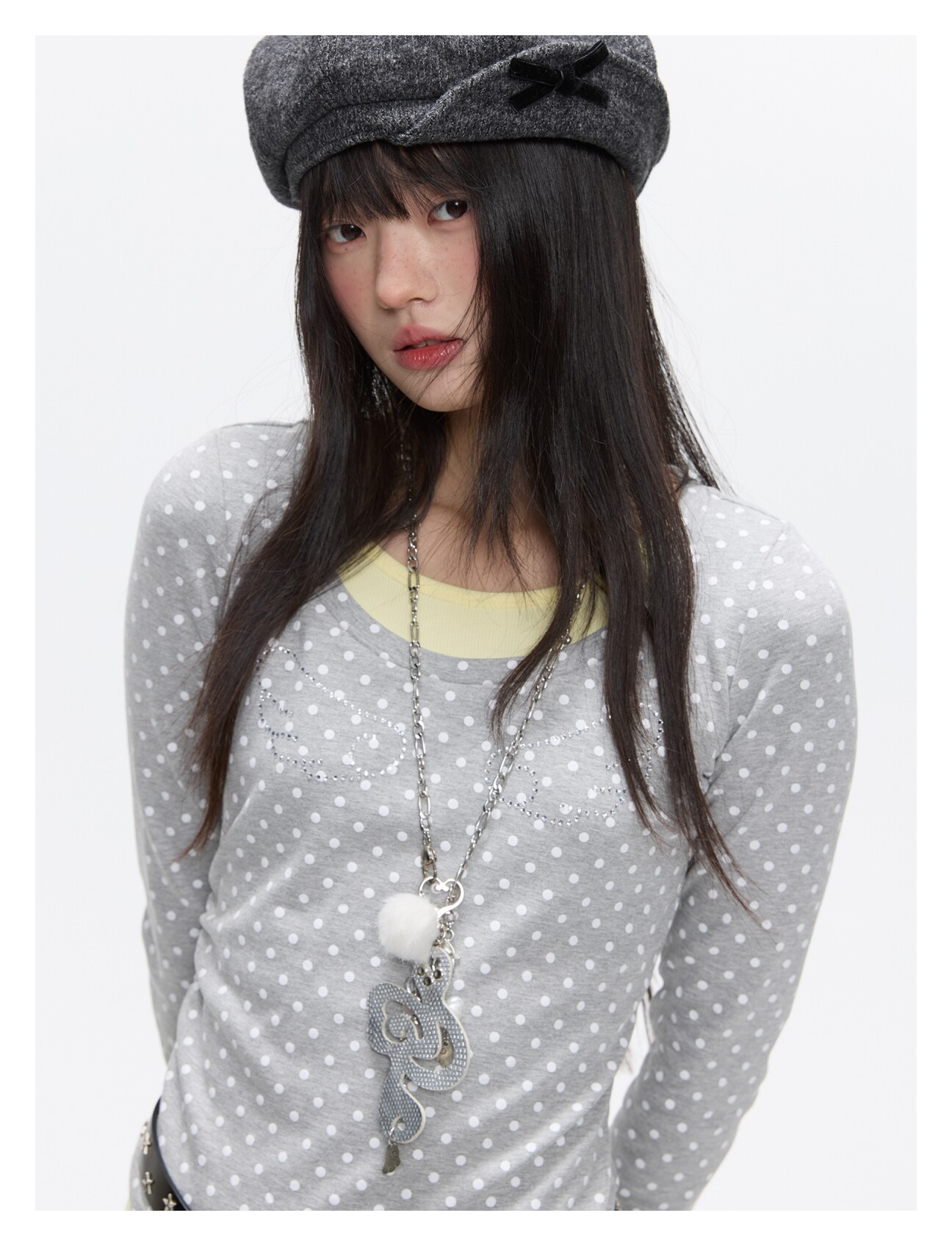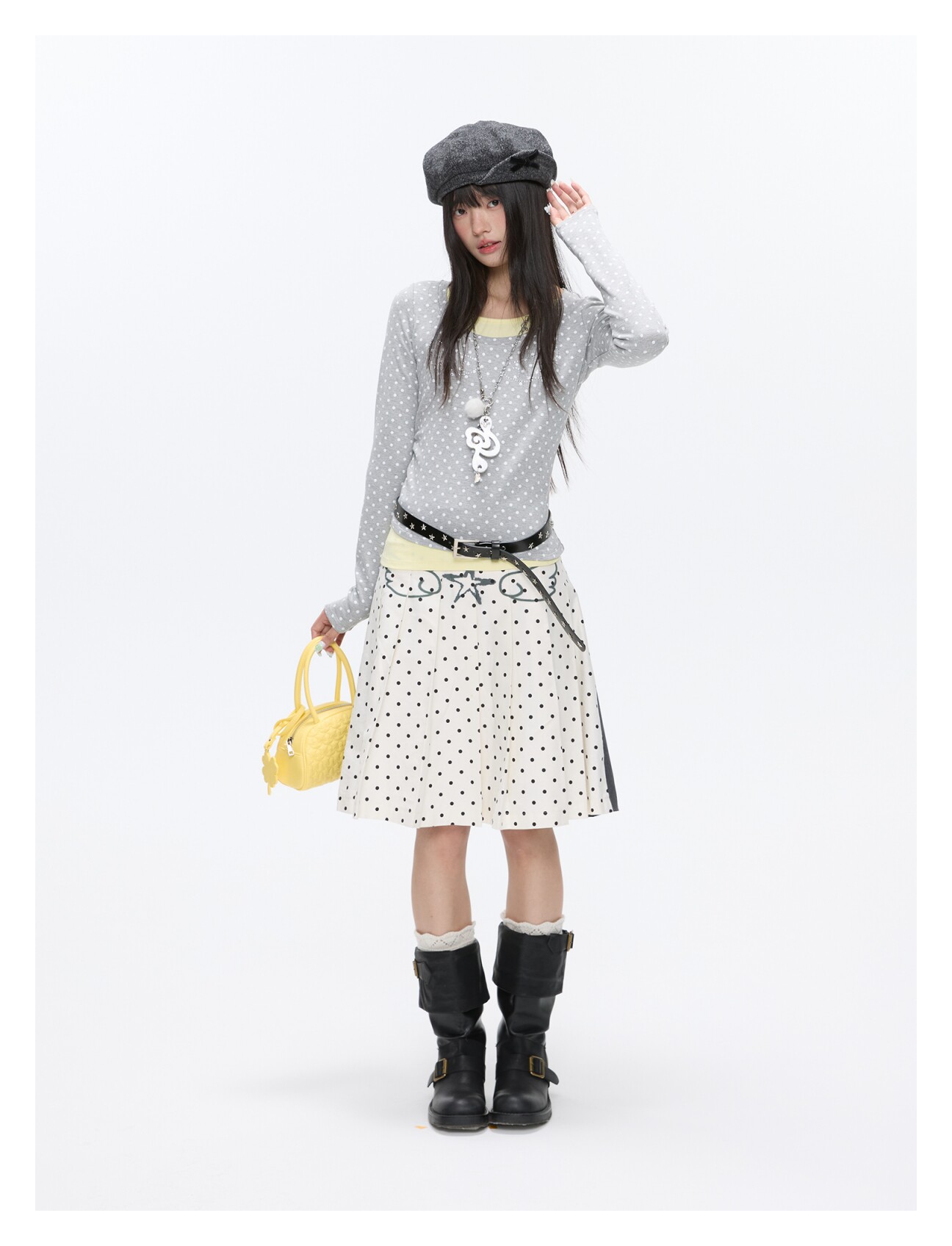 Soft faux-layer polka-dot long sleeve top Lookbook