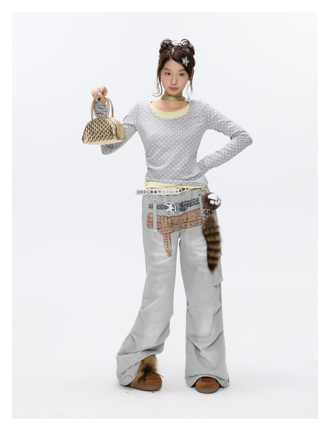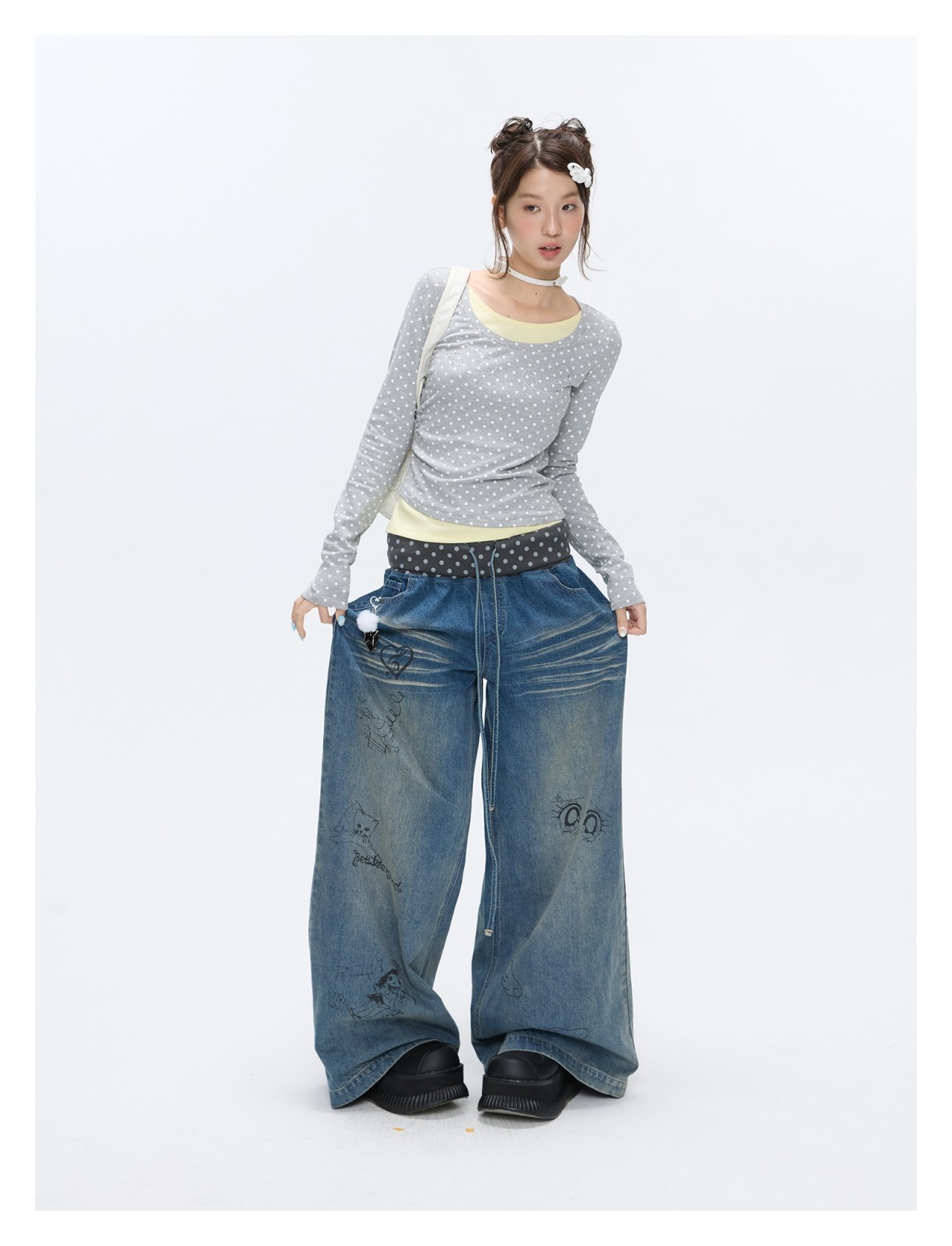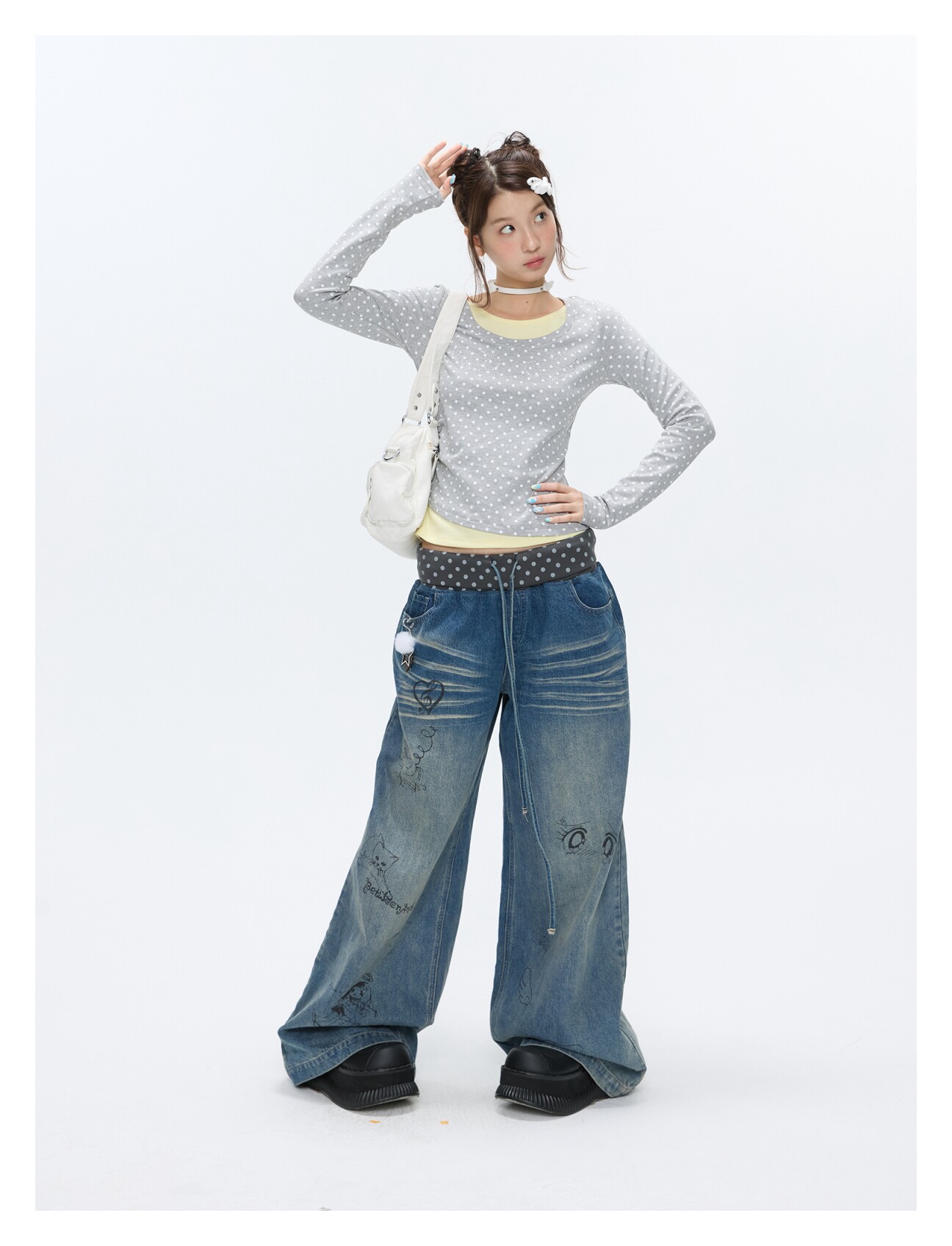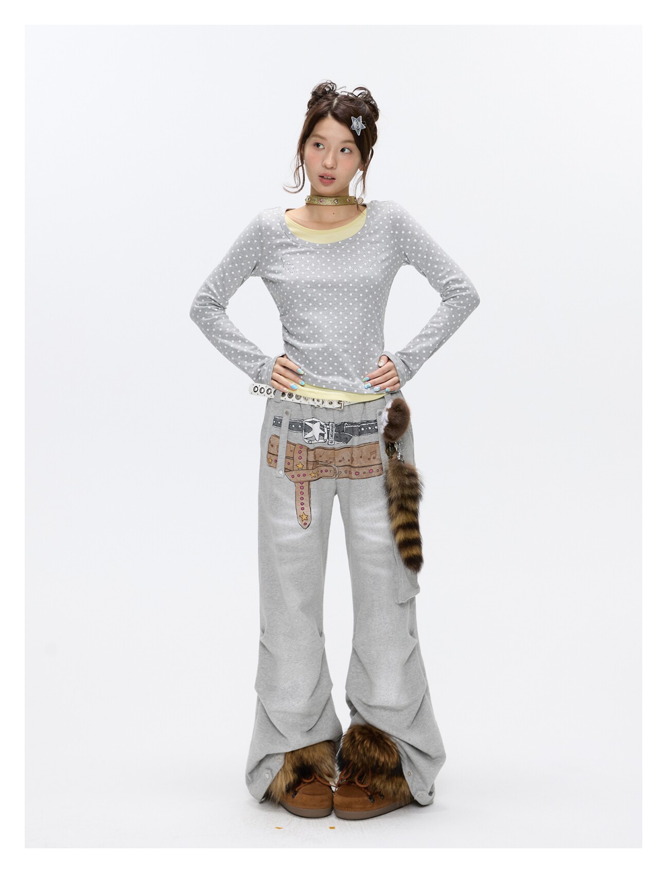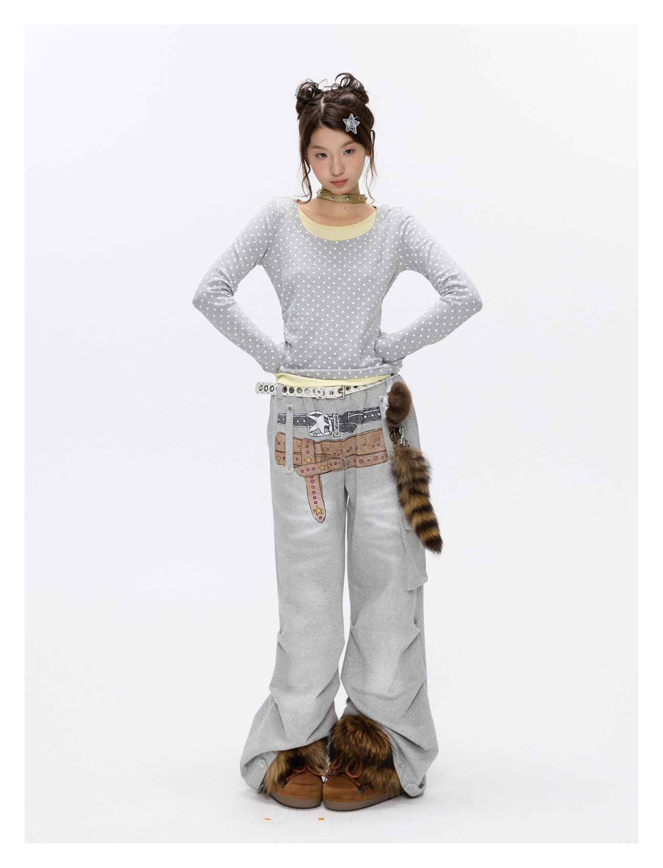 Soft faux-layer polka-dot long sleeve top Lookbook