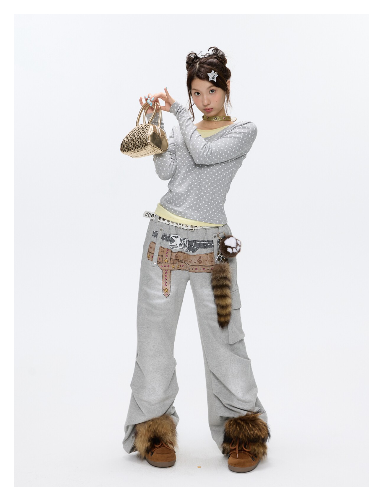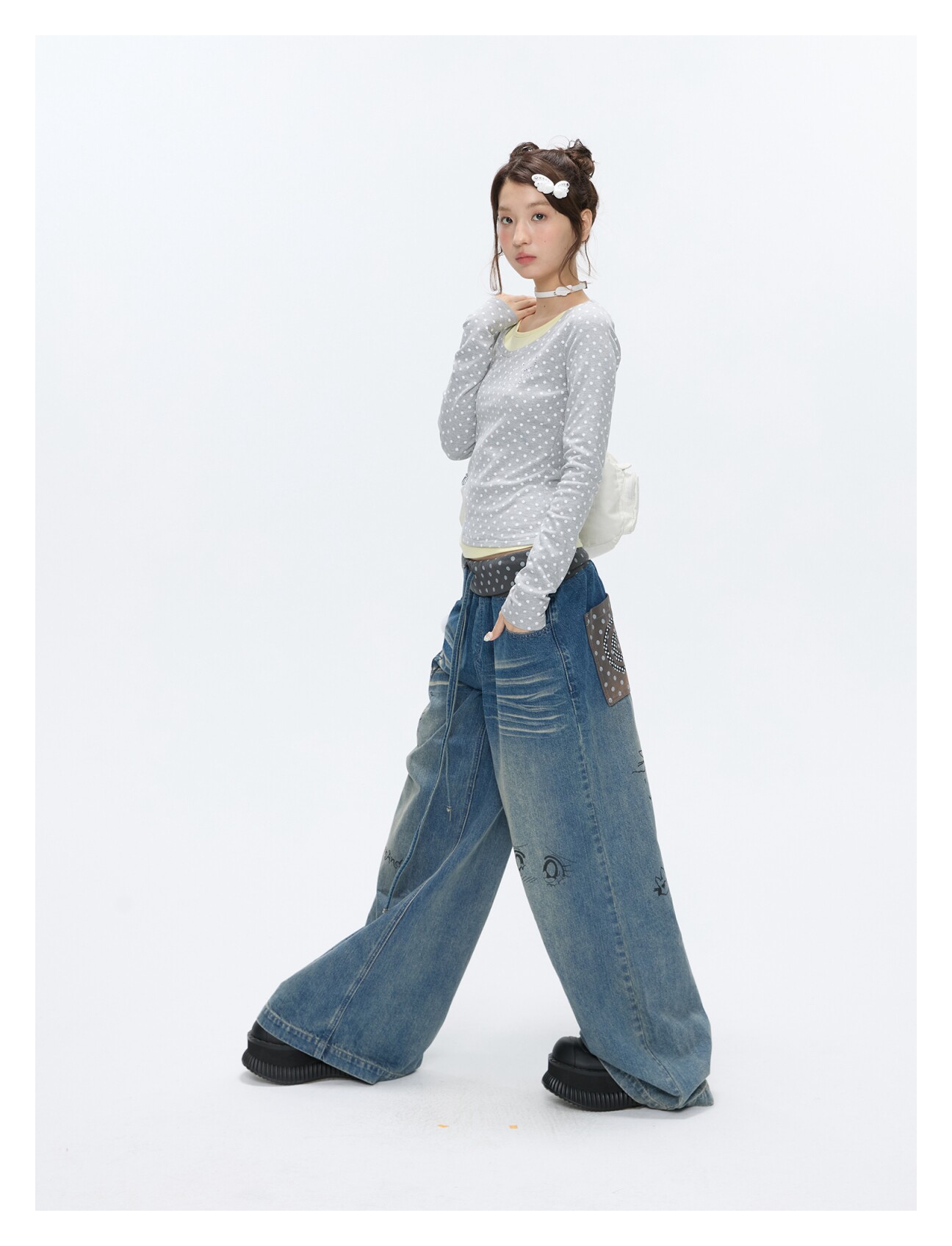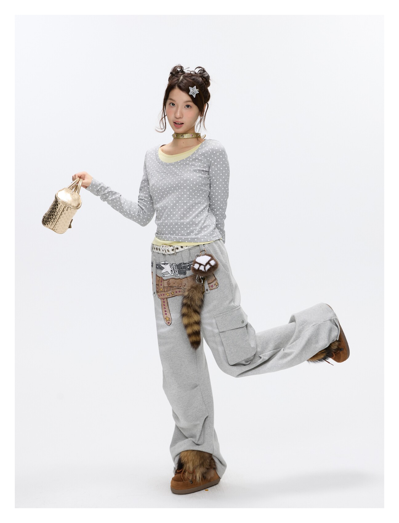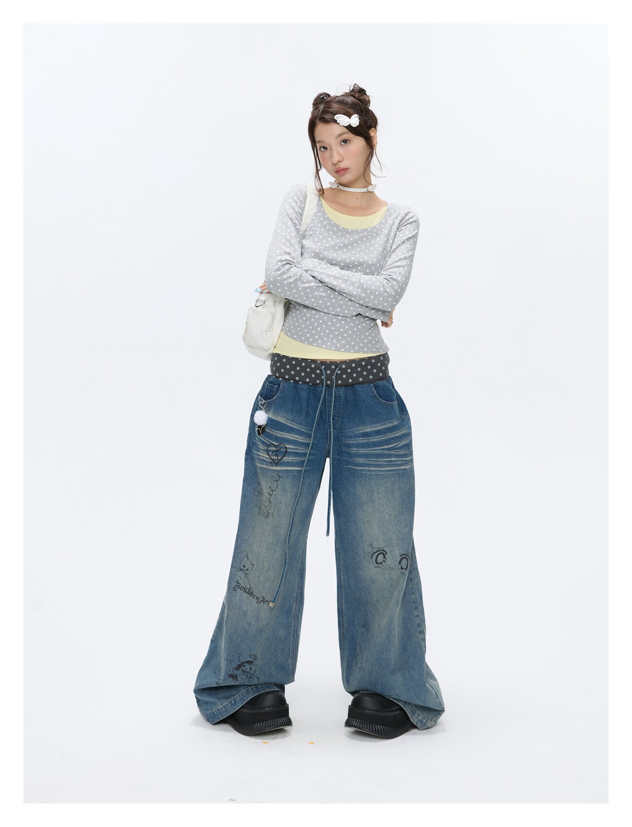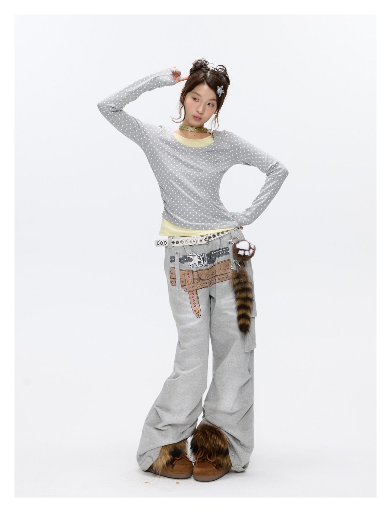 Soft faux-layer polka-dot long sleeve top Lookbook