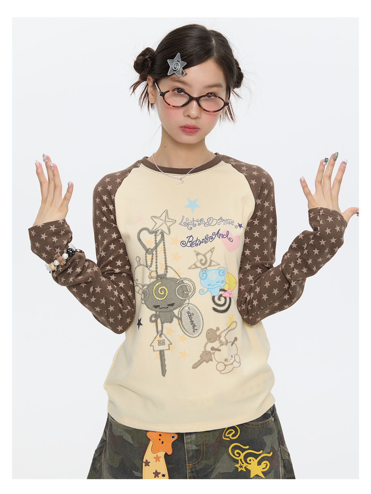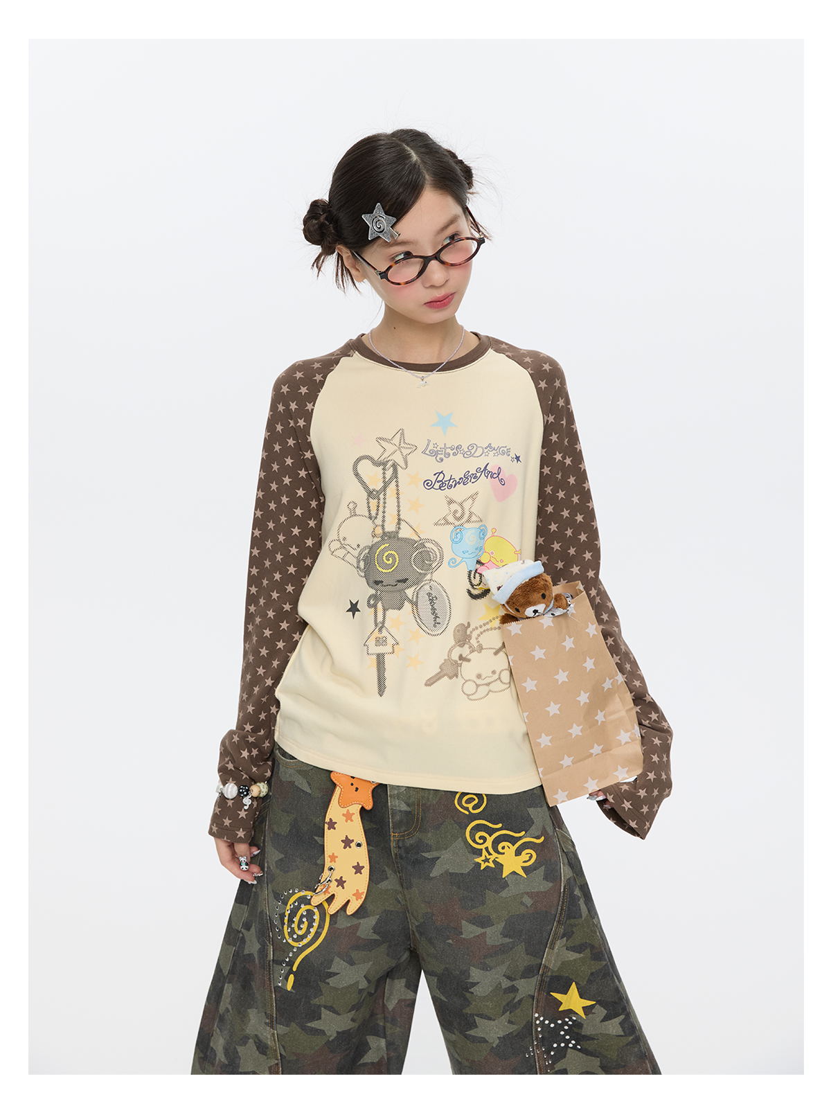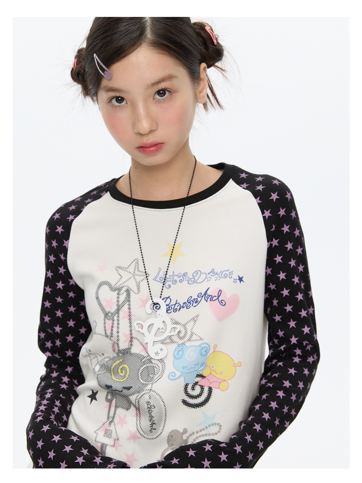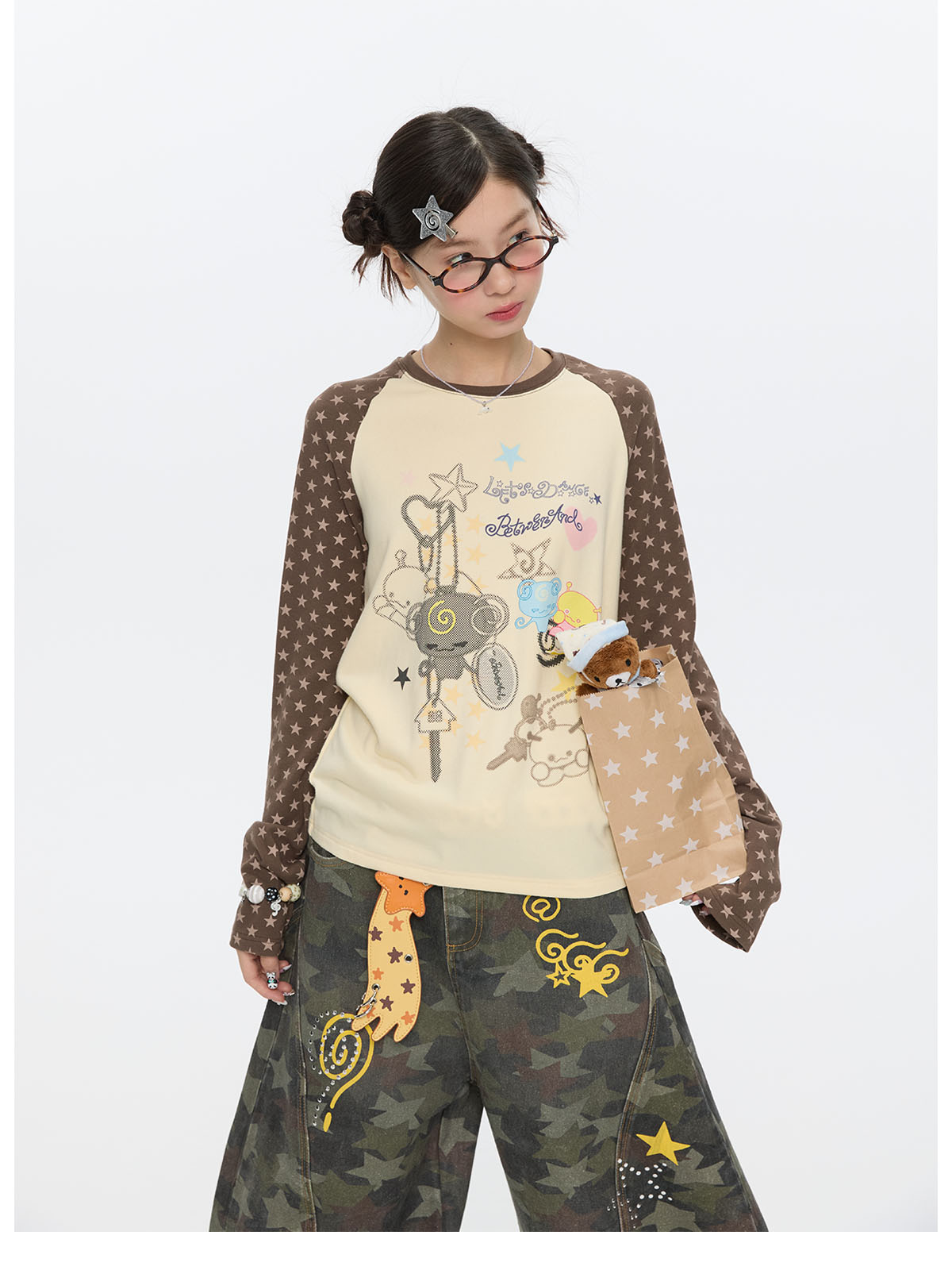 Star contrast raglan sleeve long sleeve top with slim fit design Lookbook