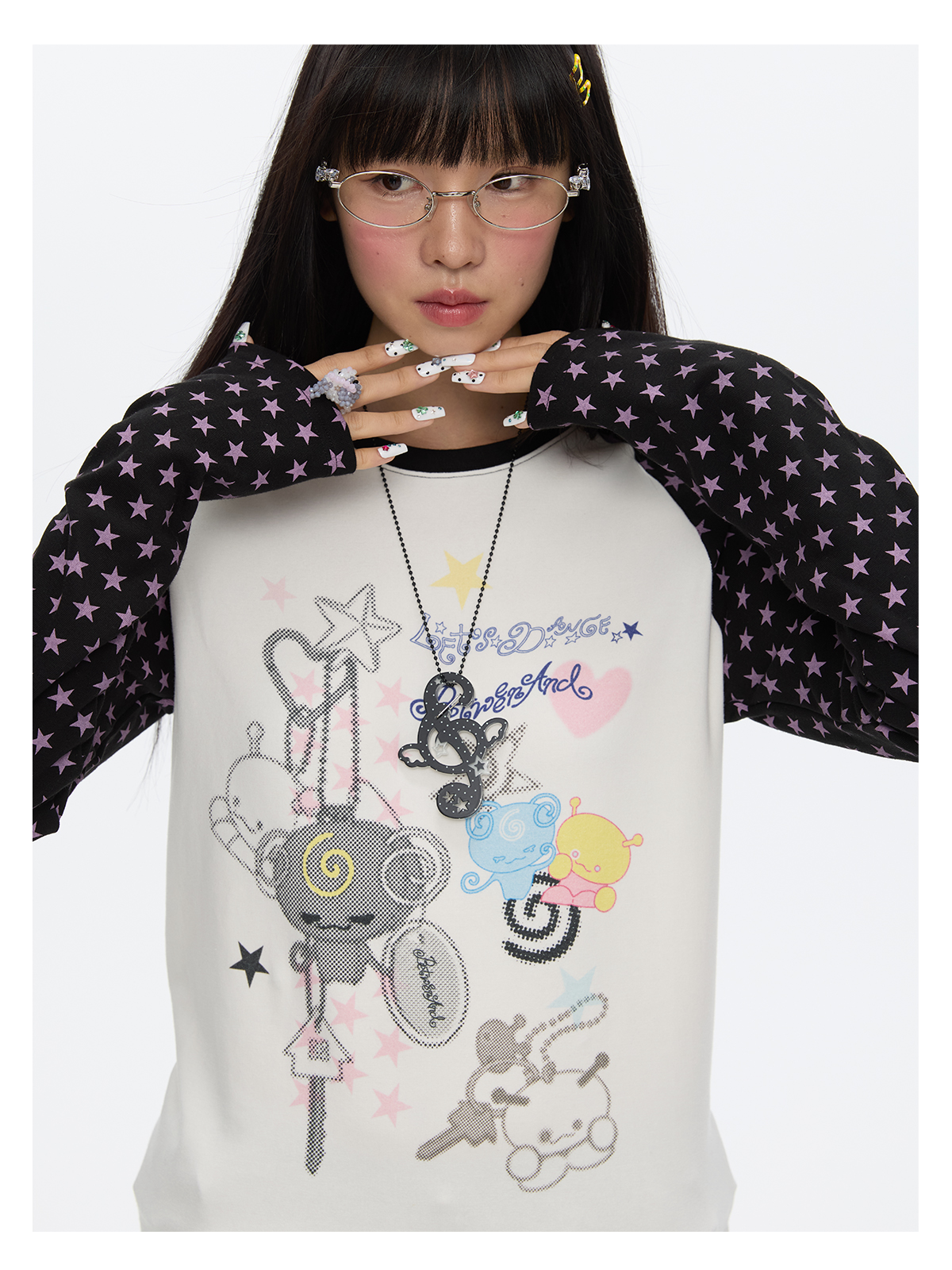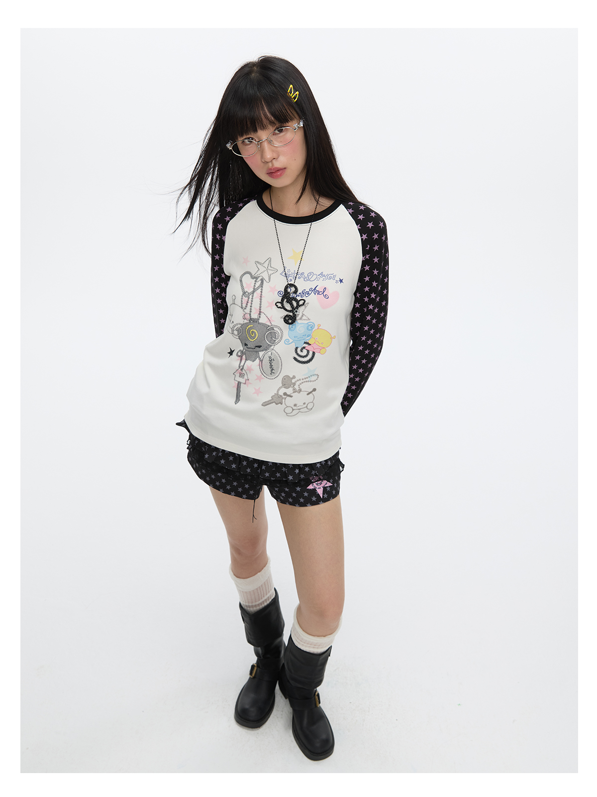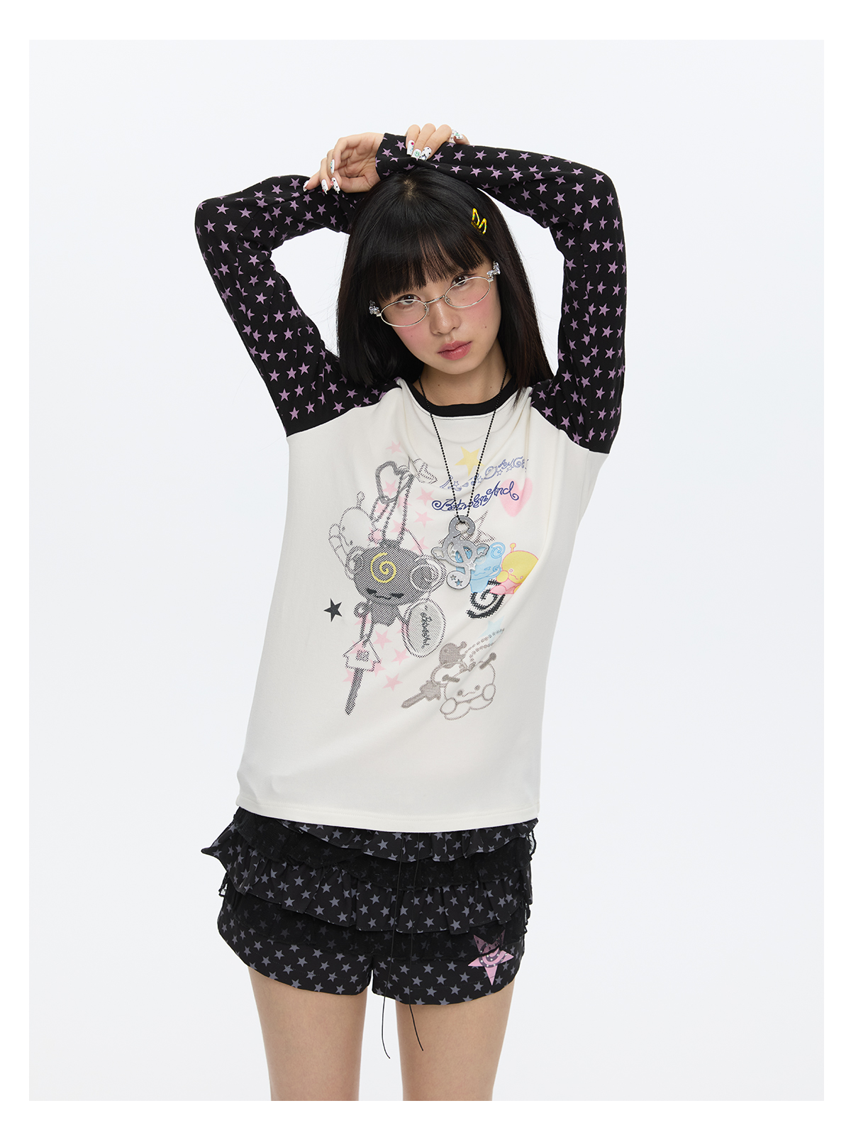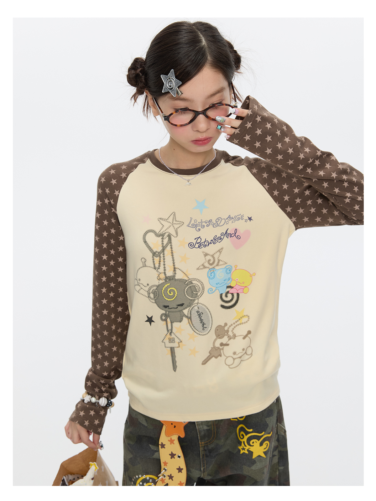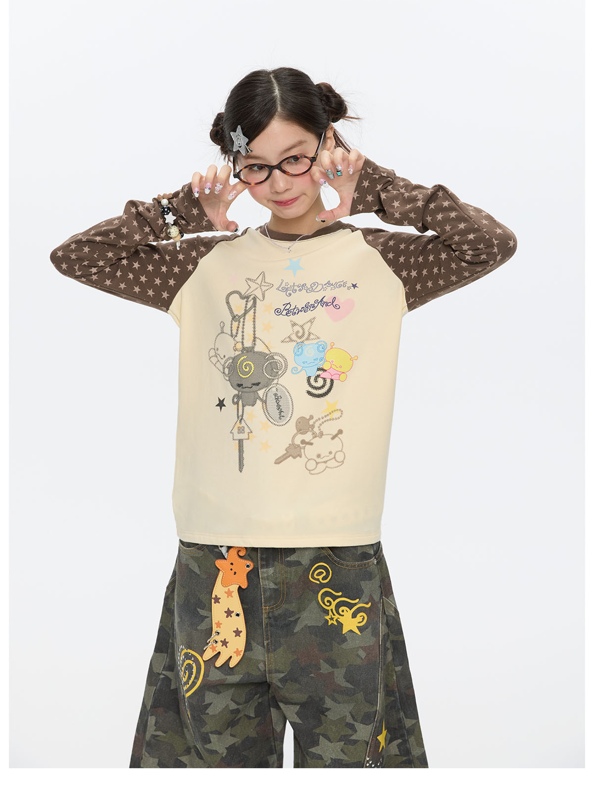 Star contrast raglan sleeve long sleeve top with slim fit design Lookbook
