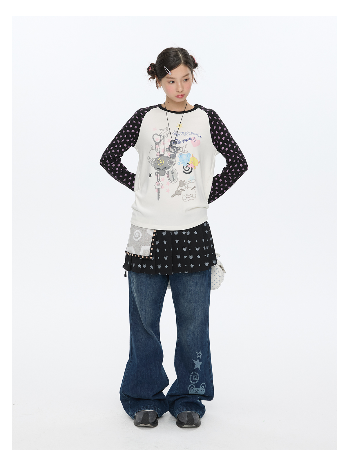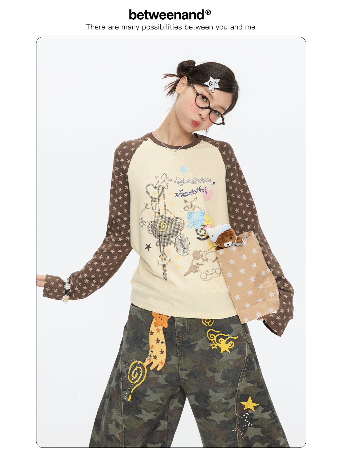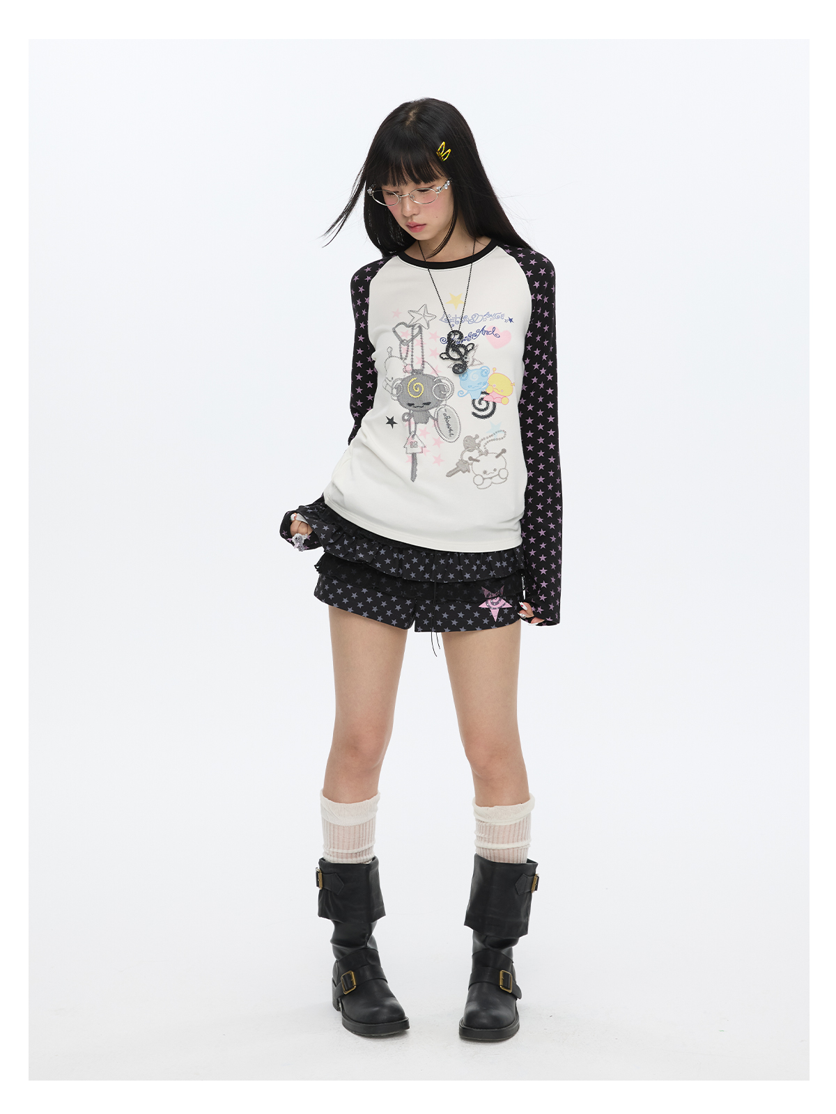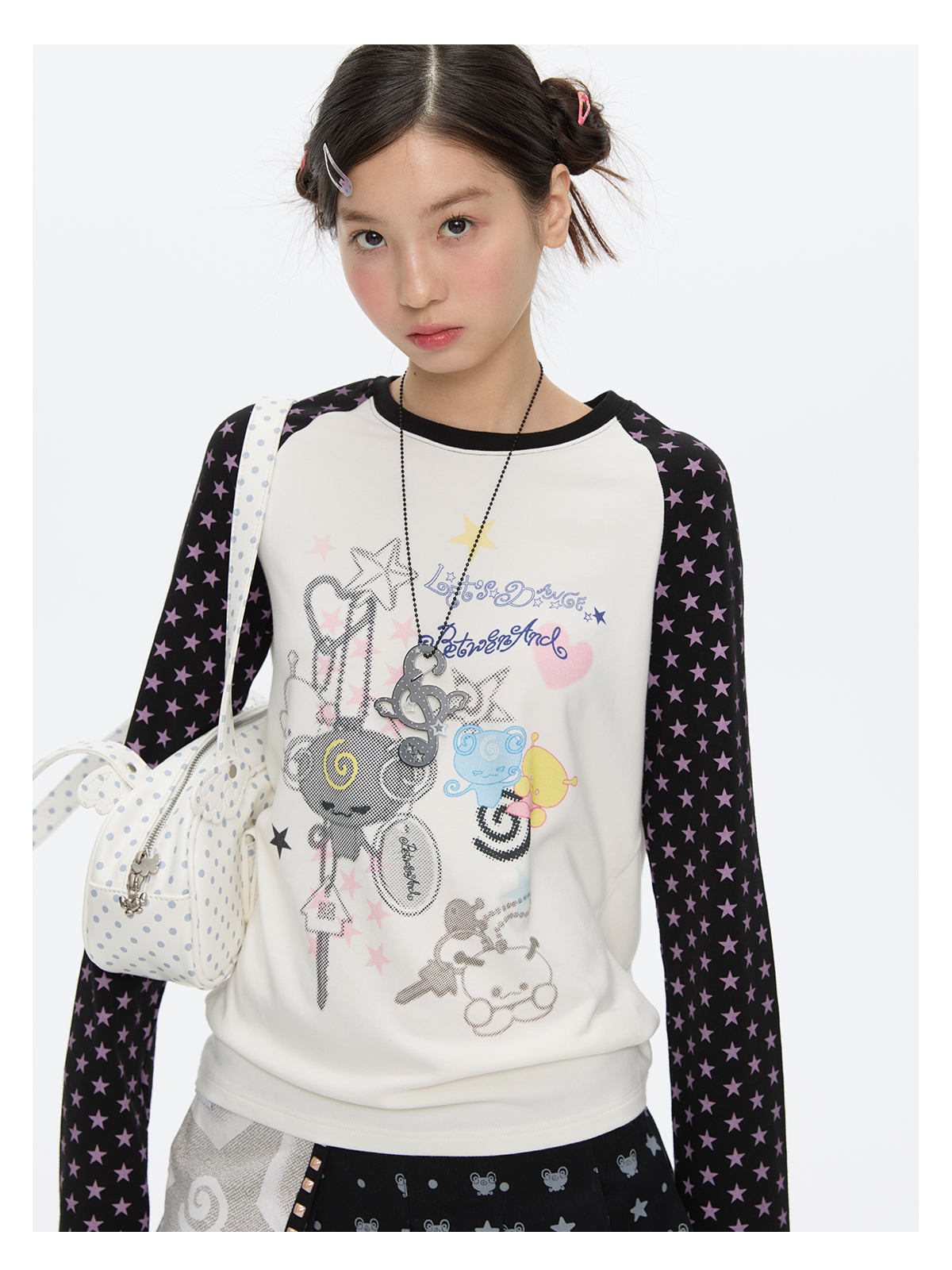 Star contrast raglan sleeve long sleeve top with slim fit design Lookbook