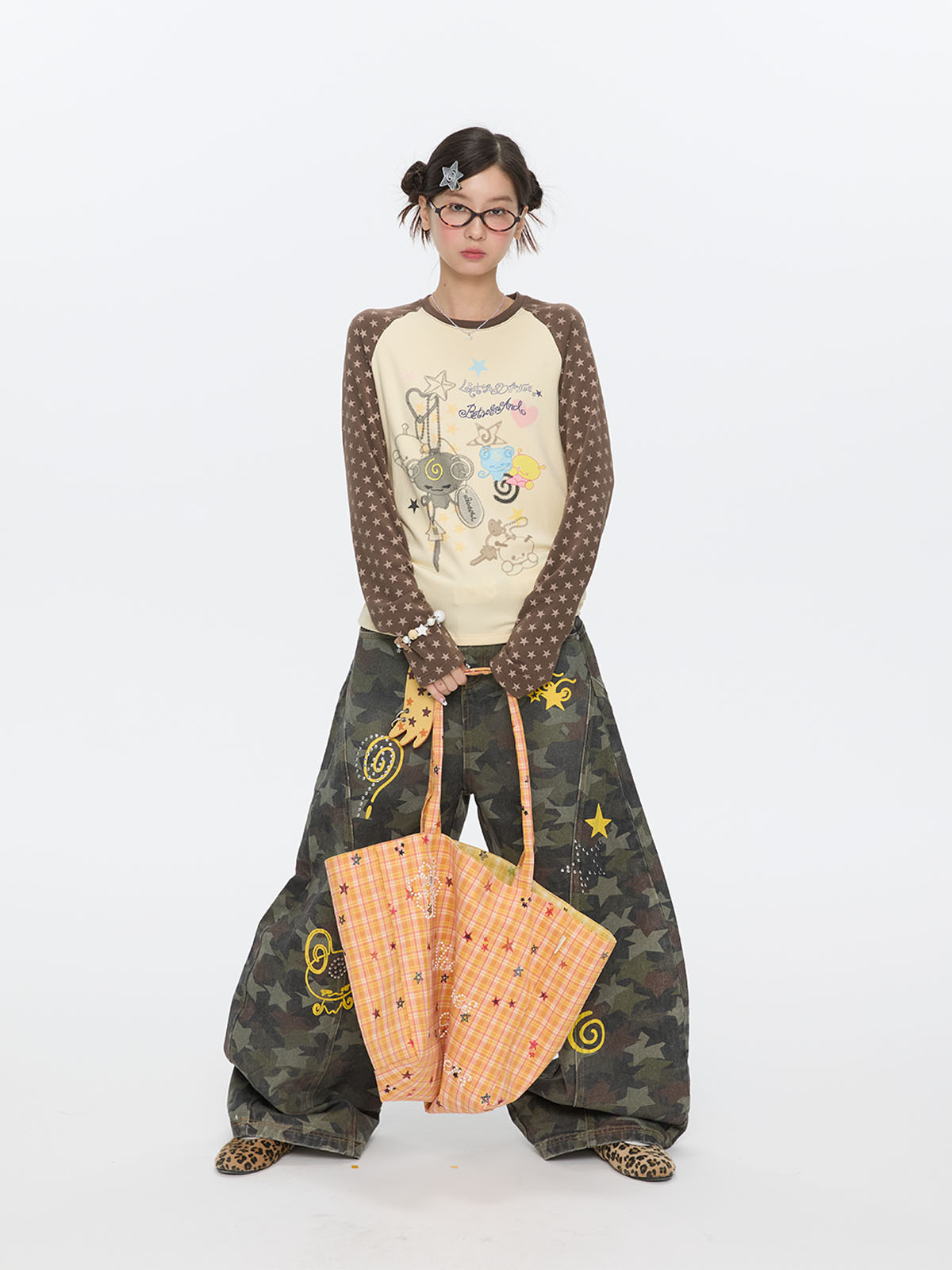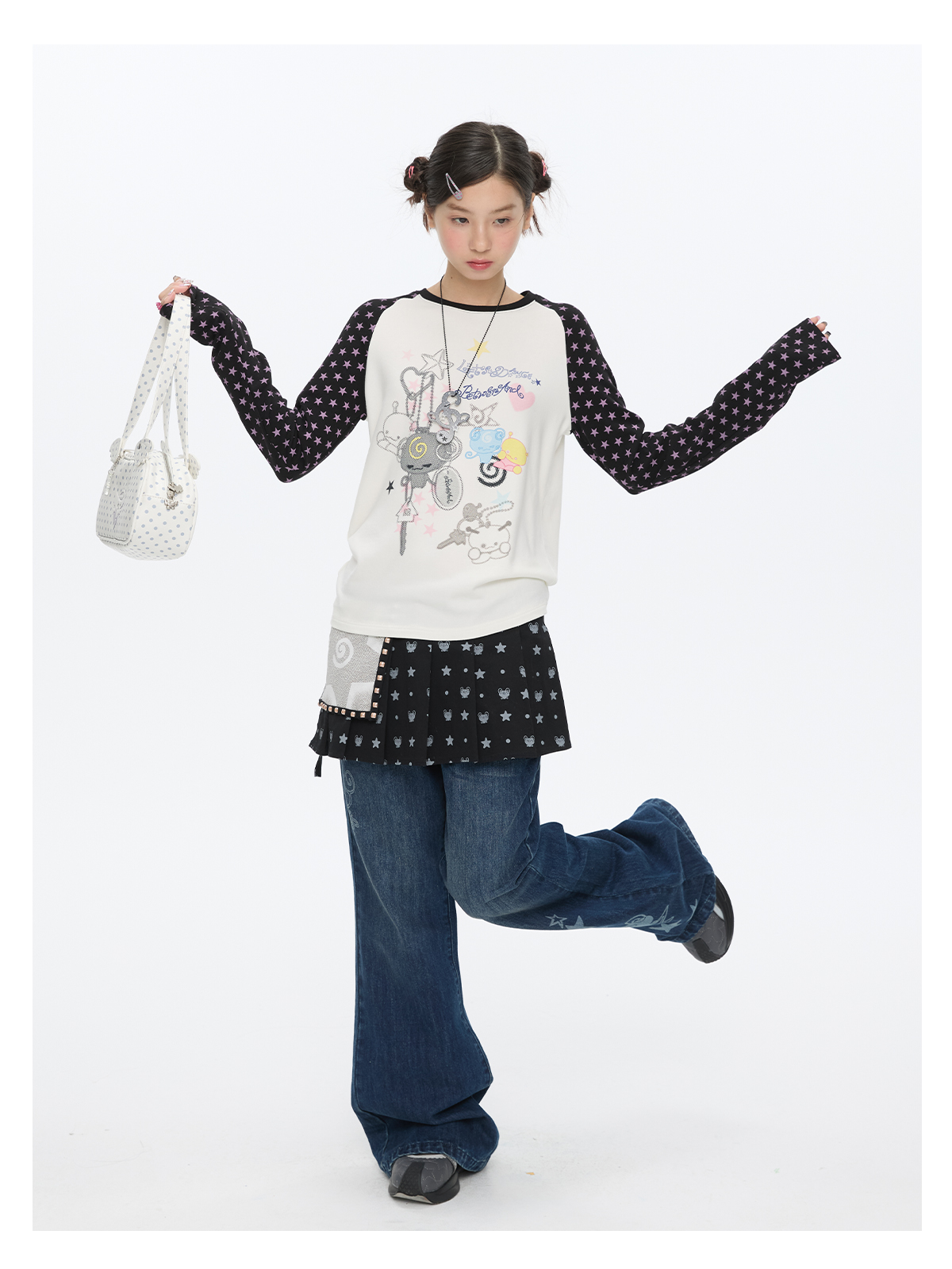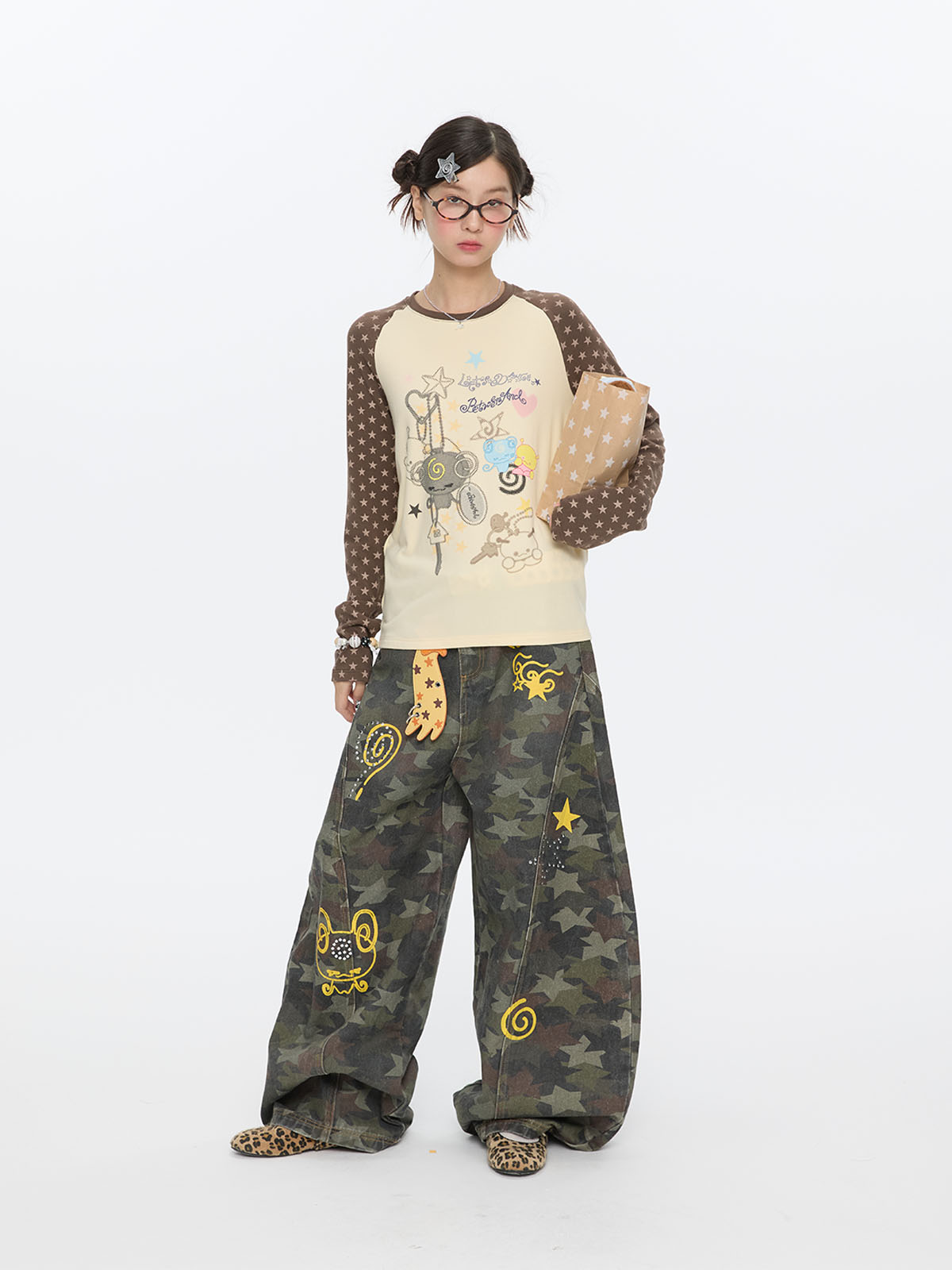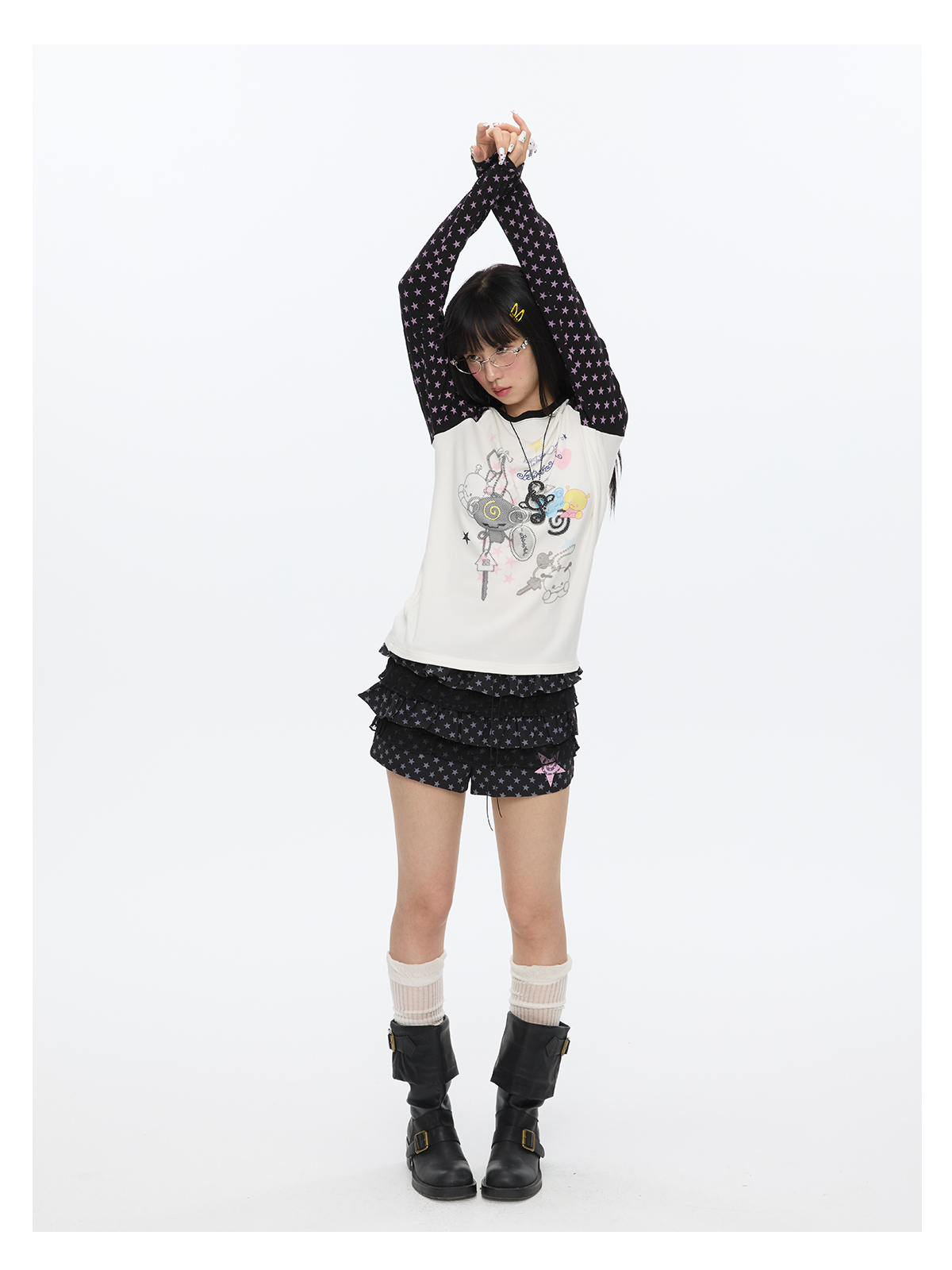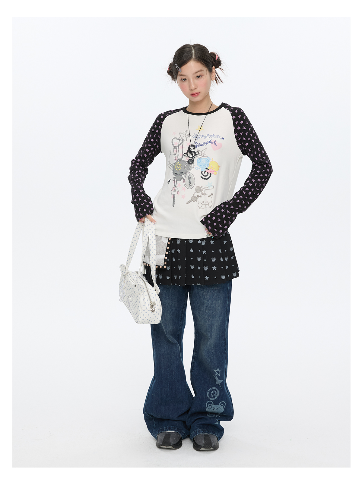 Star contrast raglan sleeve long sleeve top with slim fit design Lookbook