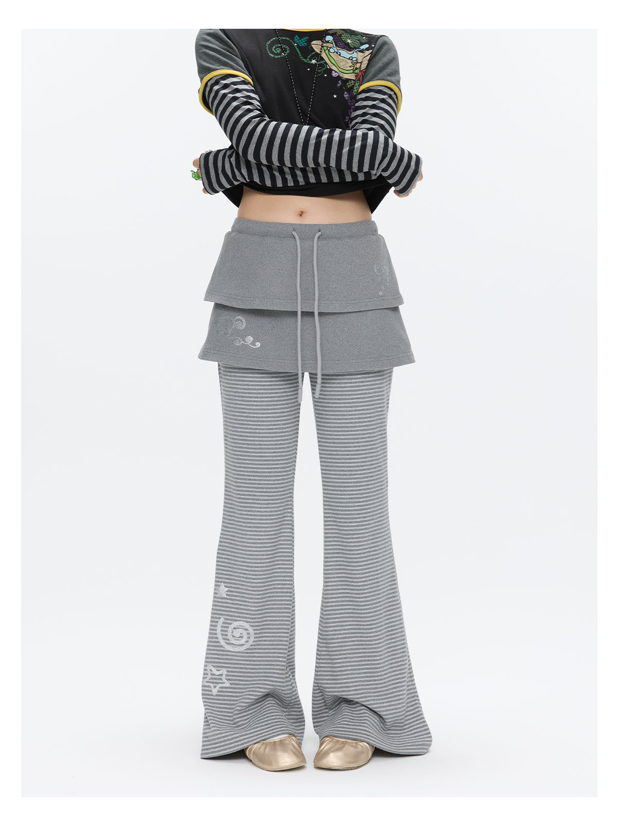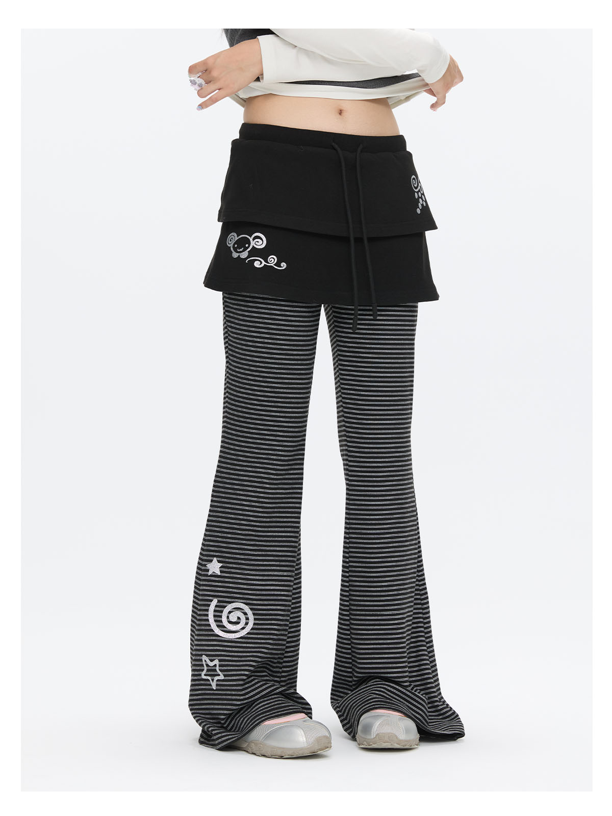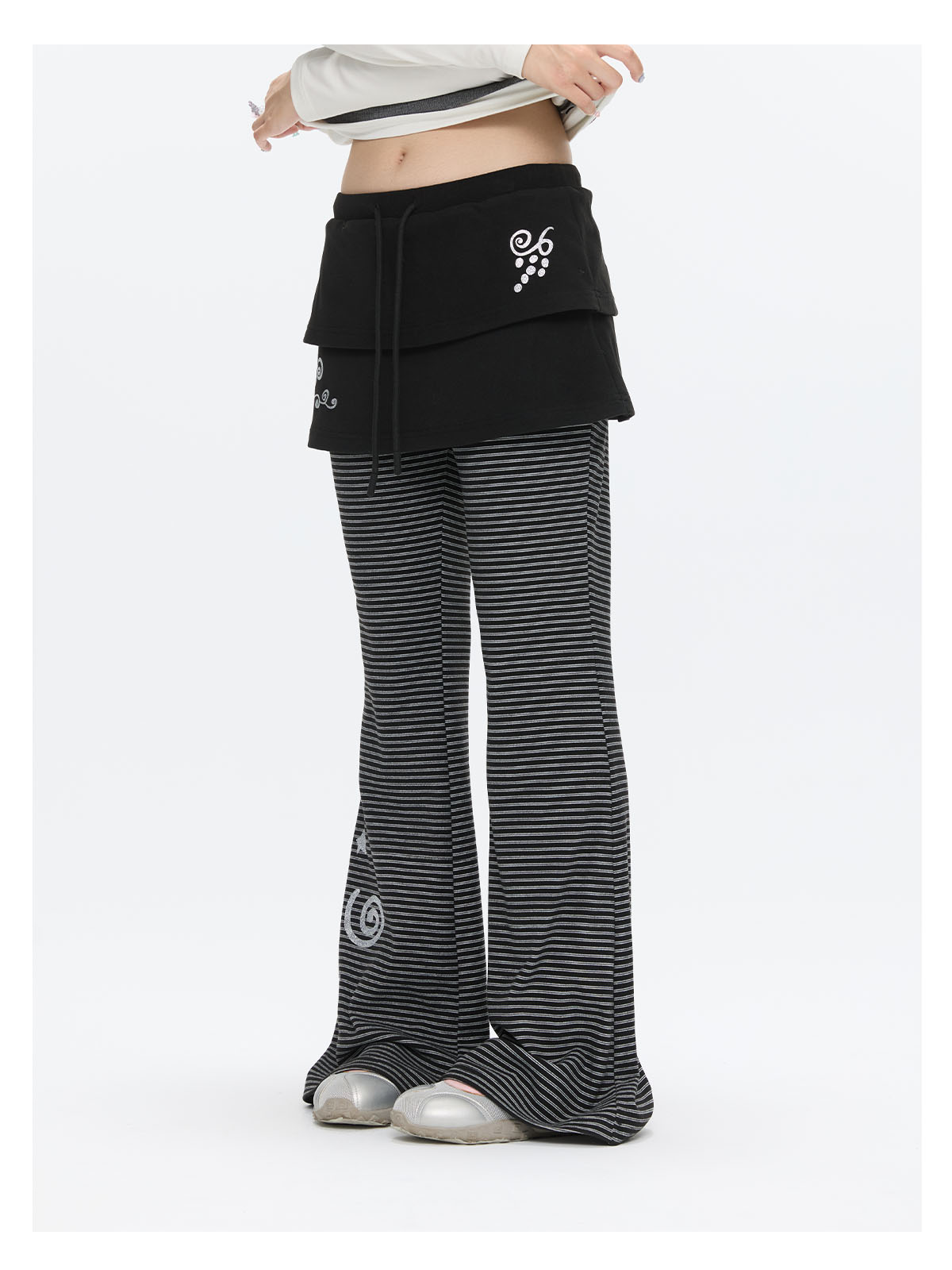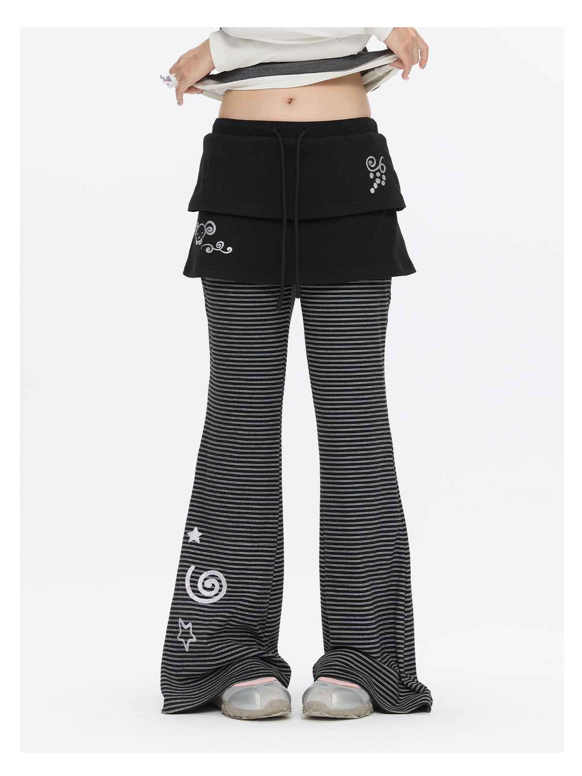Striped layered flare pants with ruffle skirt design and Y2K style