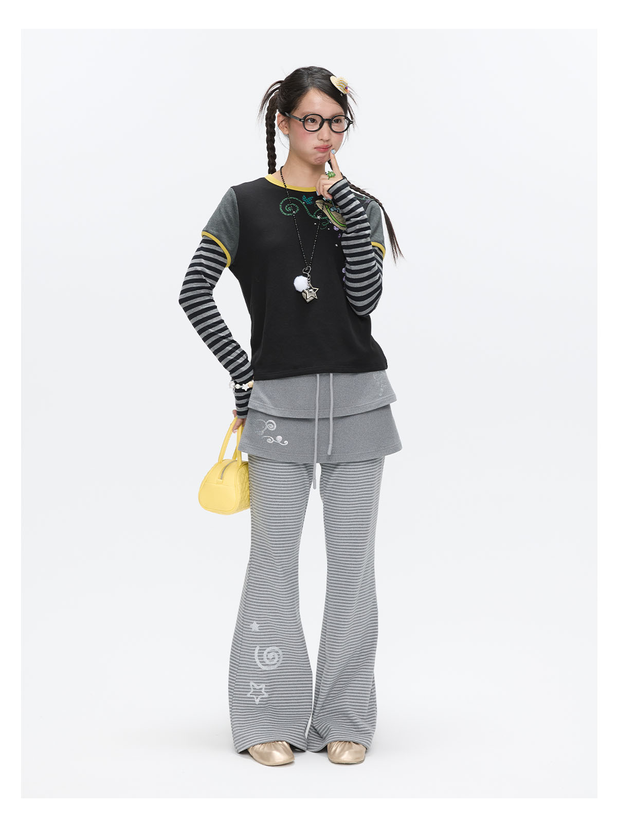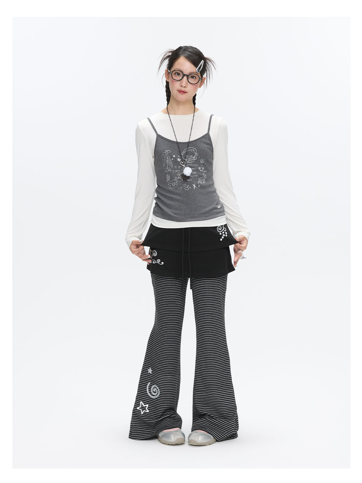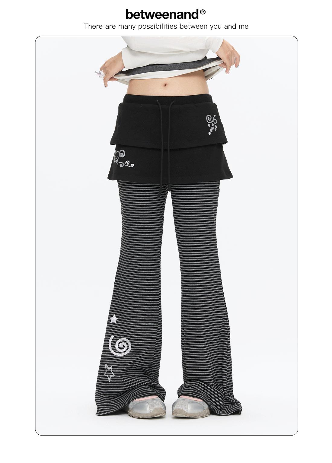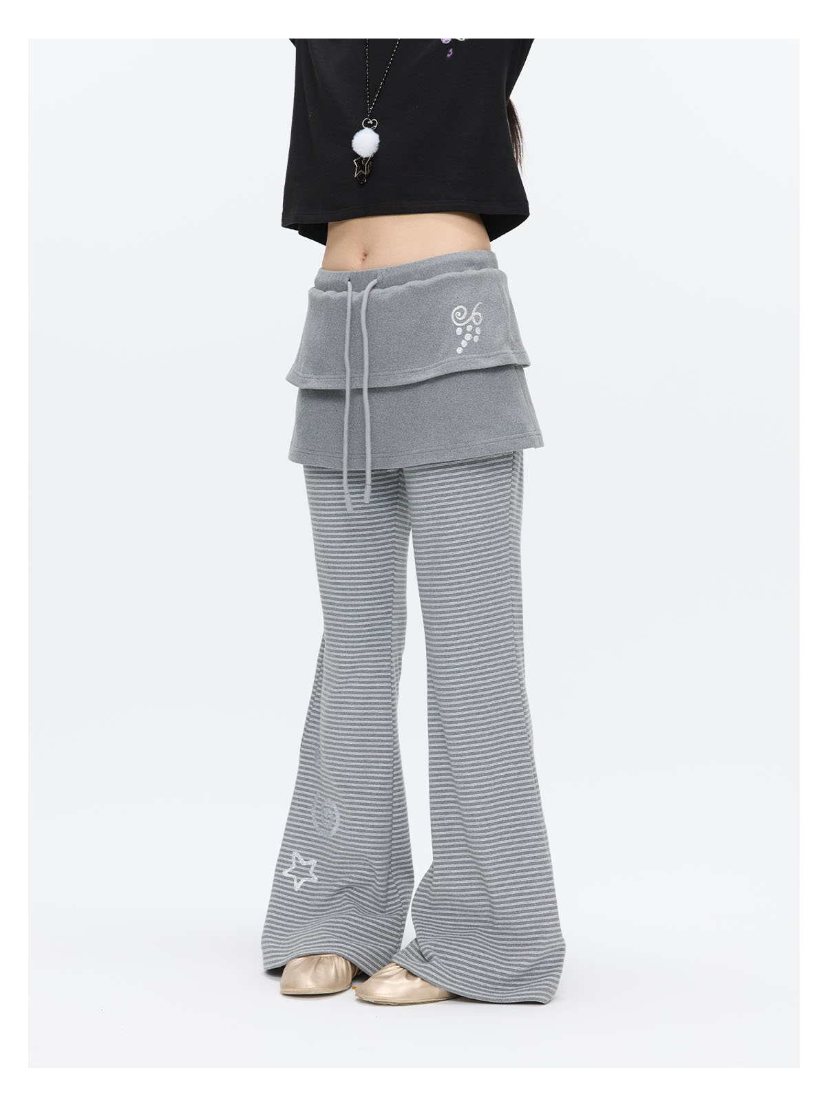 Striped layered flare pants with ruffle skirt design and Y2K style