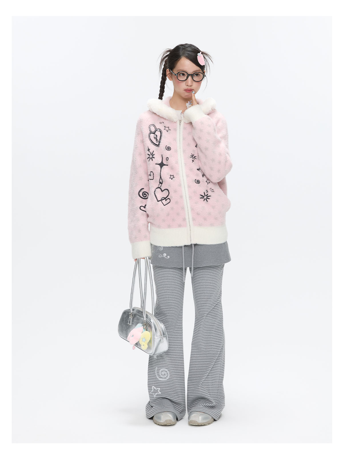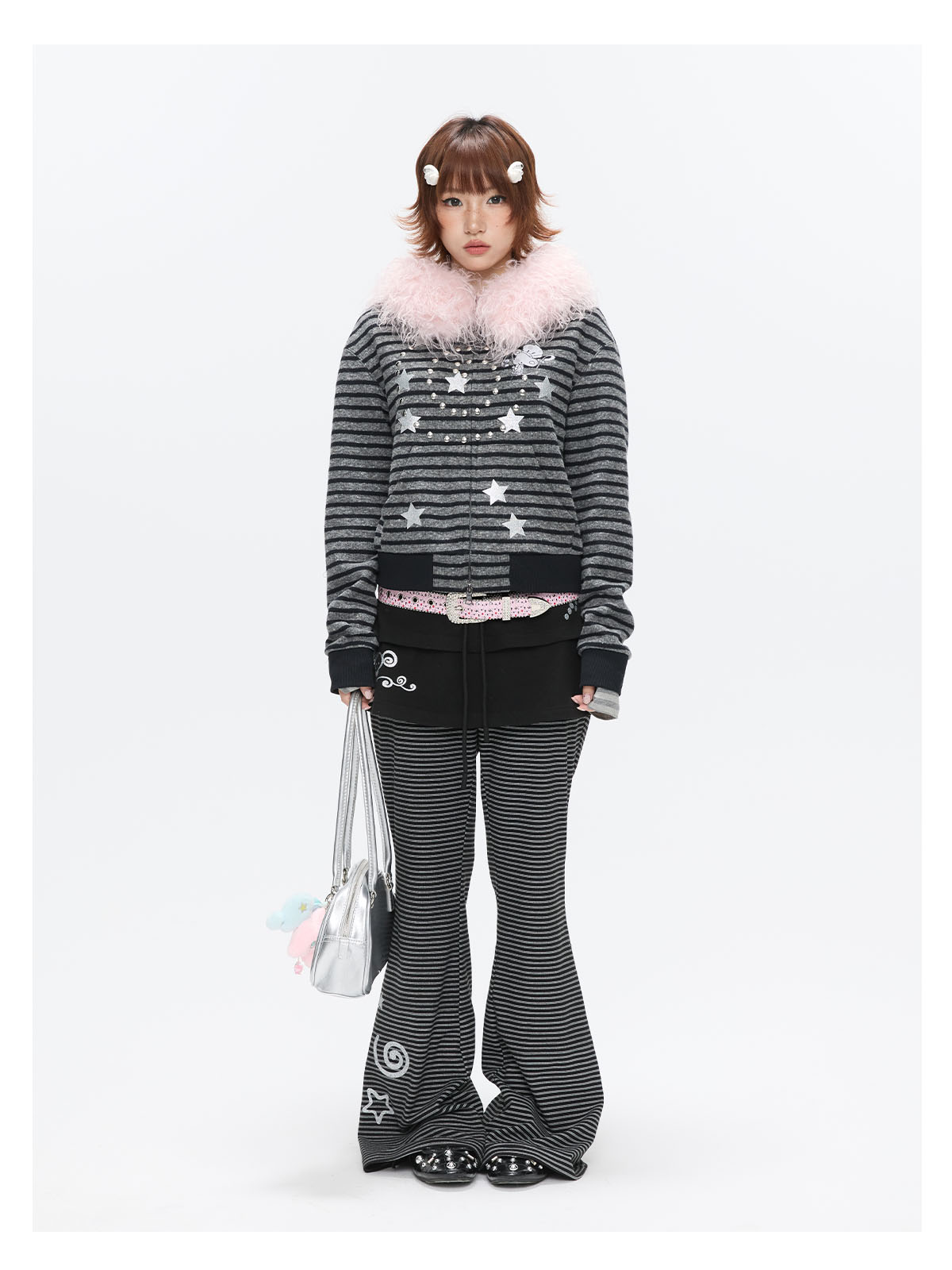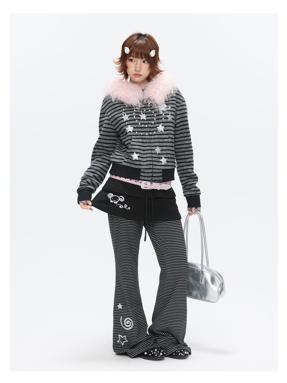 Striped layered flare pants with ruffle design and Y2K style Lookbook